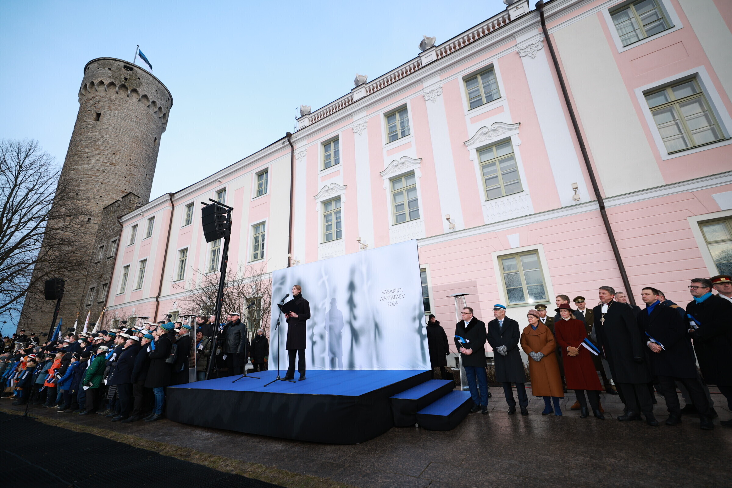 Tänavune vabariigi aastapäev algas traditsiooniliselt riigilipu piduliku heiskamisega Toompeal. Kõne pidas riigikogu esimees Lauri Hussar.