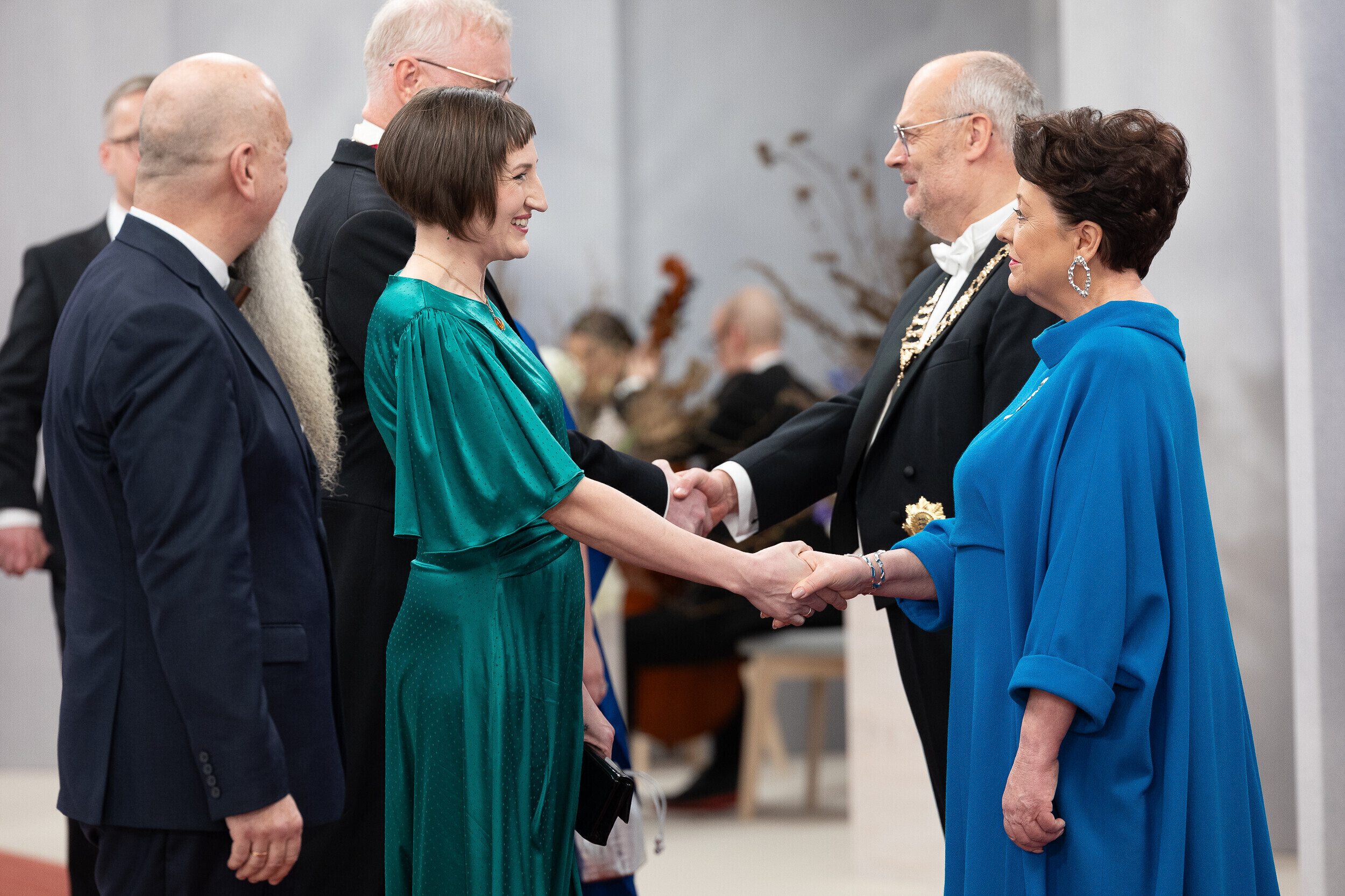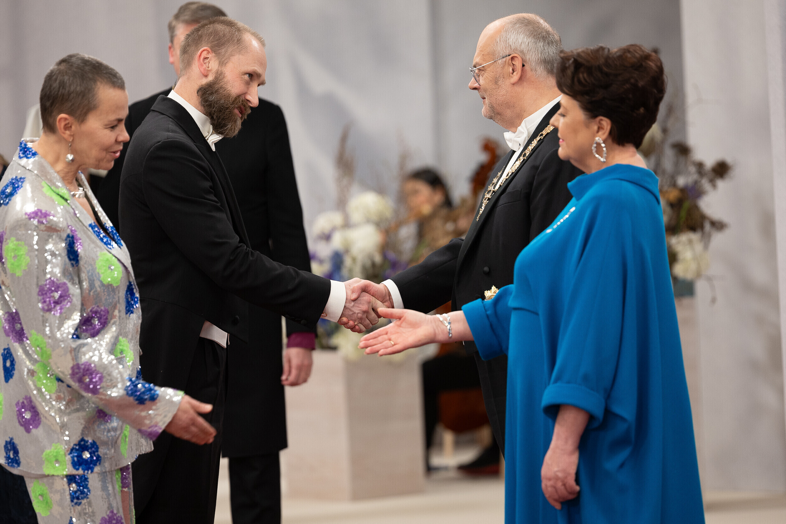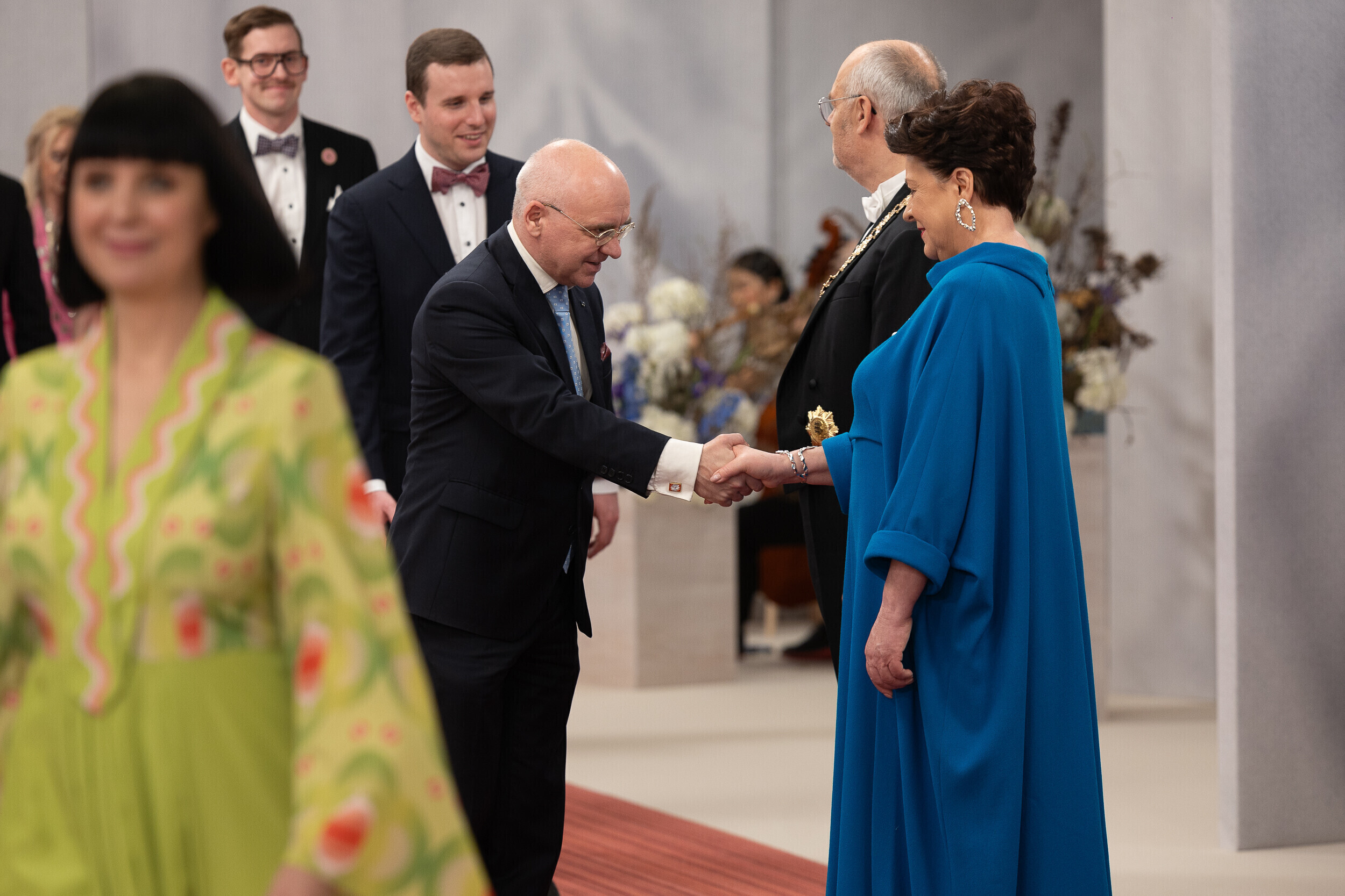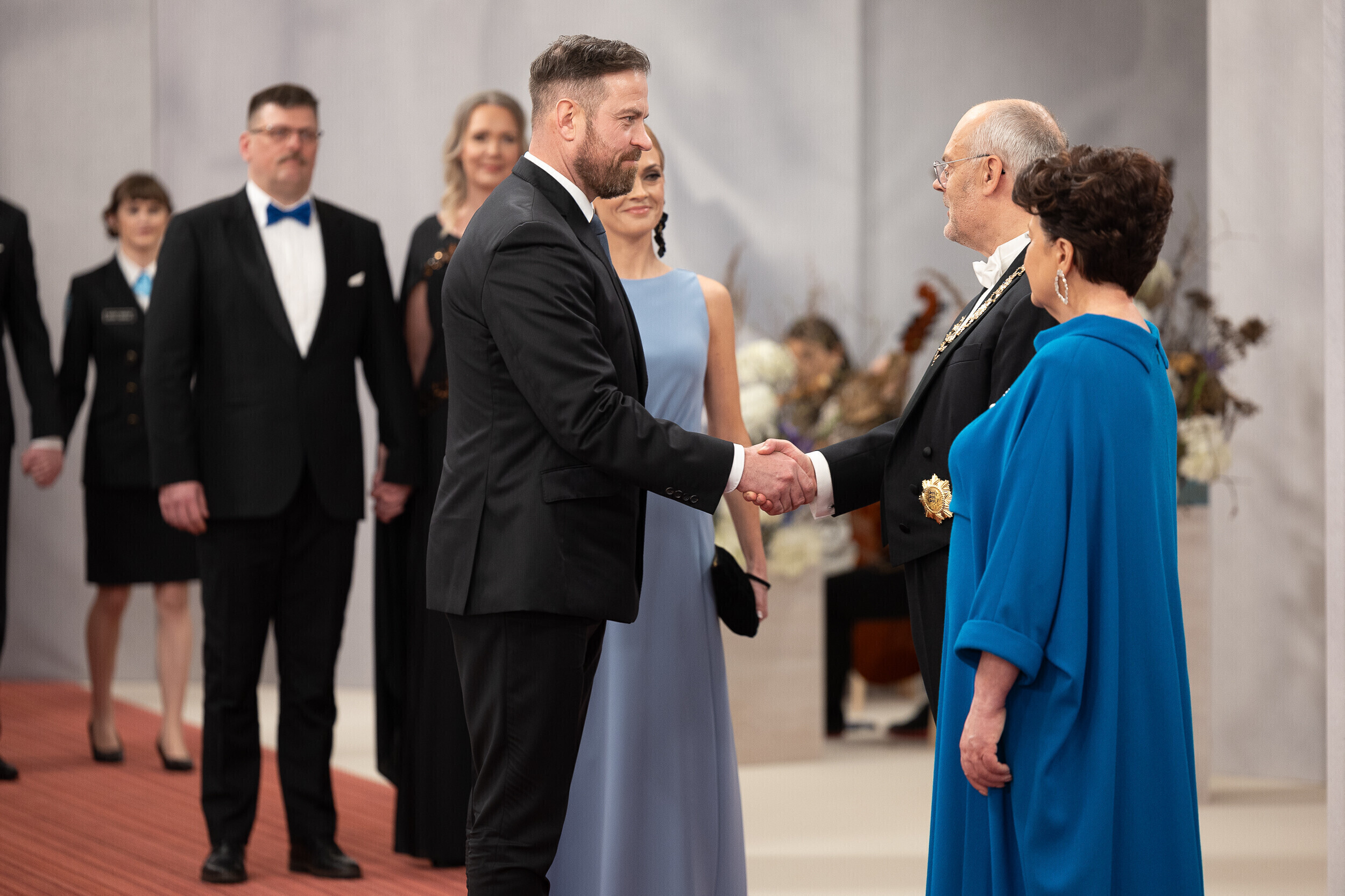 President Alar Karis ja proua Sirje Karis kutsusid tänavu vabariigi aastapäeva vastuvõtule inimesi paljudelt elualadelt, nende seas ka näiteks möödunud aastal silma paistnud kultuuri- ja sporditegelasi, hariduselu edendajaid, vaimse tervise eest seisjaid, ühiskonnategelasi, poliitikuid, riigiametnikke ja Eestisse akrediteeritud suursaadikud.
