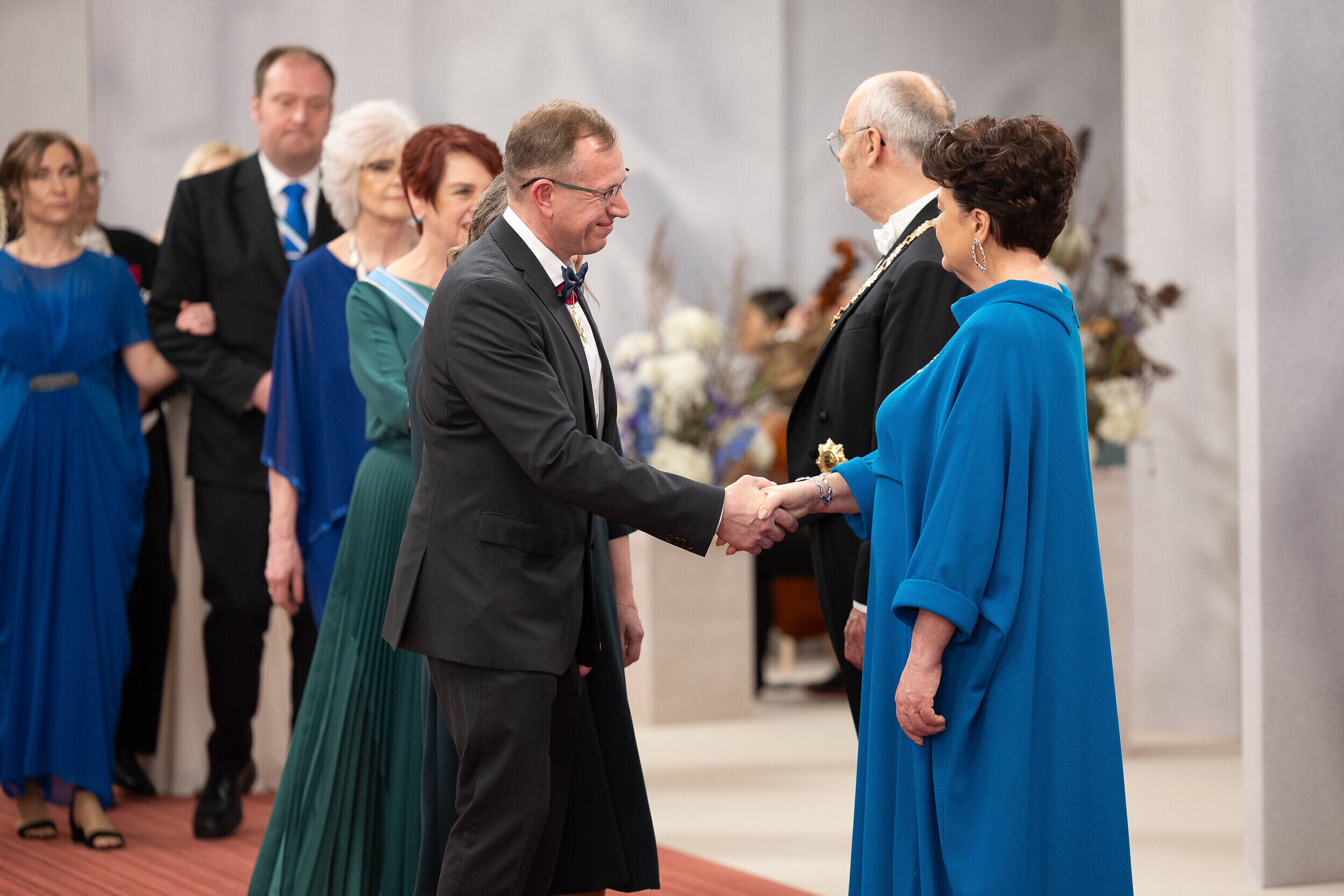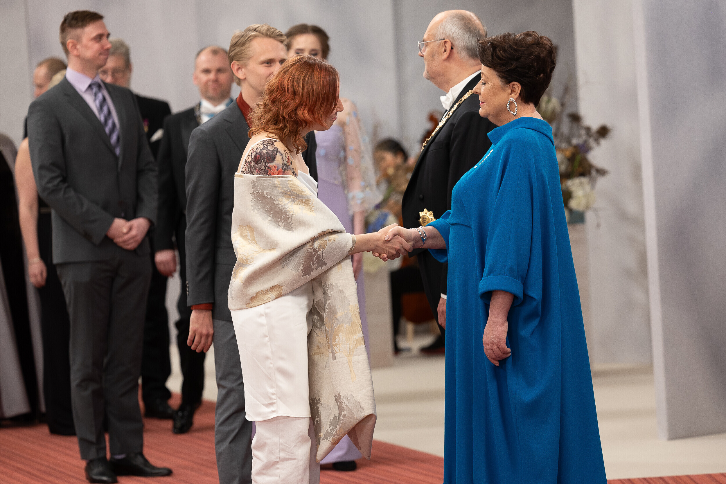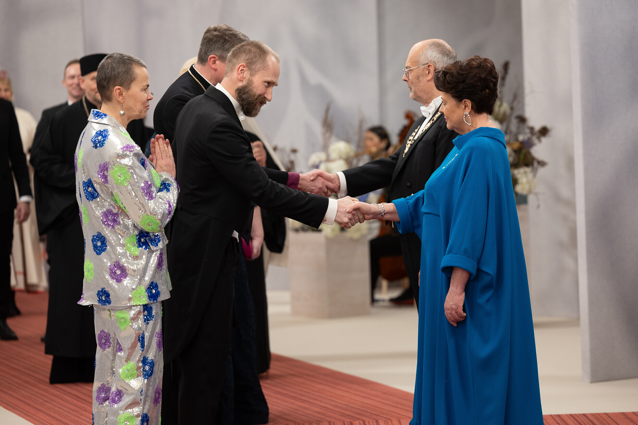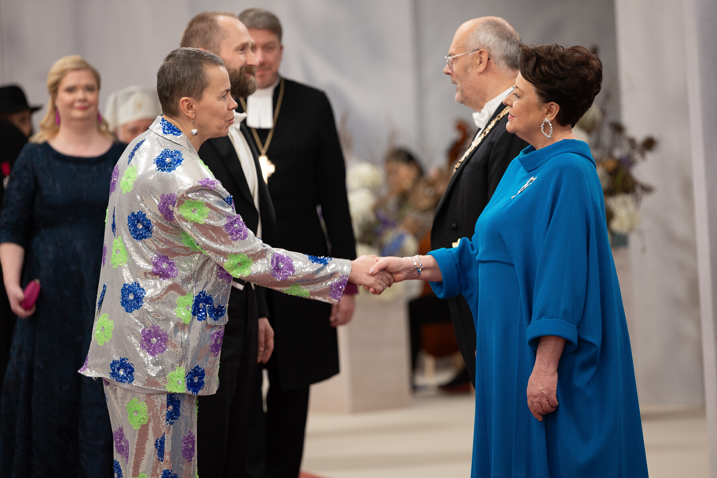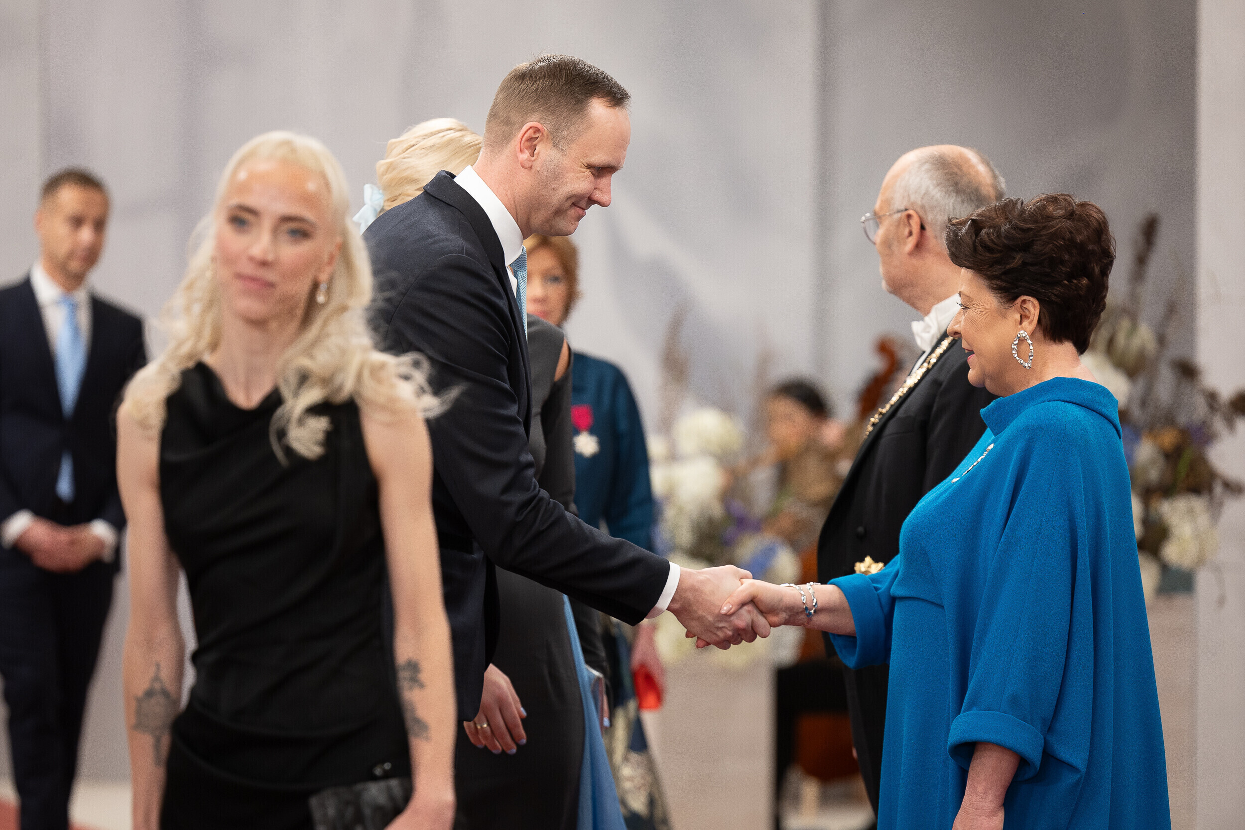 President Alar Karis ja proua Sirje Karis kutsusid tänavu vabariigi aastapäeva vastuvõtule inimesi paljudelt elualadelt, nende seas ka näiteks möödunud aastal silma paistnud kultuuri- ja sporditegelasi, hariduselu edendajaid, vaimse tervise eest seisjaid, ühiskonnategelasi, poliitikuid, riigiametnikke ja Eestisse akrediteeritud suursaadikud.