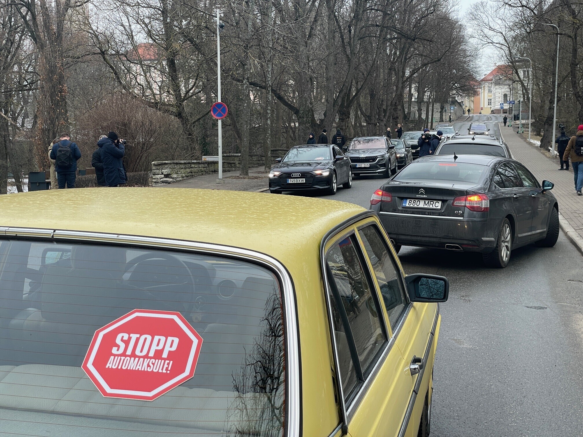 Üks autojuht ütles ERR-ile, et talle jäid silma kaks liiklust takistanud sõiduautot Pärnu maanteel Nordeconi peamaja juures ning Pärnu maantee viaduktil.