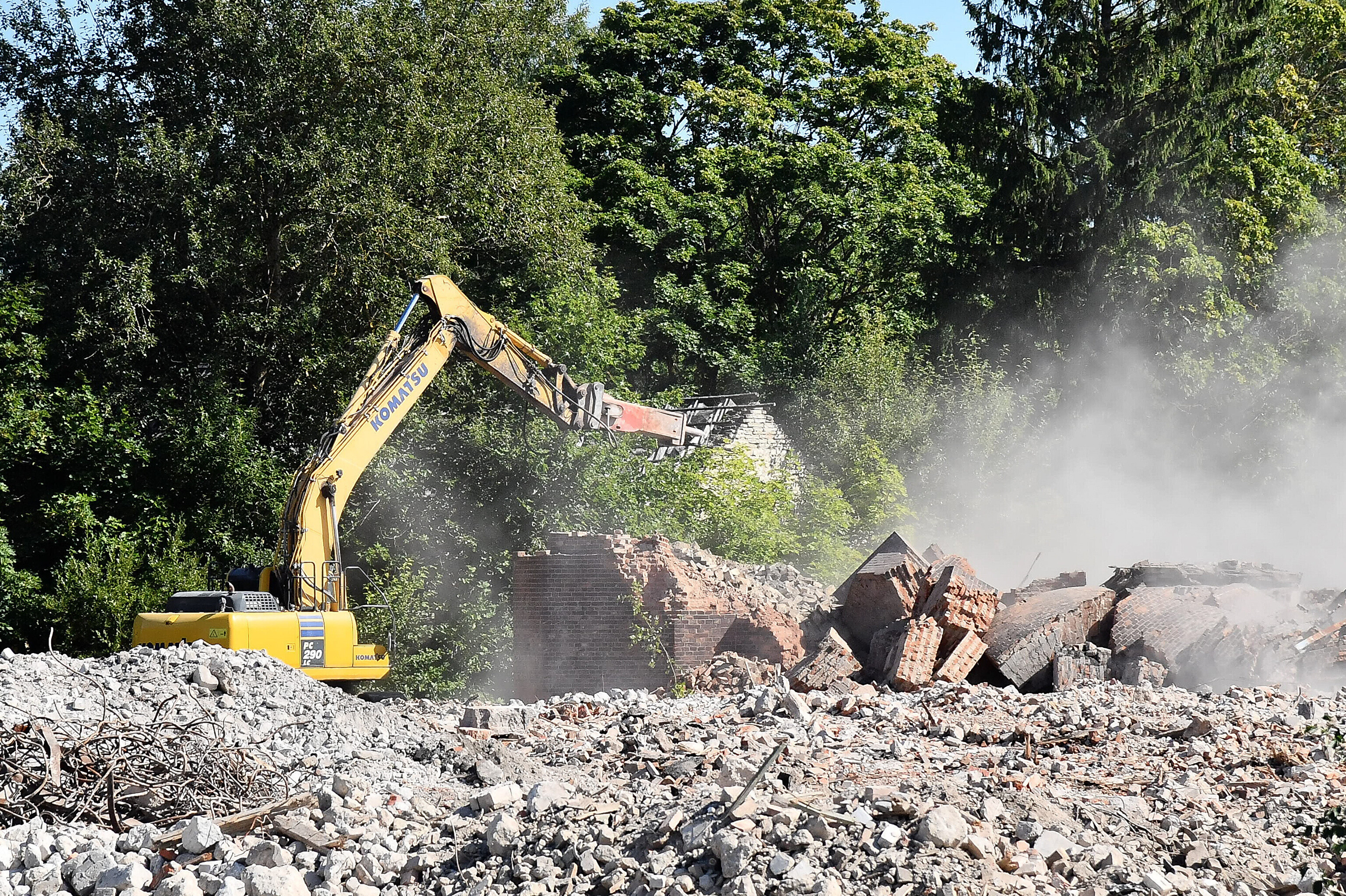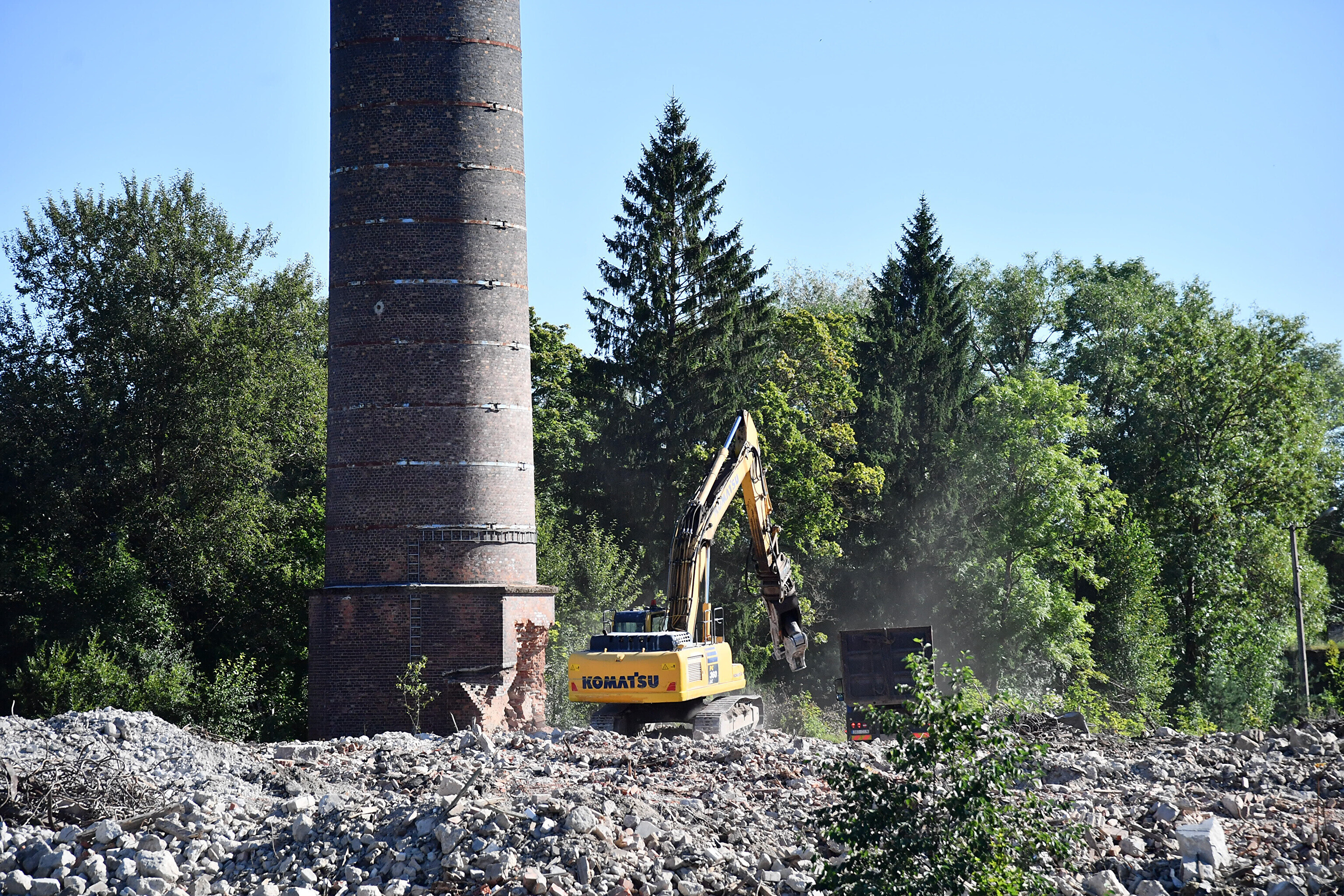 Neljapäeval jõudis järg 72 meetri kõrguse korstnani. Elektrijaama tuhamäele kogunenud pealtvaatajate silme all murendati purustiga korstna vundamenti, kuni korsten lõpuks kokku varises.