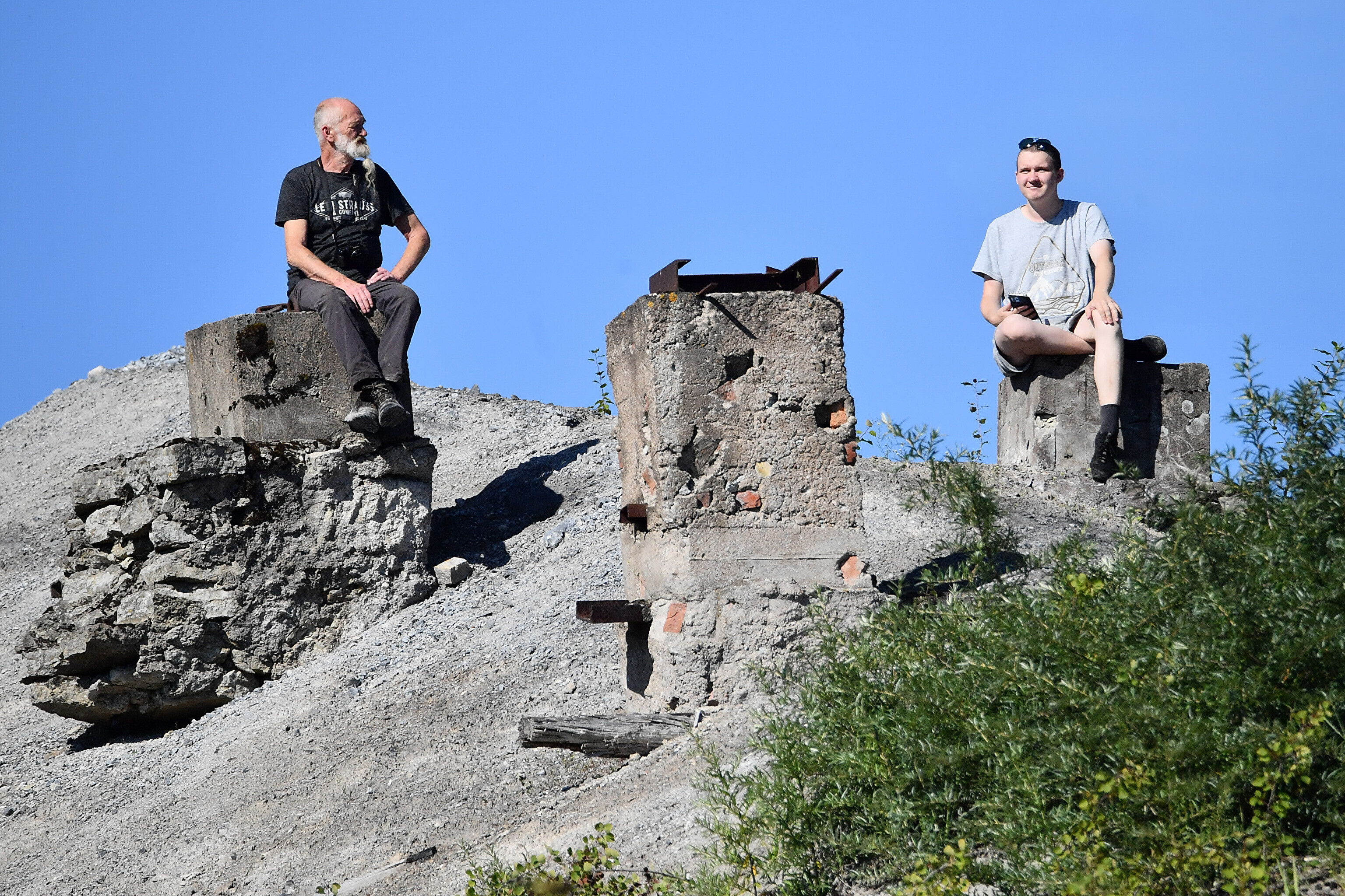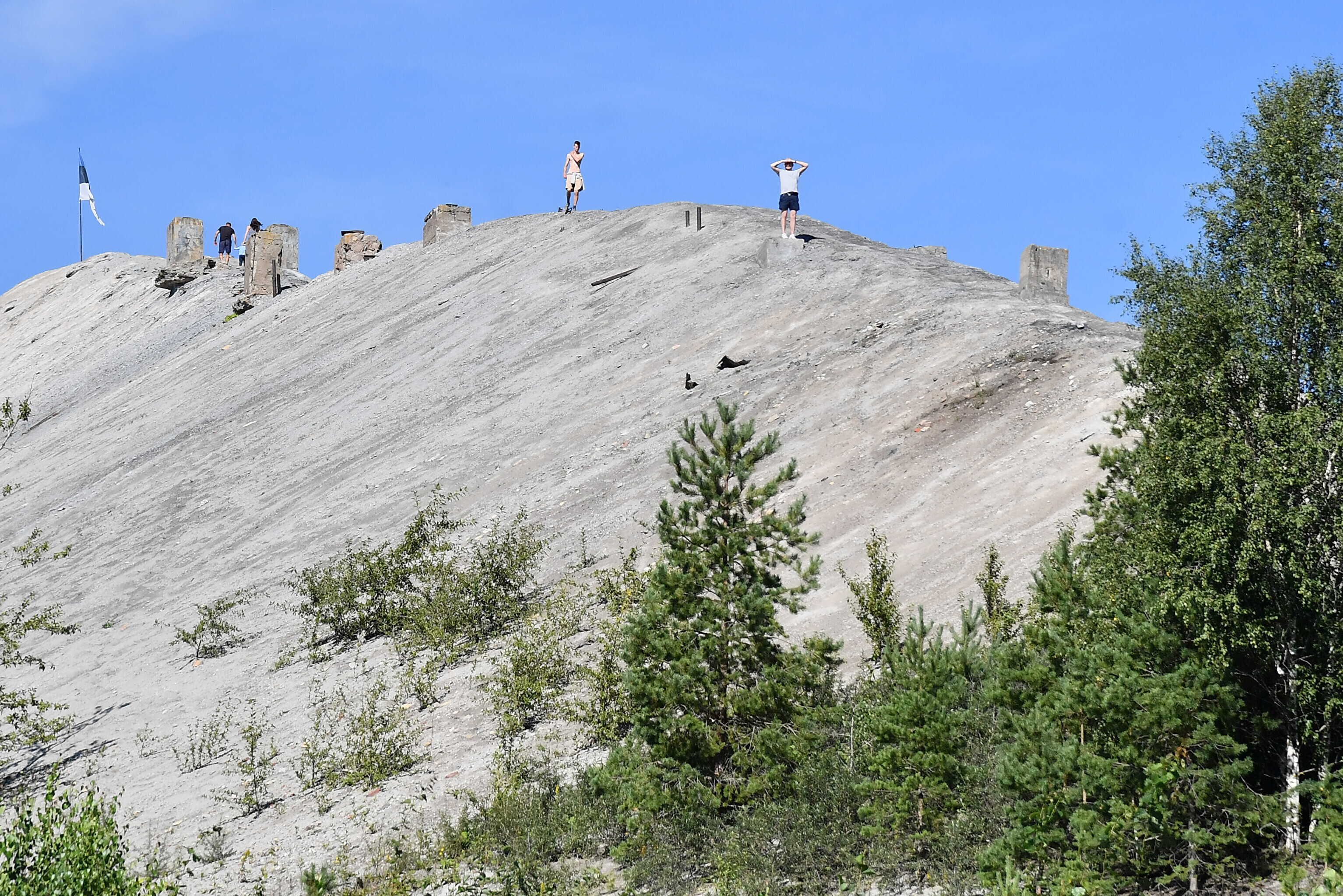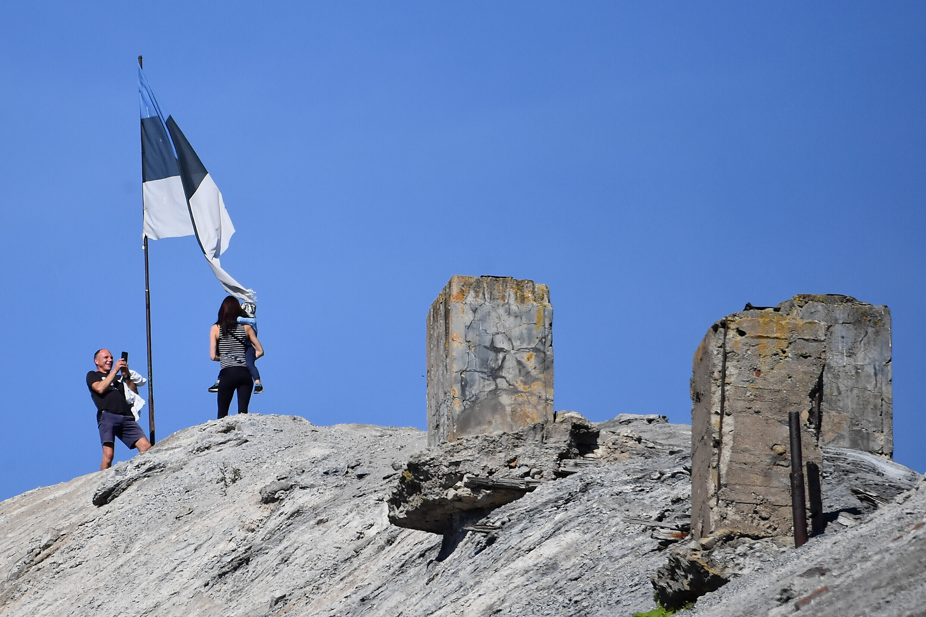 Ida-Virumaal Lüganuse vallas Püssis kogunesid inimesed neljapäeval vaatama vana elektrijaama korstna lammutamist.