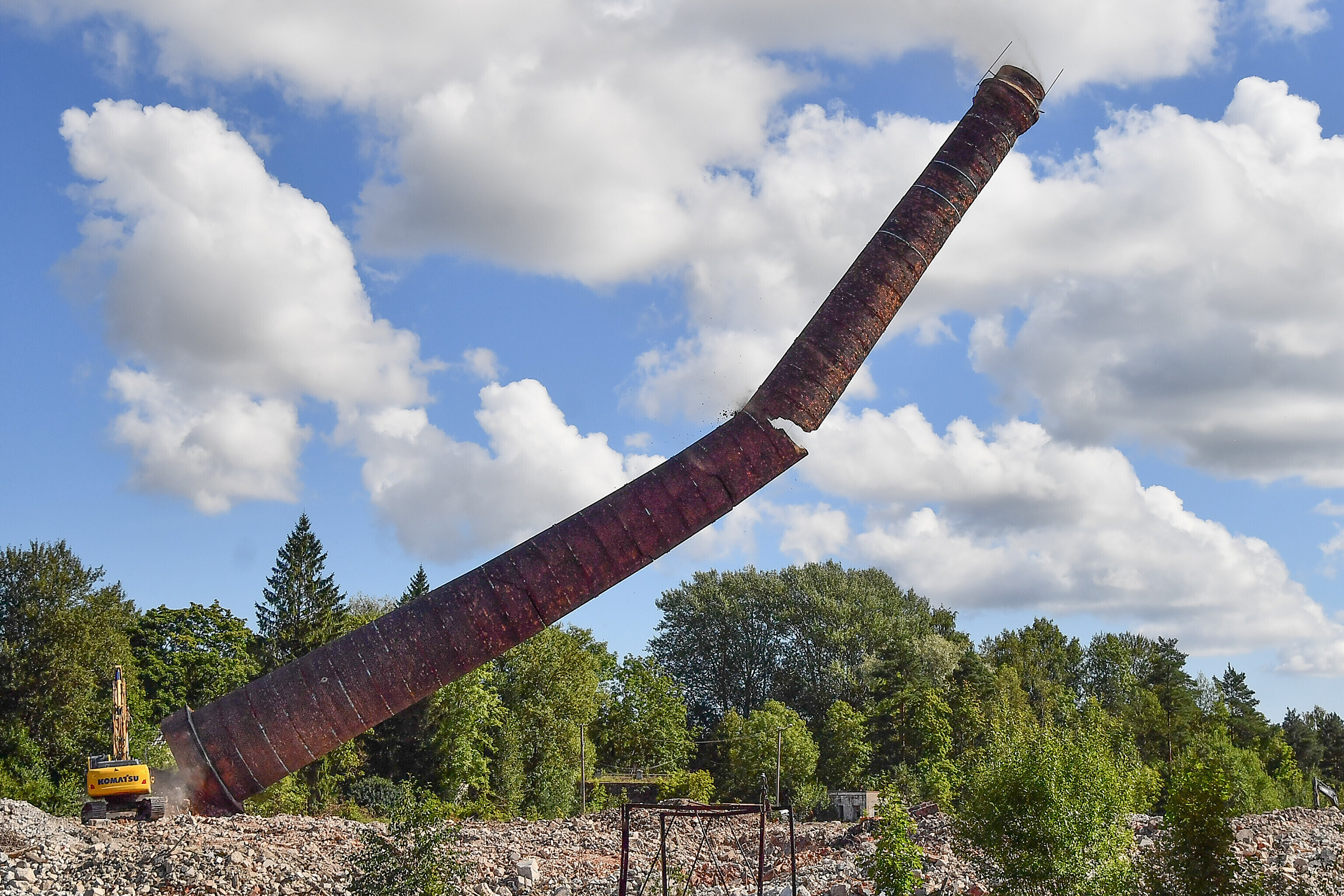 Galerii: Püssis lammutati vana elektrijaama korsten