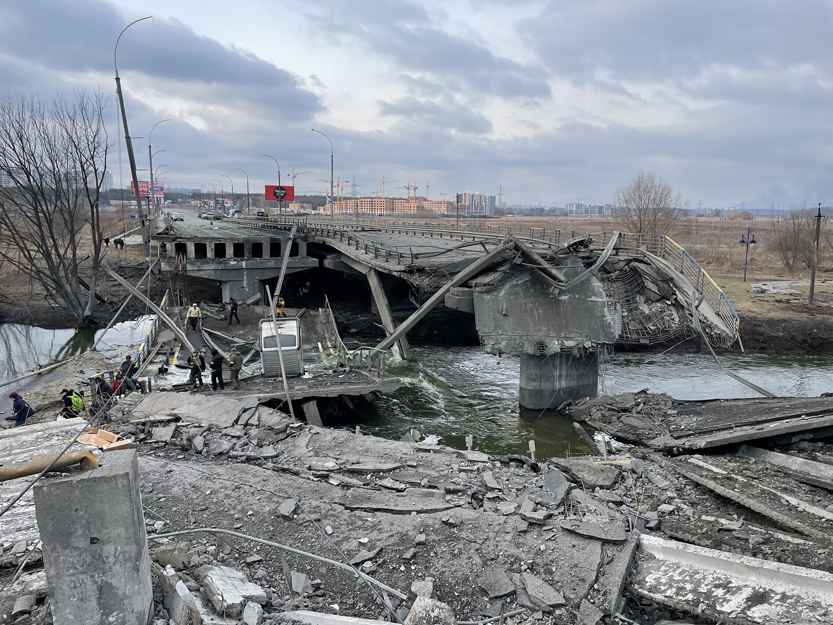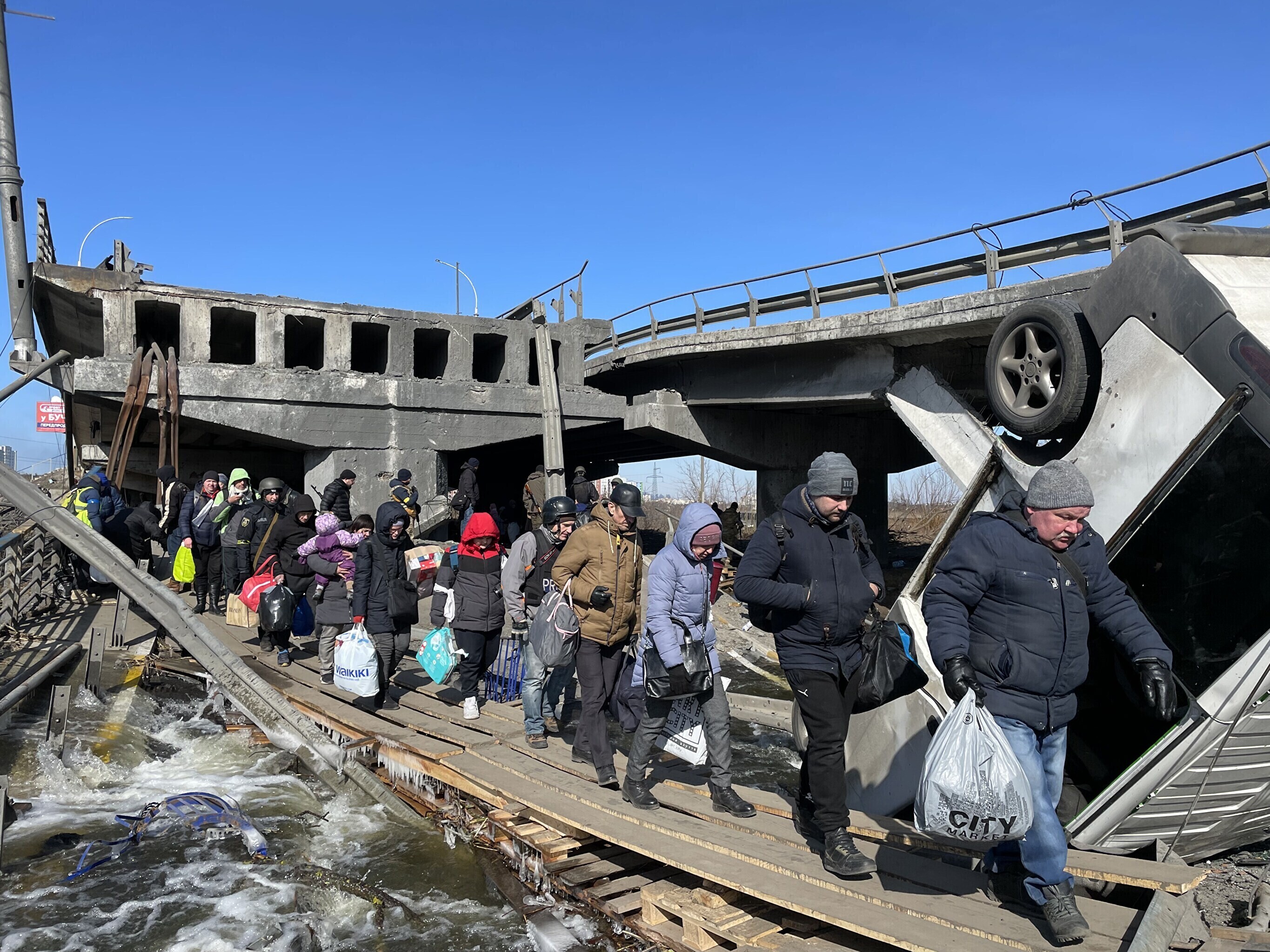 Irpini silda on pommitatud mitu korda, ometi on see ainus viis saada üle jõe, kasvõi mööda rususid. Kõige hullemad pähe jäänud pildid ongi sealt. Kõige hullem on näha sõja eest põgenevate naiste ja laste silmis läbielatud koledusi – mitu päeva väldanud pommitamisi, surma ja õudu.
