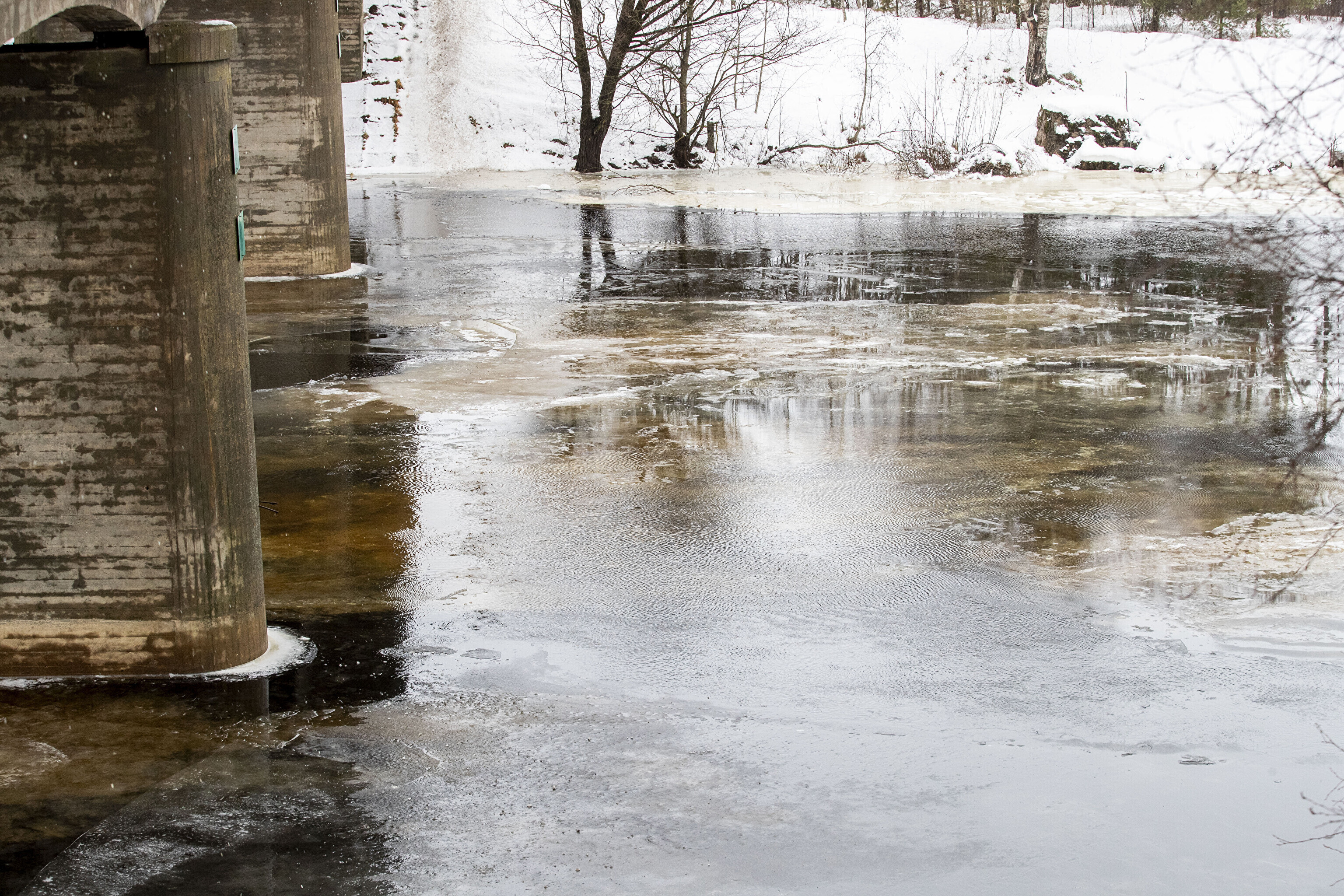 Üks põhjuseid, miks Emajõe tase praegu nii palju tõusnud on, on näha Luunja sillalt, kus on Emajõele tekkinud jääst ja lumest ummistus ja nii ei pääse vesi edasi Peipsi poole.