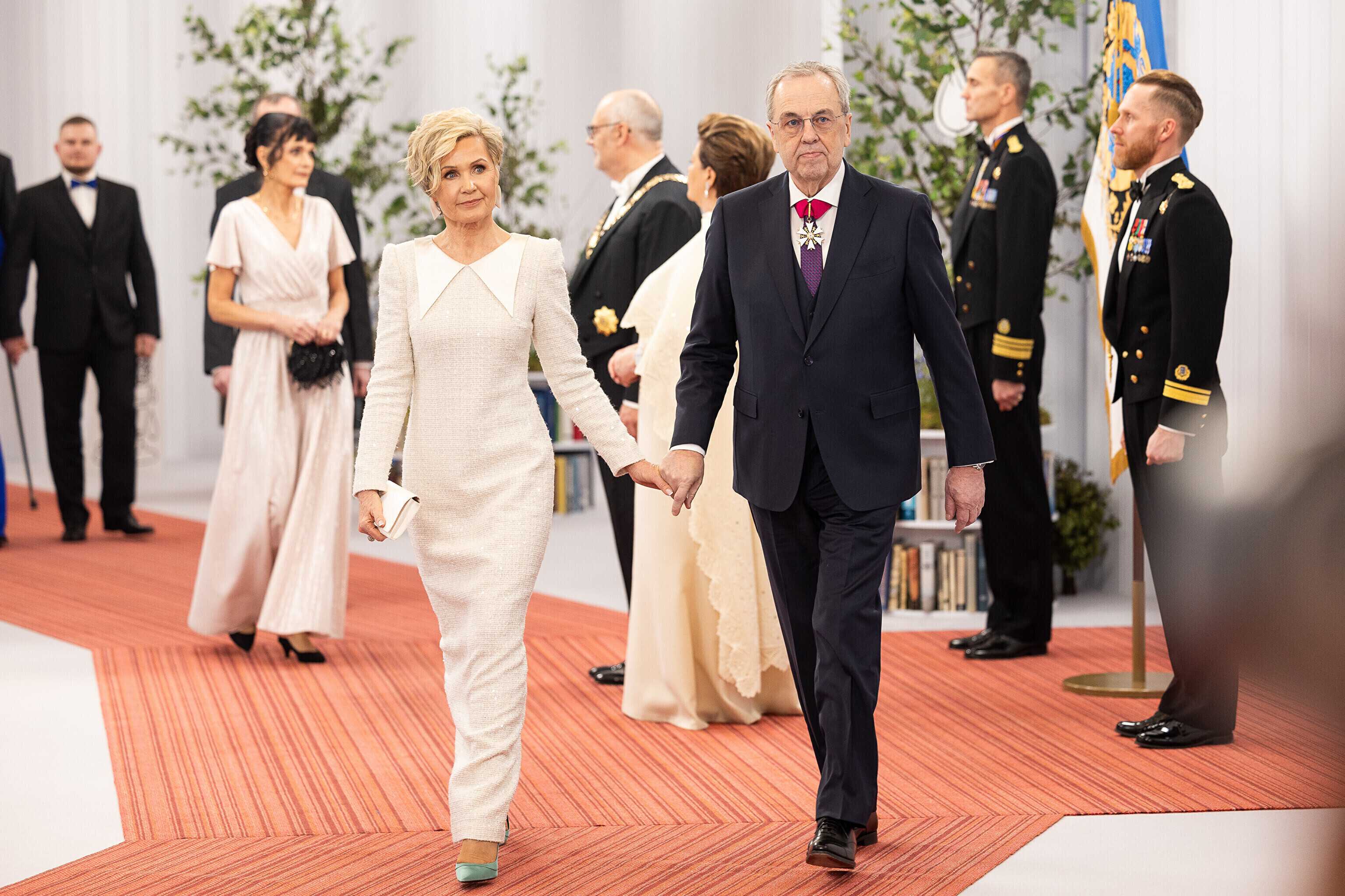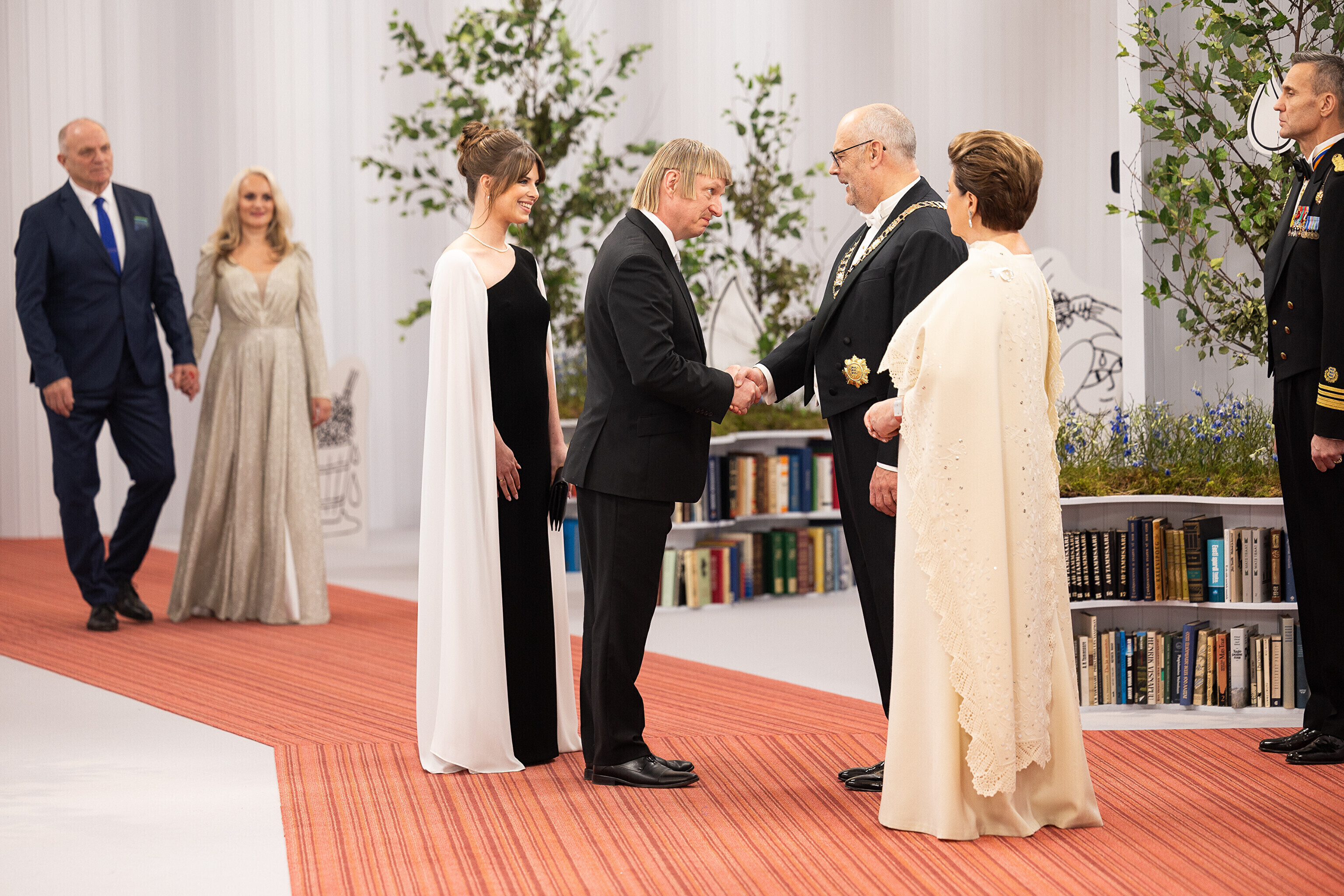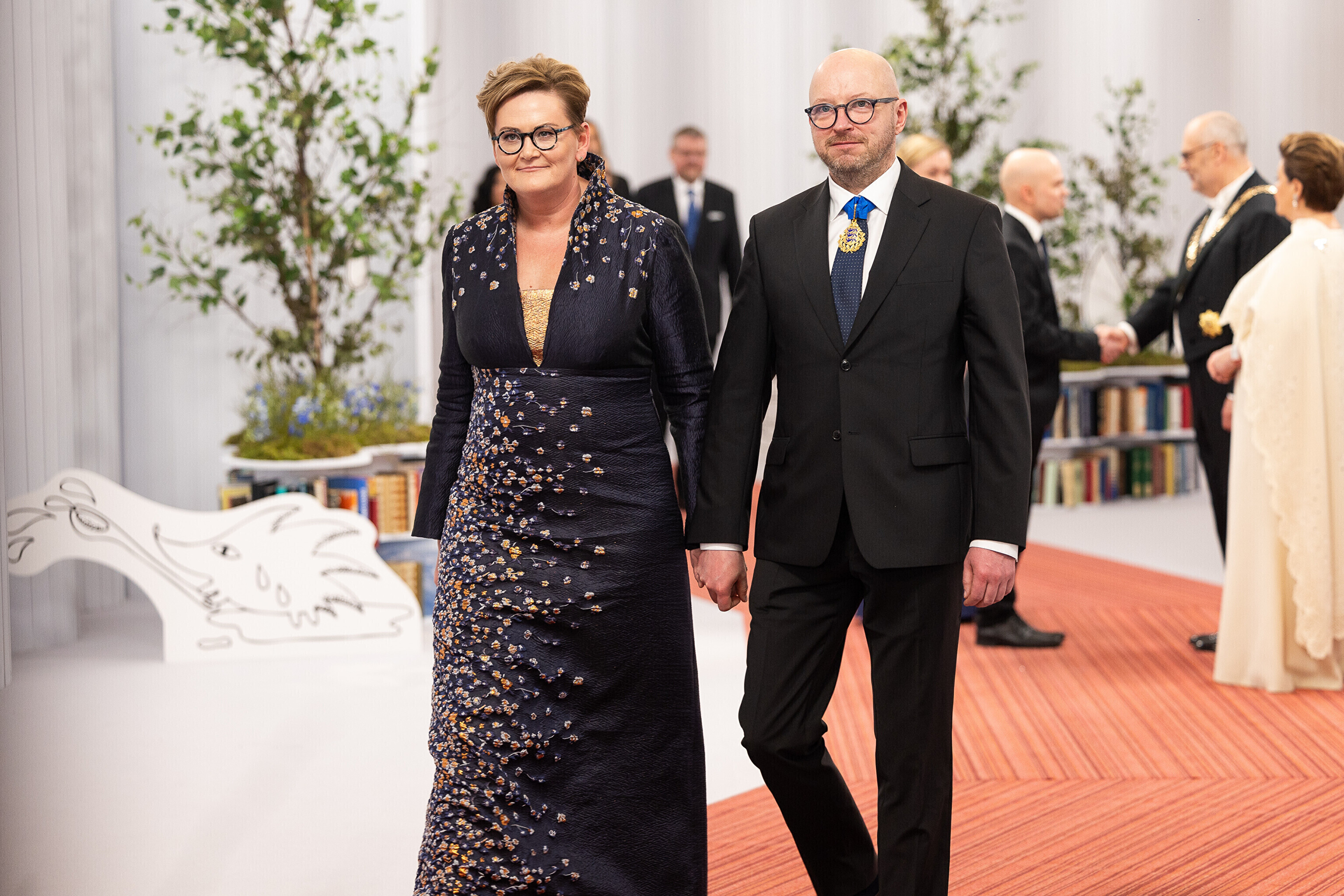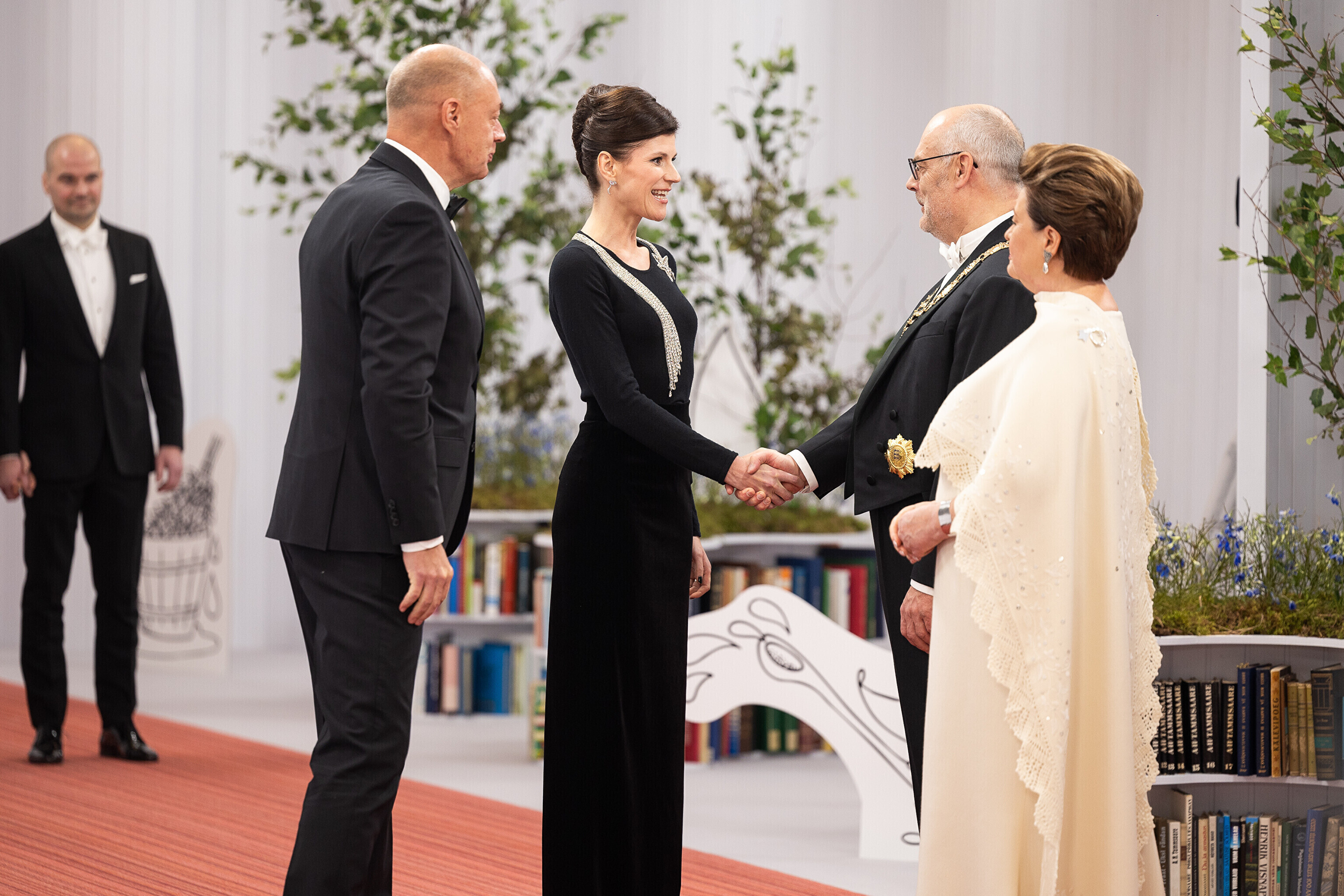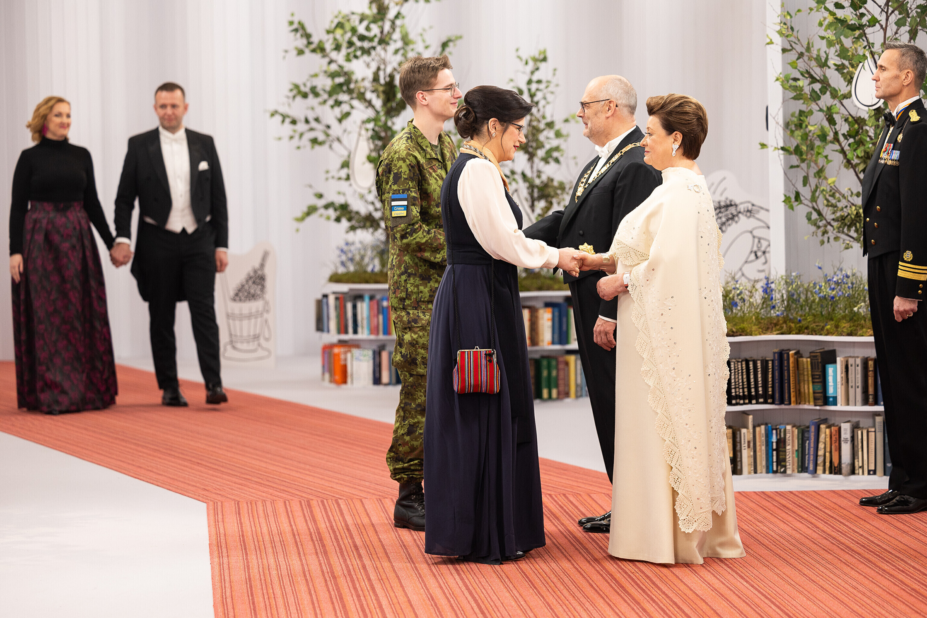 President Alar Karis ja proua Sirje Karis kutsusid Eesti Vabariigi 107. aastapäeva tähistamiseks Estoniasse vastuvõtule ligi 800 külalist. Galerii peomelust ja tervitustseremooniast täieneb jooksvalt.