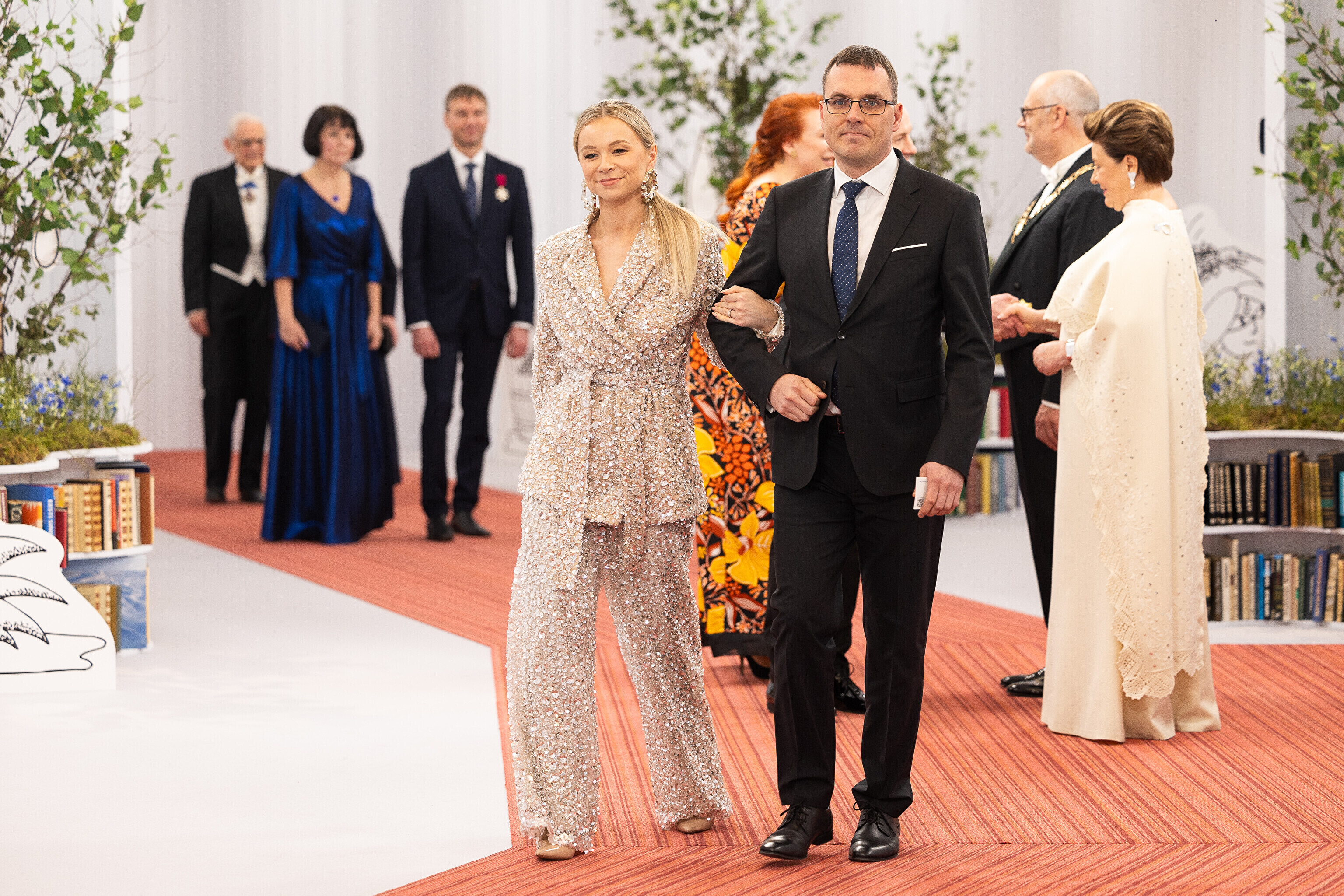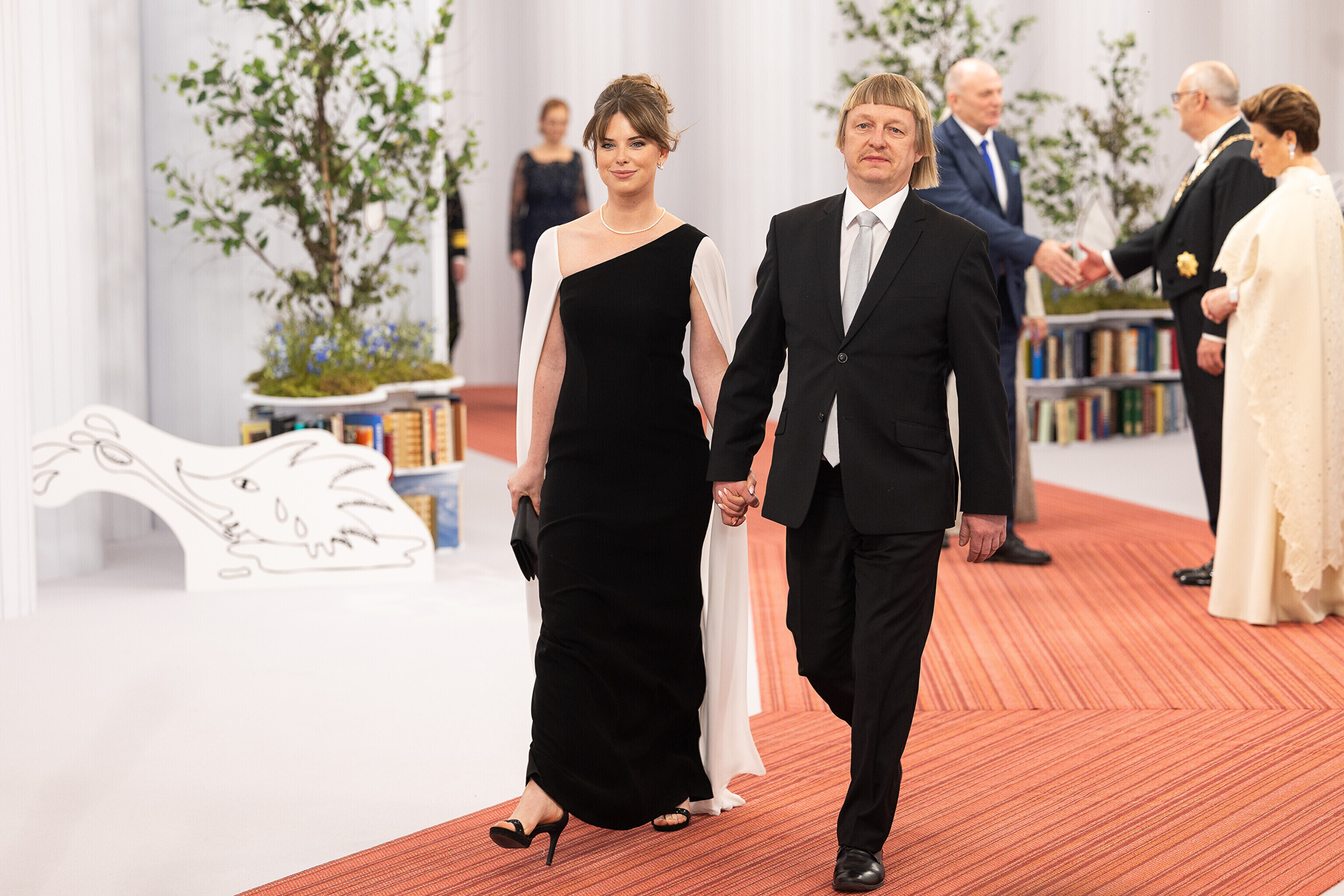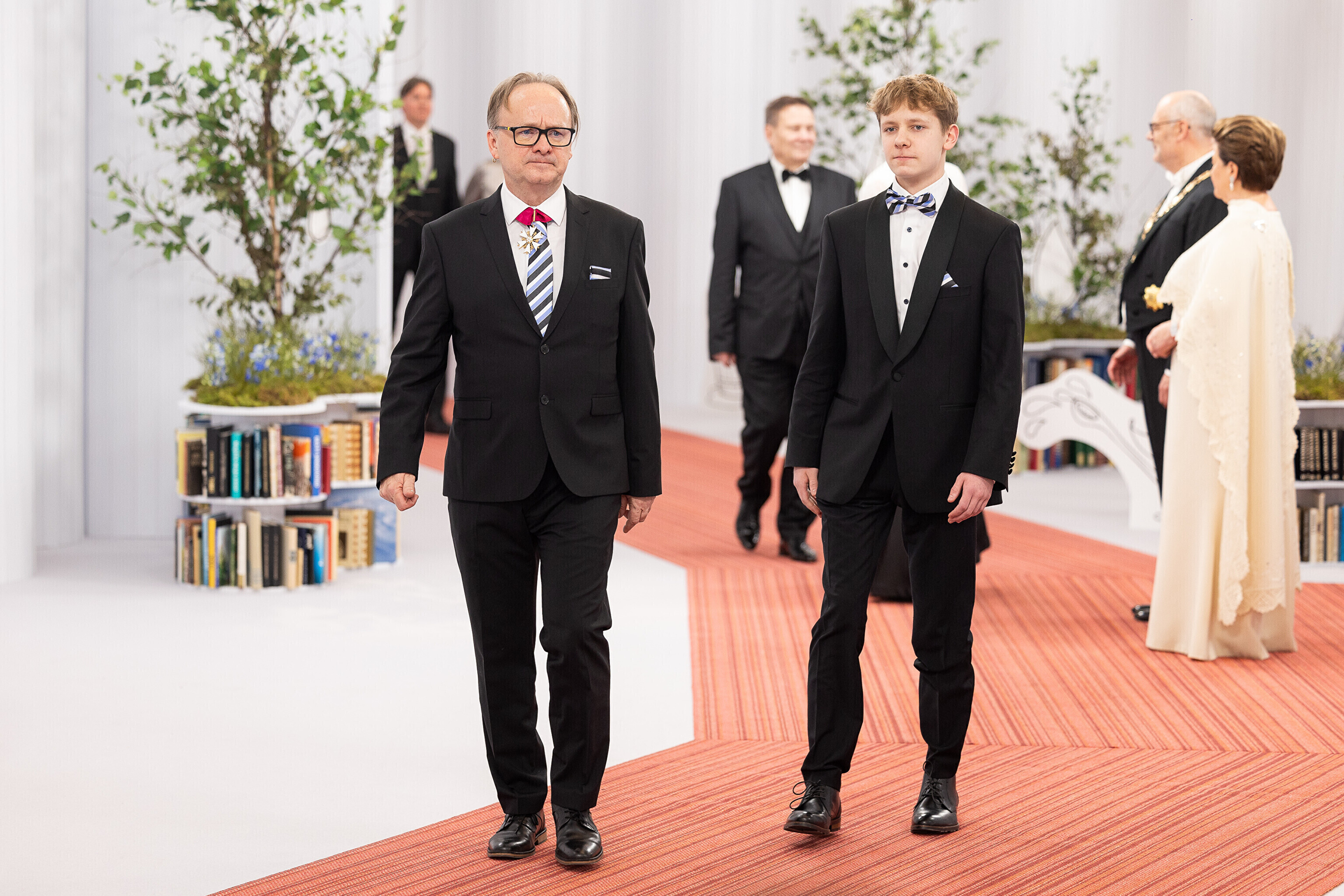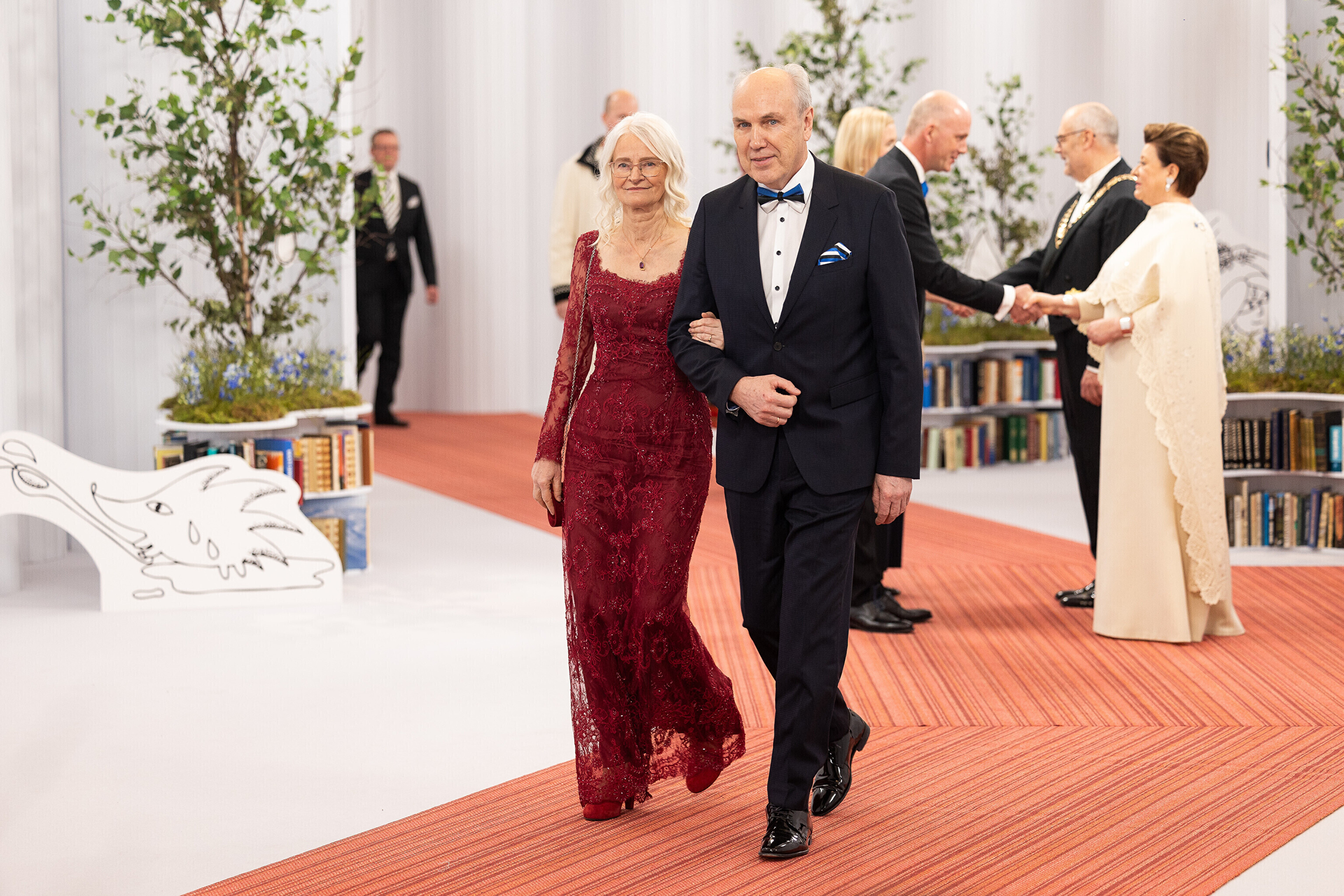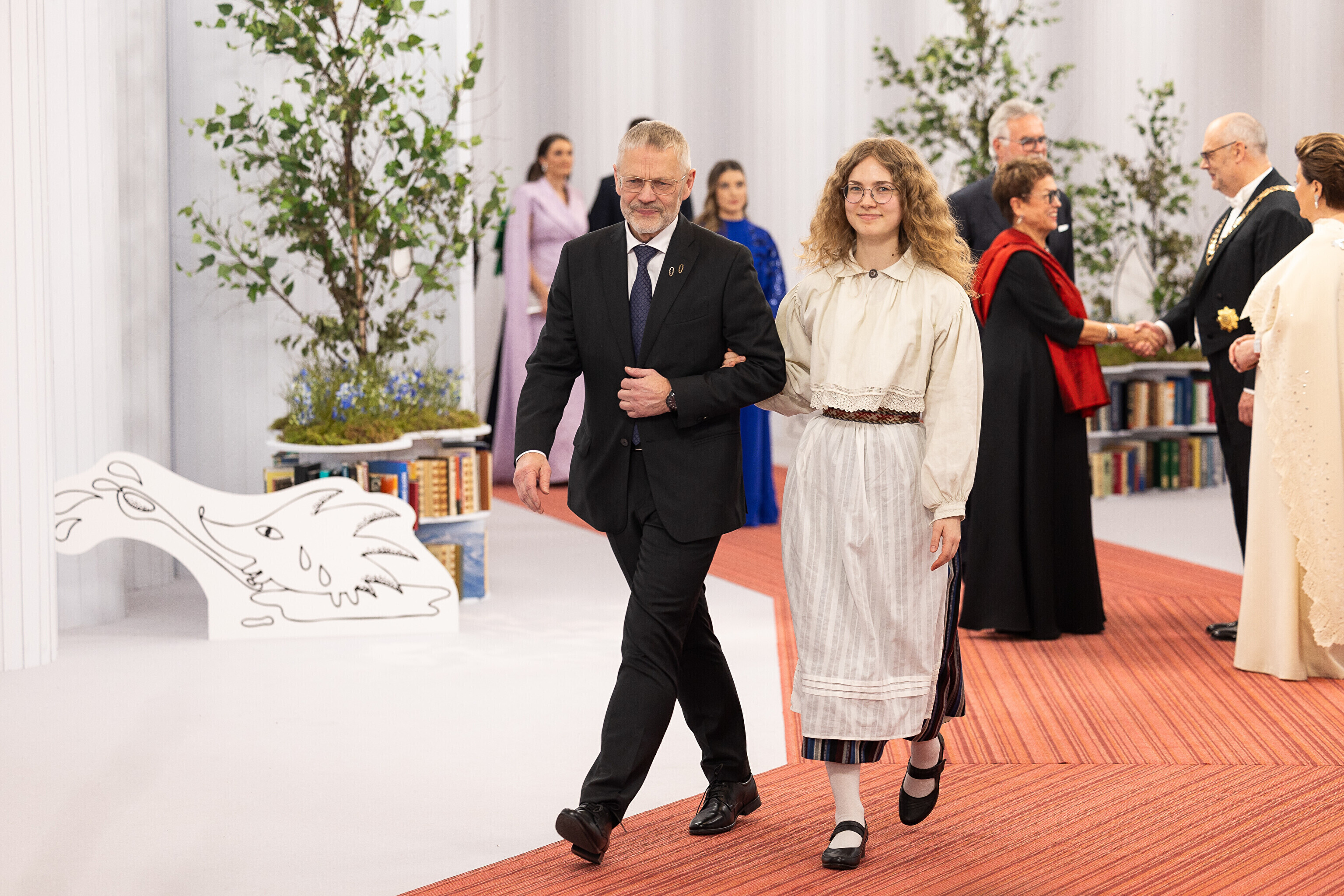 President Alar Karis ja proua Sirje Karis kutsusid Eesti Vabariigi 107. aastapäeva tähistamiseks Estoniasse vastuvõtule ligi 800 külalist. Galerii peomelust ja tervitustseremooniast täieneb jooksvalt.