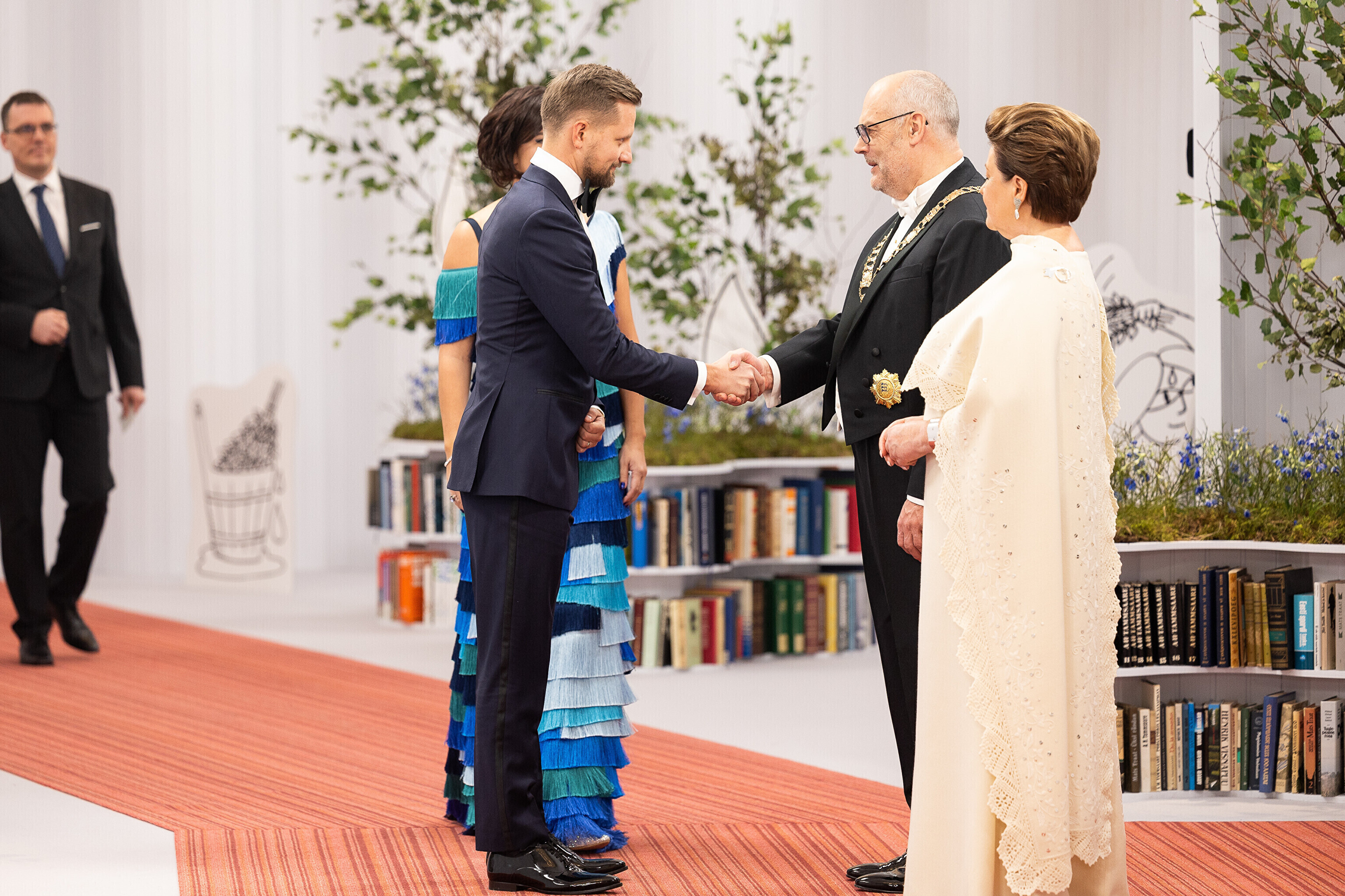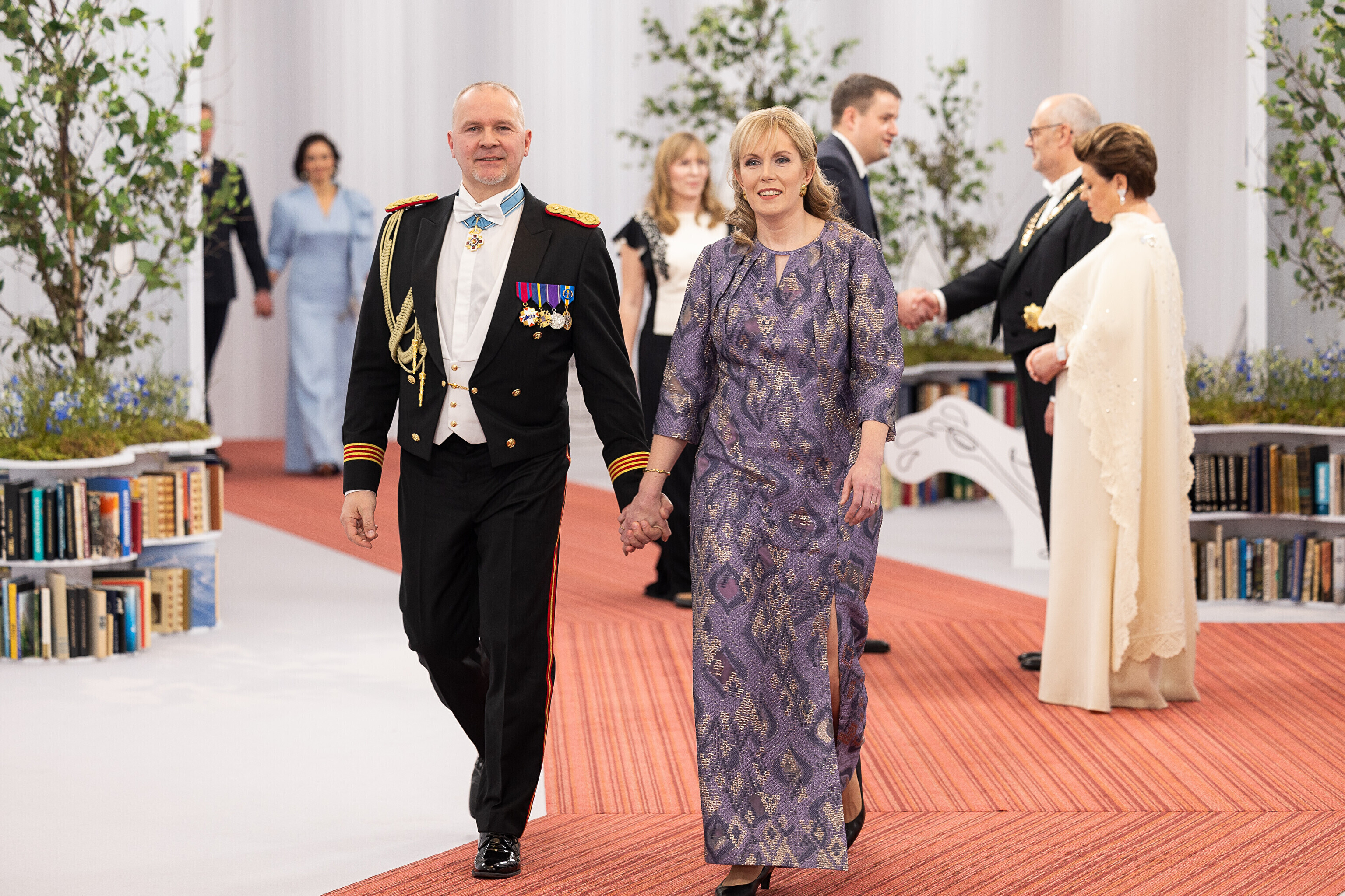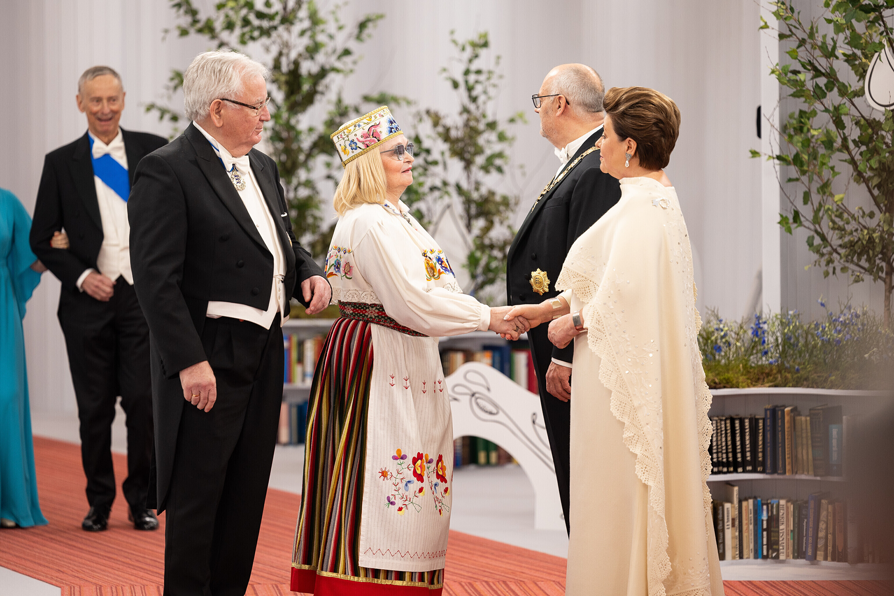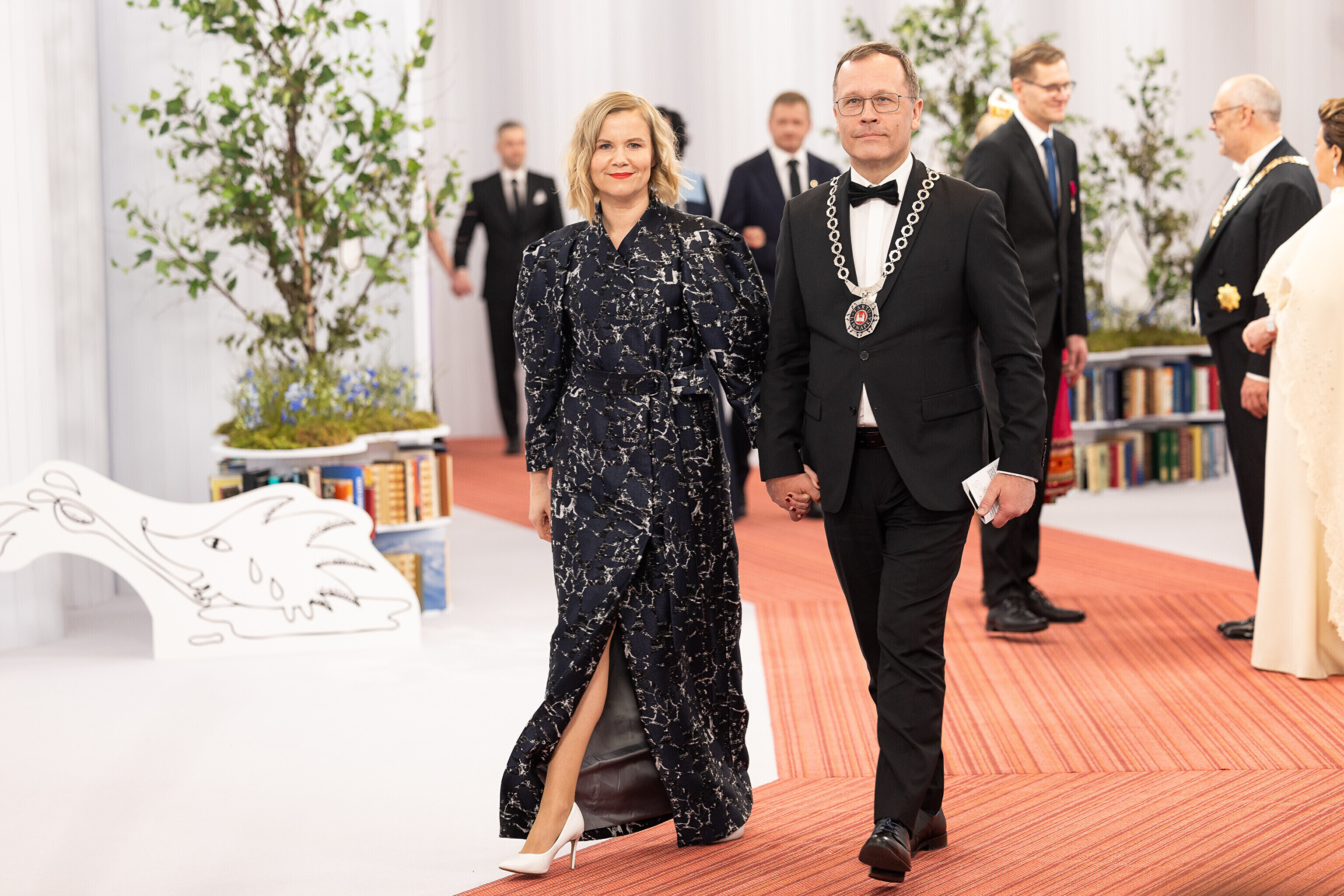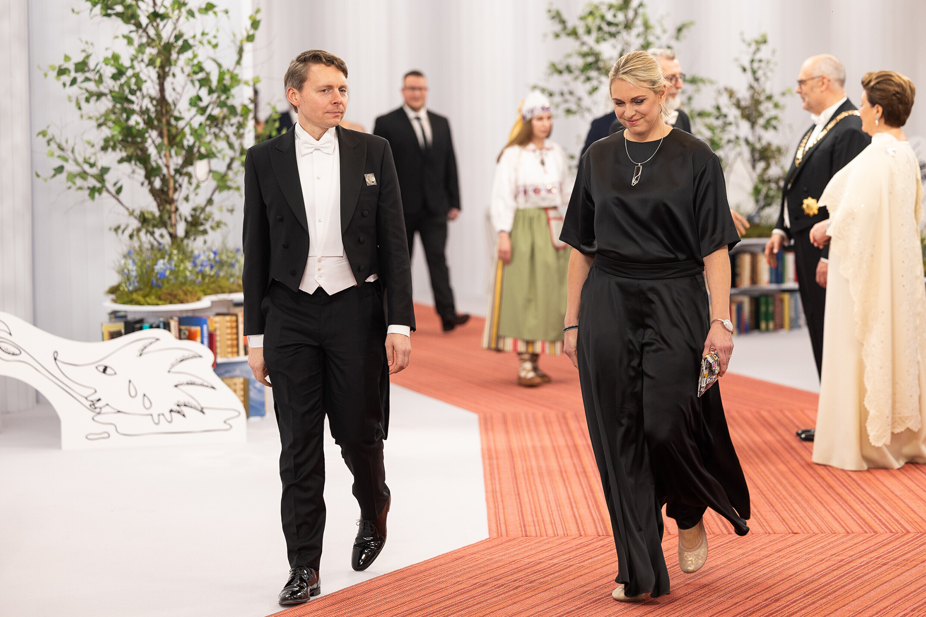 President Alar Karis ja proua Sirje Karis kutsusid Eesti Vabariigi 107. aastapäeva tähistamiseks Estoniasse vastuvõtule ligi 800 külalist. Galerii peomelust ja tervitustseremooniast täieneb jooksvalt.