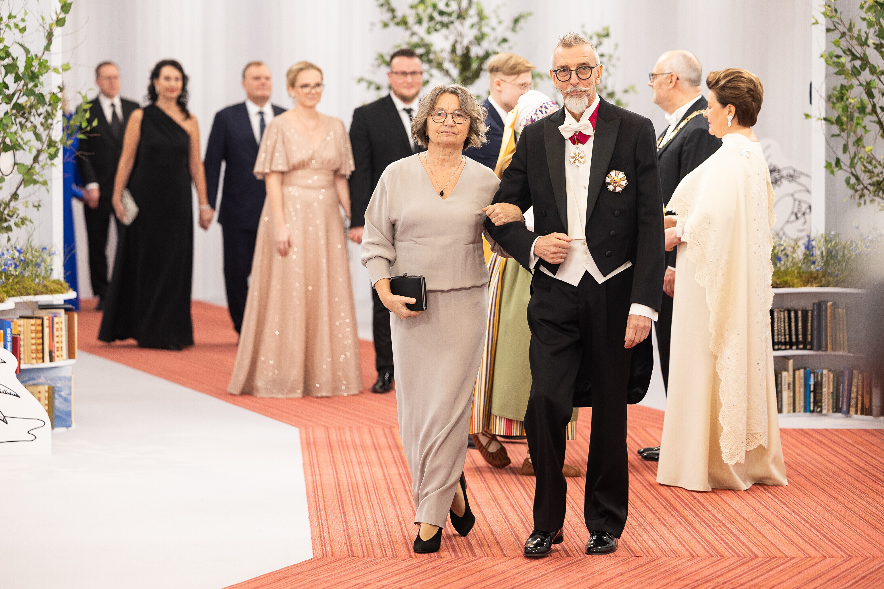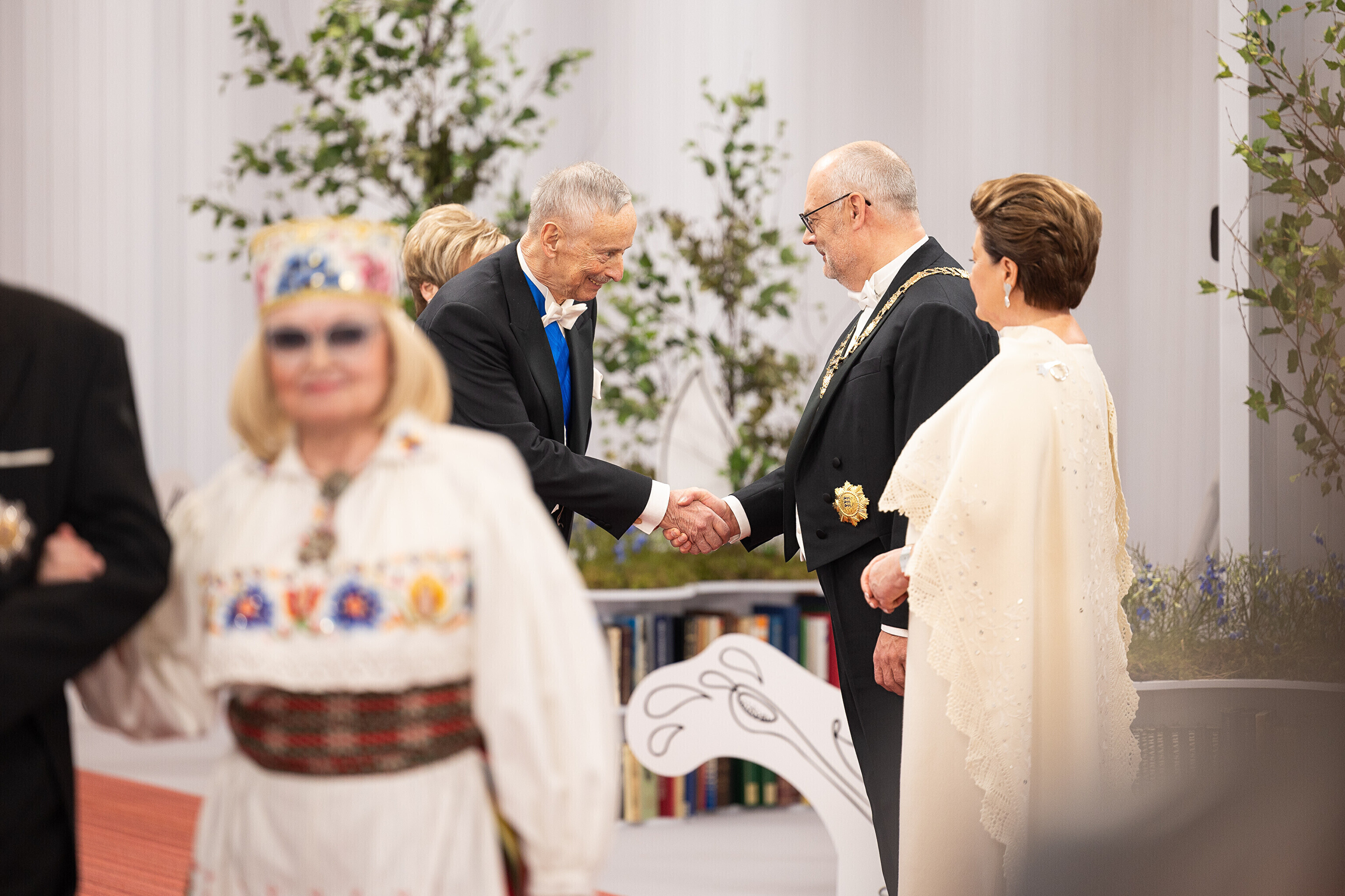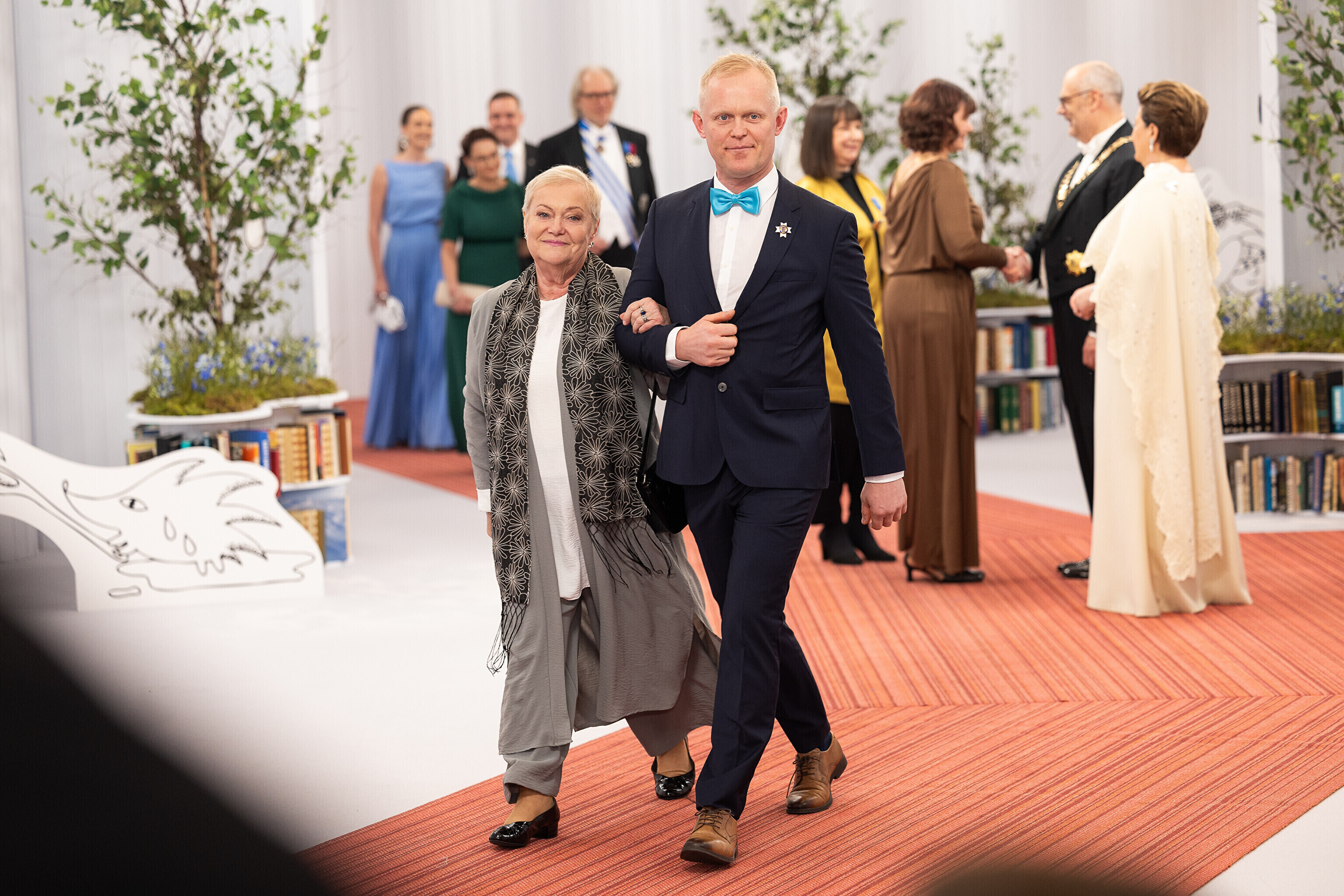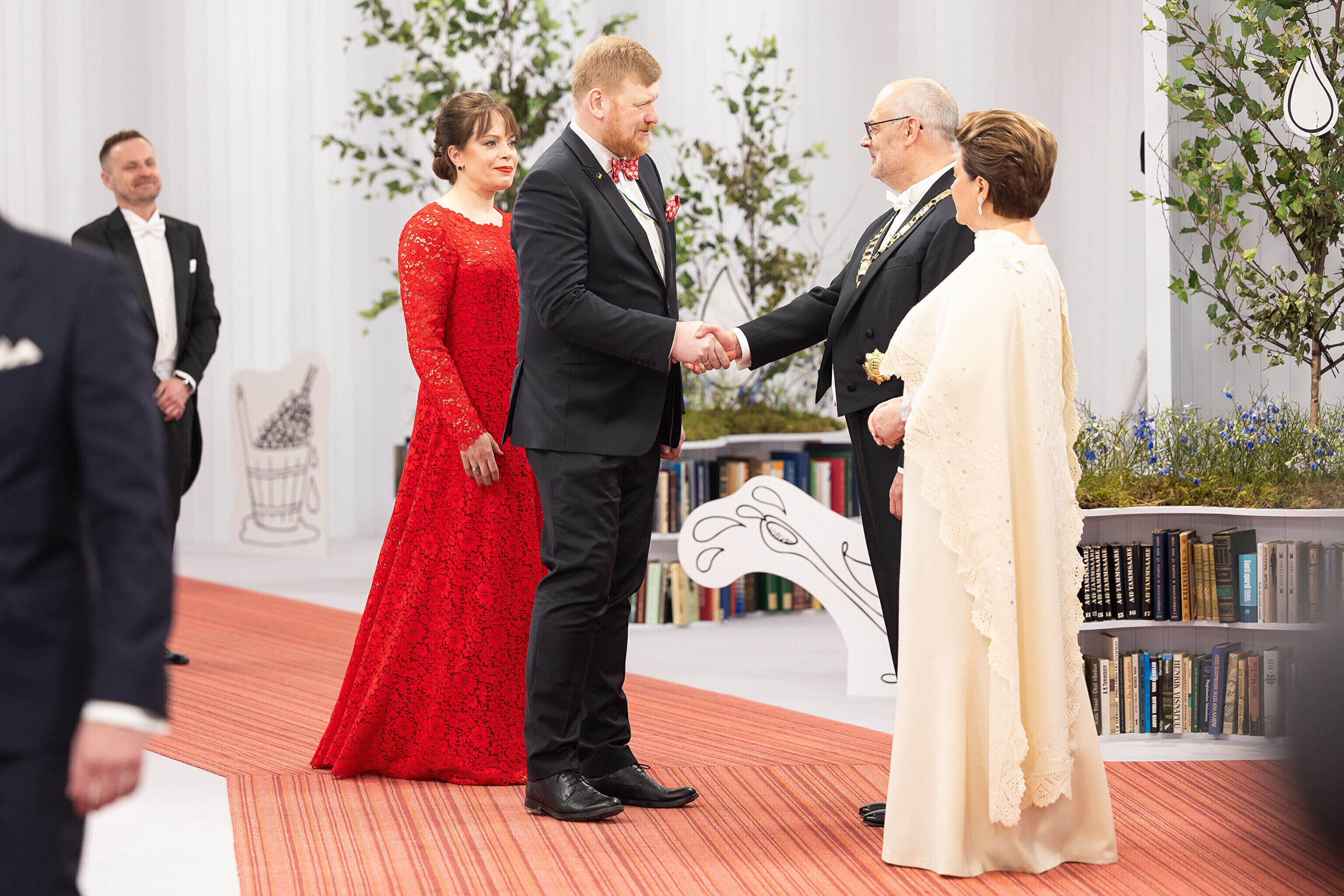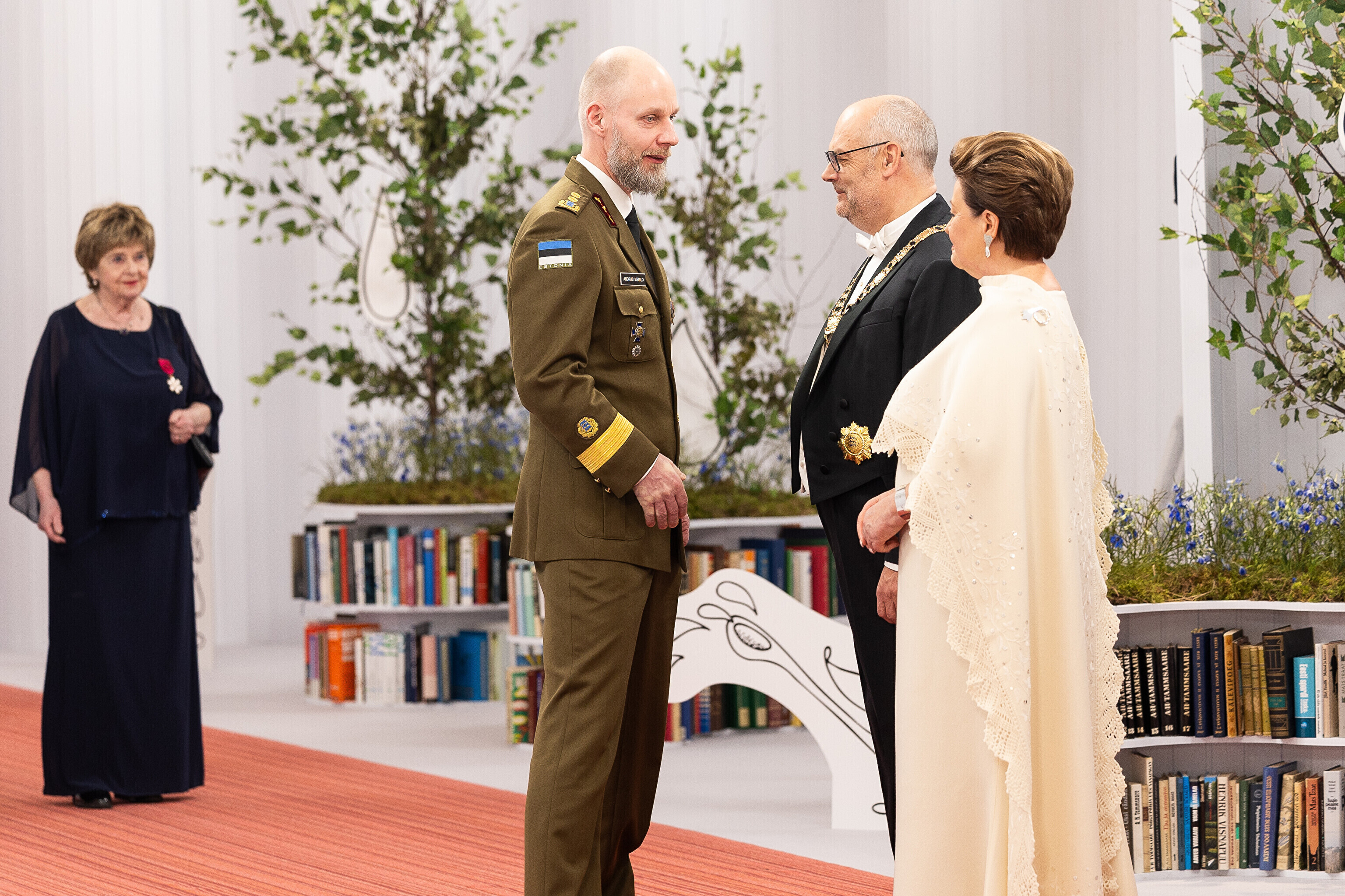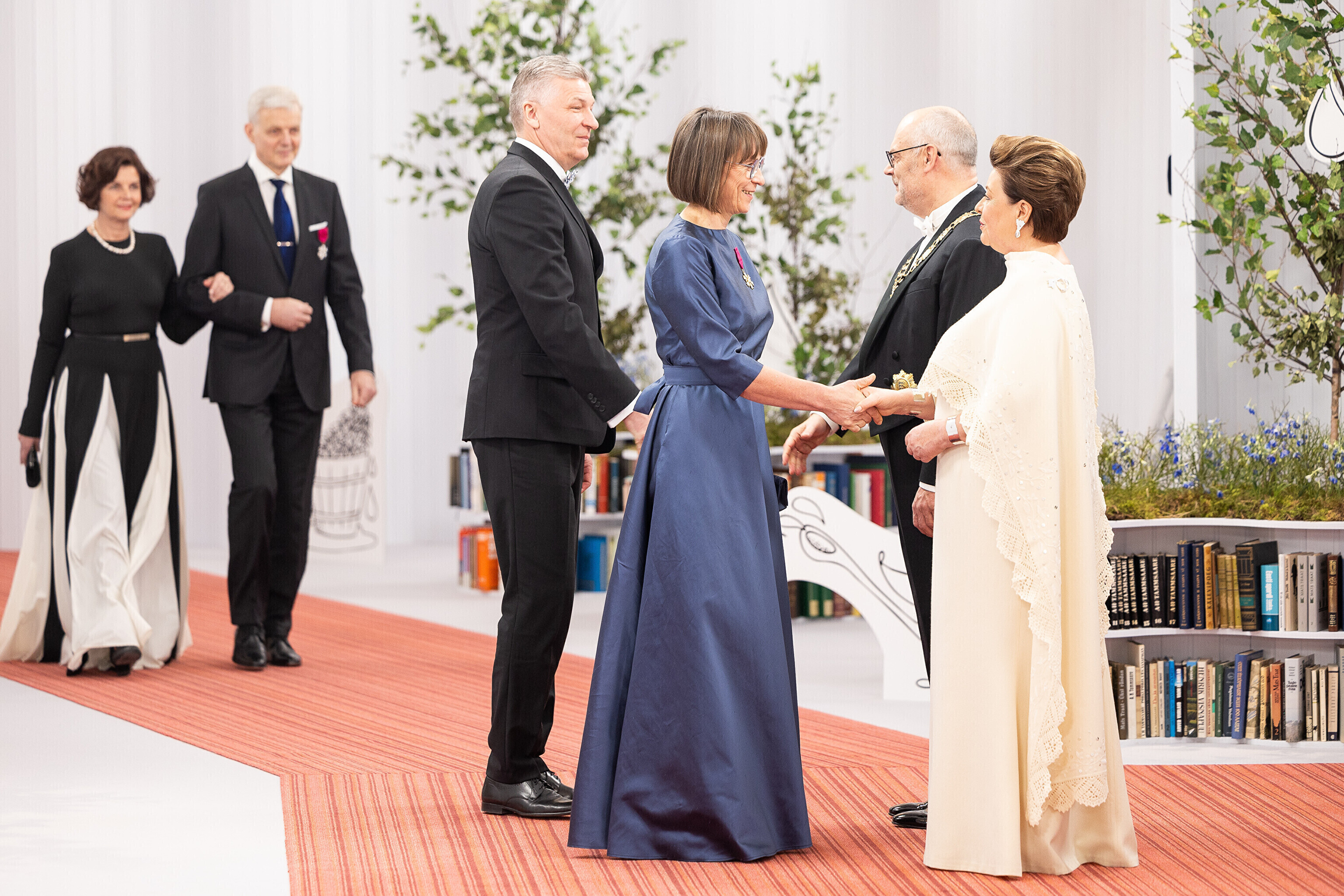President Alar Karis ja proua Sirje Karis kutsusid Eesti Vabariigi 107. aastapäeva tähistamiseks Estoniasse vastuvõtule ligi 800 külalist. Galerii peomelust ja tervitustseremooniast täieneb jooksvalt.
