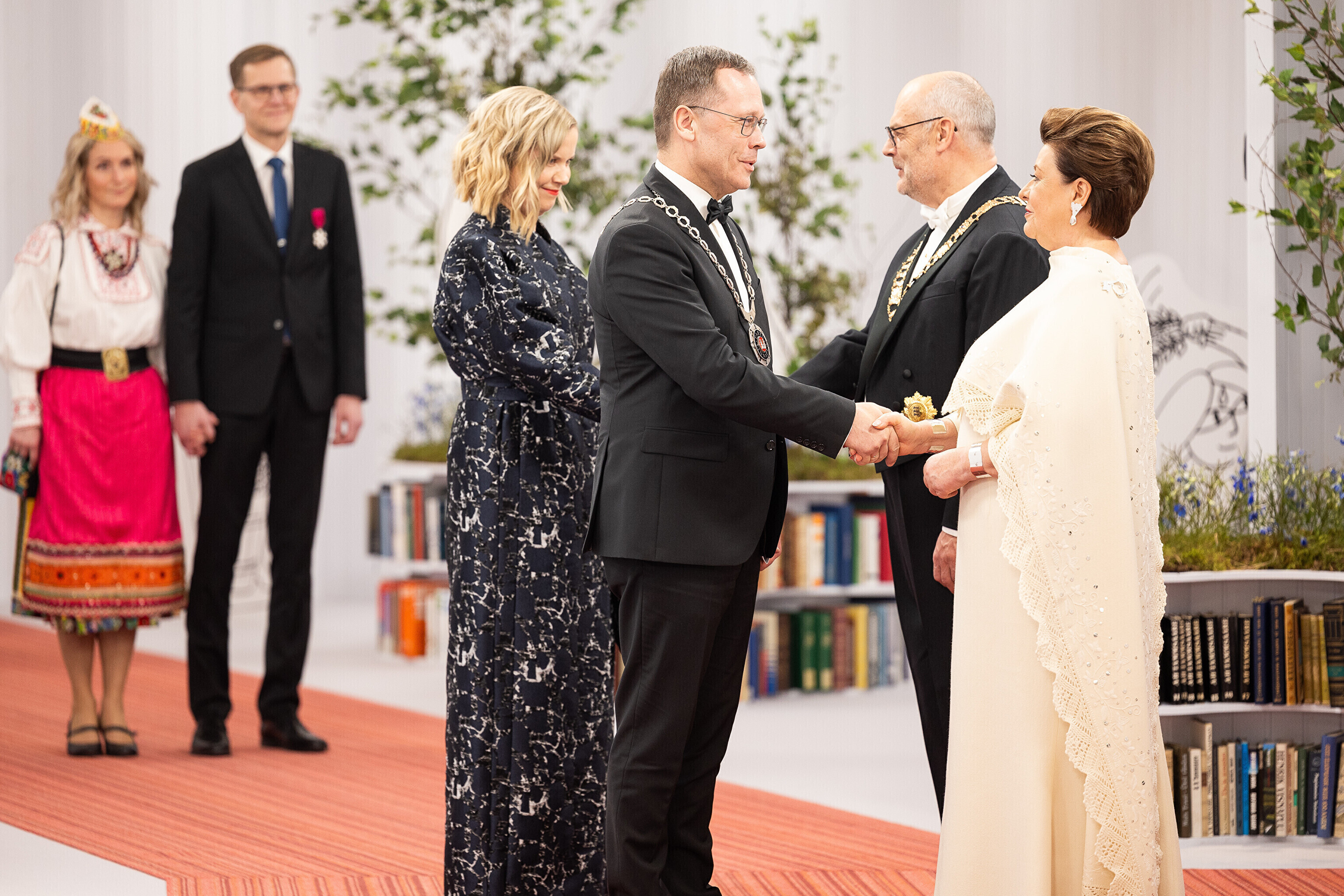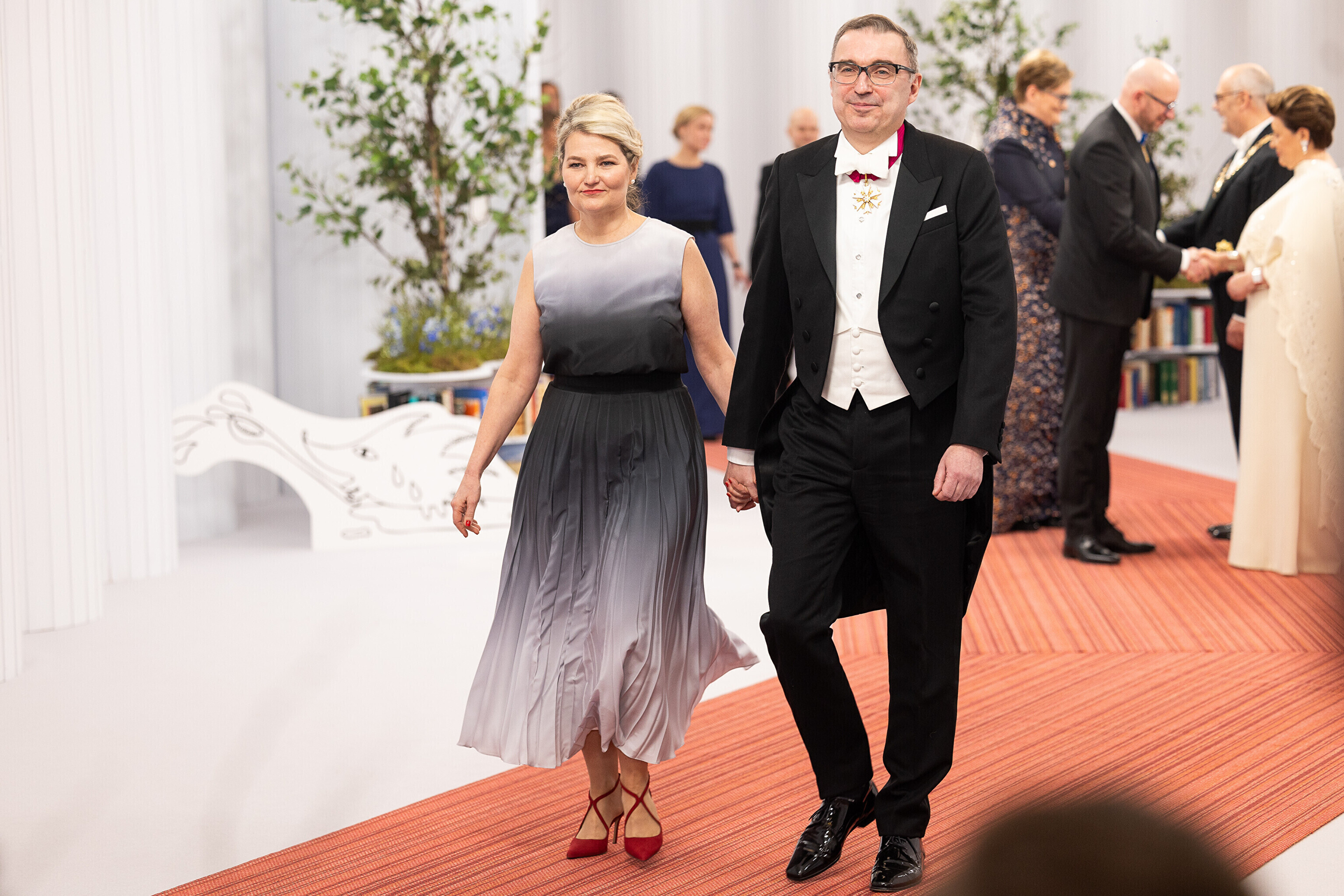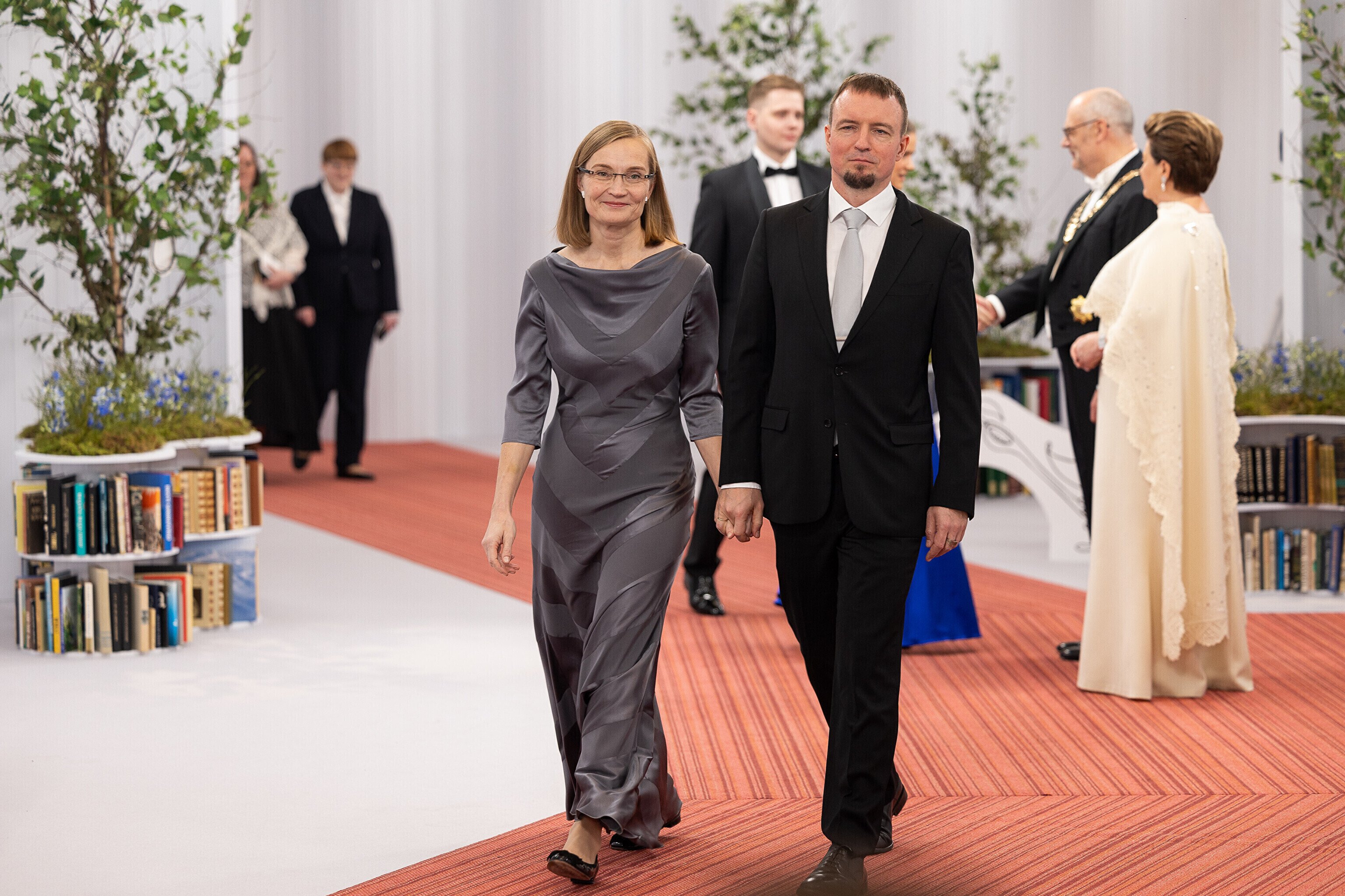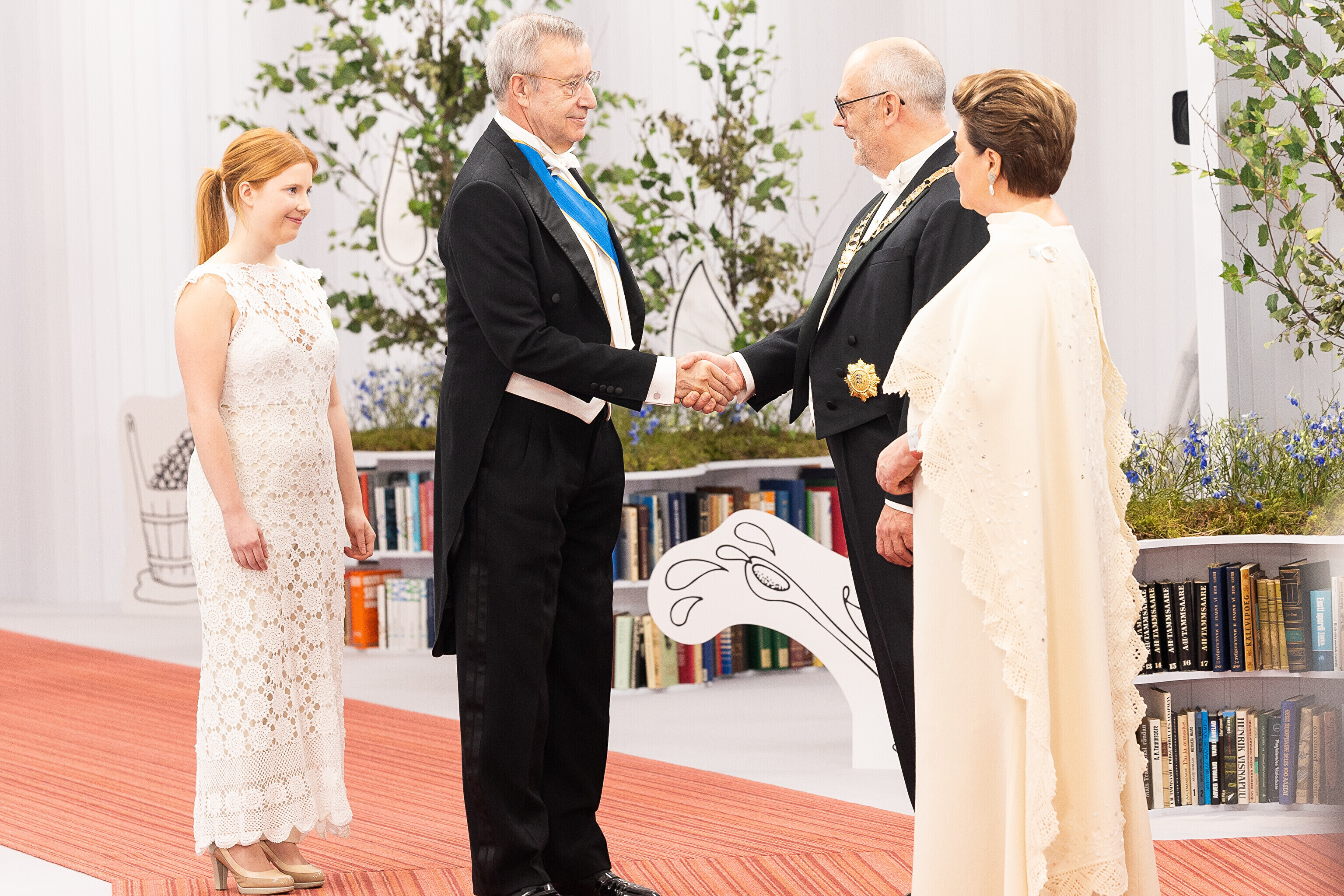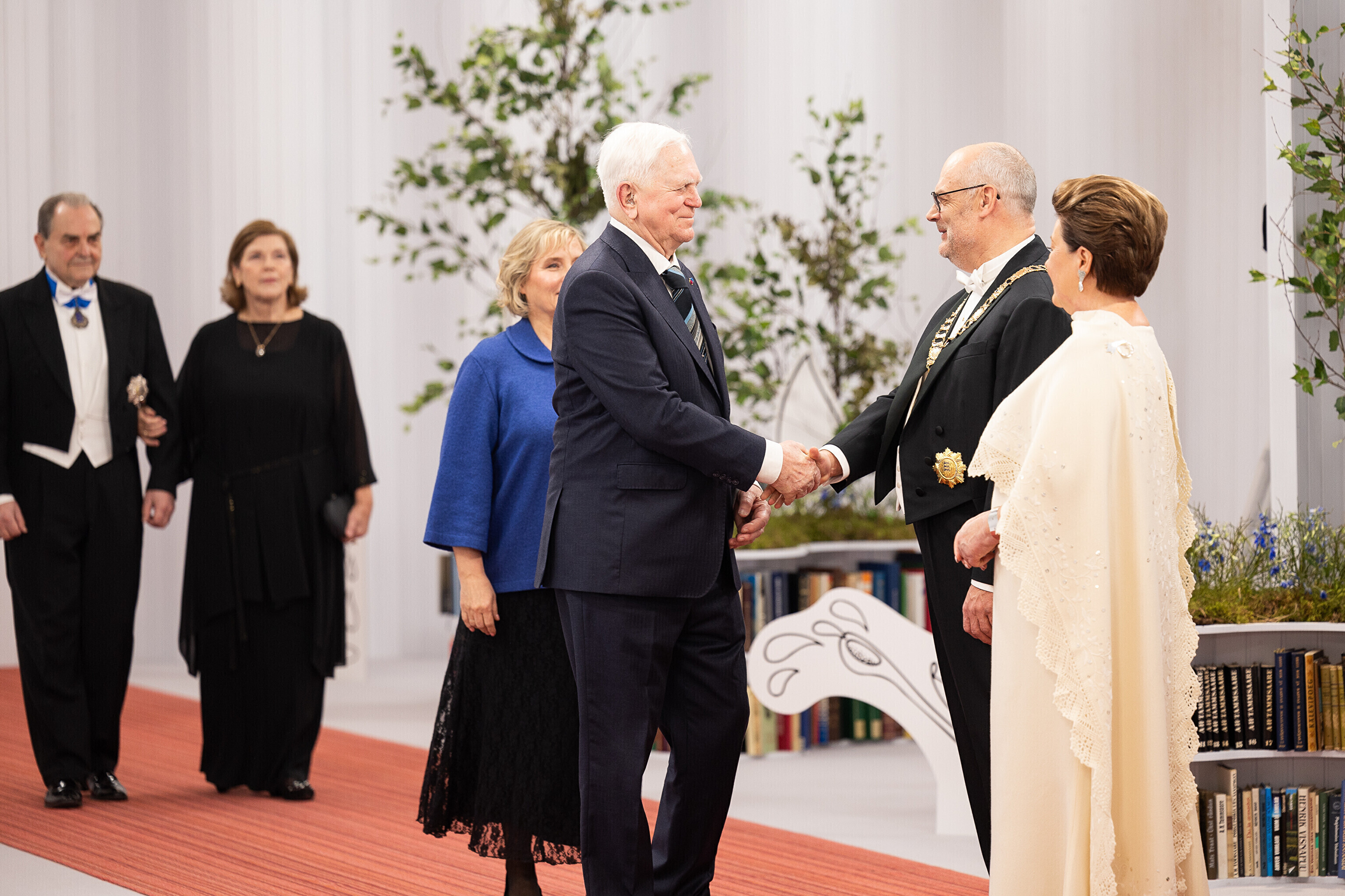 President Alar Karis ja proua Sirje Karis kutsusid Eesti Vabariigi 107. aastapäeva tähistamiseks Estoniasse vastuvõtule ligi 800 külalist. Galerii peomelust ja tervitustseremooniast täieneb jooksvalt.