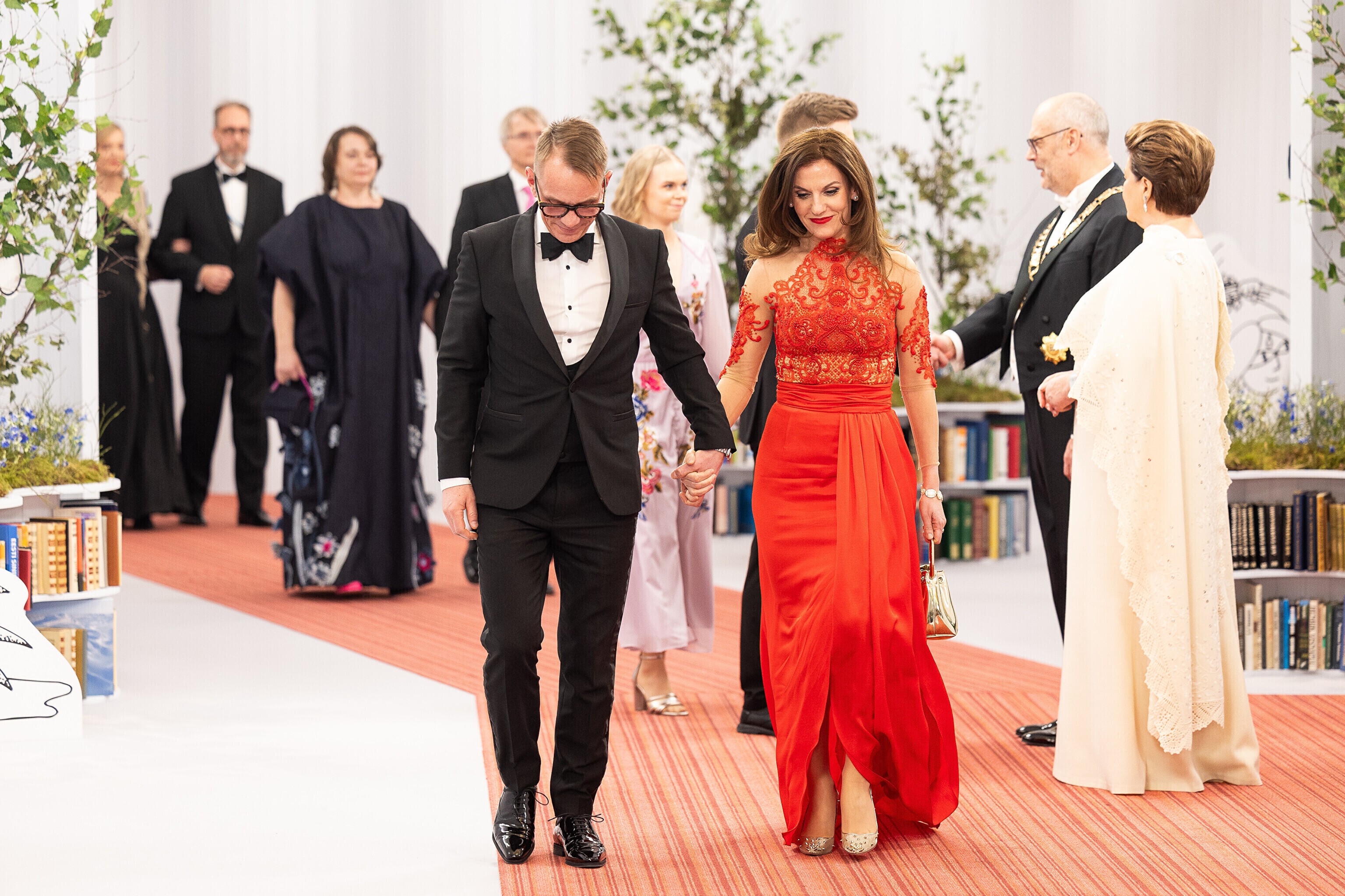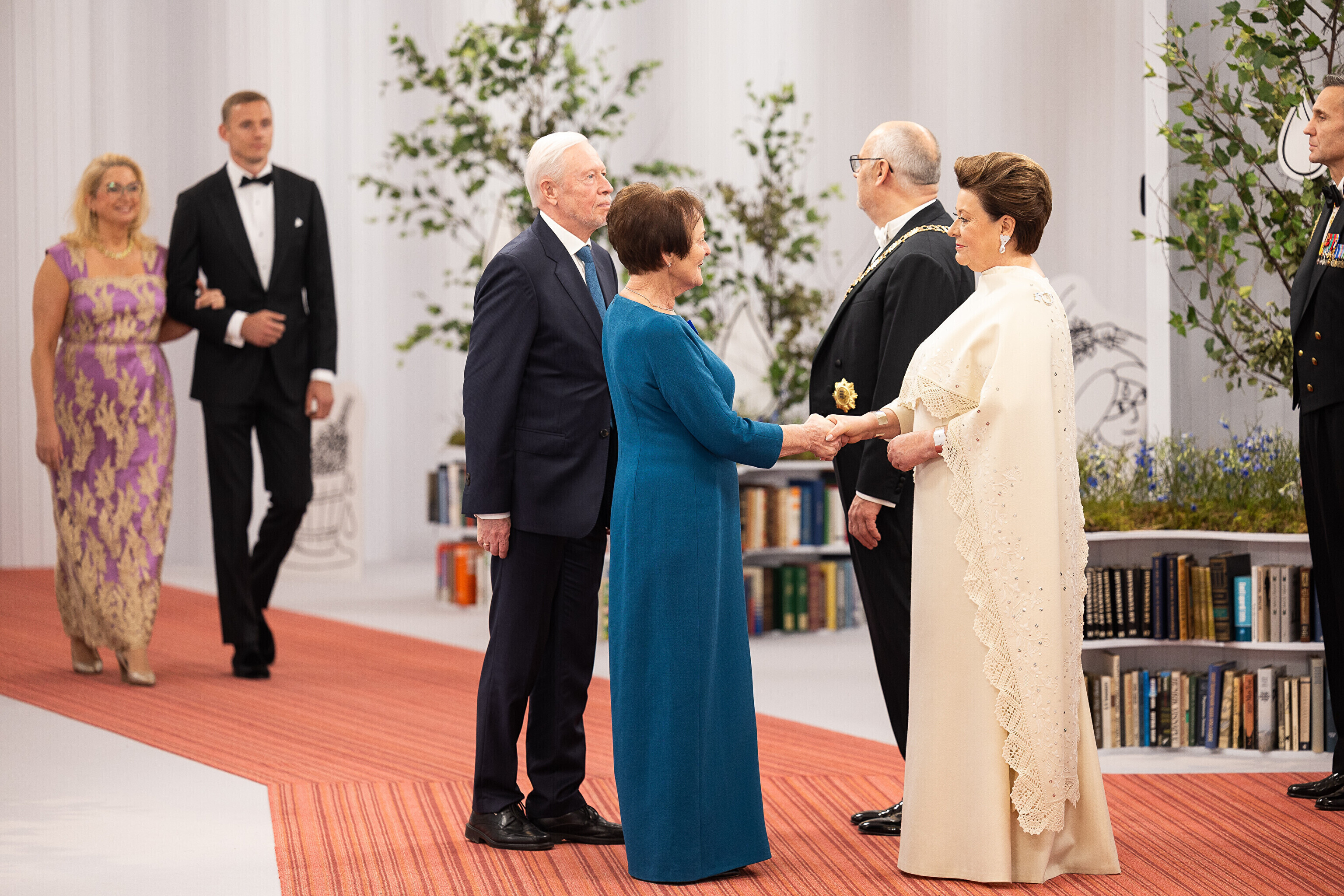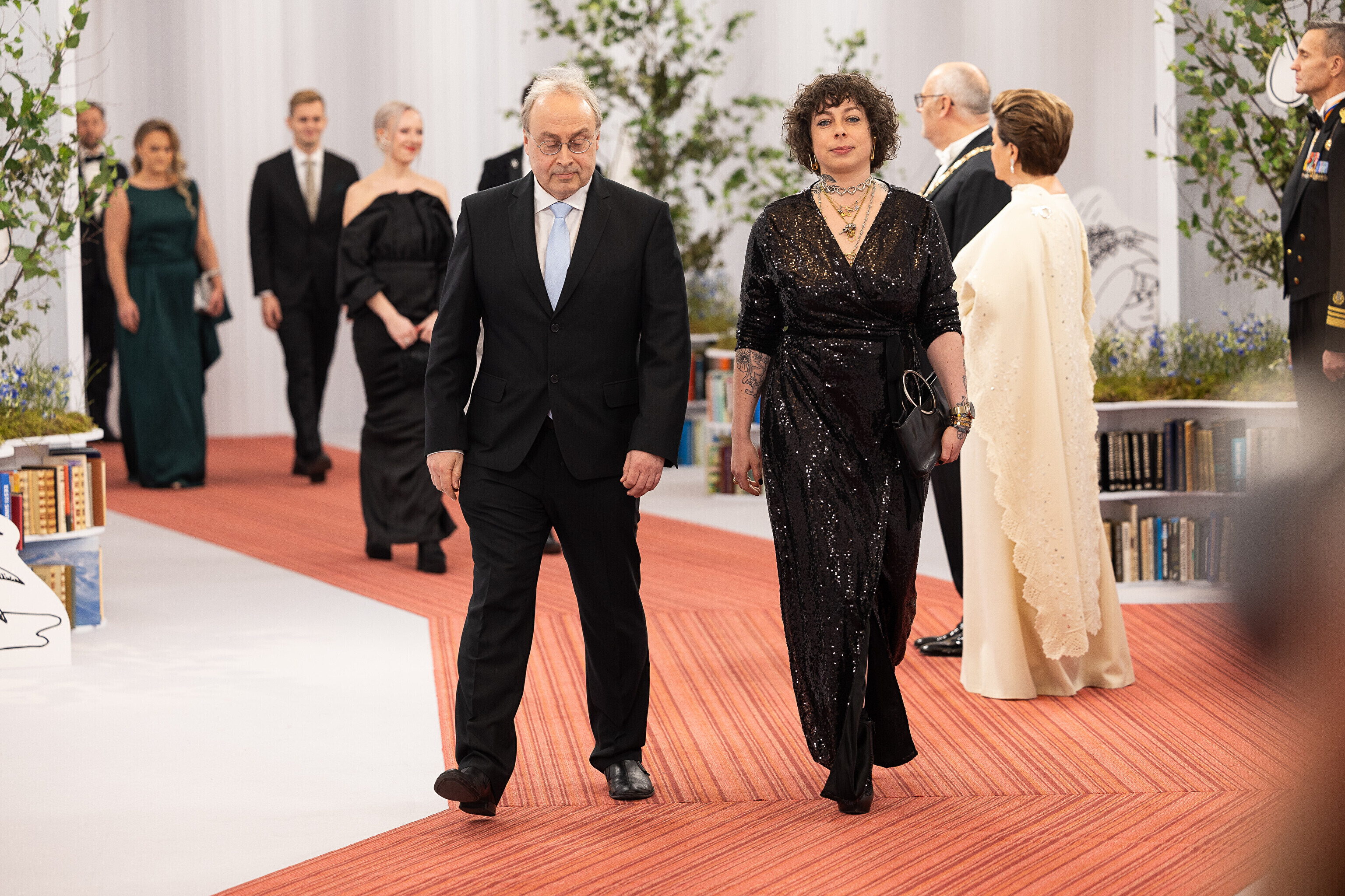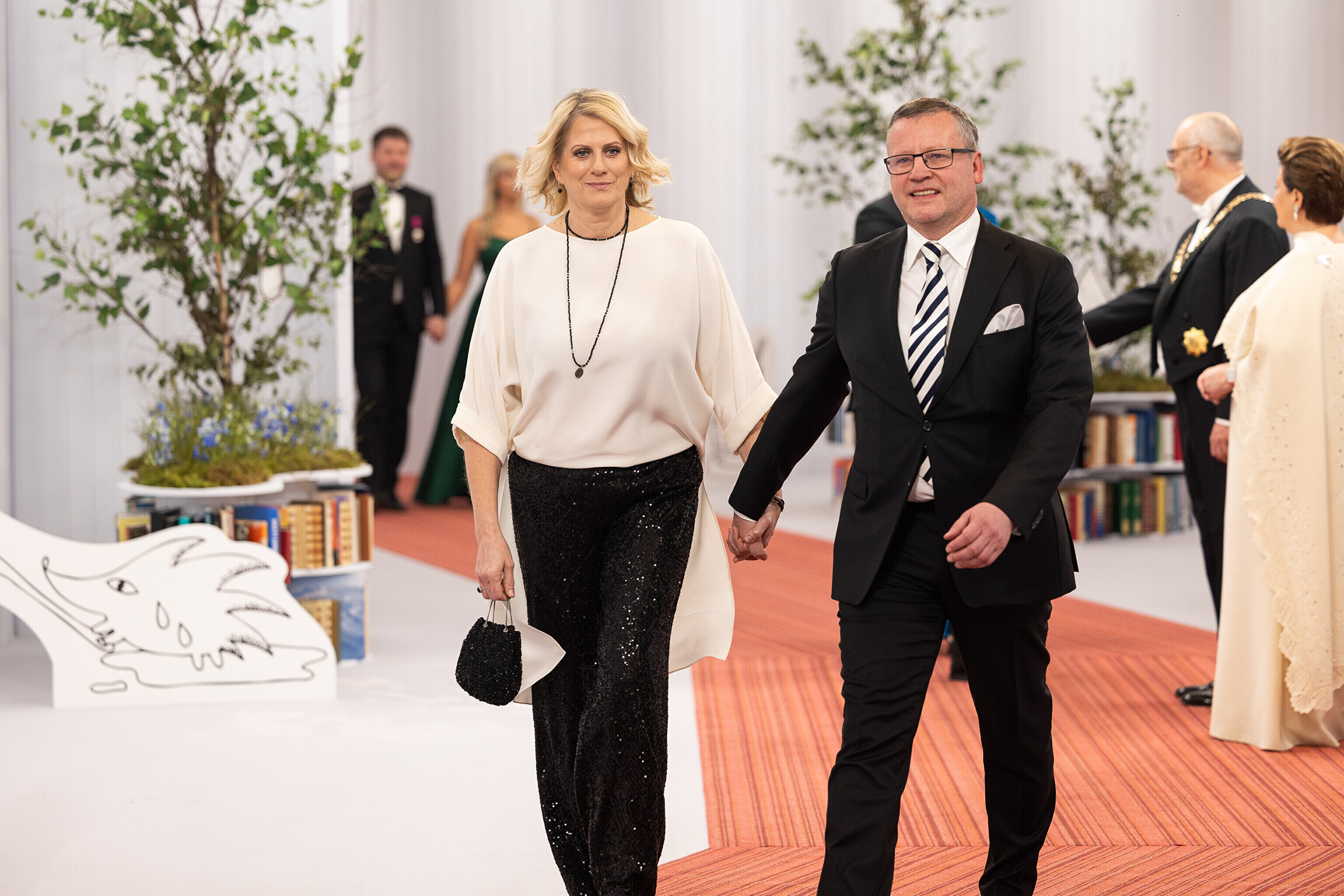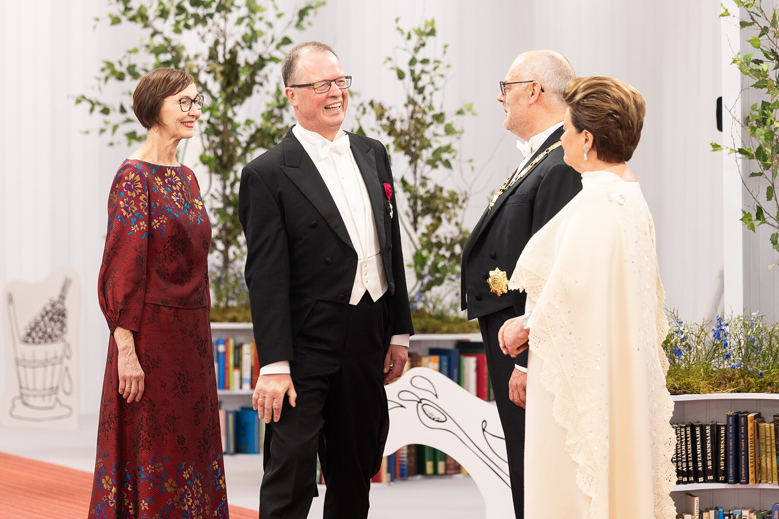 President Alar Karis ja proua Sirje Karis kutsusid Eesti Vabariigi 107. aastapäeva tähistamiseks Estoniasse vastuvõtule ligi 800 külalist. Galerii peomelust ja tervitustseremooniast täieneb jooksvalt.