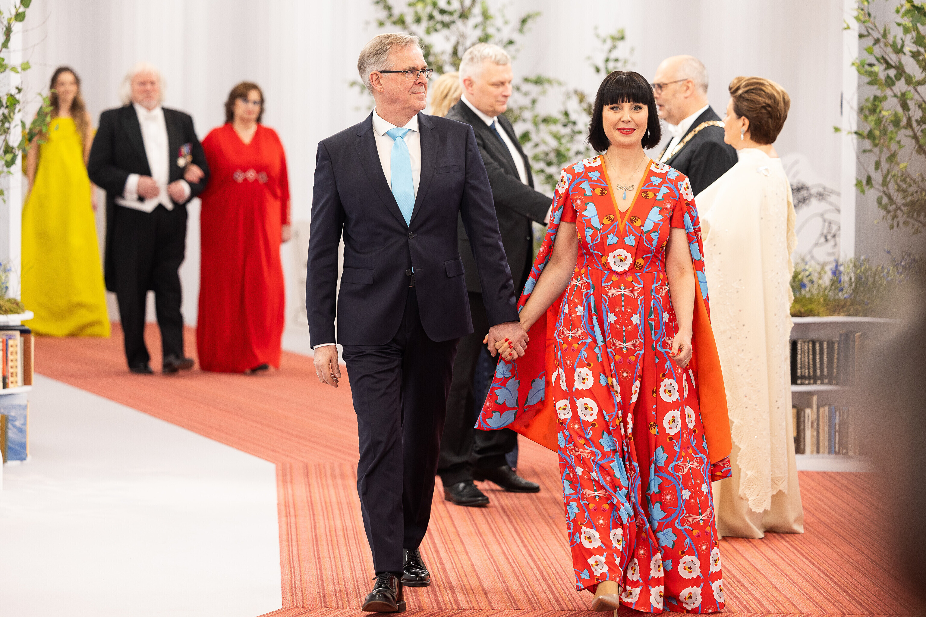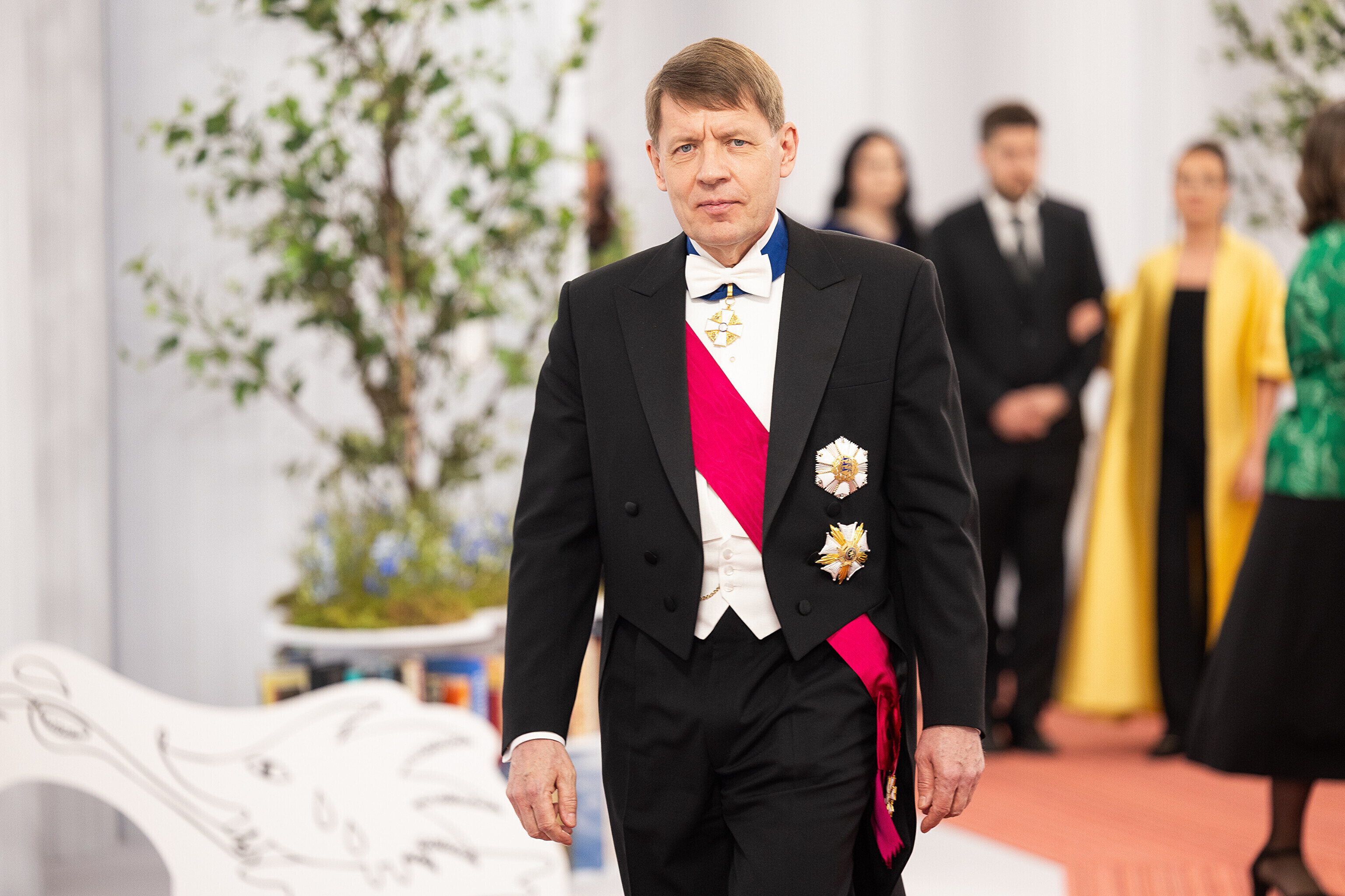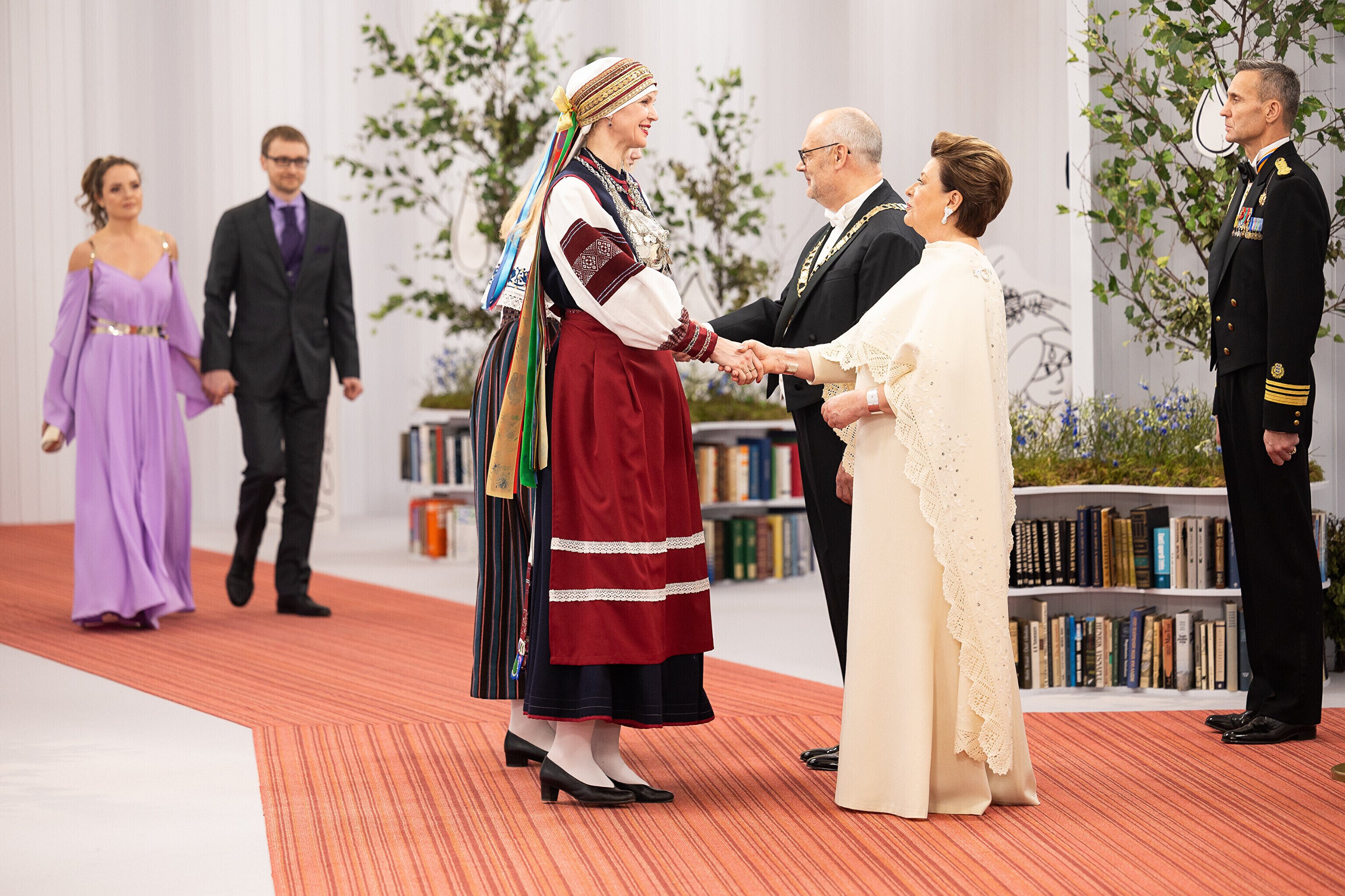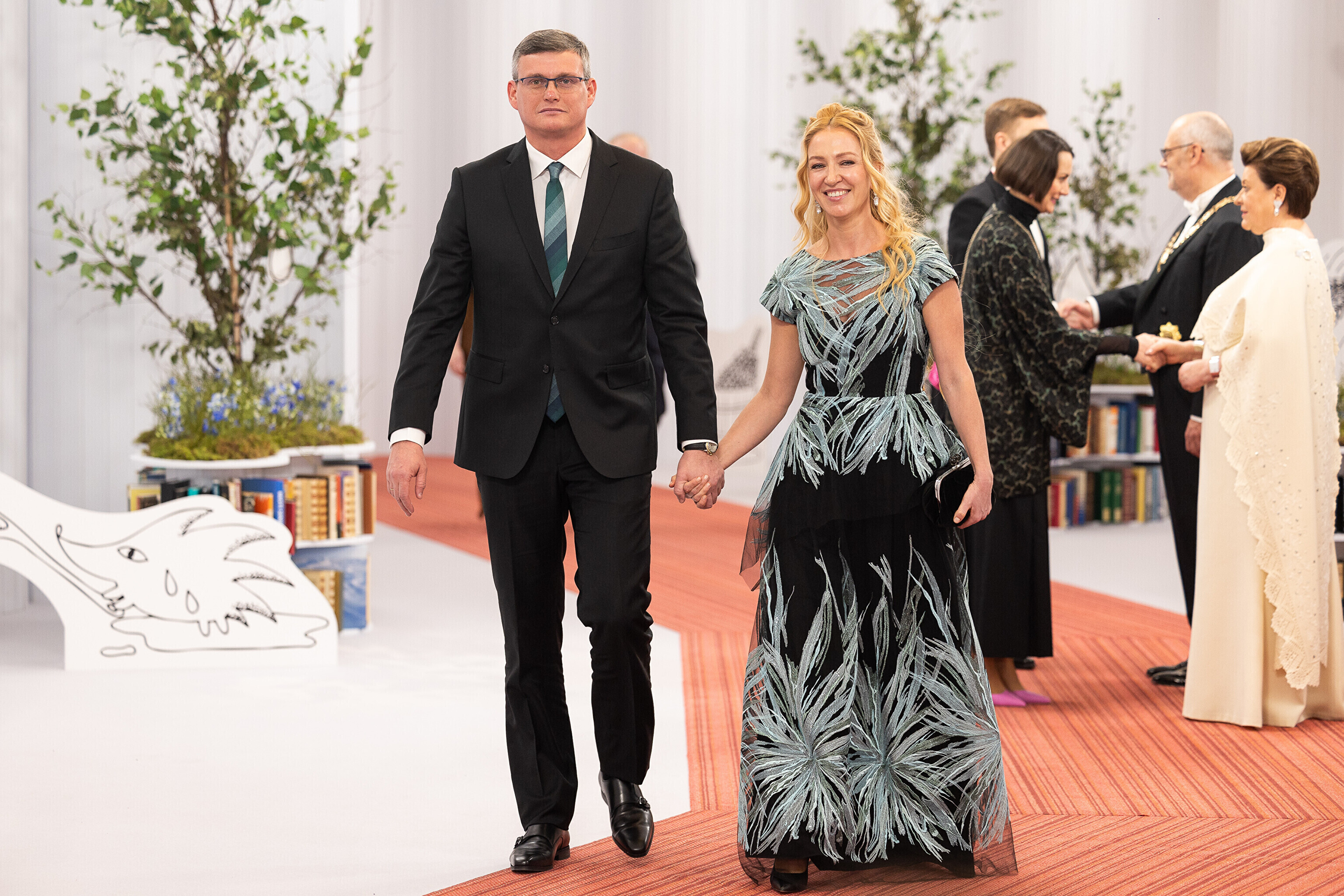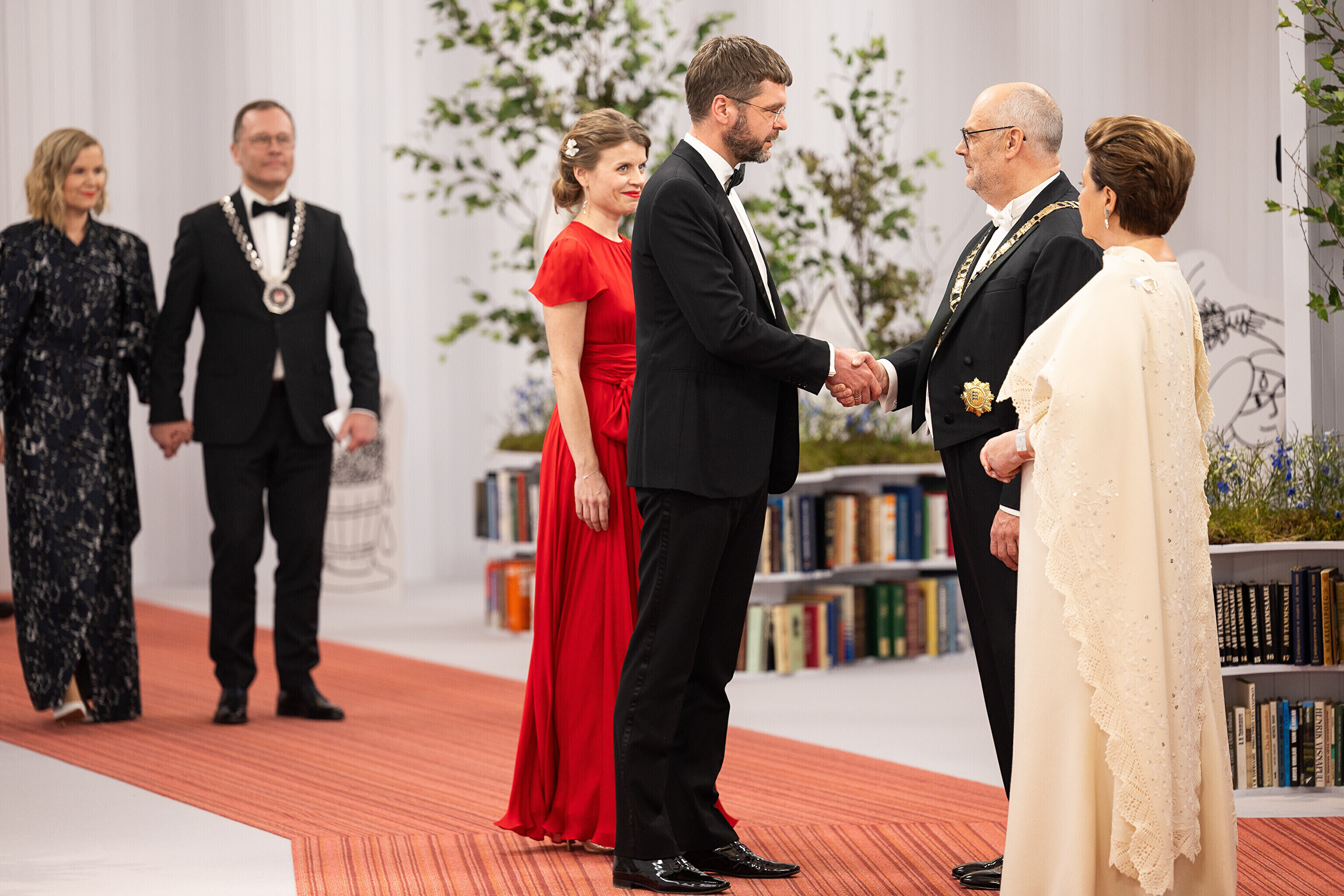 President Alar Karis ja proua Sirje Karis kutsusid Eesti Vabariigi 107. aastapäeva tähistamiseks Estoniasse vastuvõtule ligi 800 külalist. Galerii peomelust ja tervitustseremooniast täieneb jooksvalt.