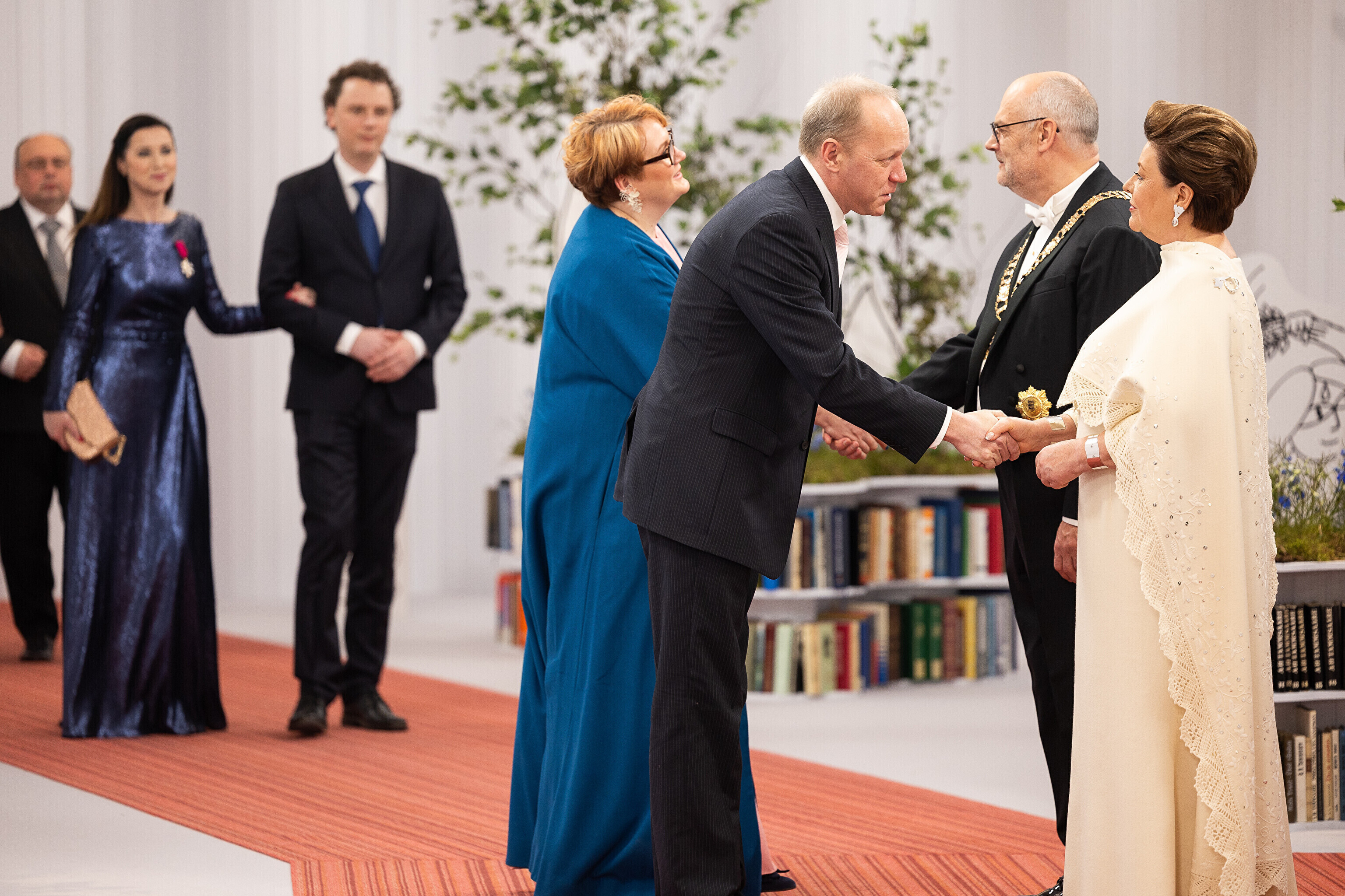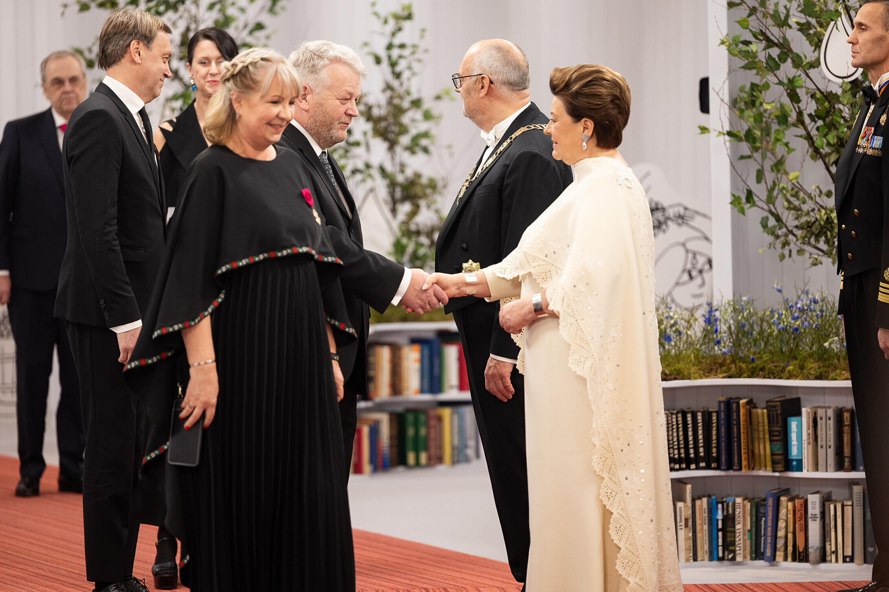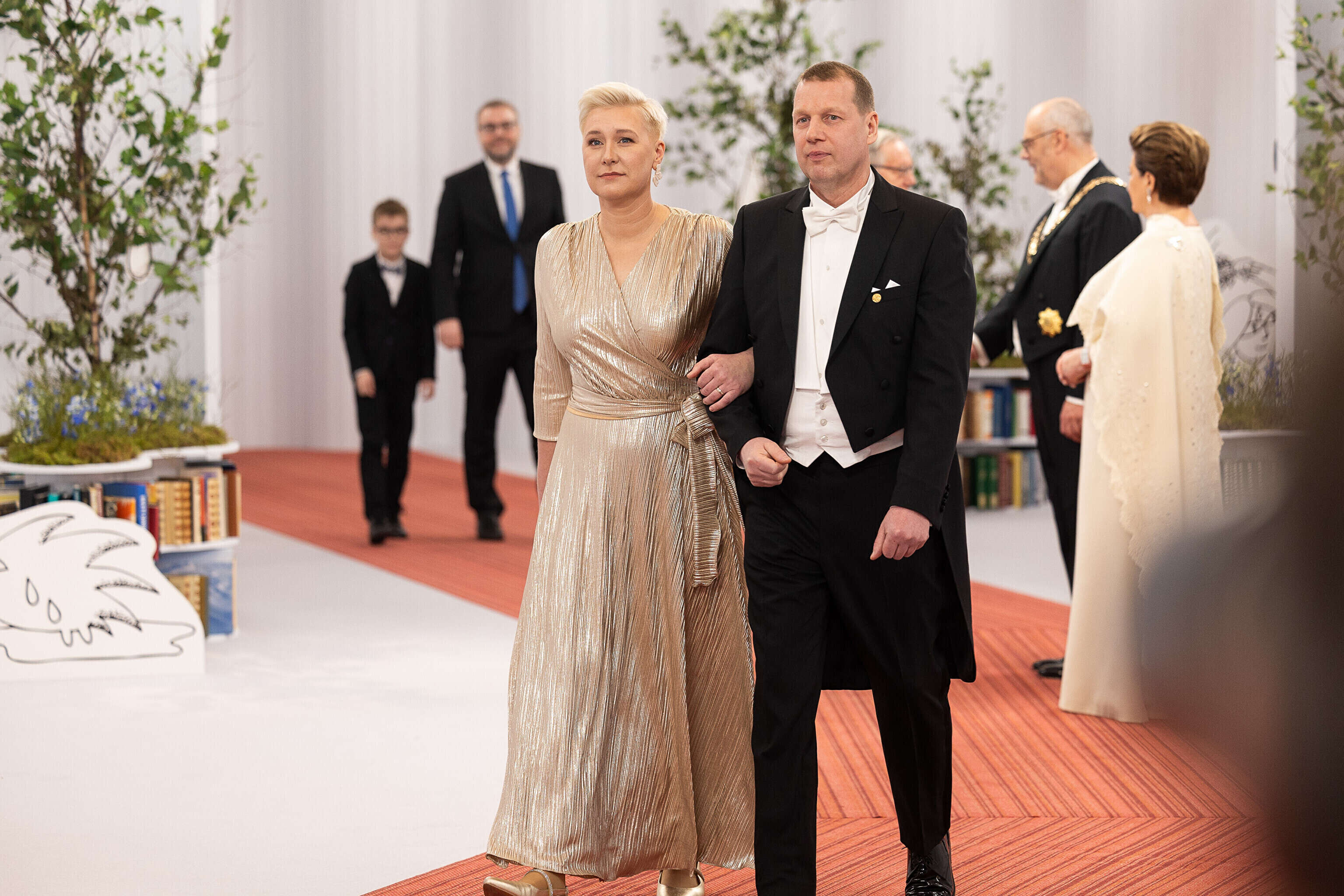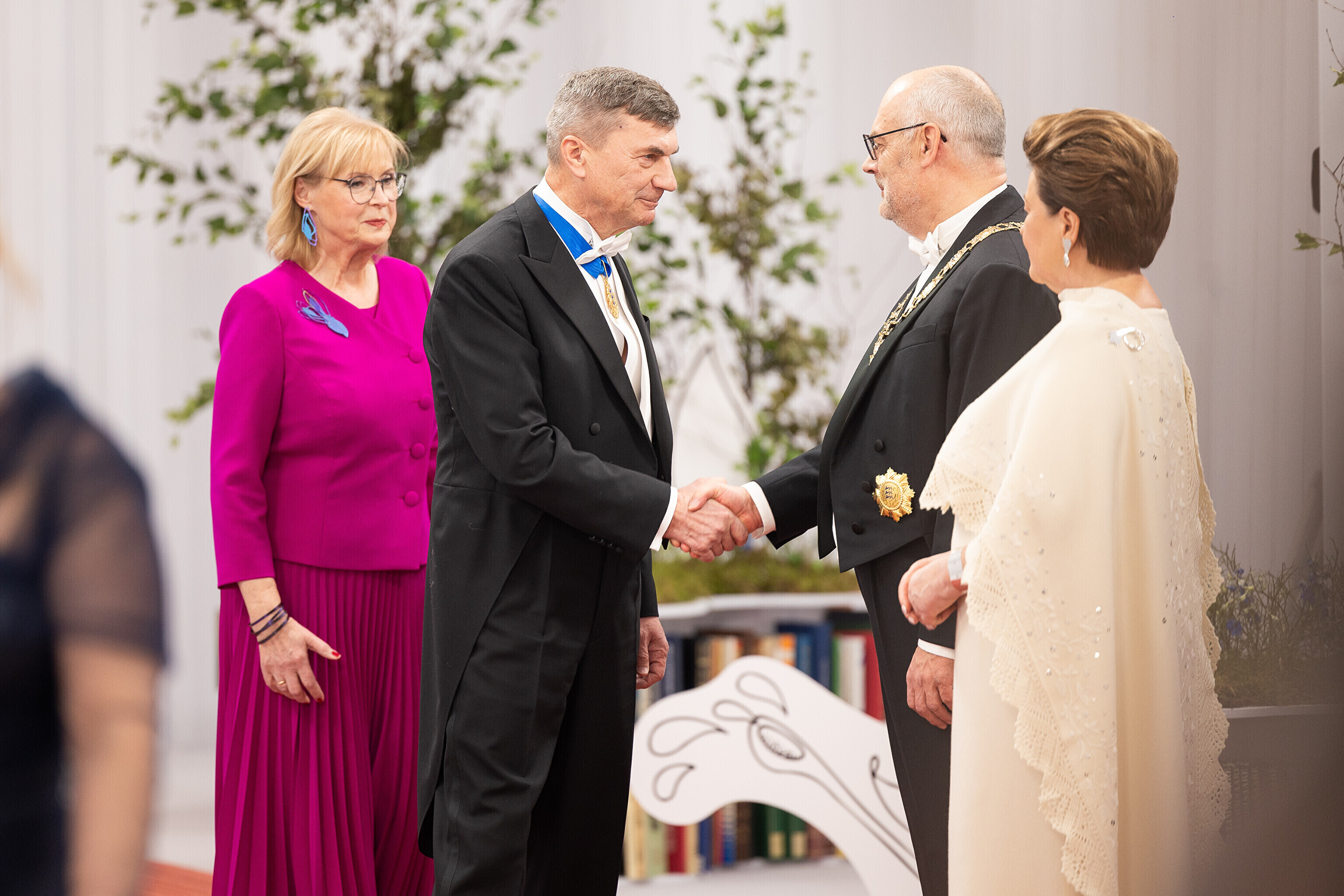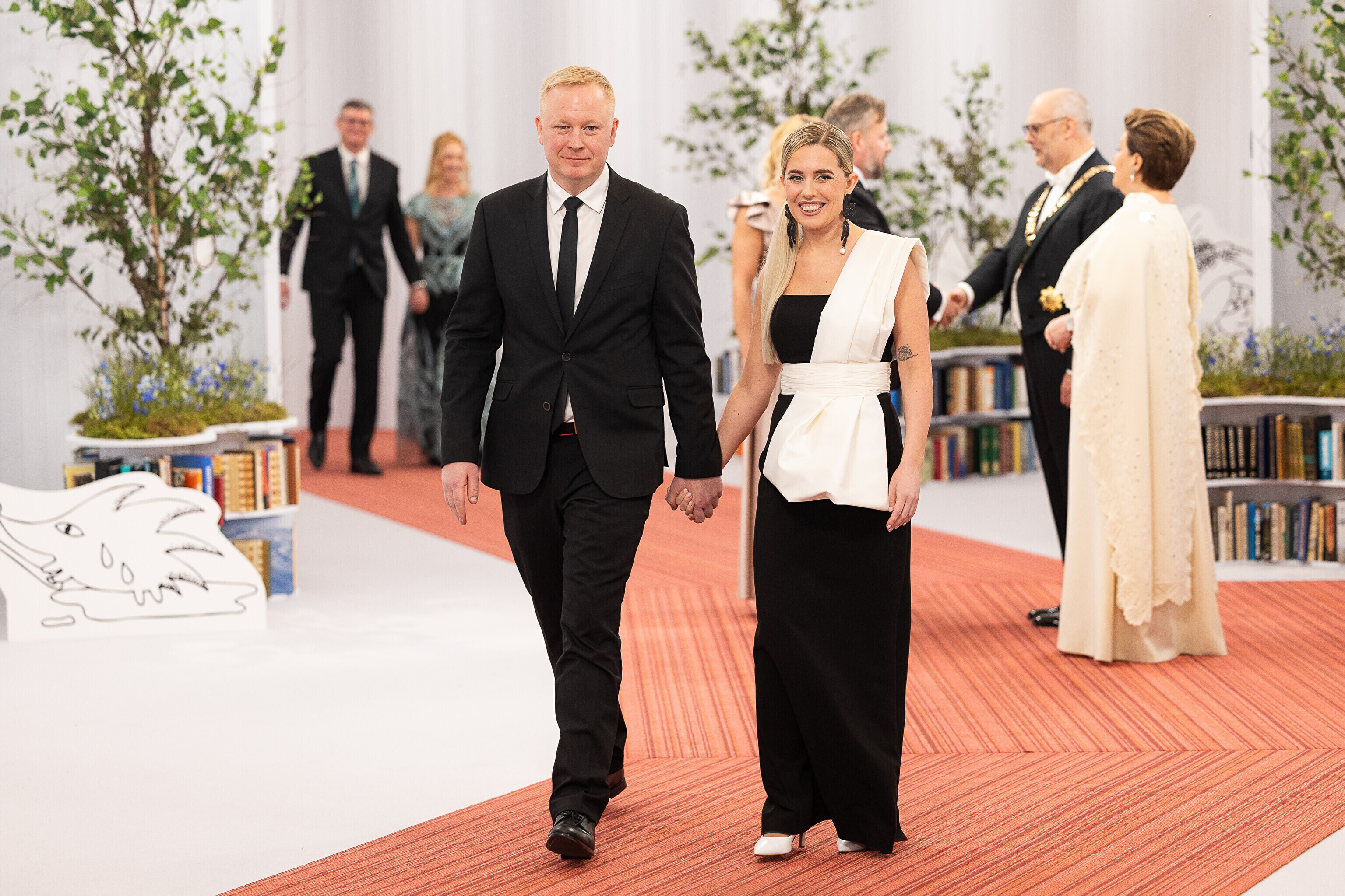 President Alar Karis ja proua Sirje Karis kutsusid Eesti Vabariigi 107. aastapäeva tähistamiseks Estoniasse vastuvõtule ligi 800 külalist. Galerii peomelust ja tervitustseremooniast täieneb jooksvalt.