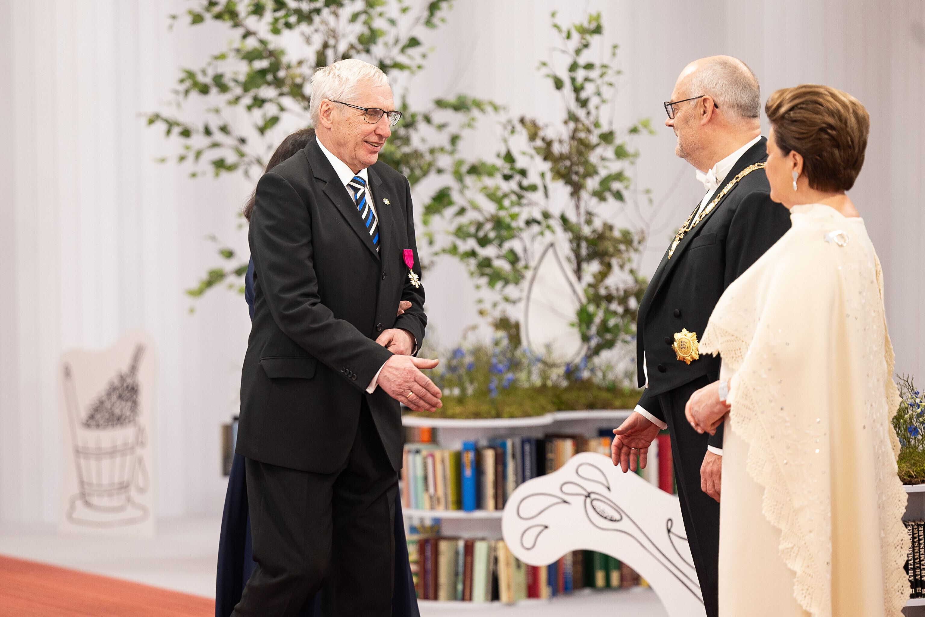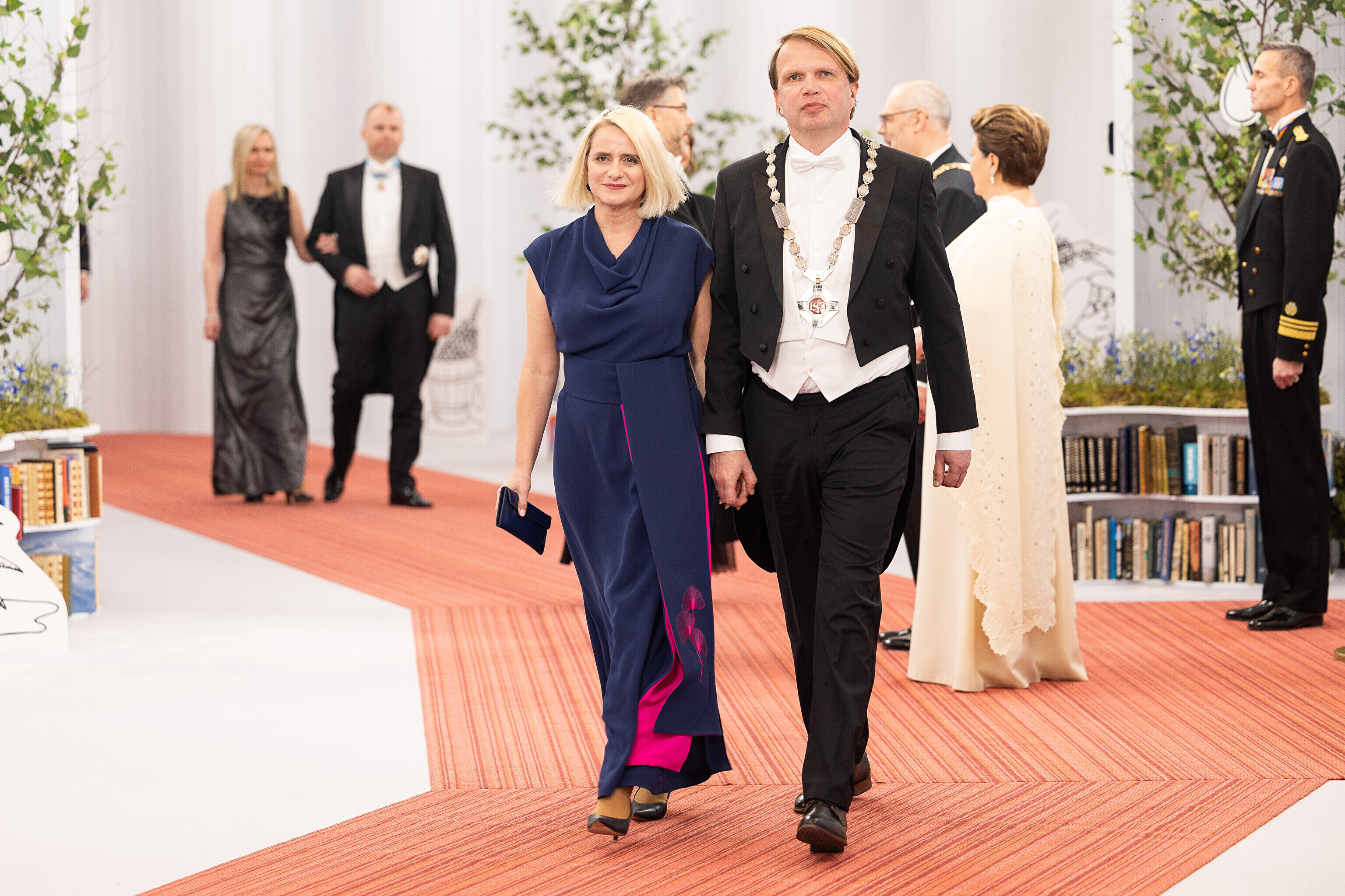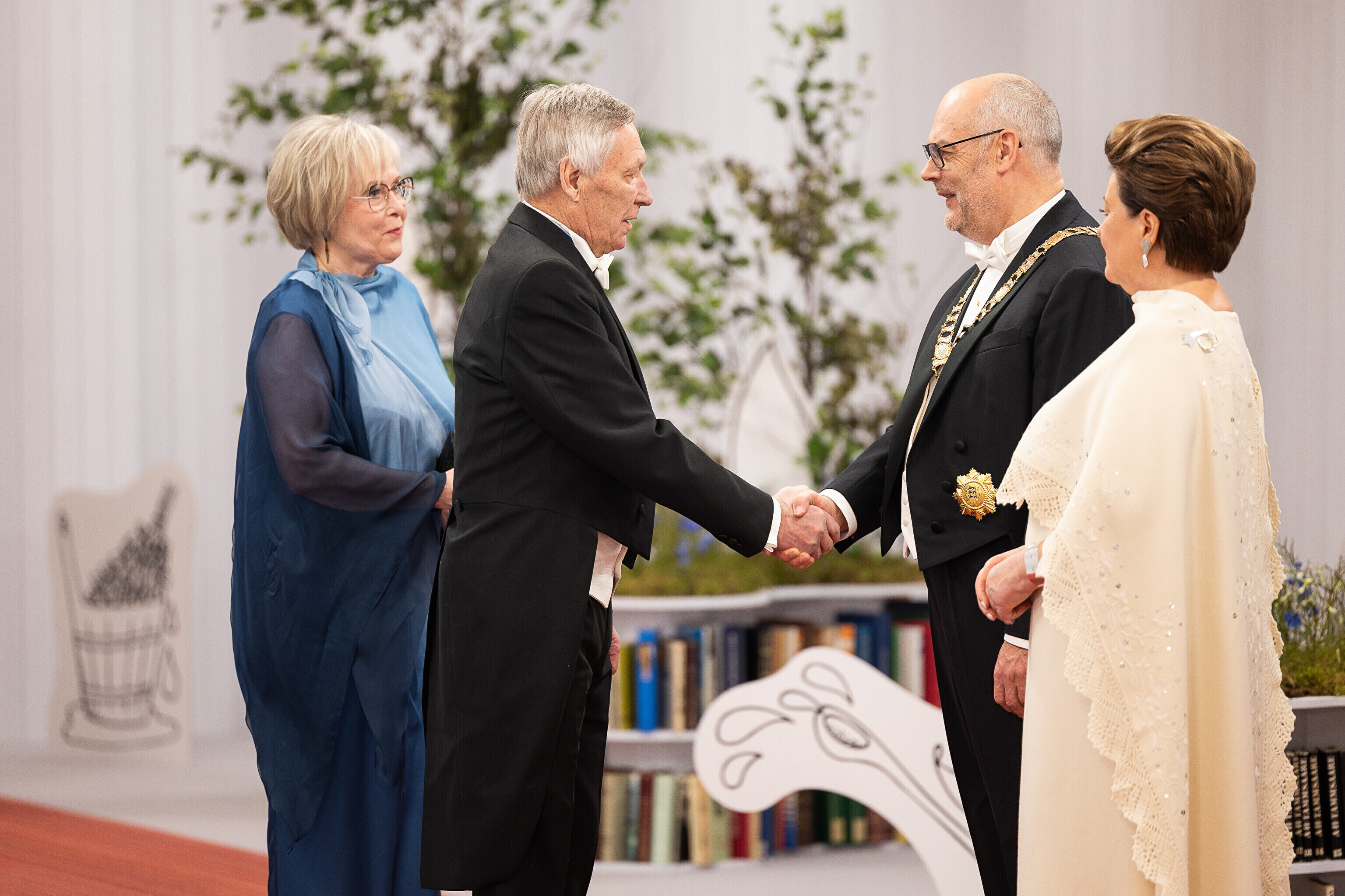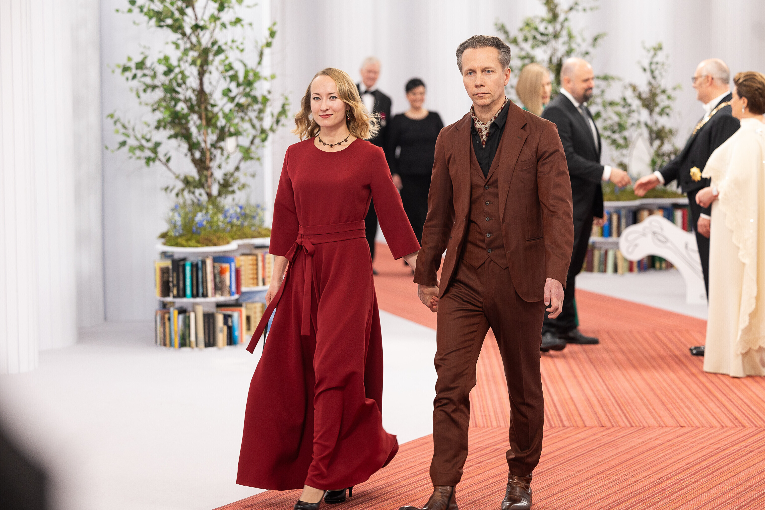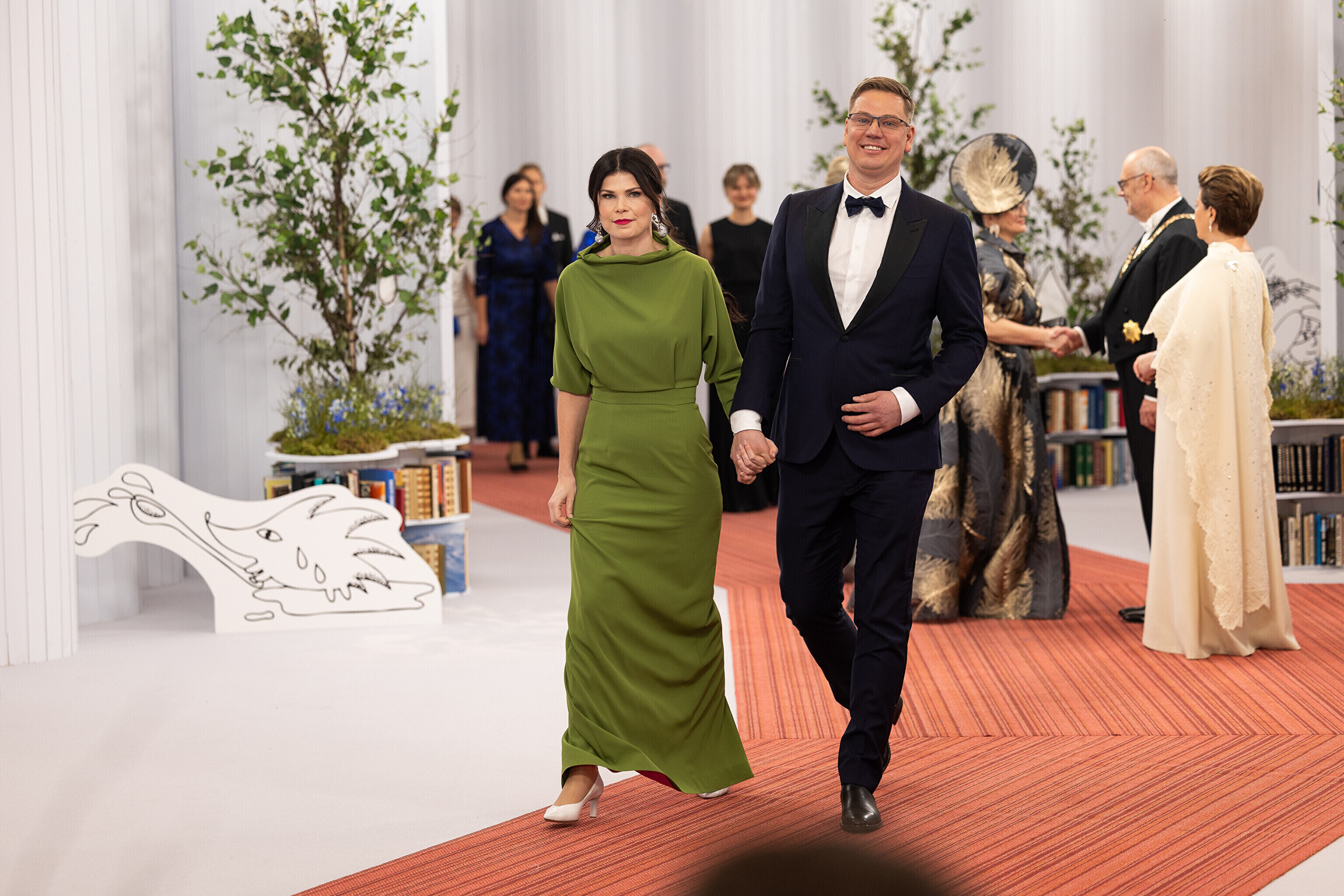 President Alar Karis ja proua Sirje Karis kutsusid Eesti Vabariigi 107. aastapäeva tähistamiseks Estoniasse vastuvõtule ligi 800 külalist. Galerii peomelust ja tervitustseremooniast täieneb jooksvalt.