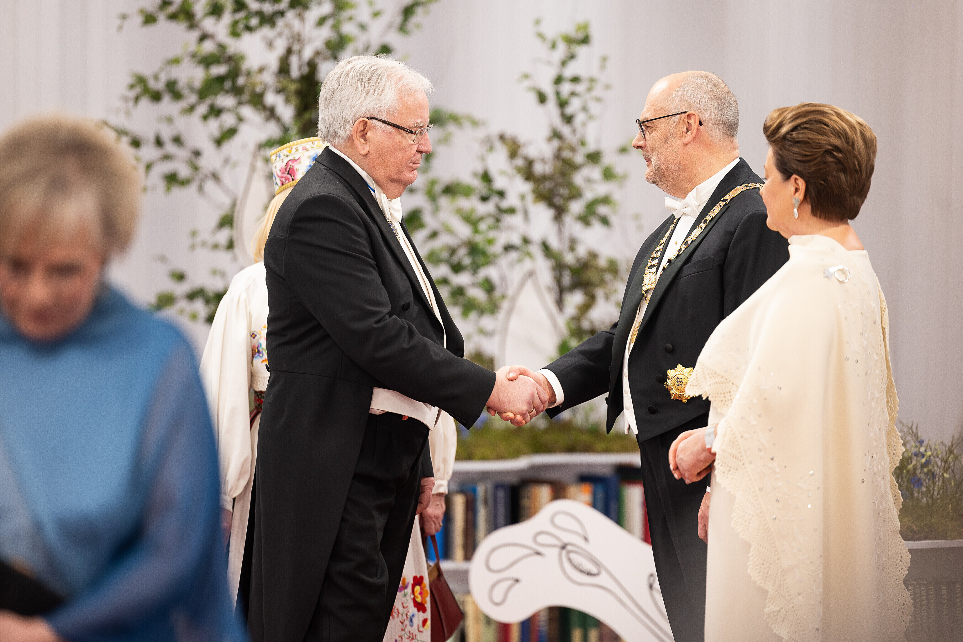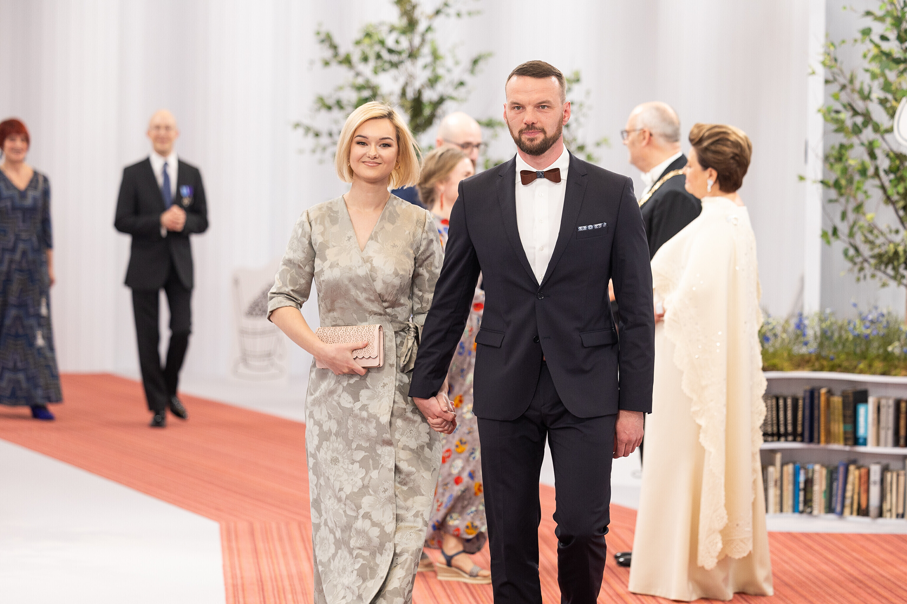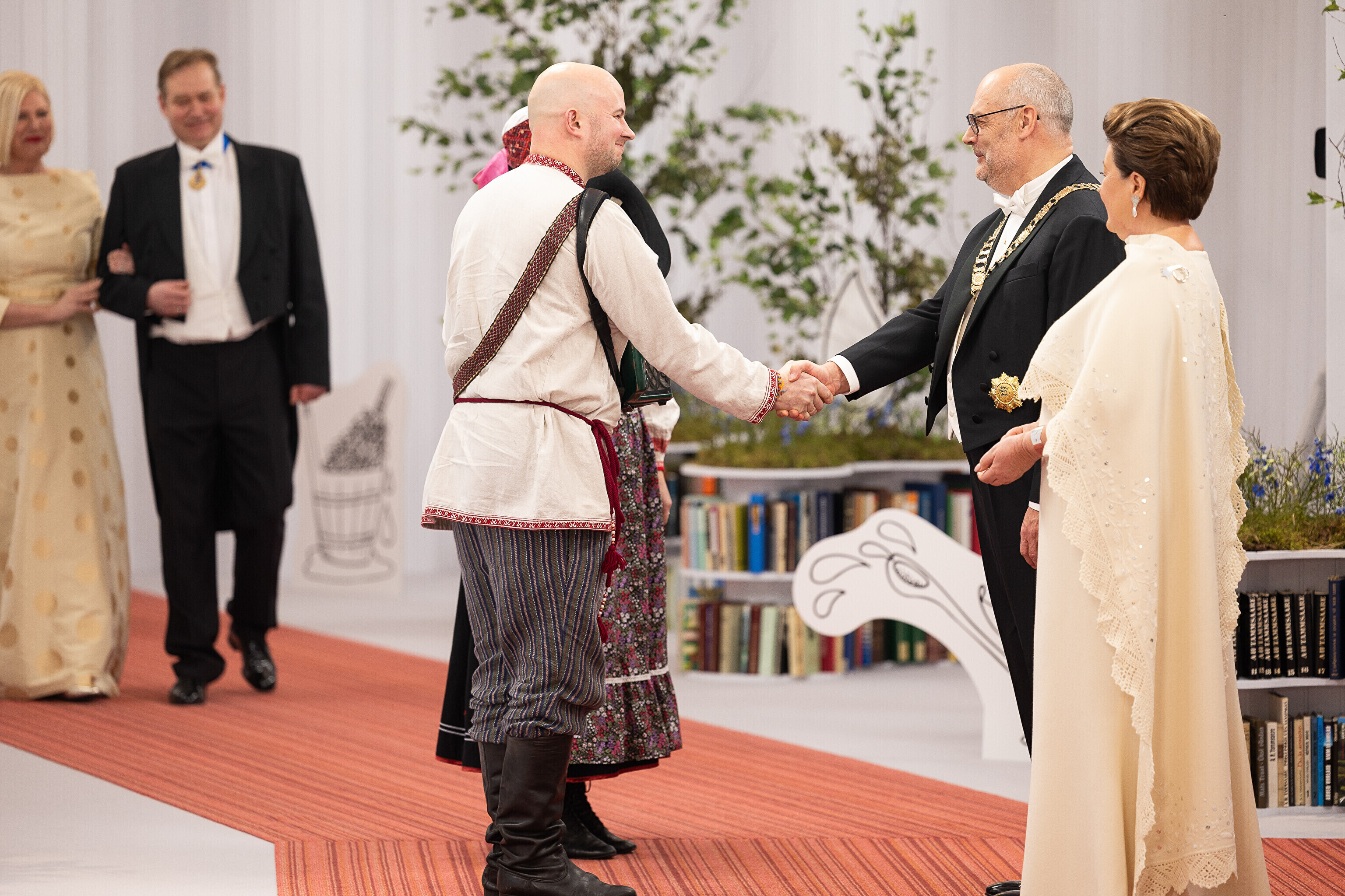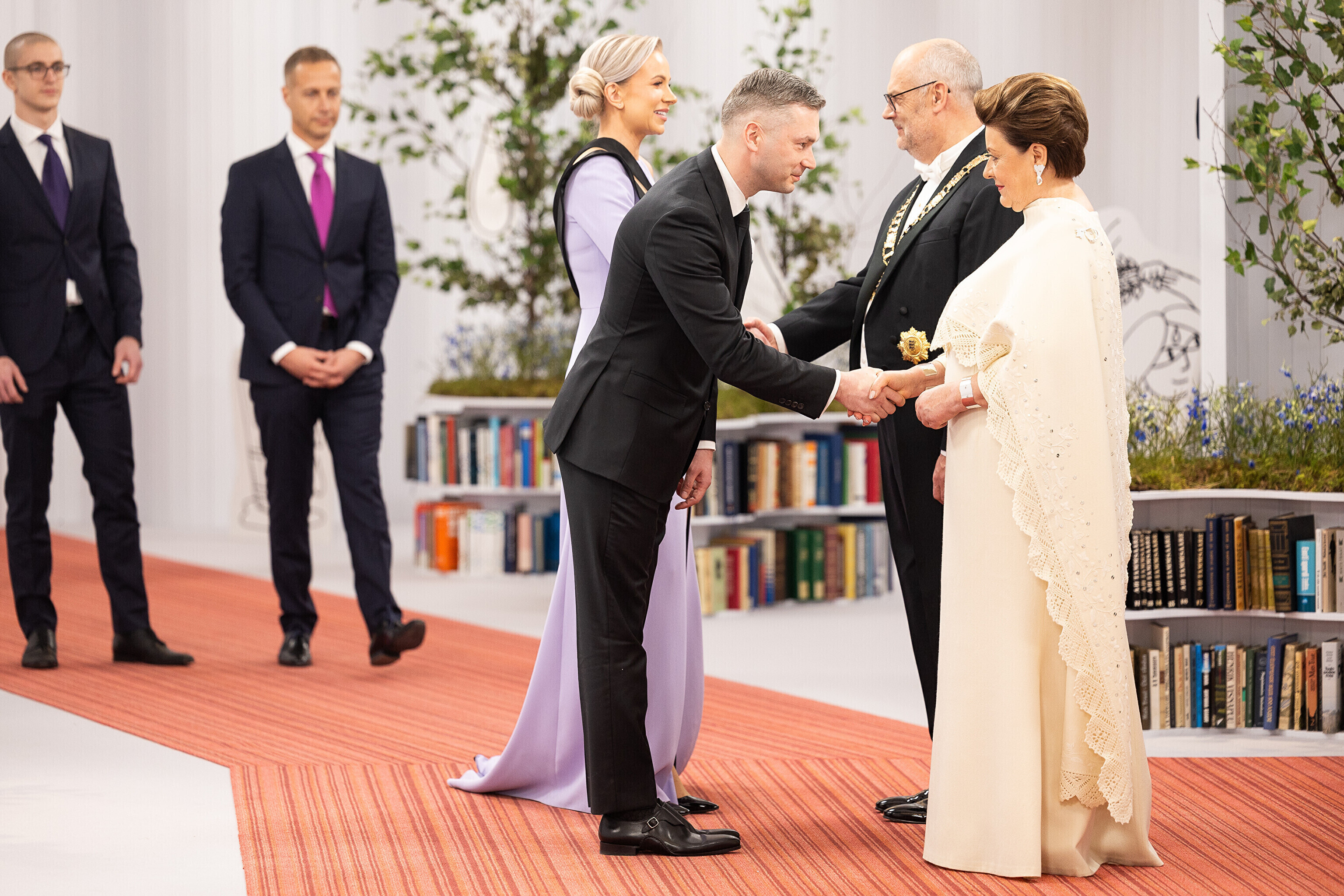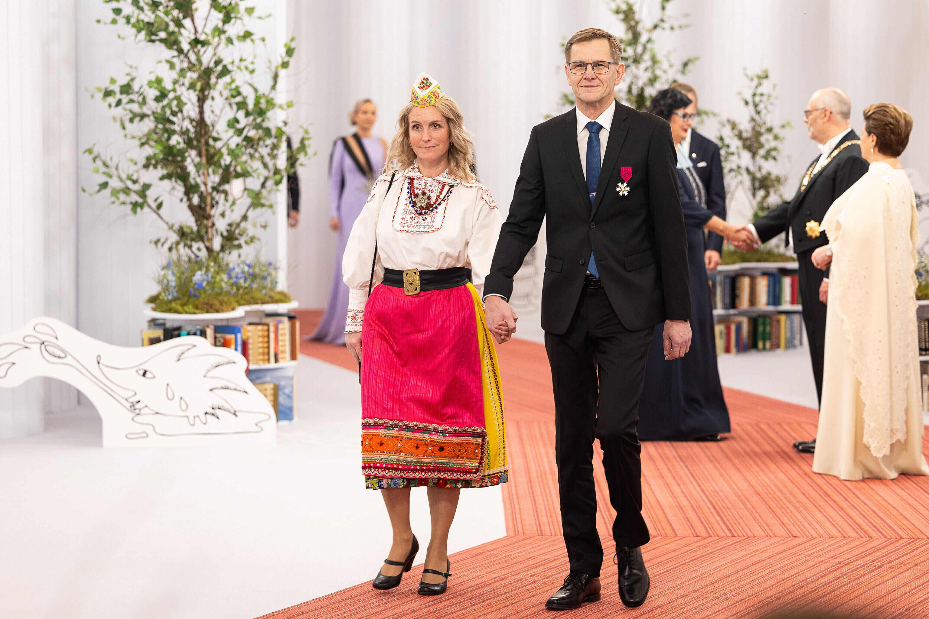 President Alar Karis ja proua Sirje Karis kutsusid Eesti Vabariigi 107. aastapäeva tähistamiseks Estoniasse vastuvõtule ligi 800 külalist. Galerii peomelust ja tervitustseremooniast täieneb jooksvalt.