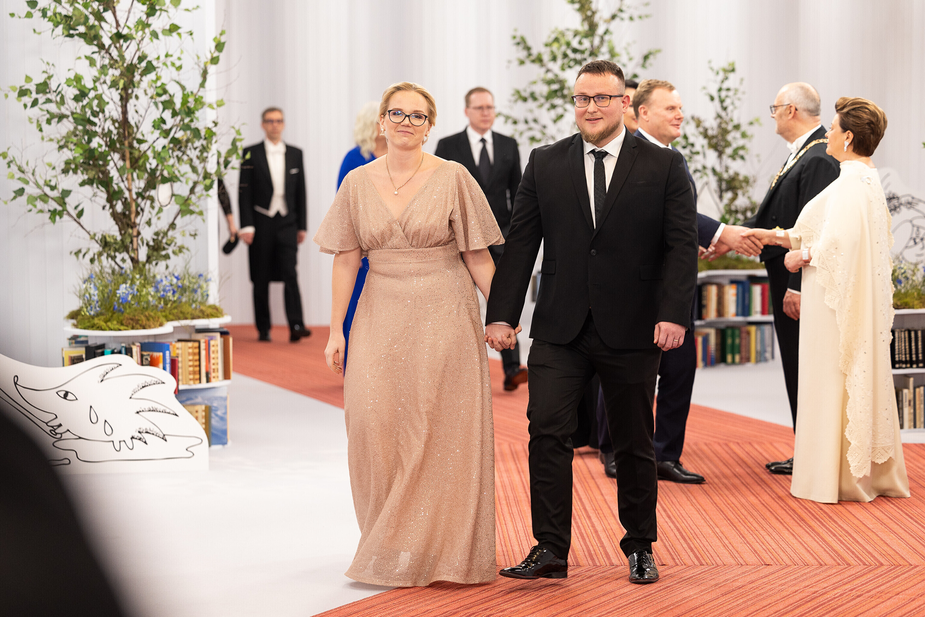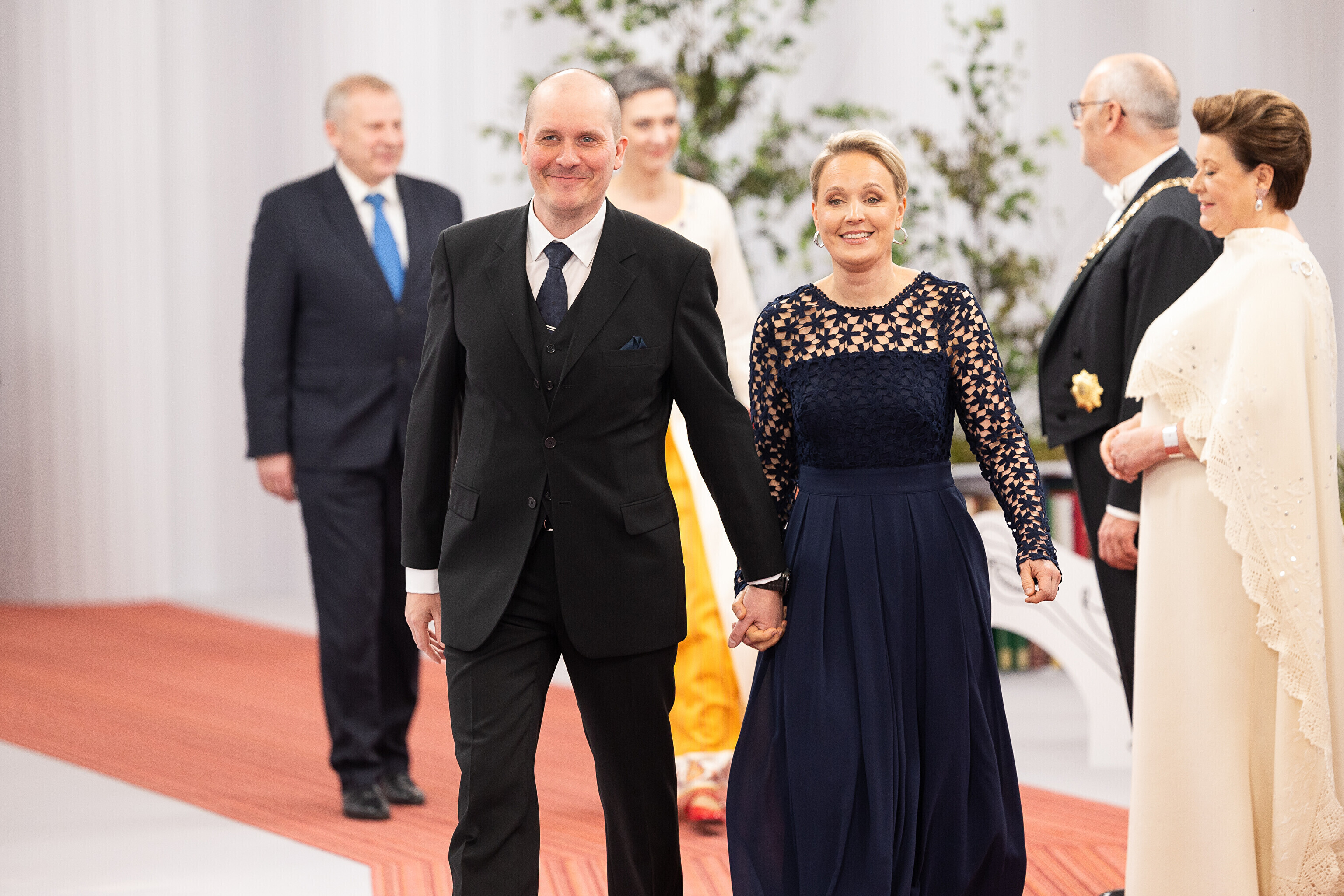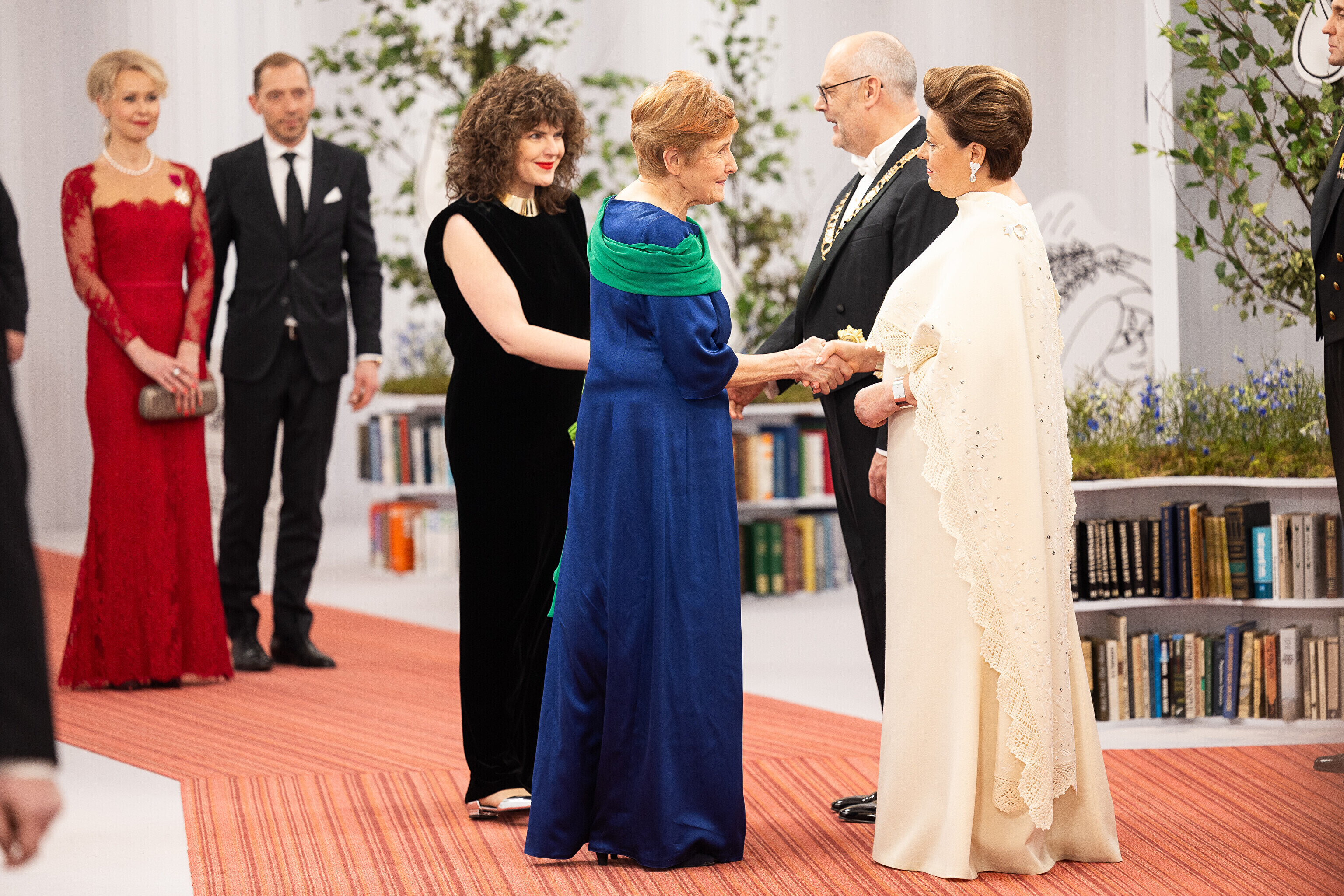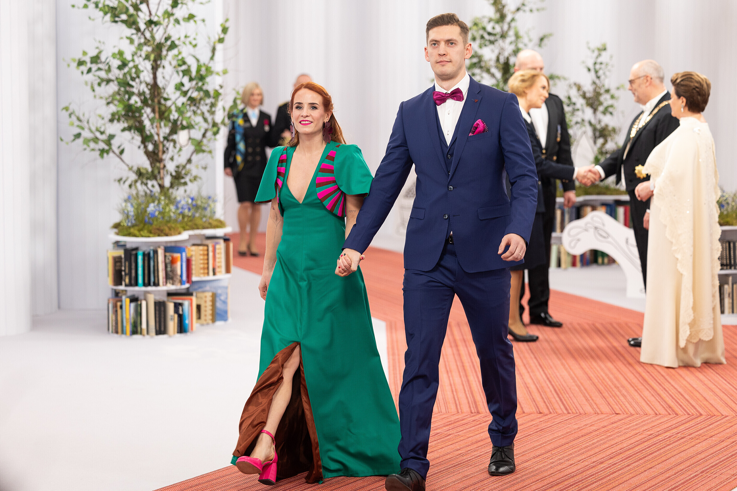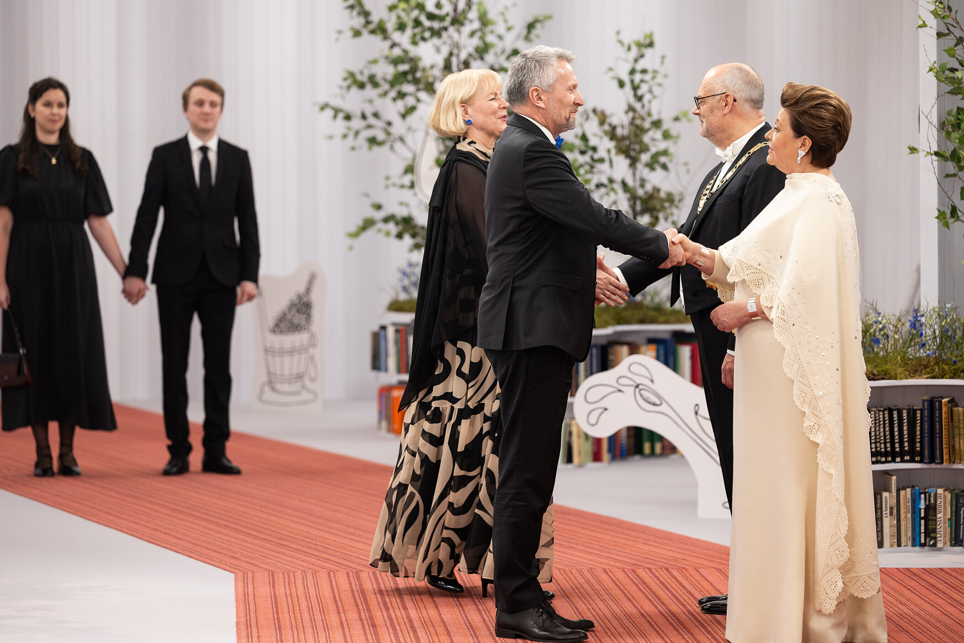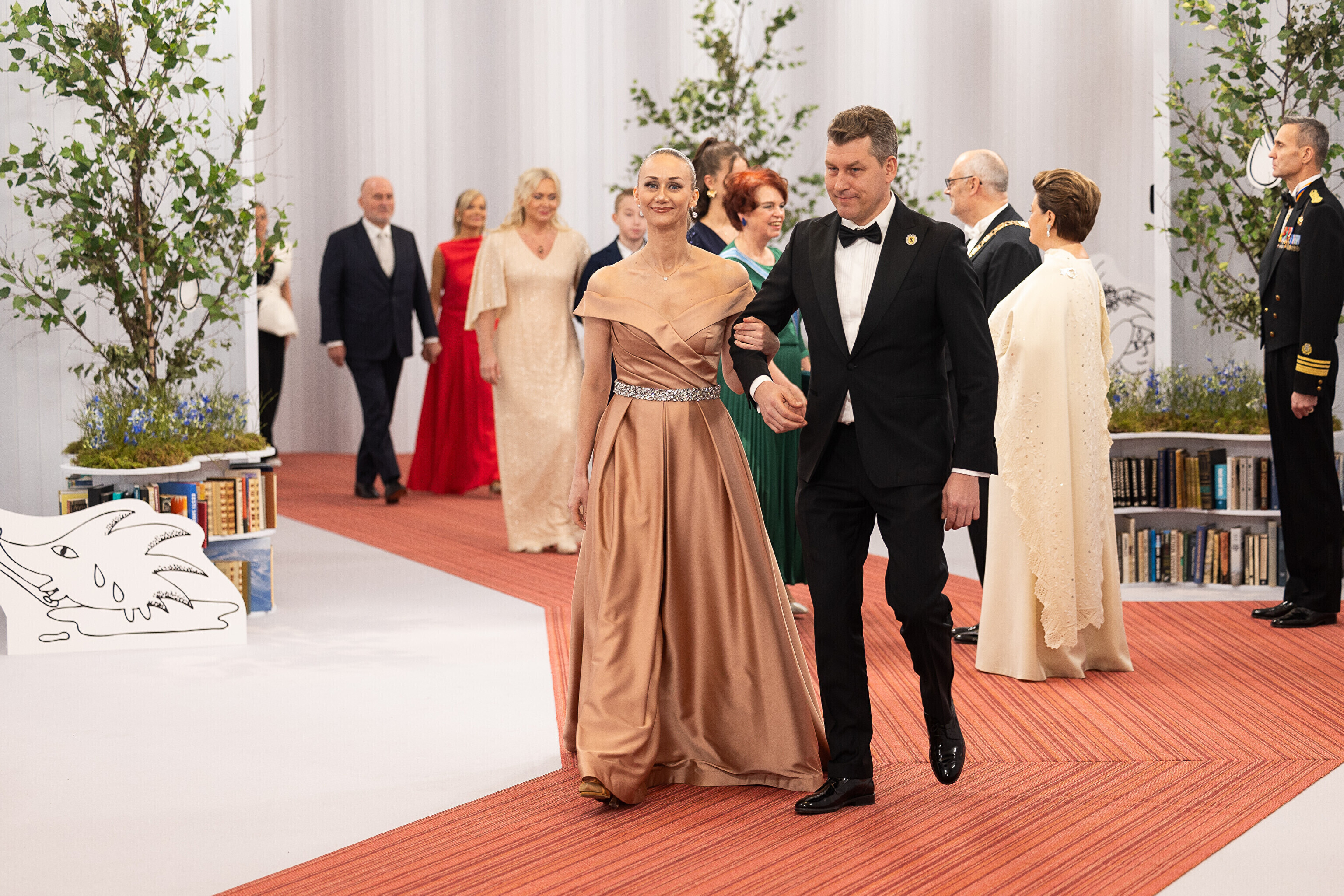 President Alar Karis ja proua Sirje Karis kutsusid Eesti Vabariigi 107. aastapäeva tähistamiseks Estoniasse vastuvõtule ligi 800 külalist. Galerii peomelust ja tervitustseremooniast täieneb jooksvalt.