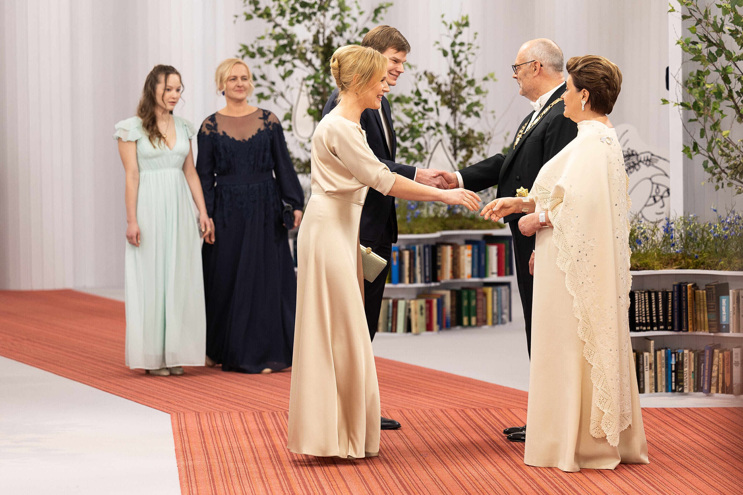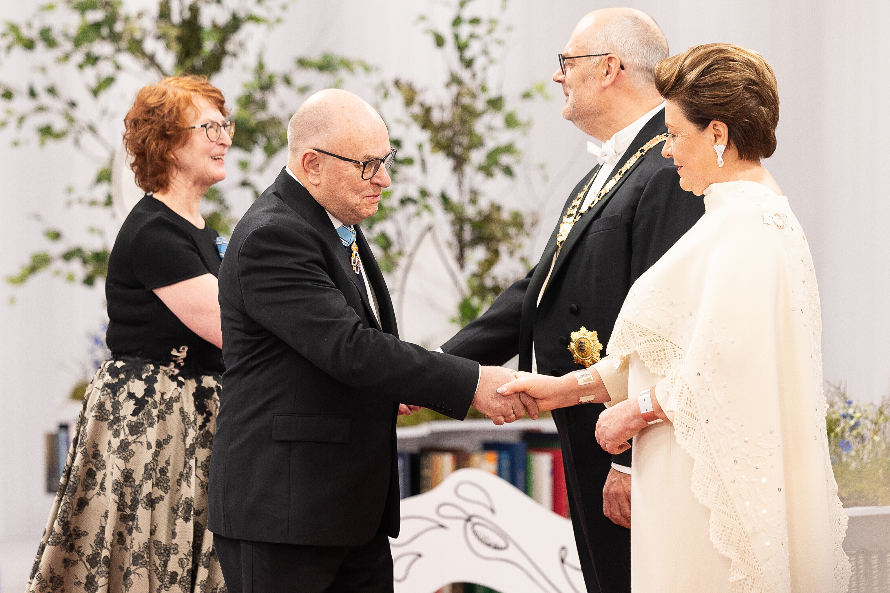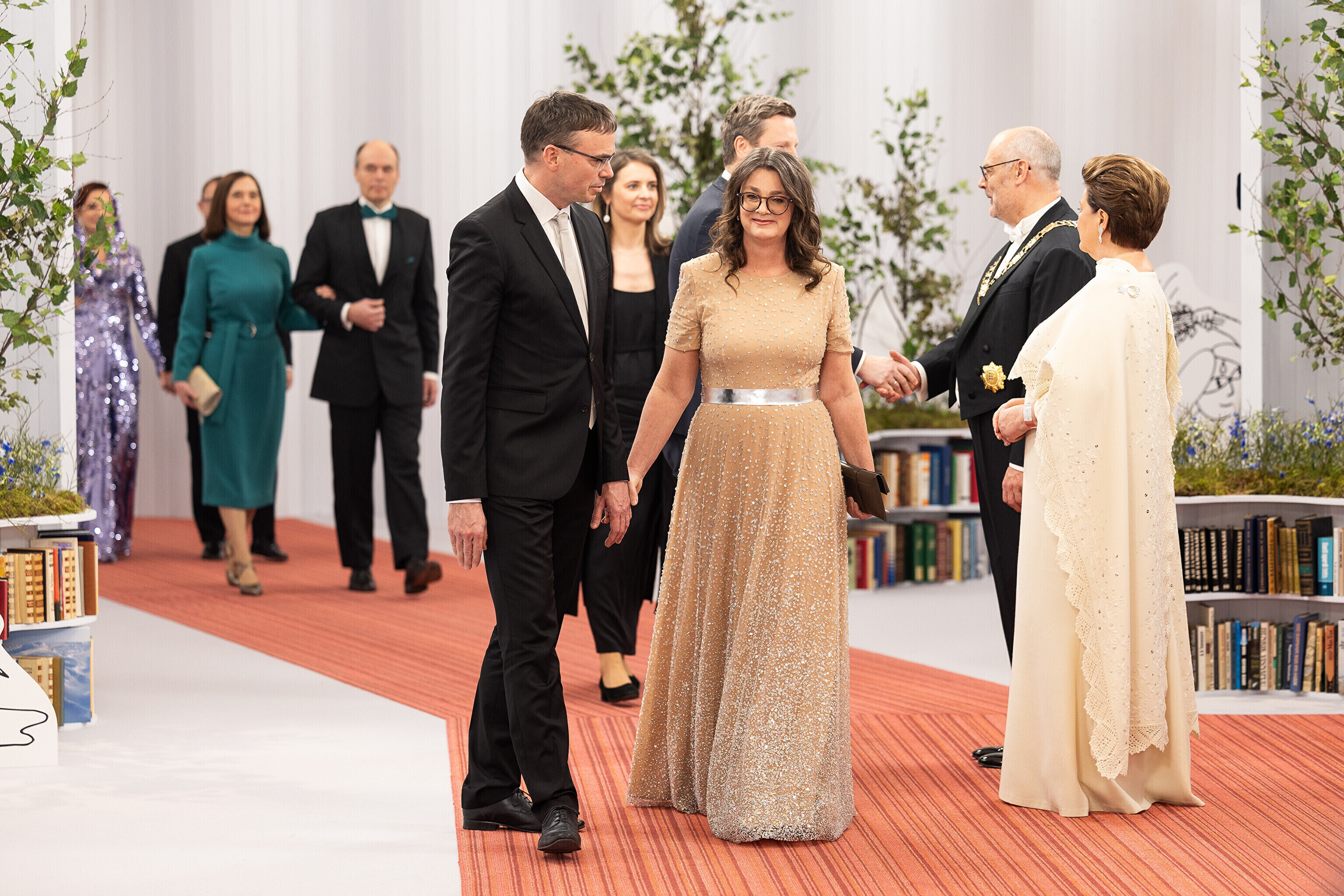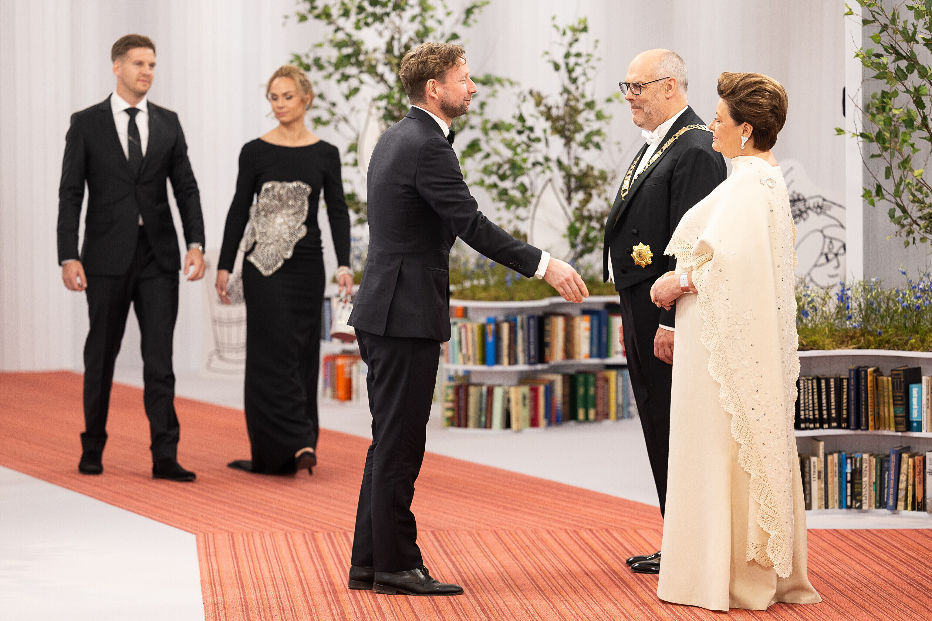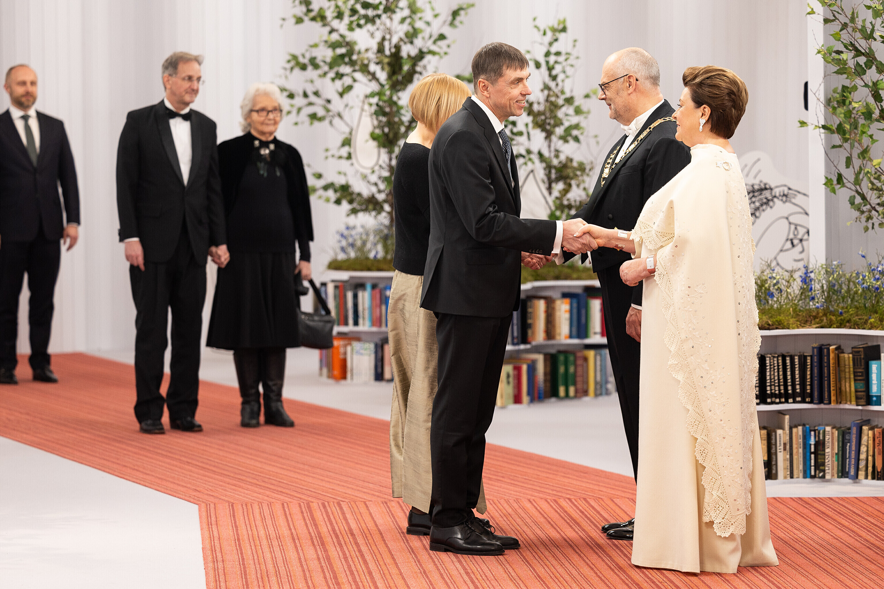 President Alar Karis ja proua Sirje Karis kutsusid Eesti Vabariigi 107. aastapäeva tähistamiseks Estoniasse vastuvõtule ligi 800 külalist. Galerii peomelust ja tervitustseremooniast täieneb jooksvalt.