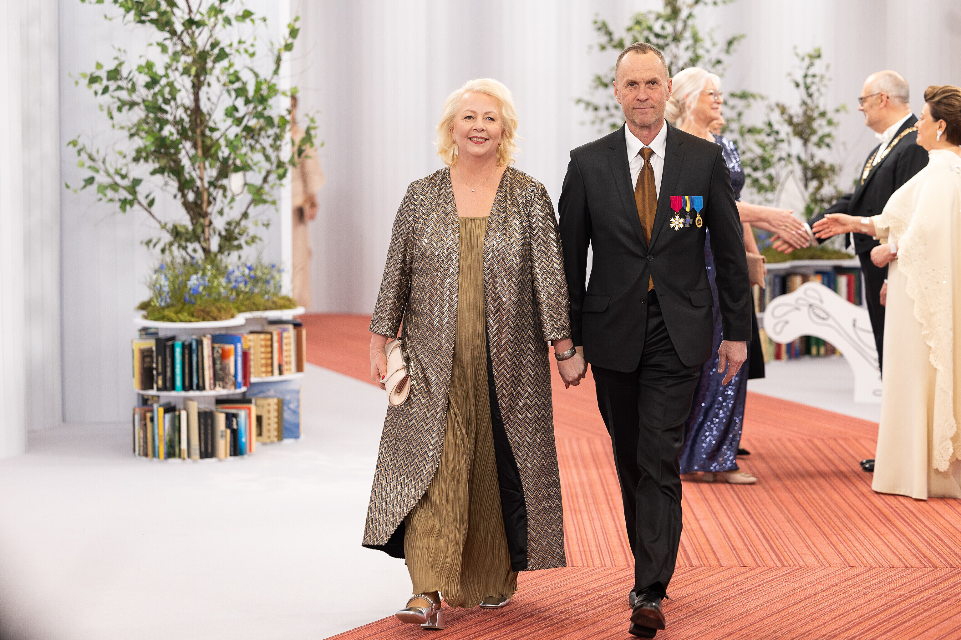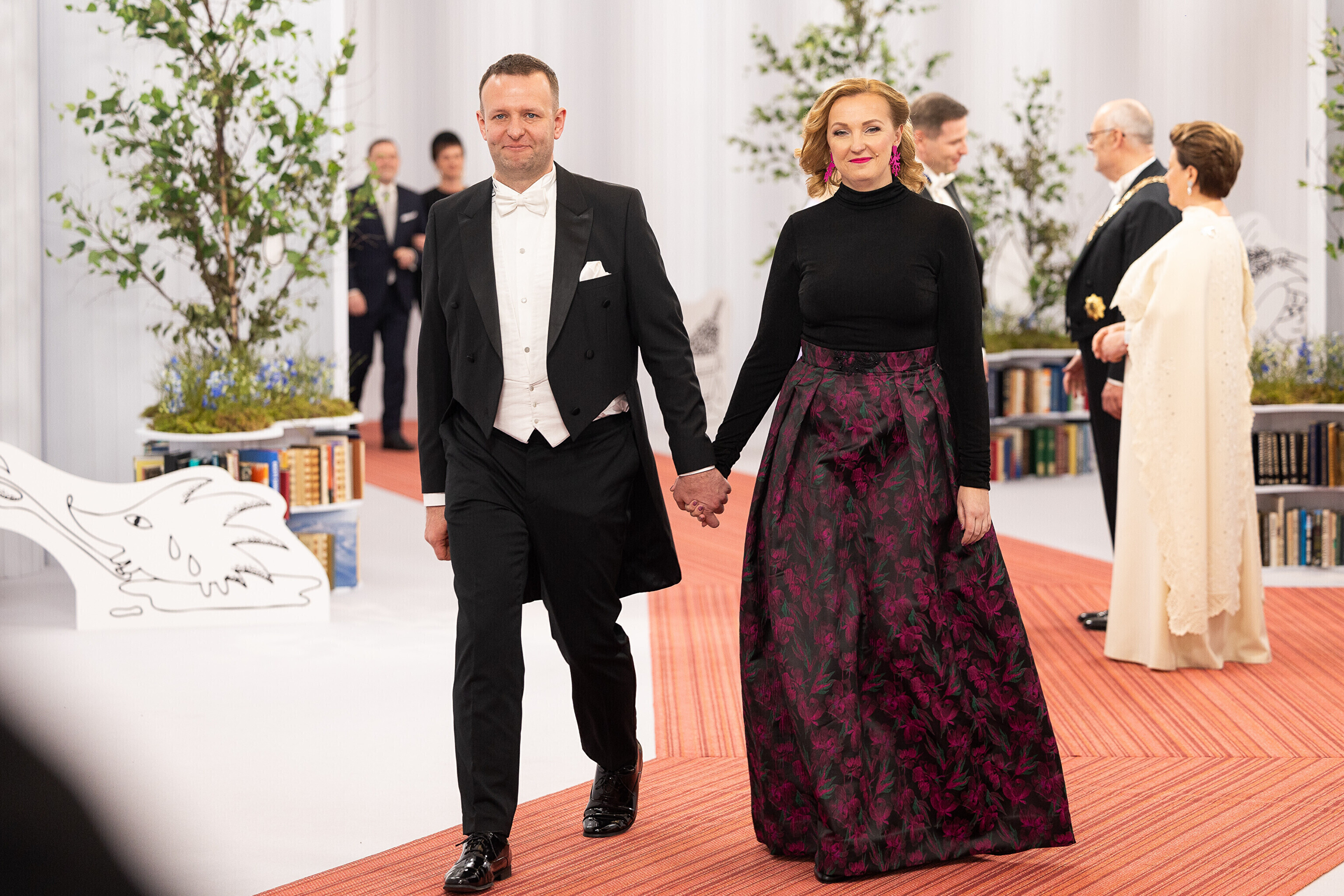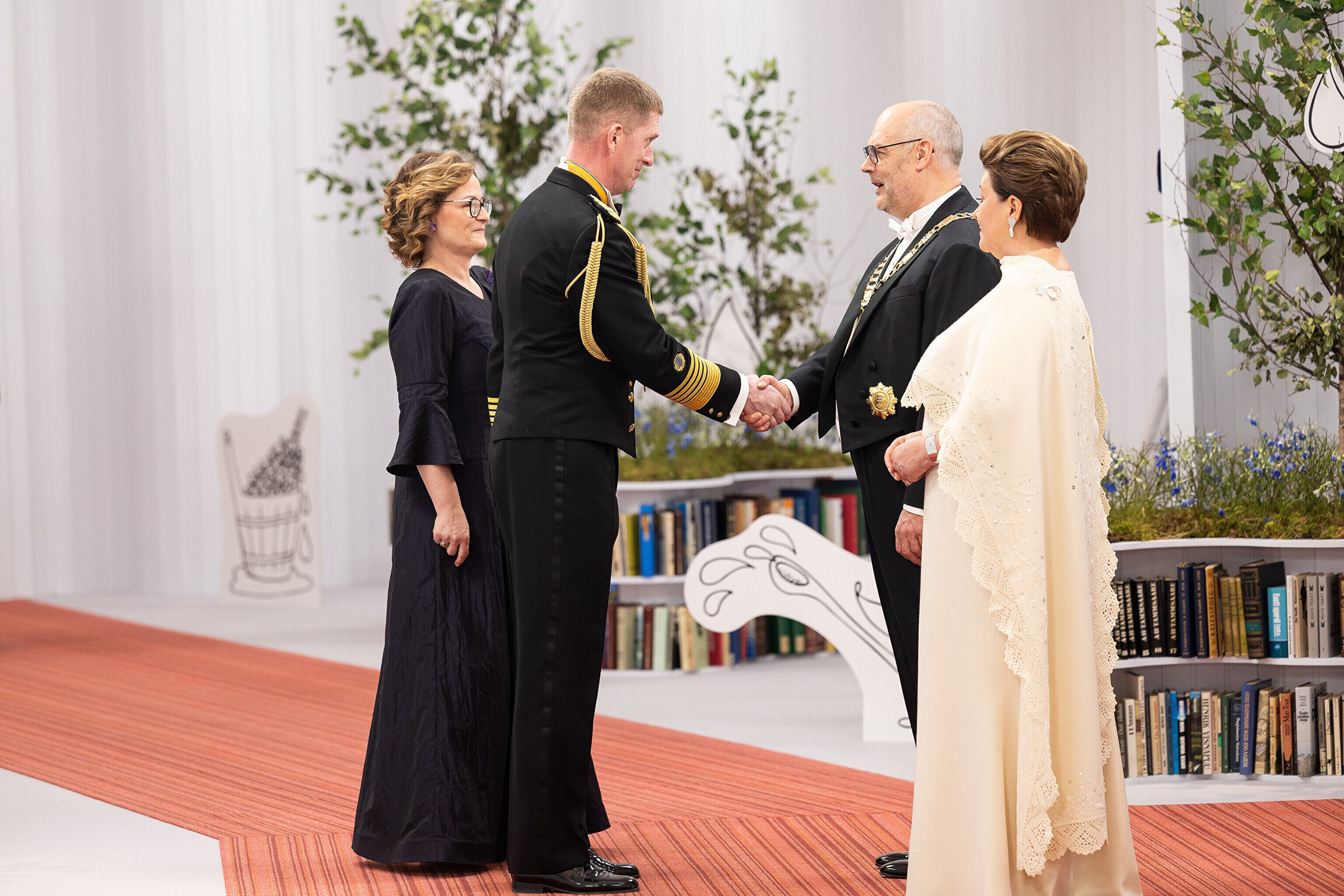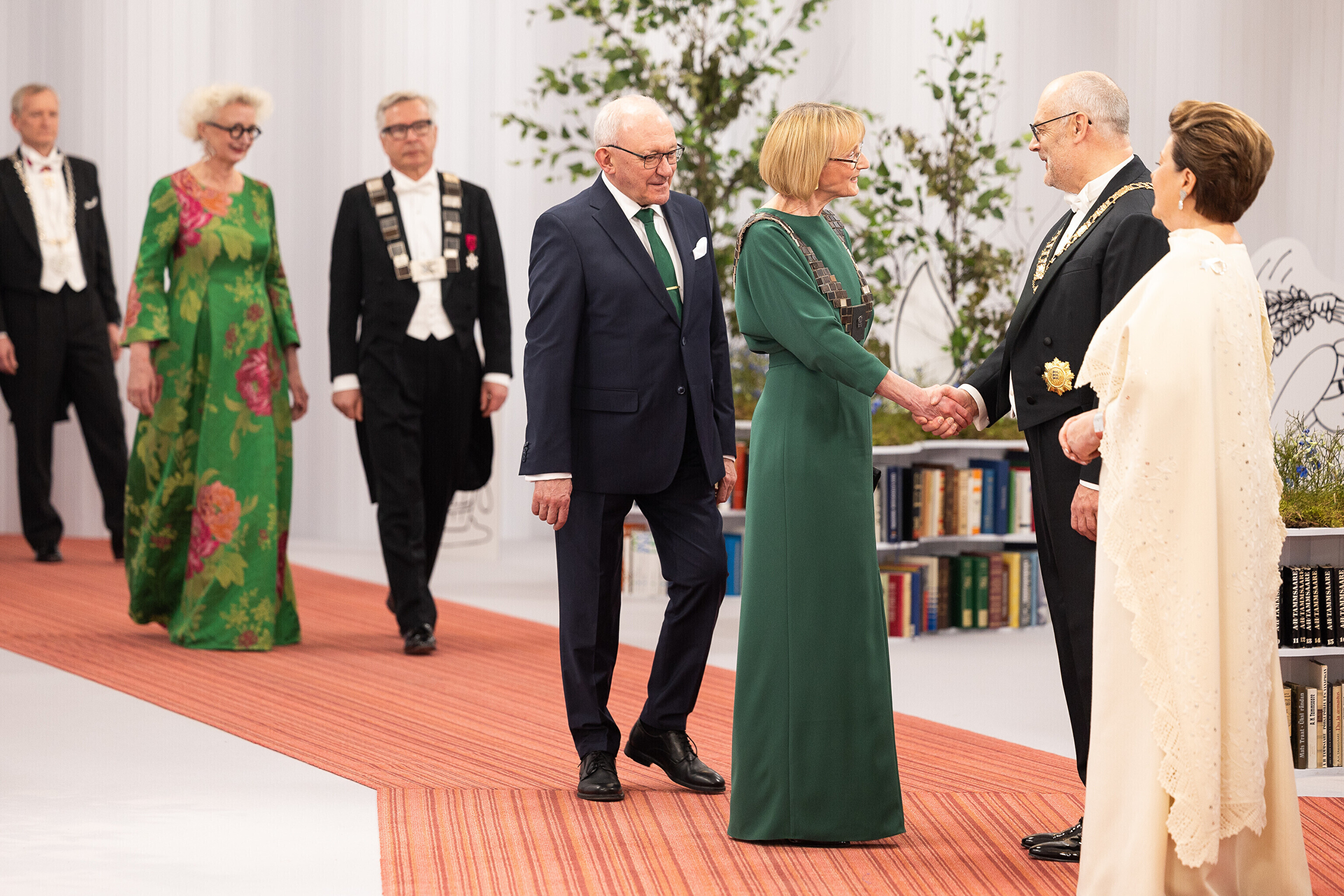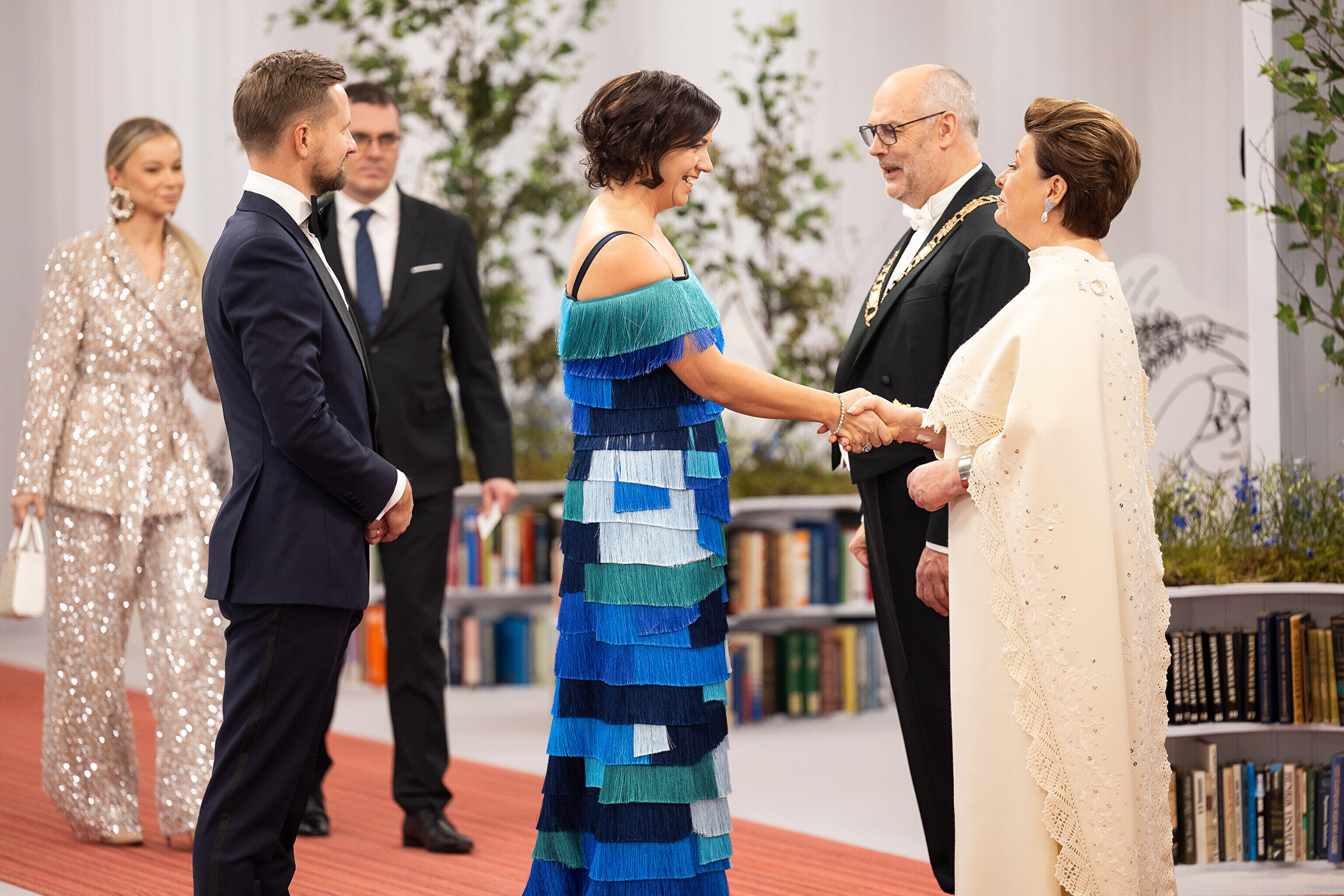 President Alar Karis ja proua Sirje Karis kutsusid Eesti Vabariigi 107. aastapäeva tähistamiseks Estoniasse vastuvõtule ligi 800 külalist. Galerii peomelust ja tervitustseremooniast täieneb jooksvalt.