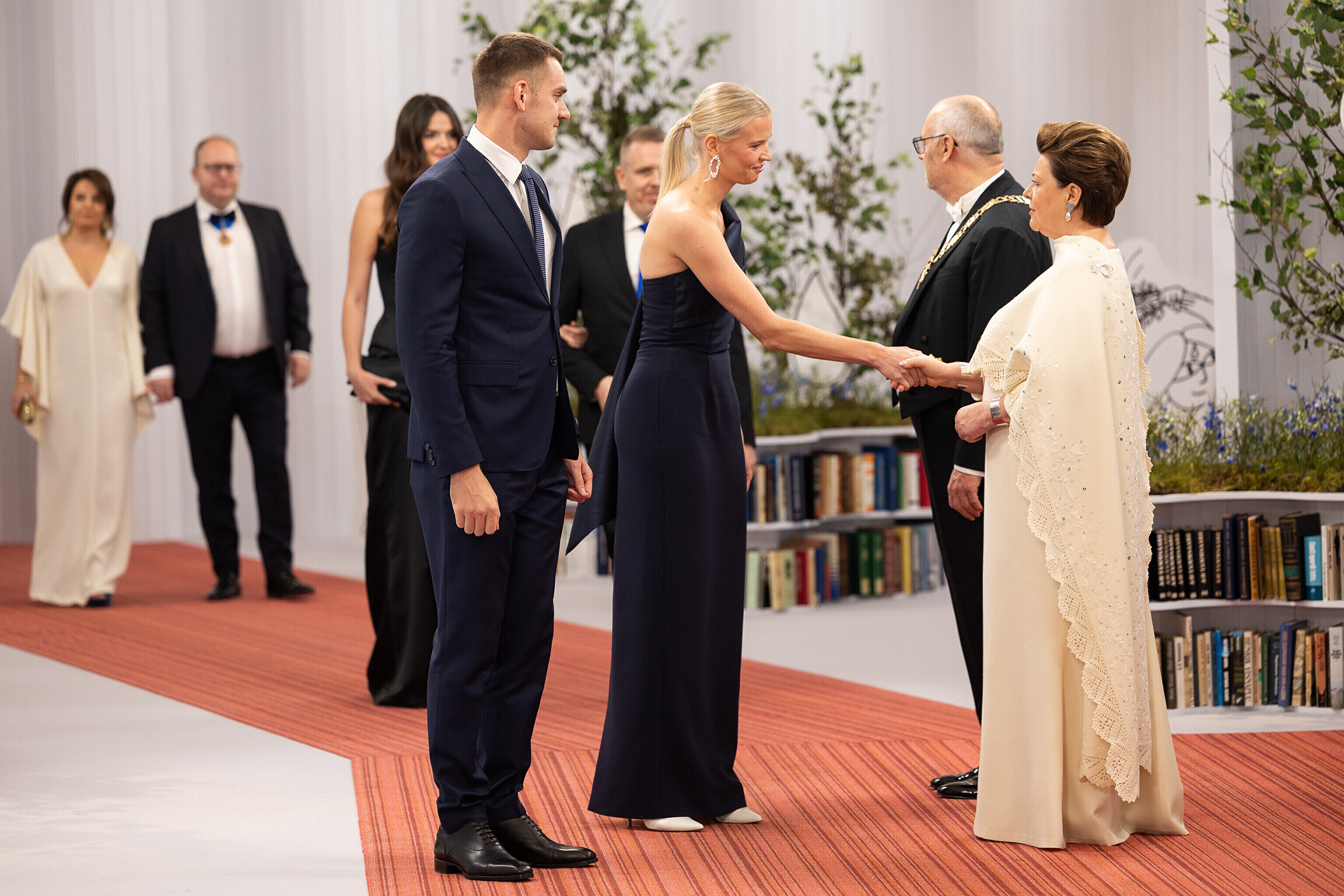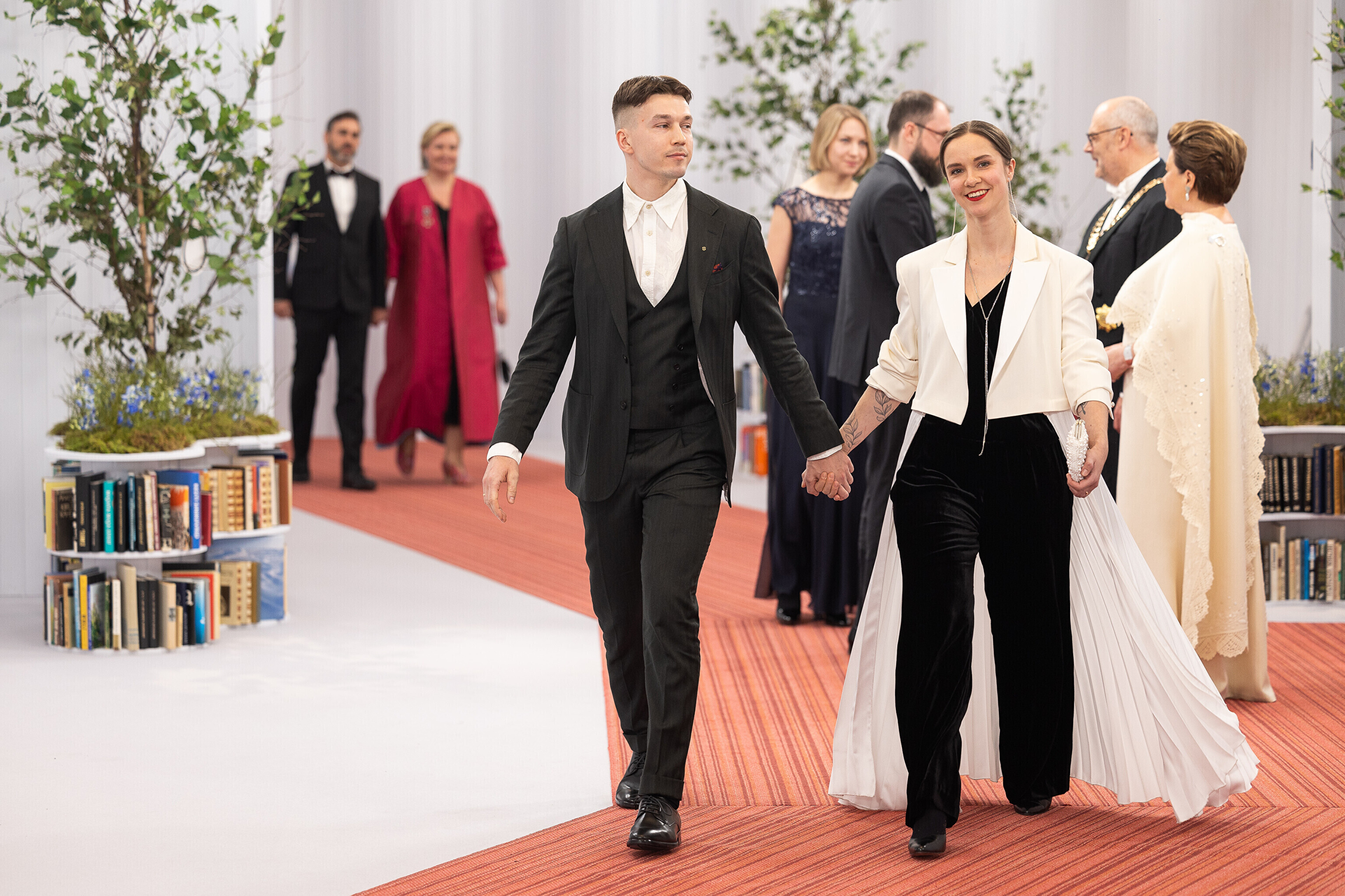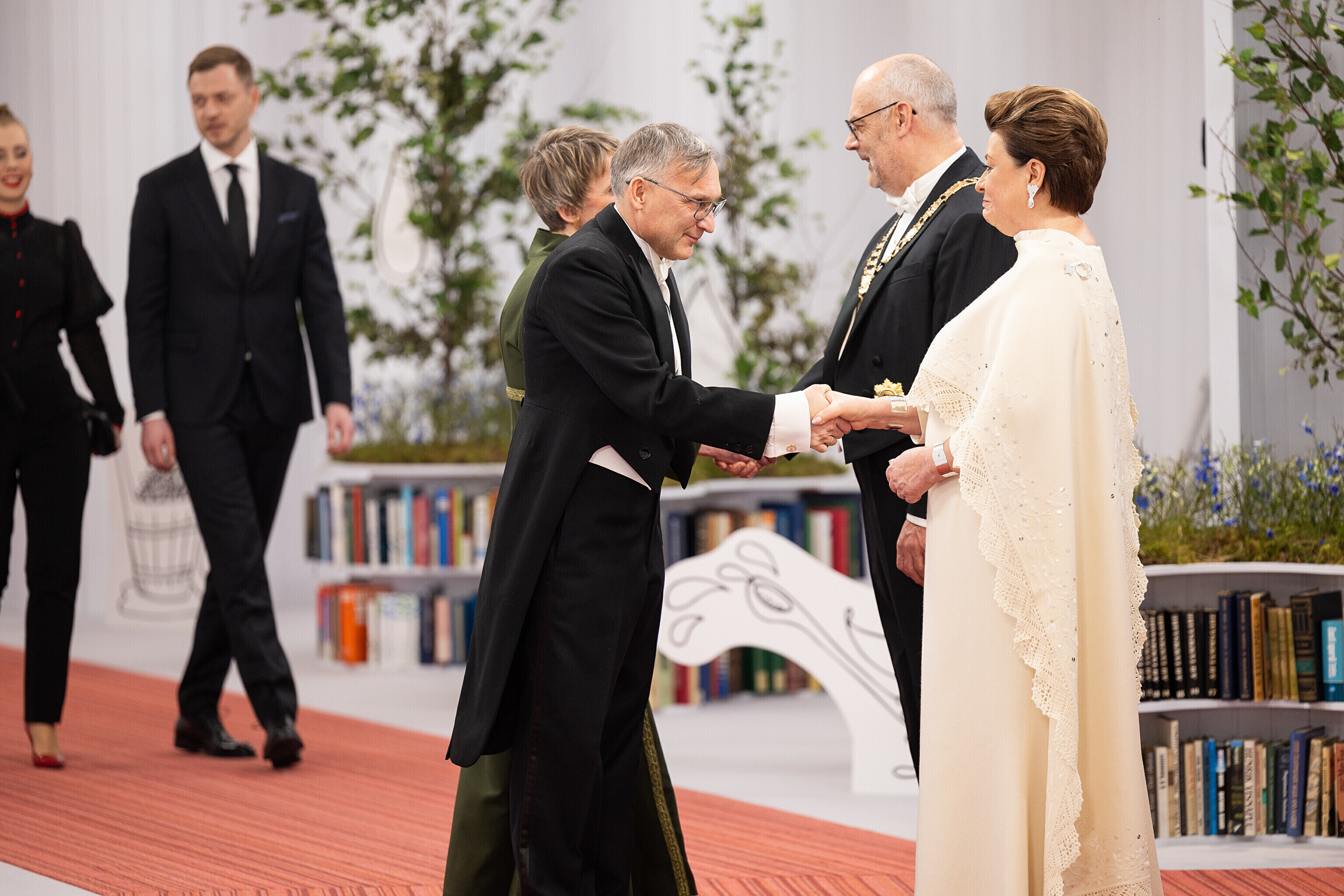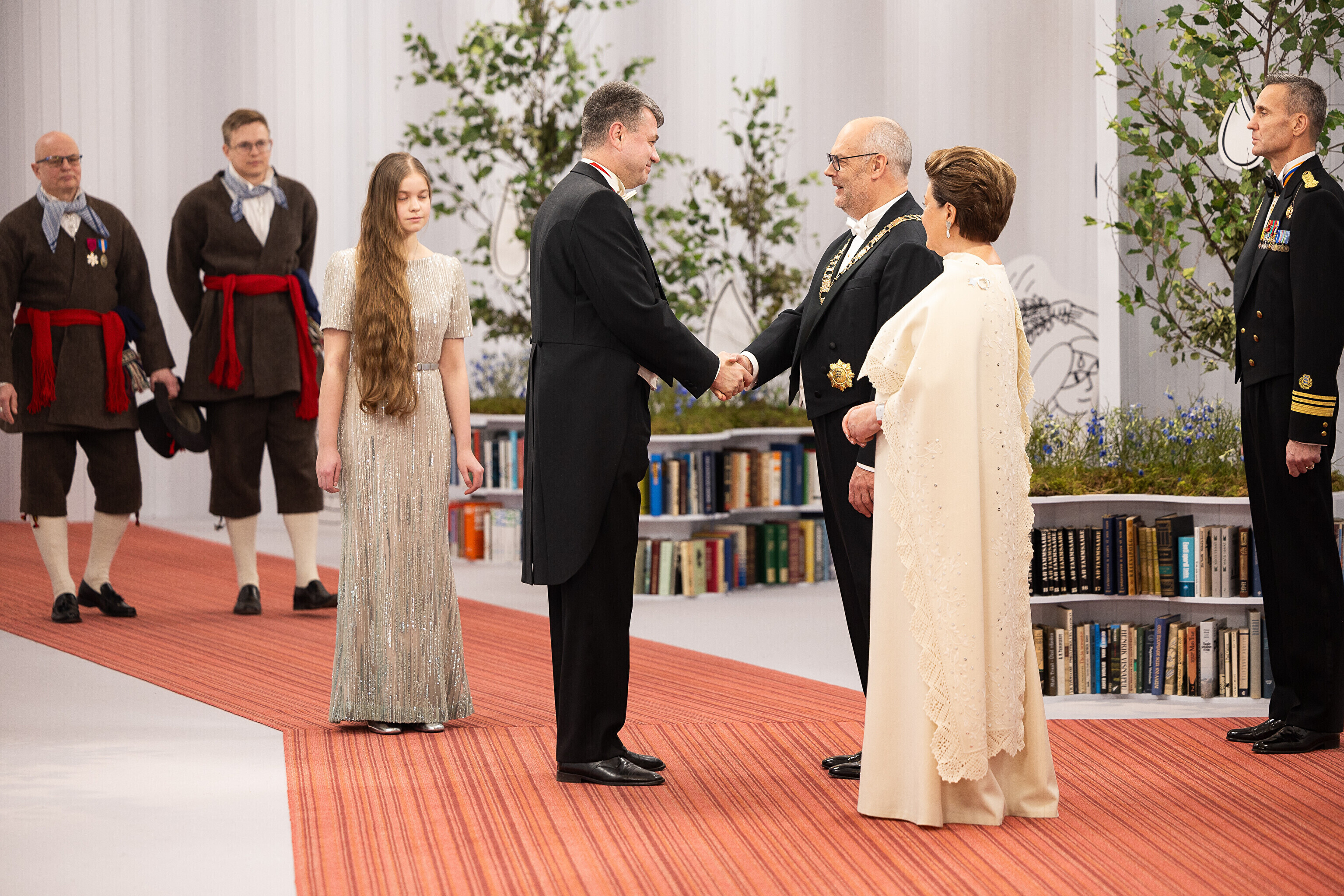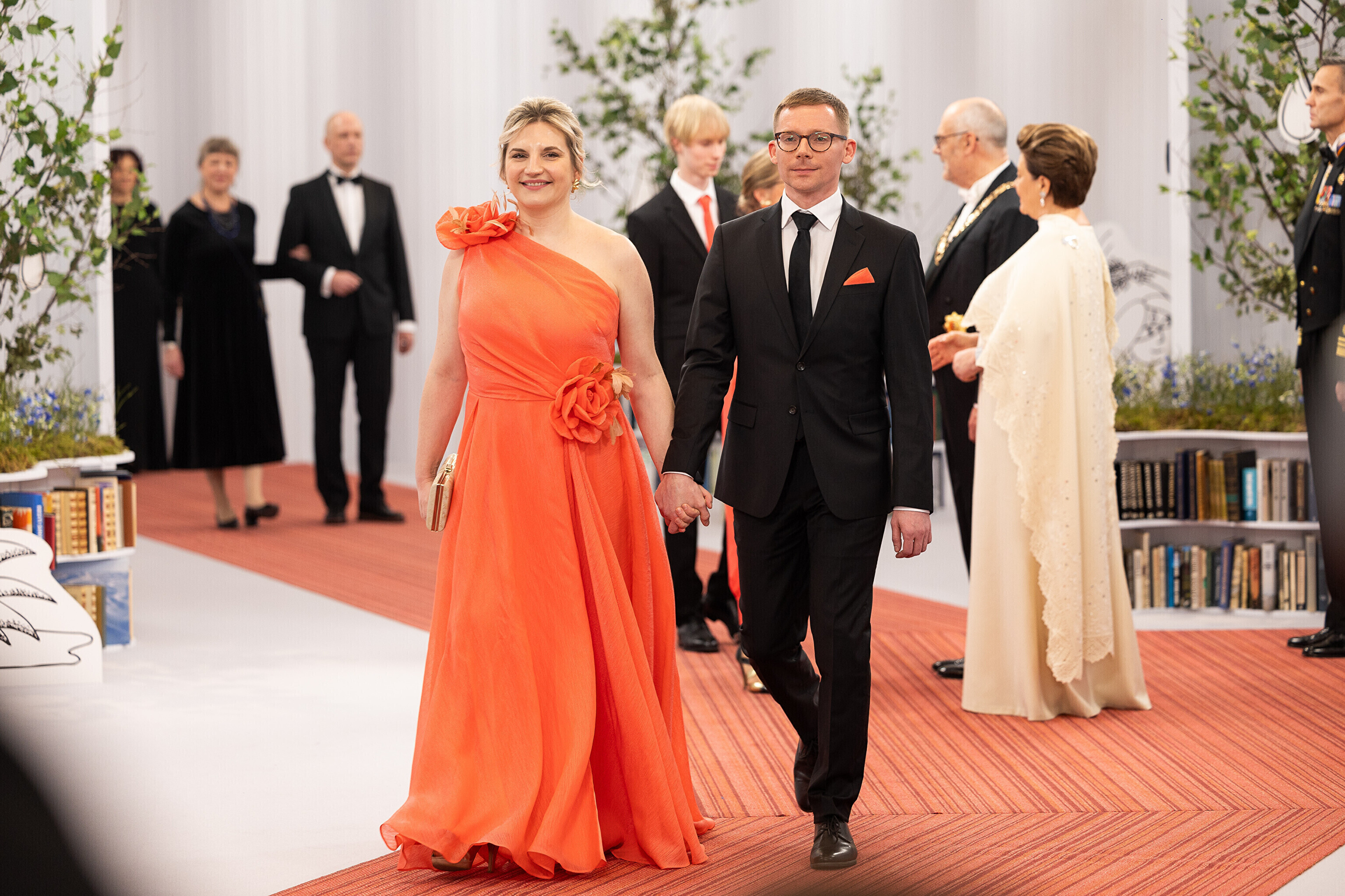 President Alar Karis ja proua Sirje Karis kutsusid Eesti Vabariigi 107. aastapäeva tähistamiseks Estoniasse vastuvõtule ligi 800 külalist. Galerii peomelust ja tervitustseremooniast täieneb jooksvalt.
