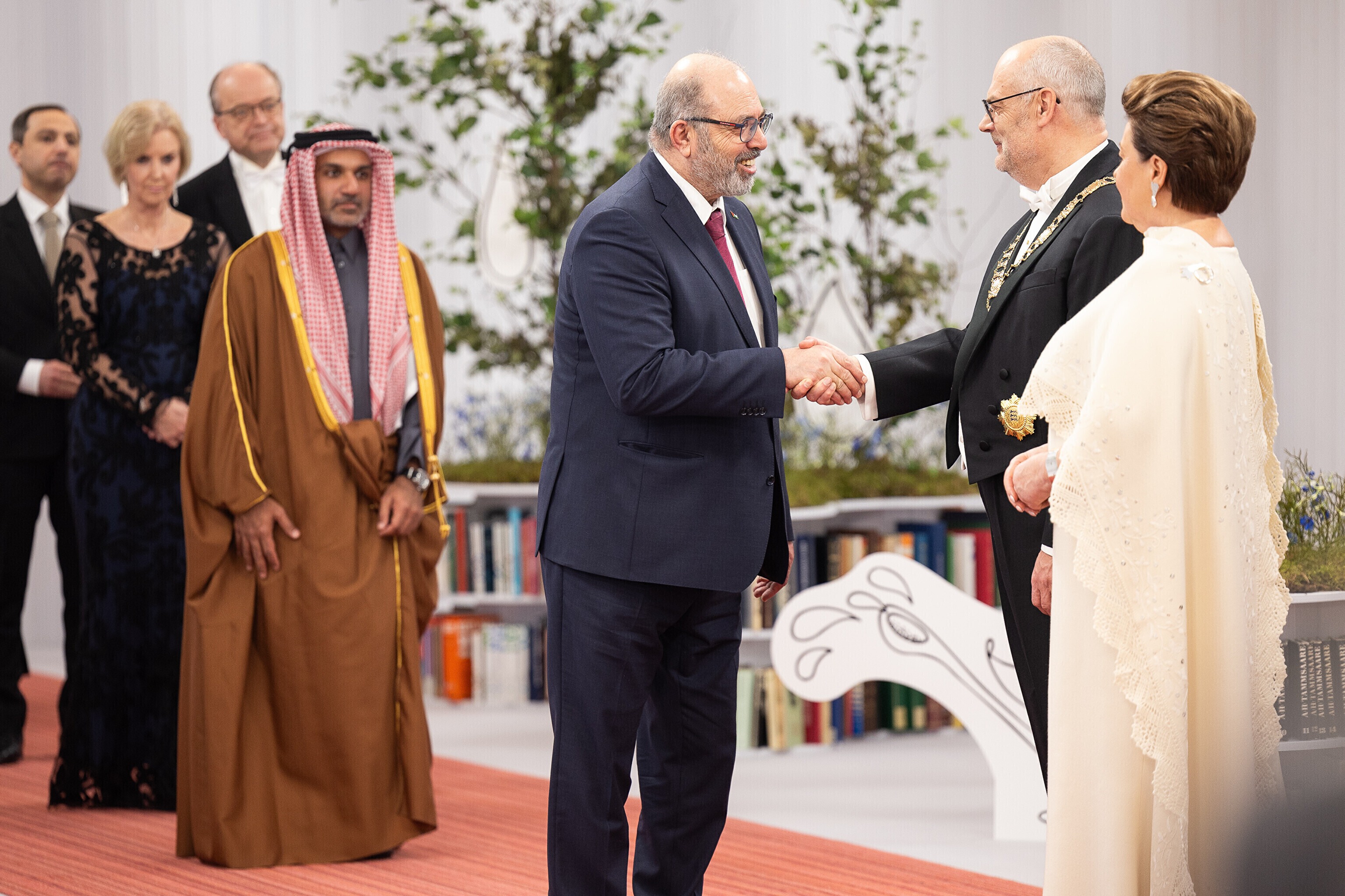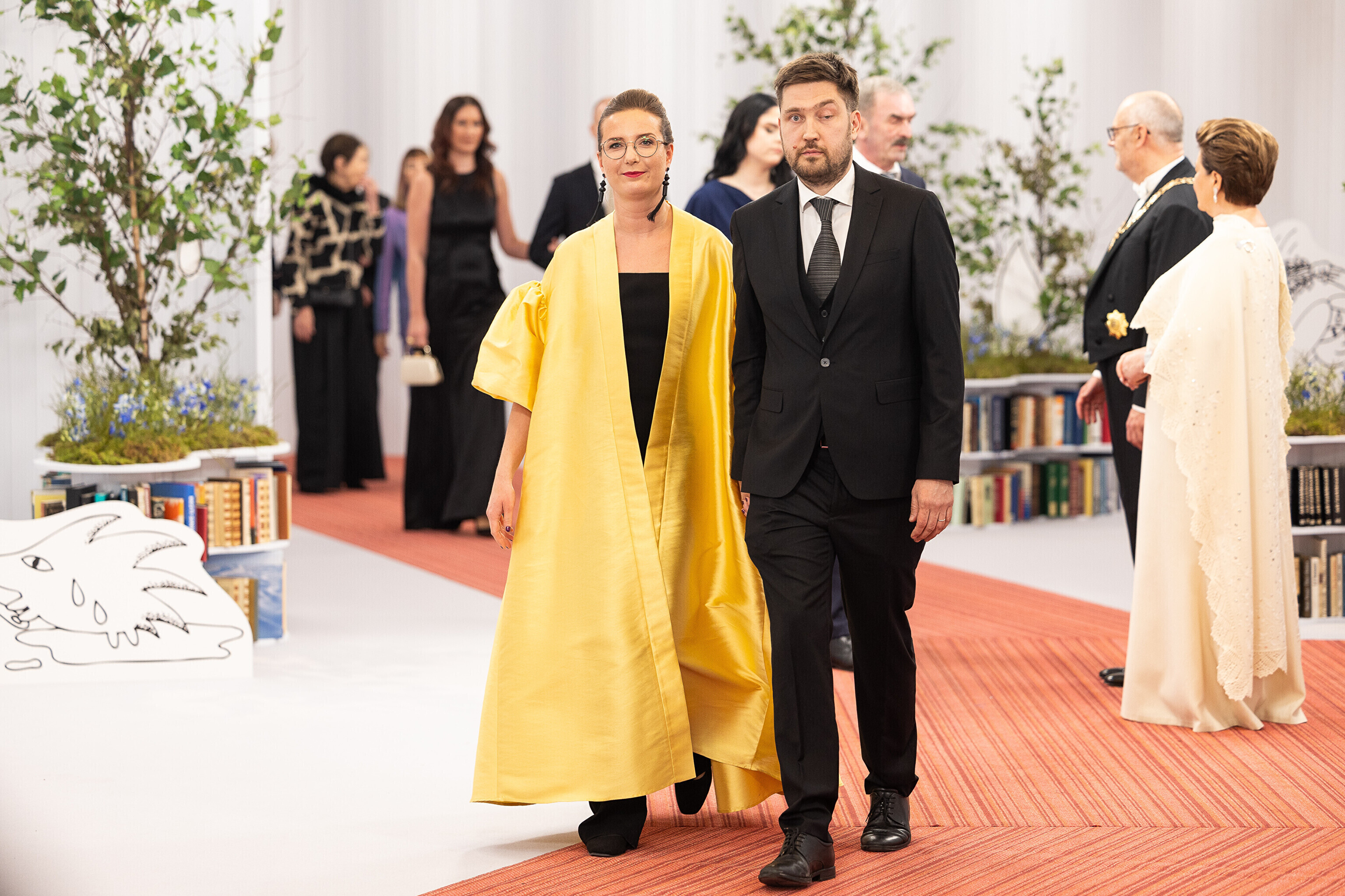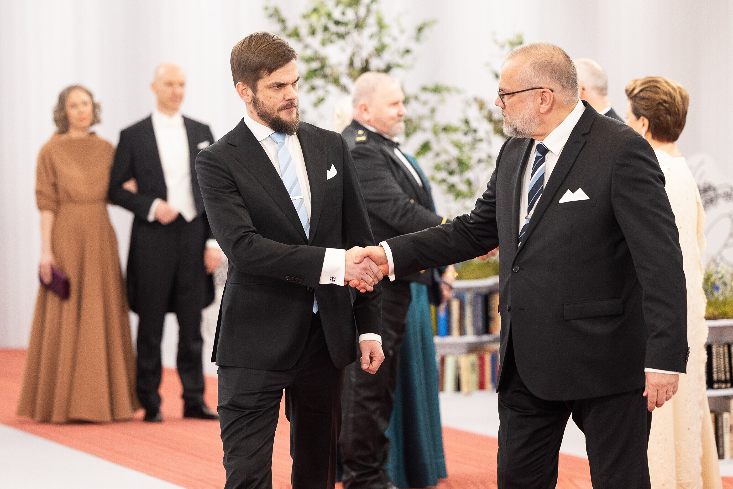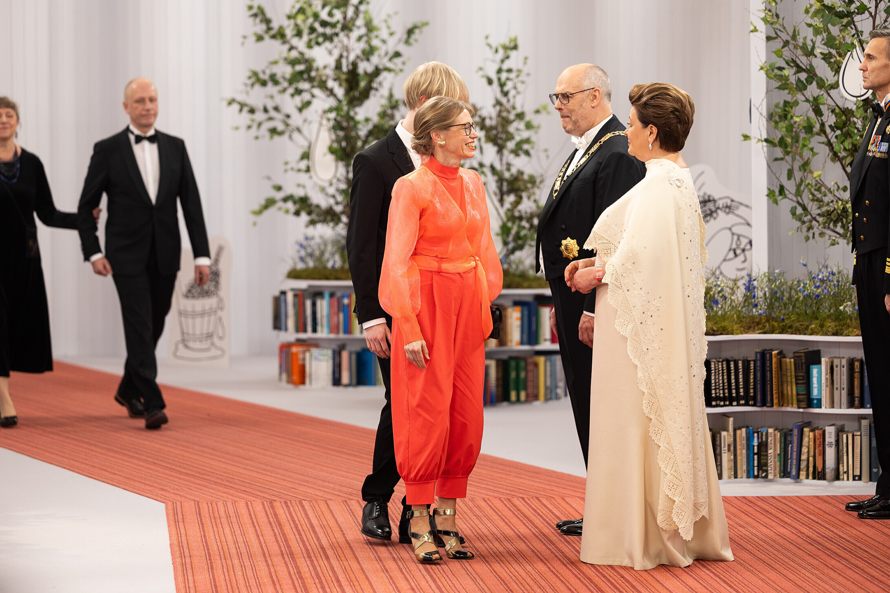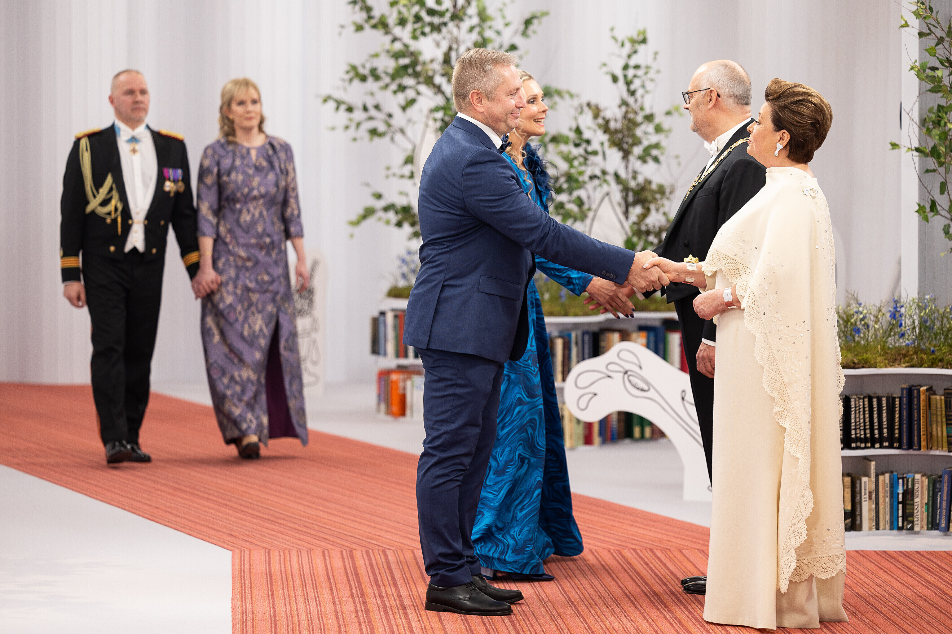 President Alar Karis ja proua Sirje Karis kutsusid Eesti Vabariigi 107. aastapäeva tähistamiseks Estoniasse vastuvõtule ligi 800 külalist. Galerii peomelust ja tervitustseremooniast täieneb jooksvalt.