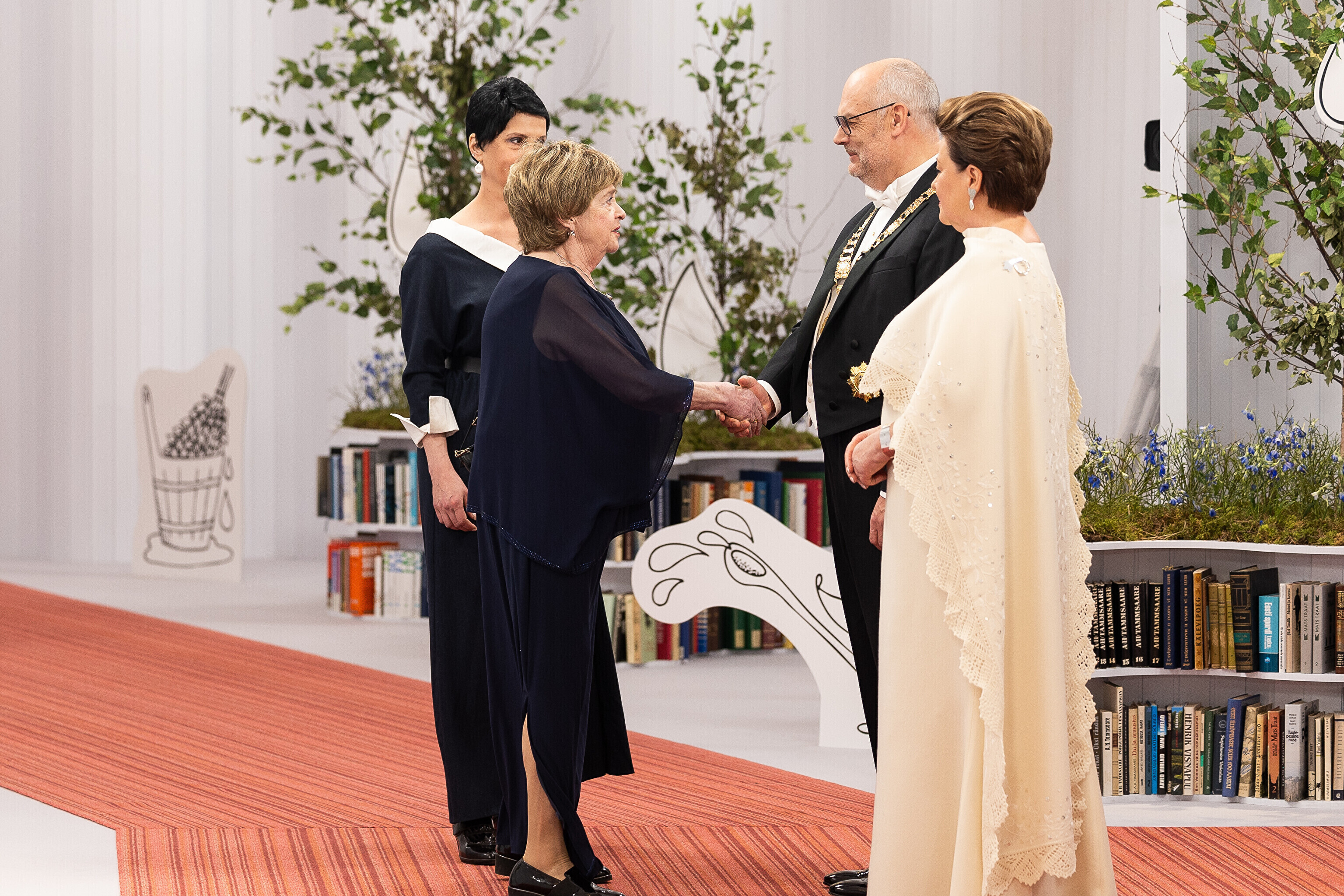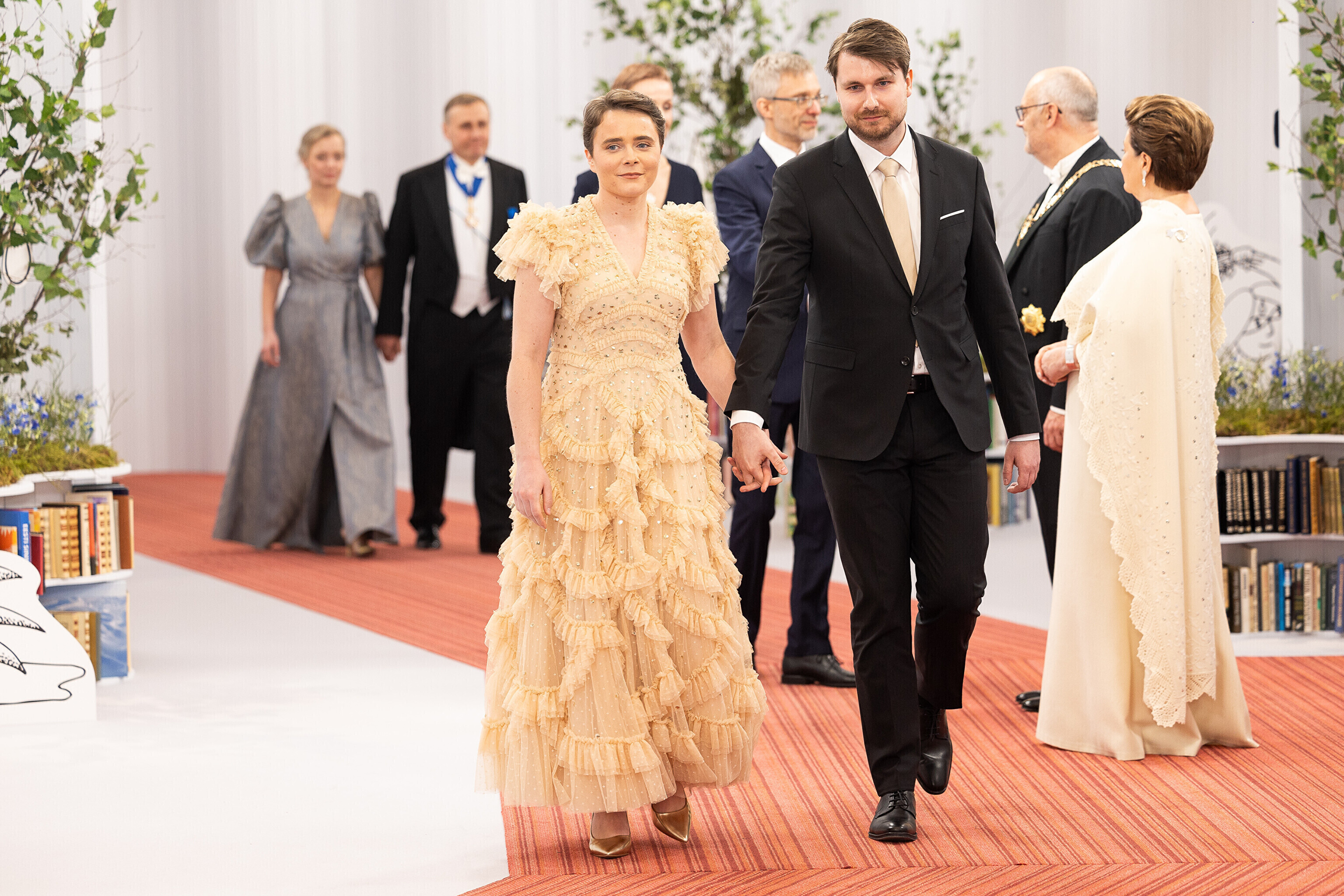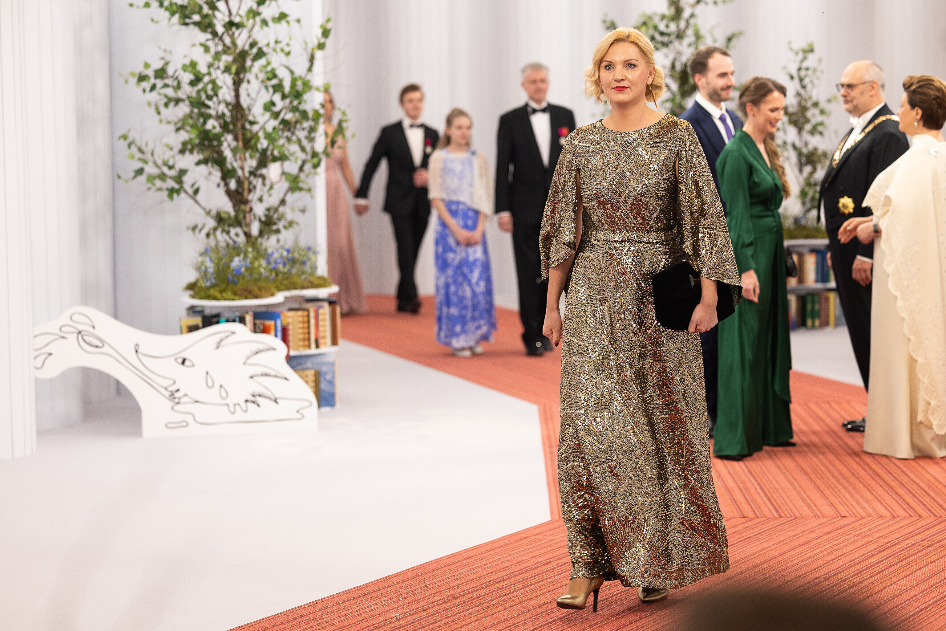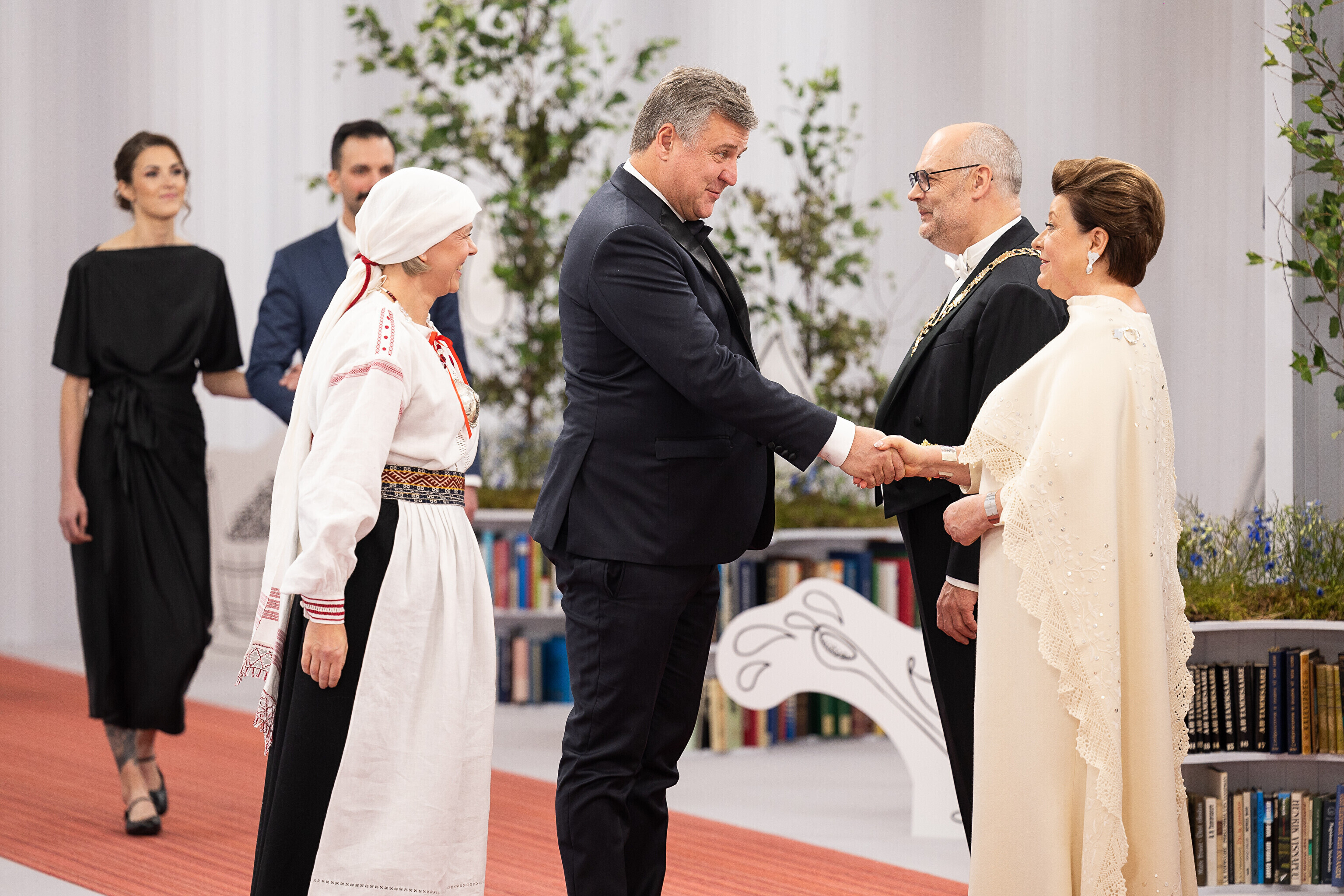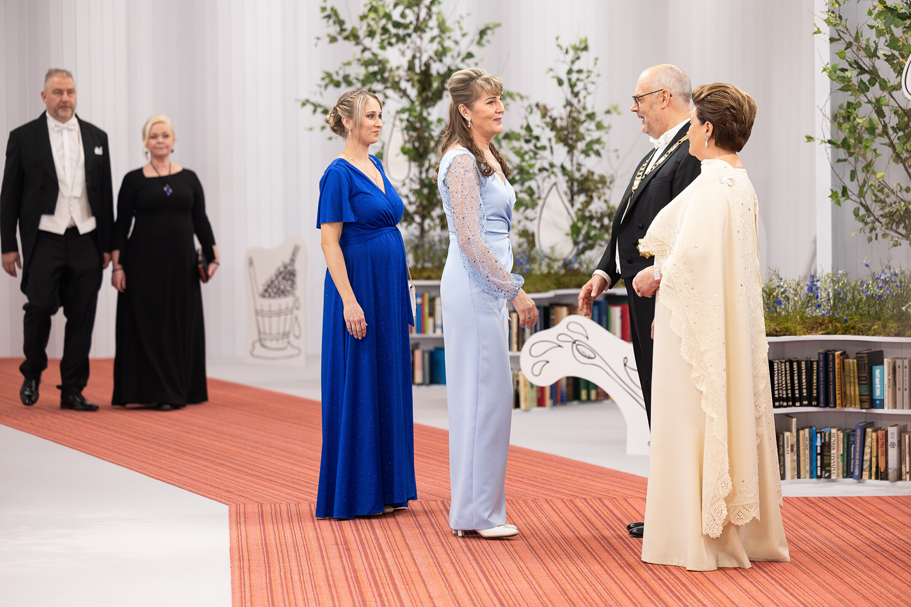 President Alar Karis ja proua Sirje Karis kutsusid Eesti Vabariigi 107. aastapäeva tähistamiseks Estoniasse vastuvõtule ligi 800 külalist. Galerii peomelust ja tervitustseremooniast täieneb jooksvalt.