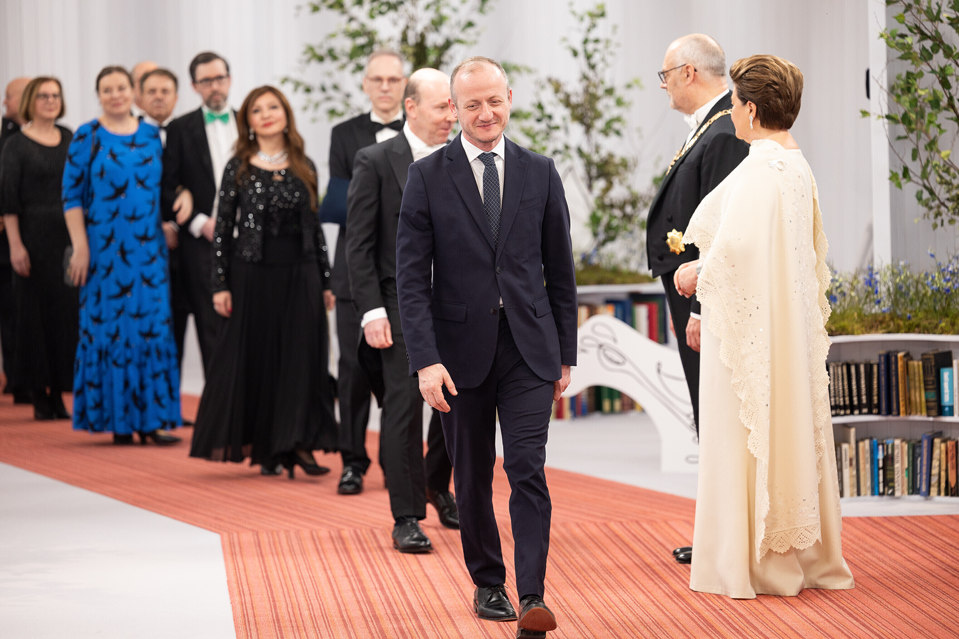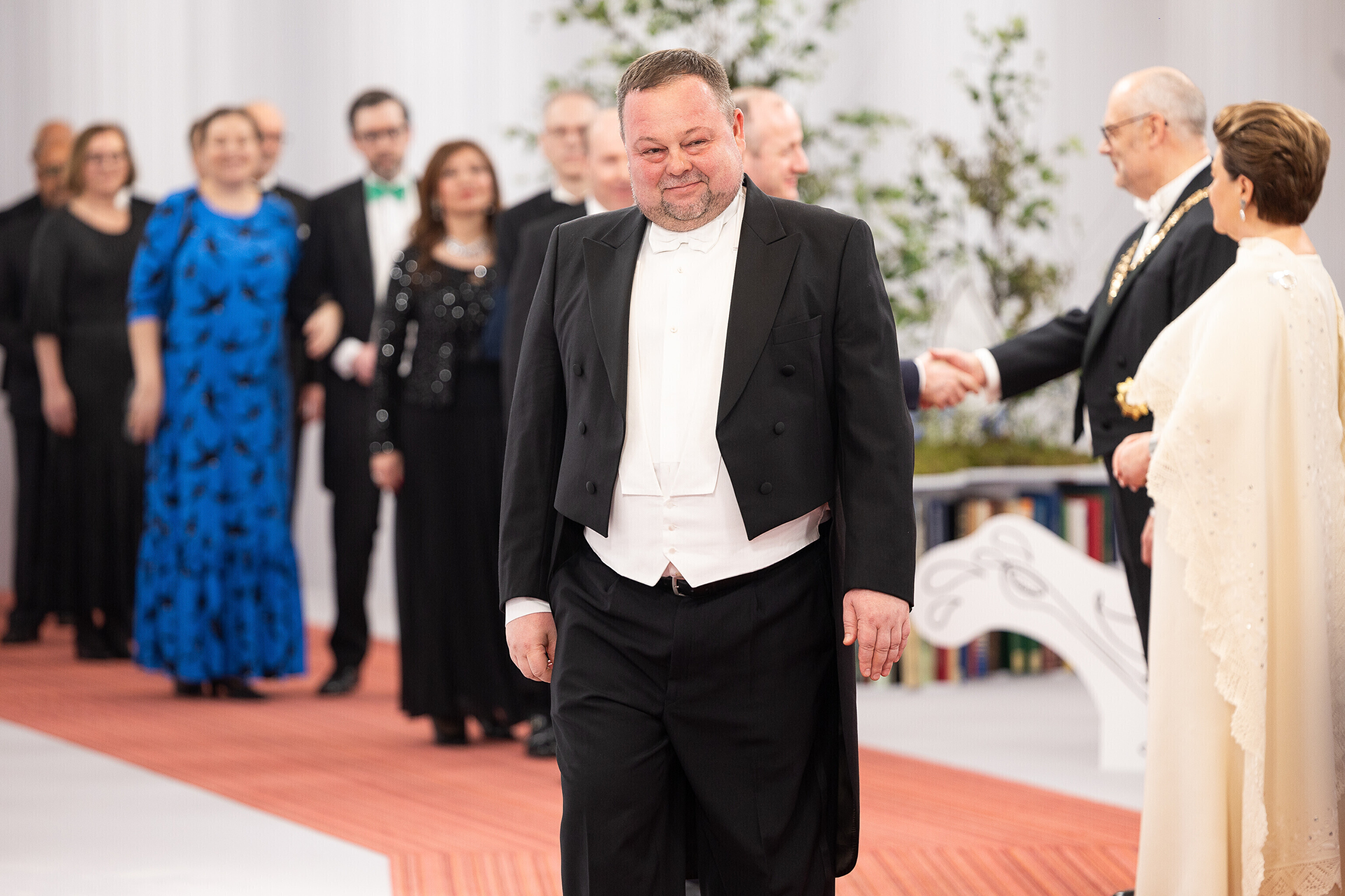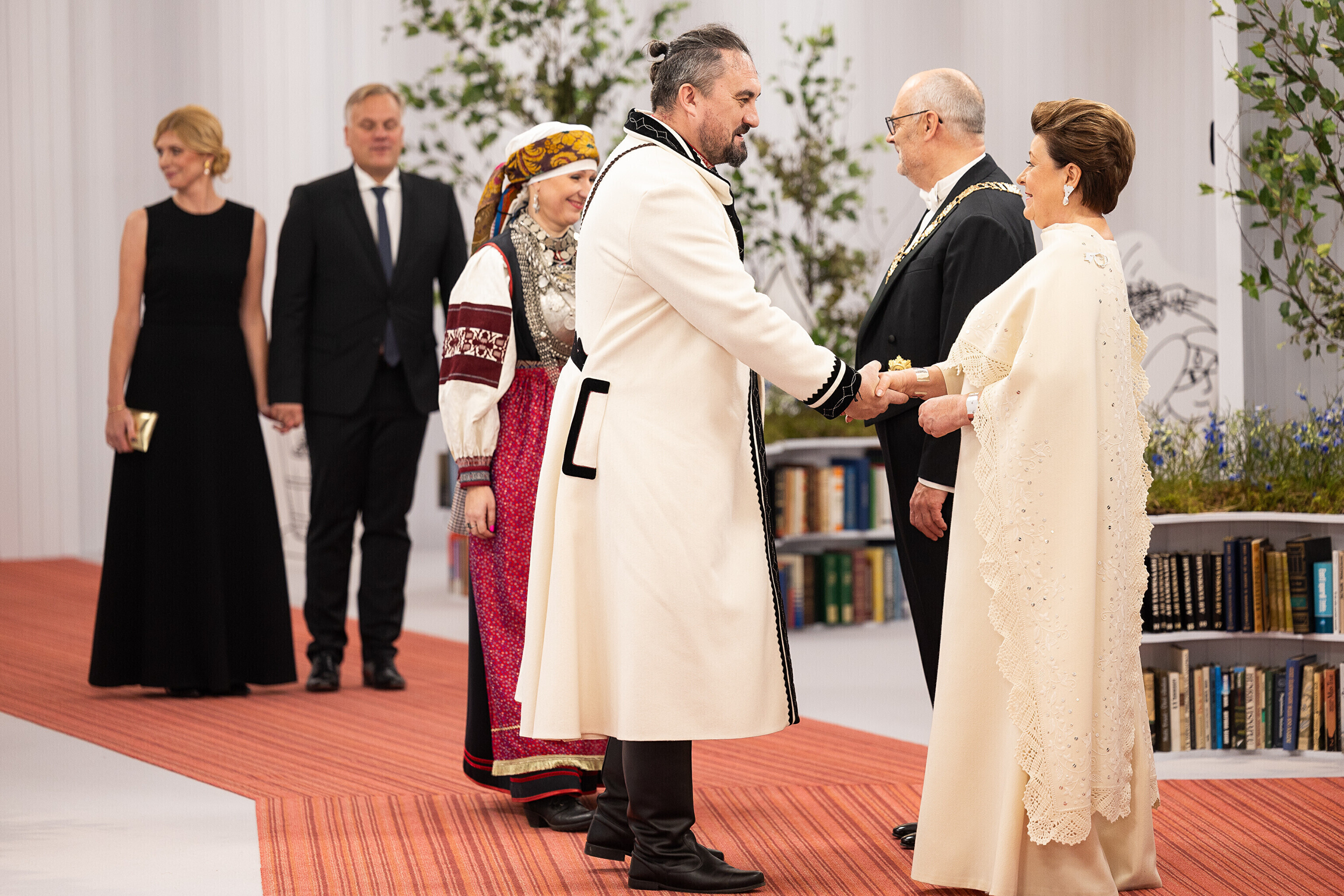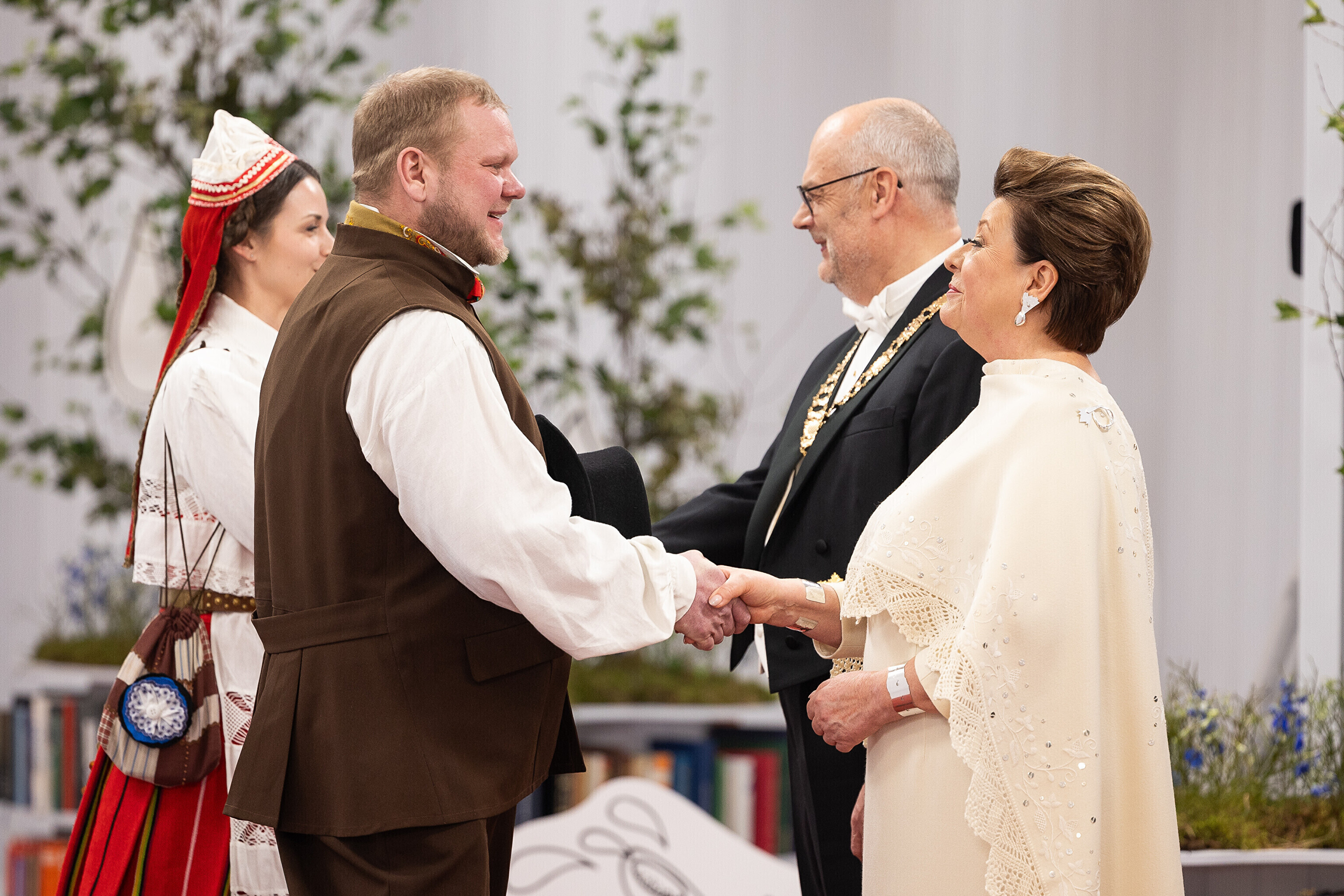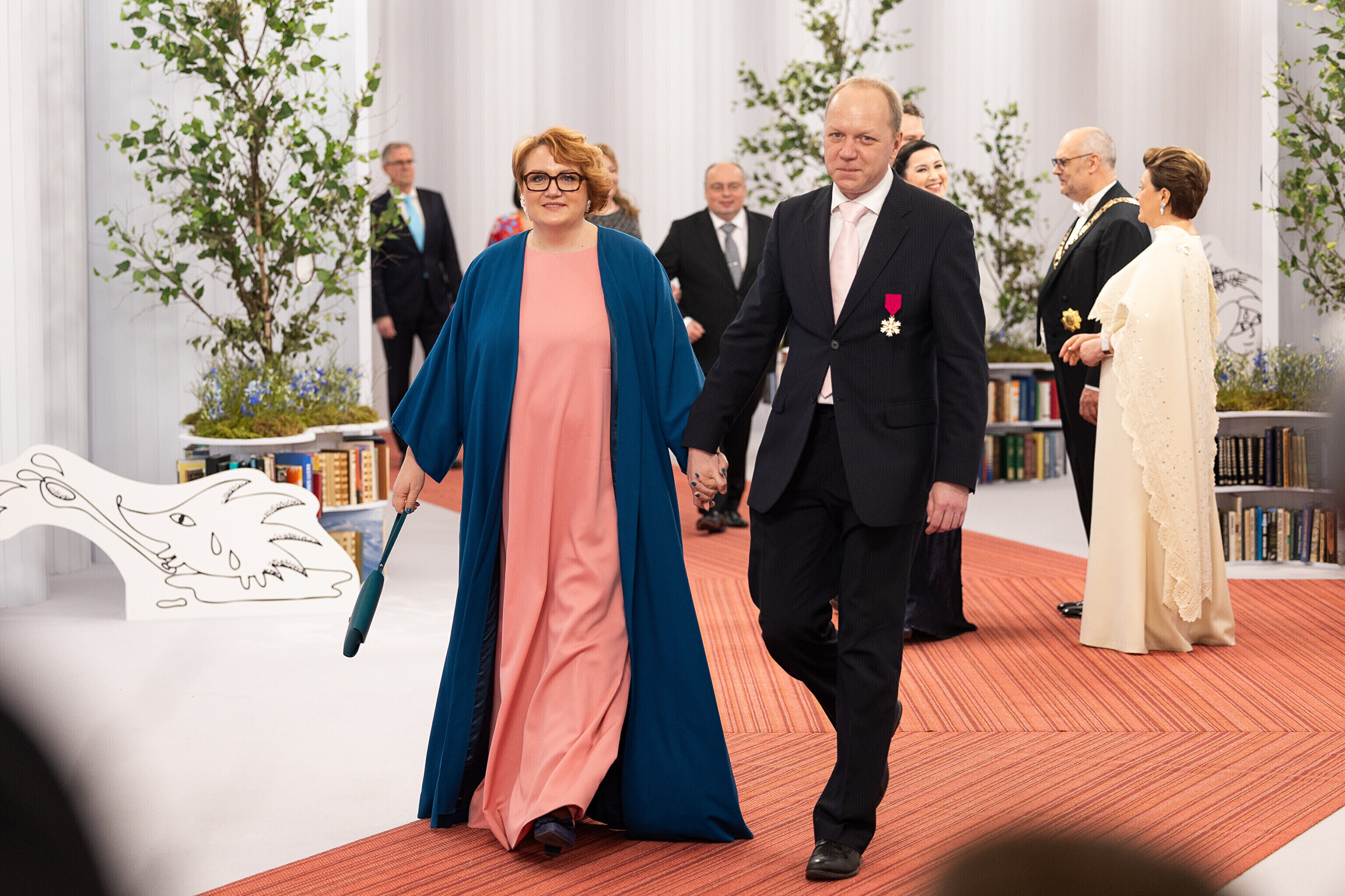 President Alar Karis ja proua Sirje Karis kutsusid Eesti Vabariigi 107. aastapäeva tähistamiseks Estoniasse vastuvõtule ligi 800 külalist. Galerii peomelust ja tervitustseremooniast täieneb jooksvalt.