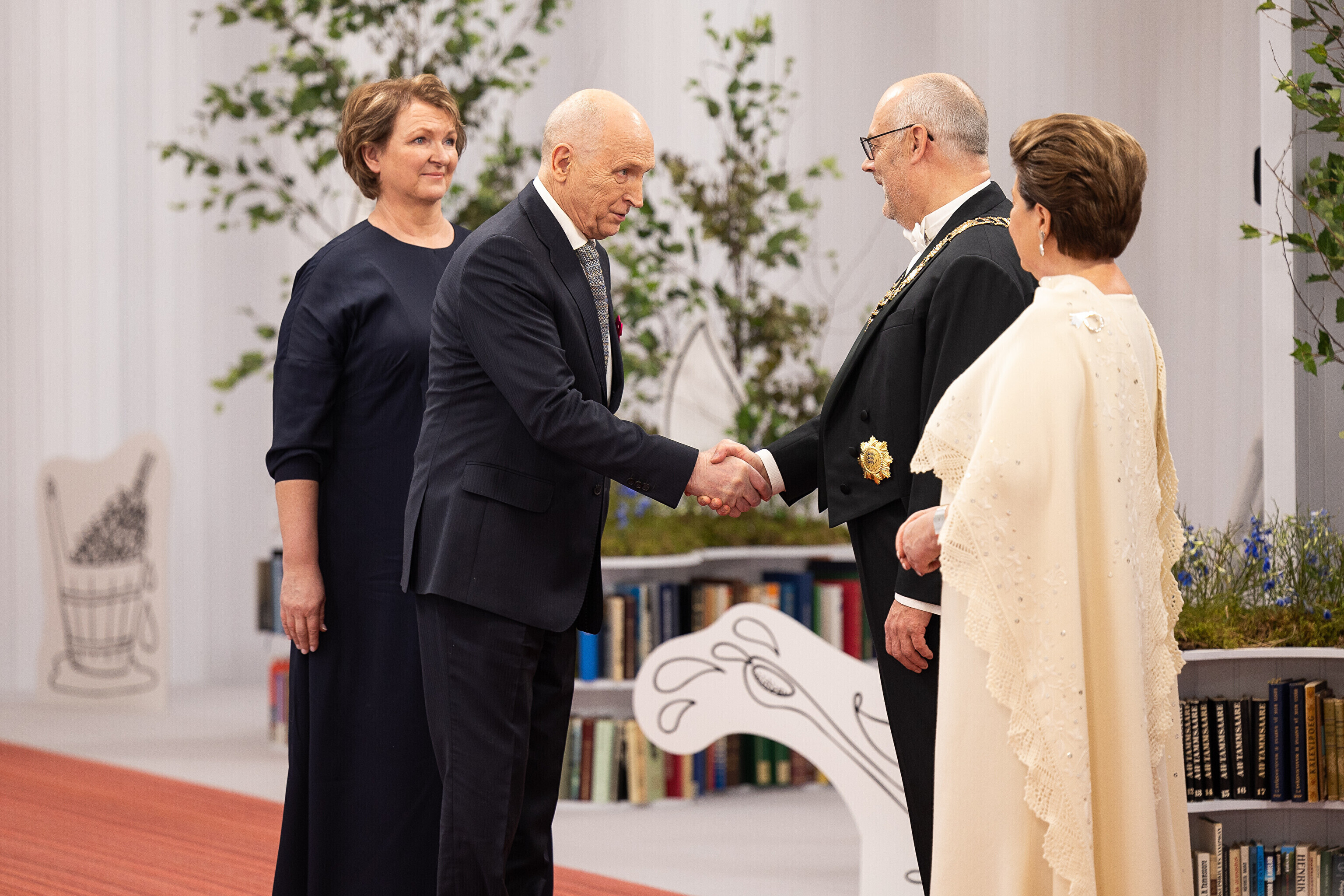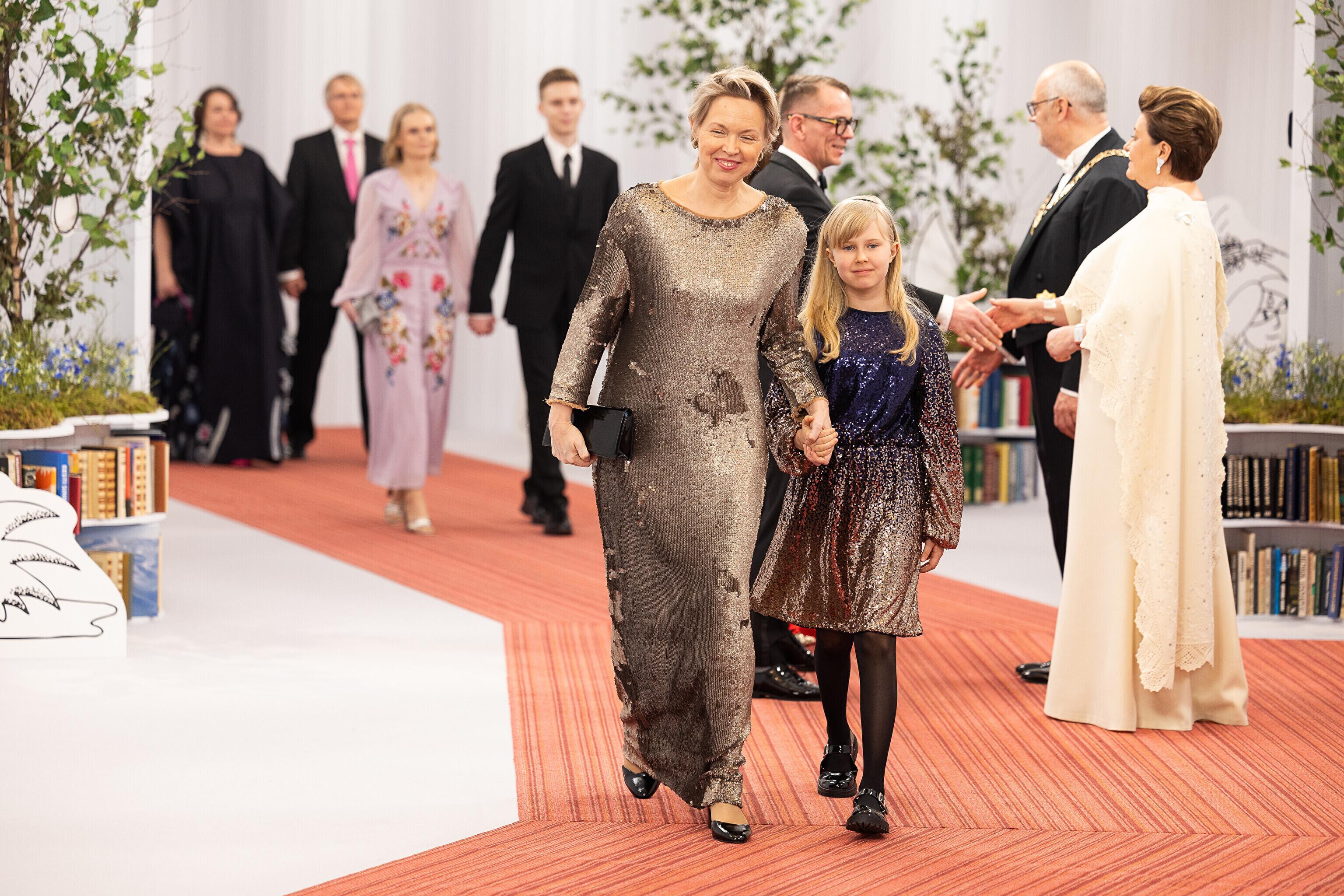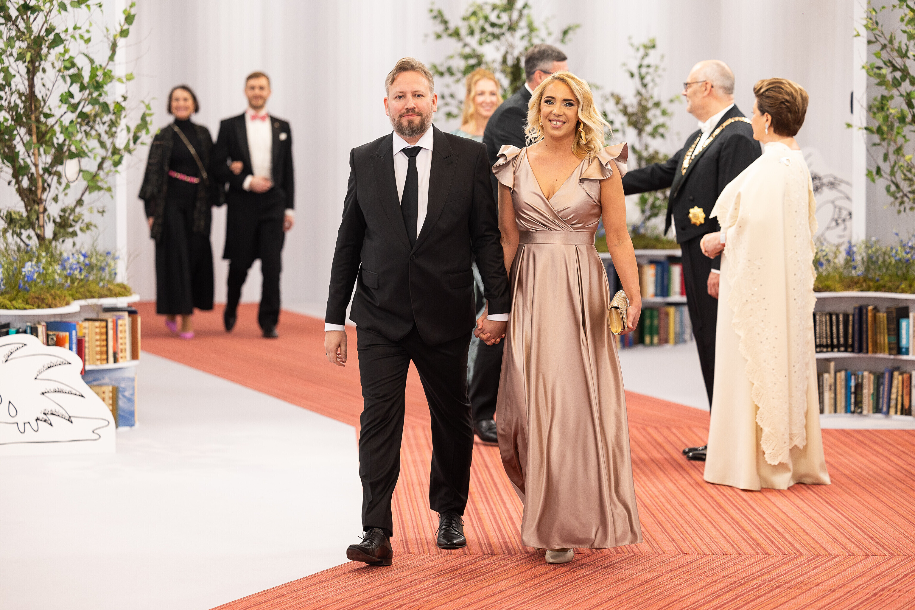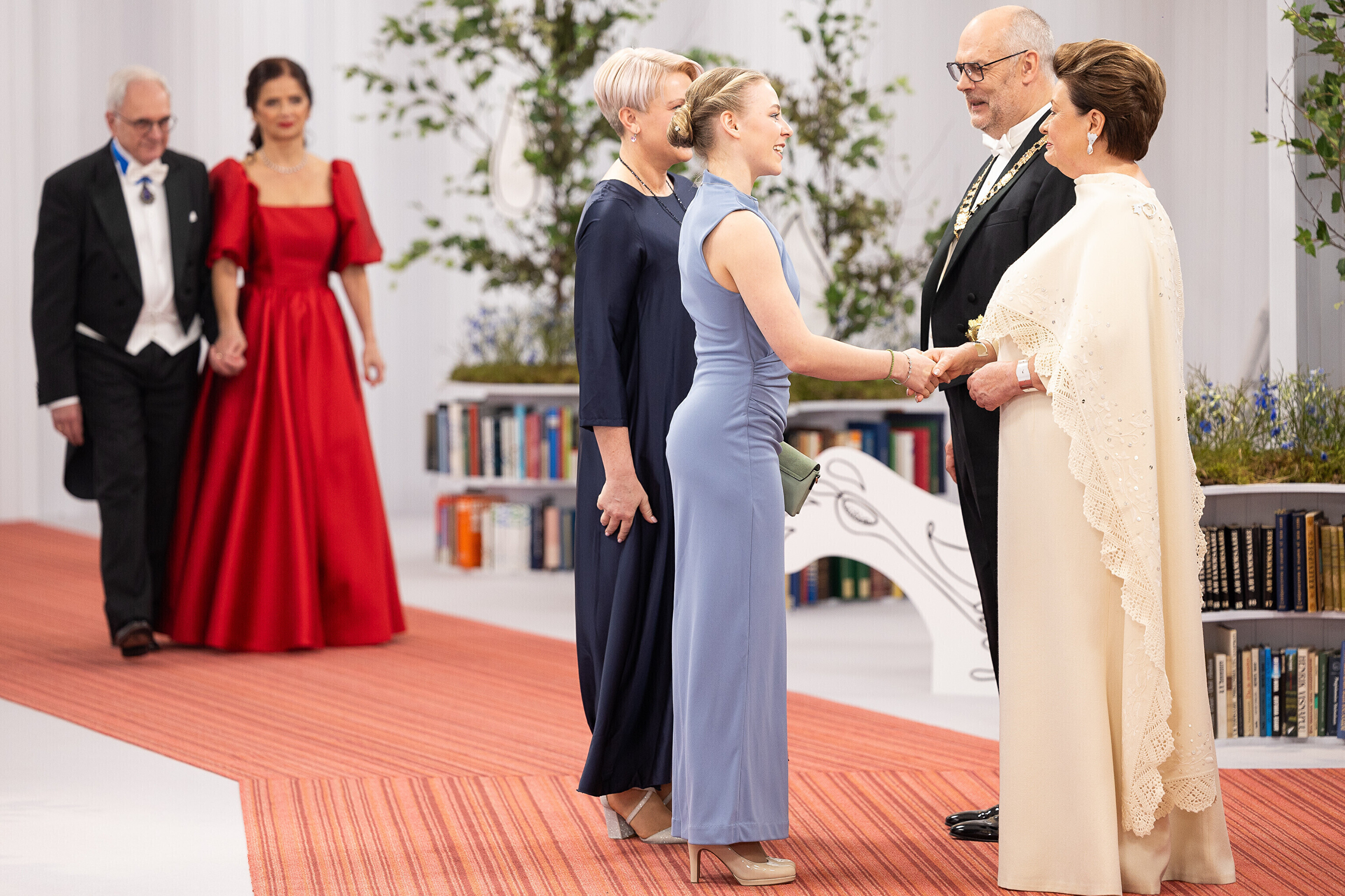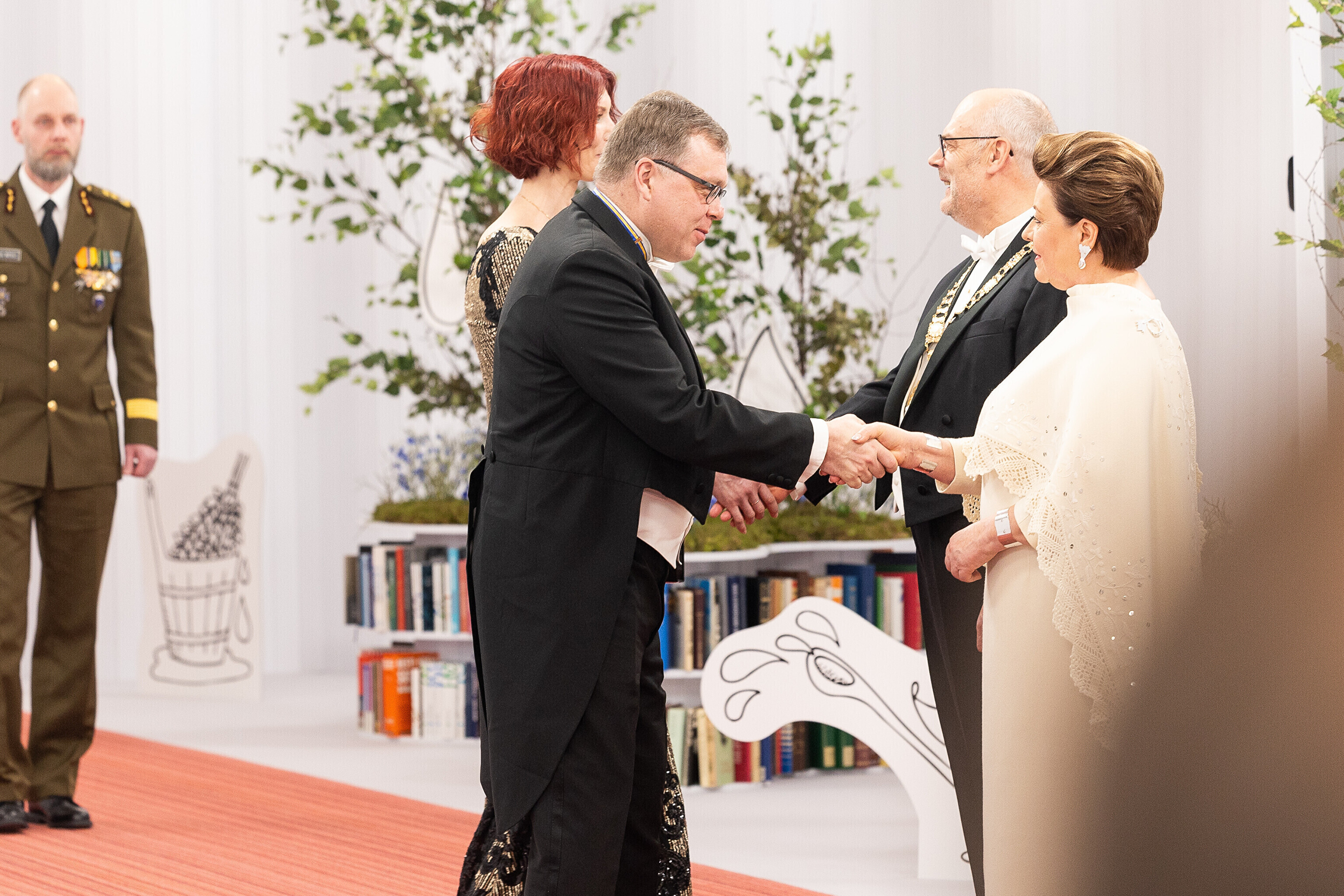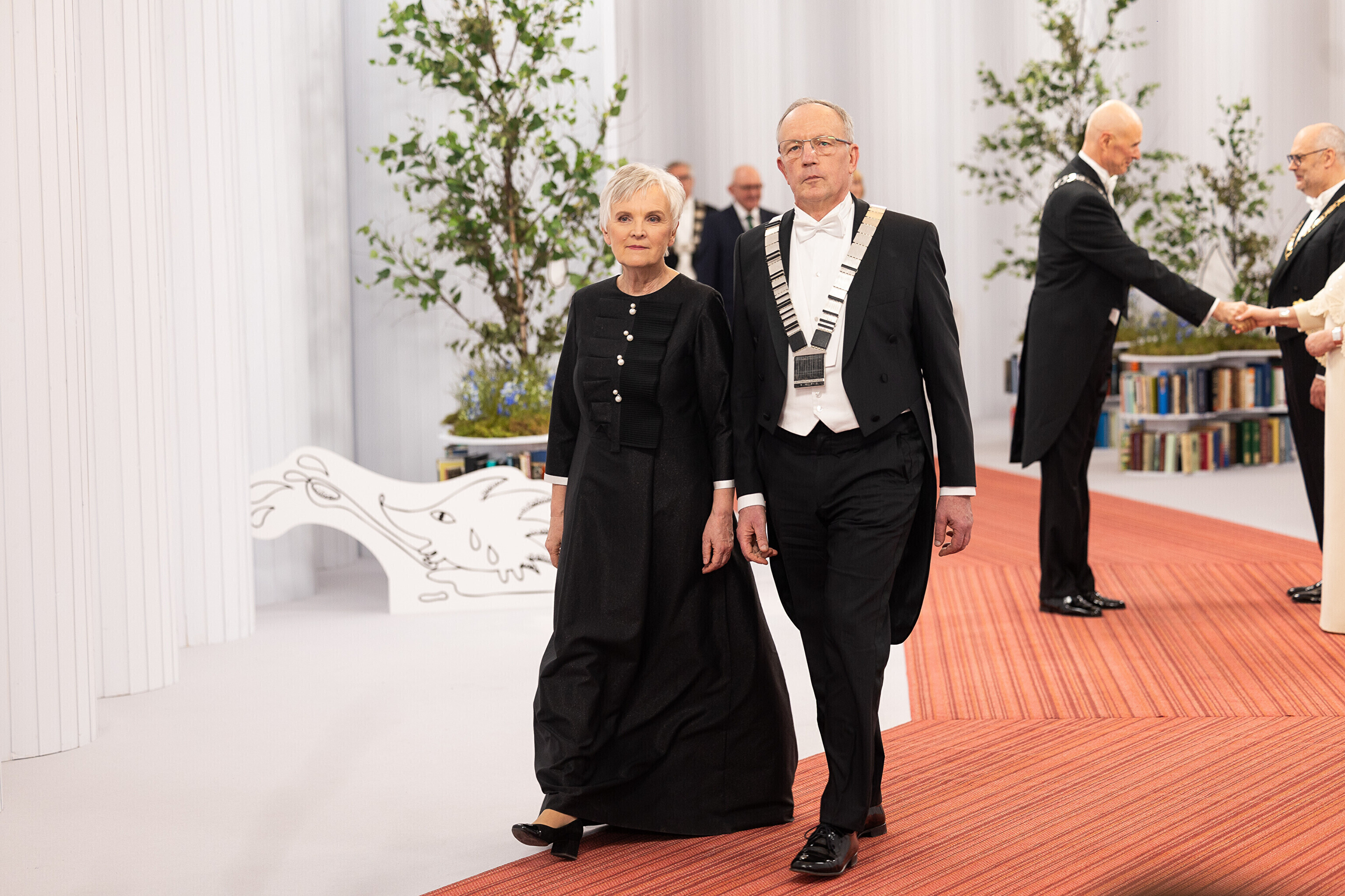 President Alar Karis ja proua Sirje Karis kutsusid Eesti Vabariigi 107. aastapäeva tähistamiseks Estoniasse vastuvõtule ligi 800 külalist. Galerii peomelust ja tervitustseremooniast täieneb jooksvalt.