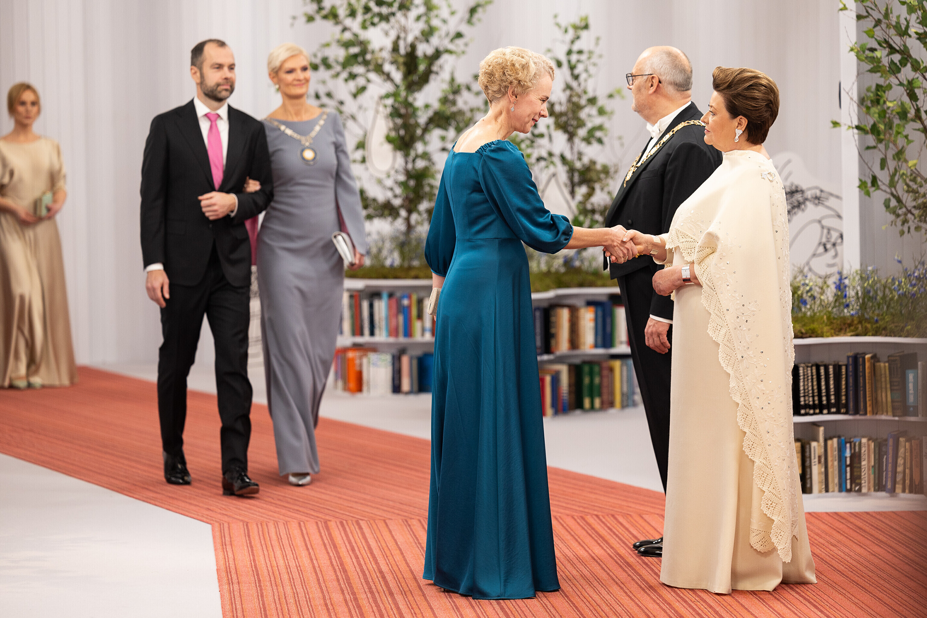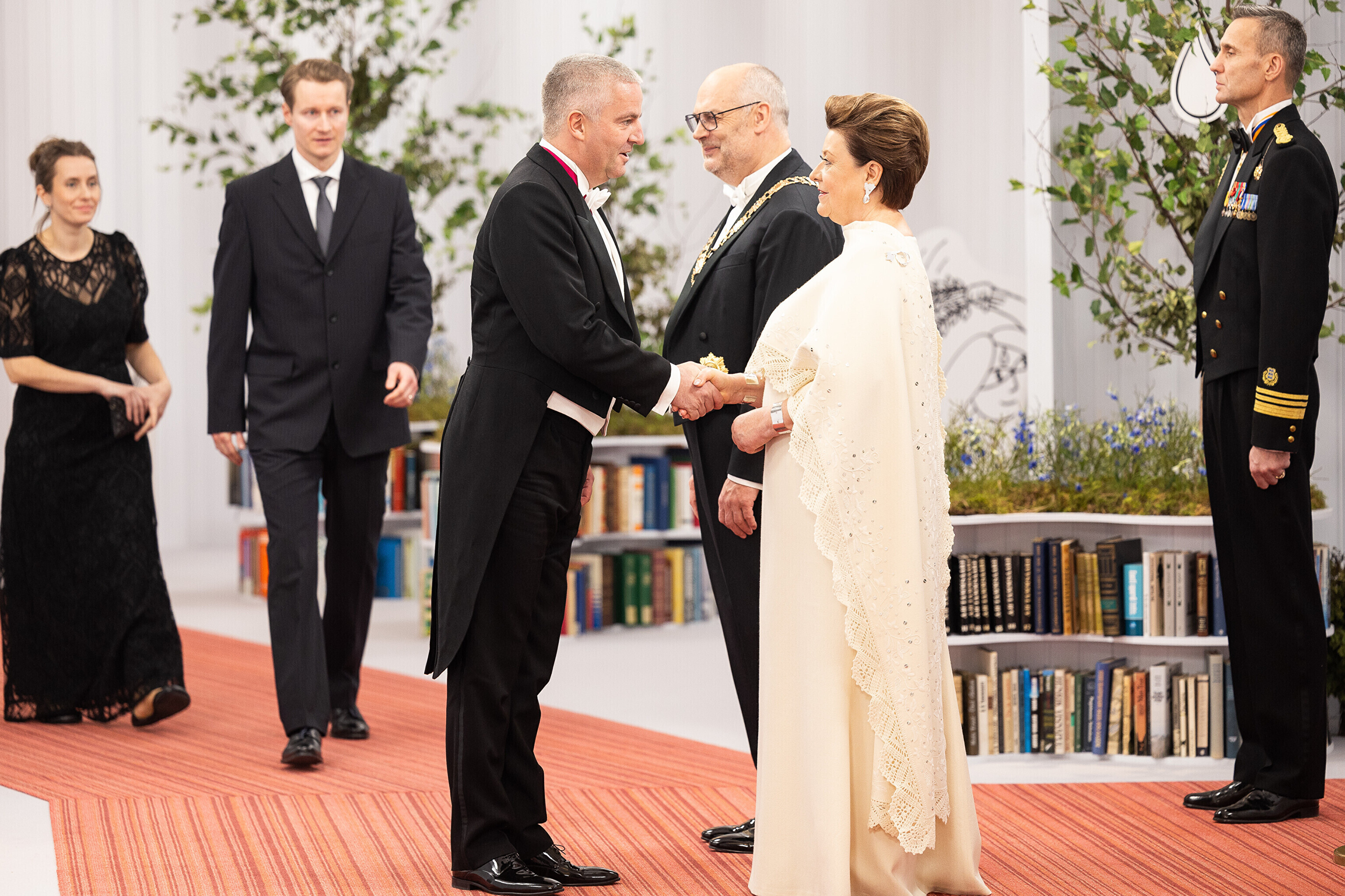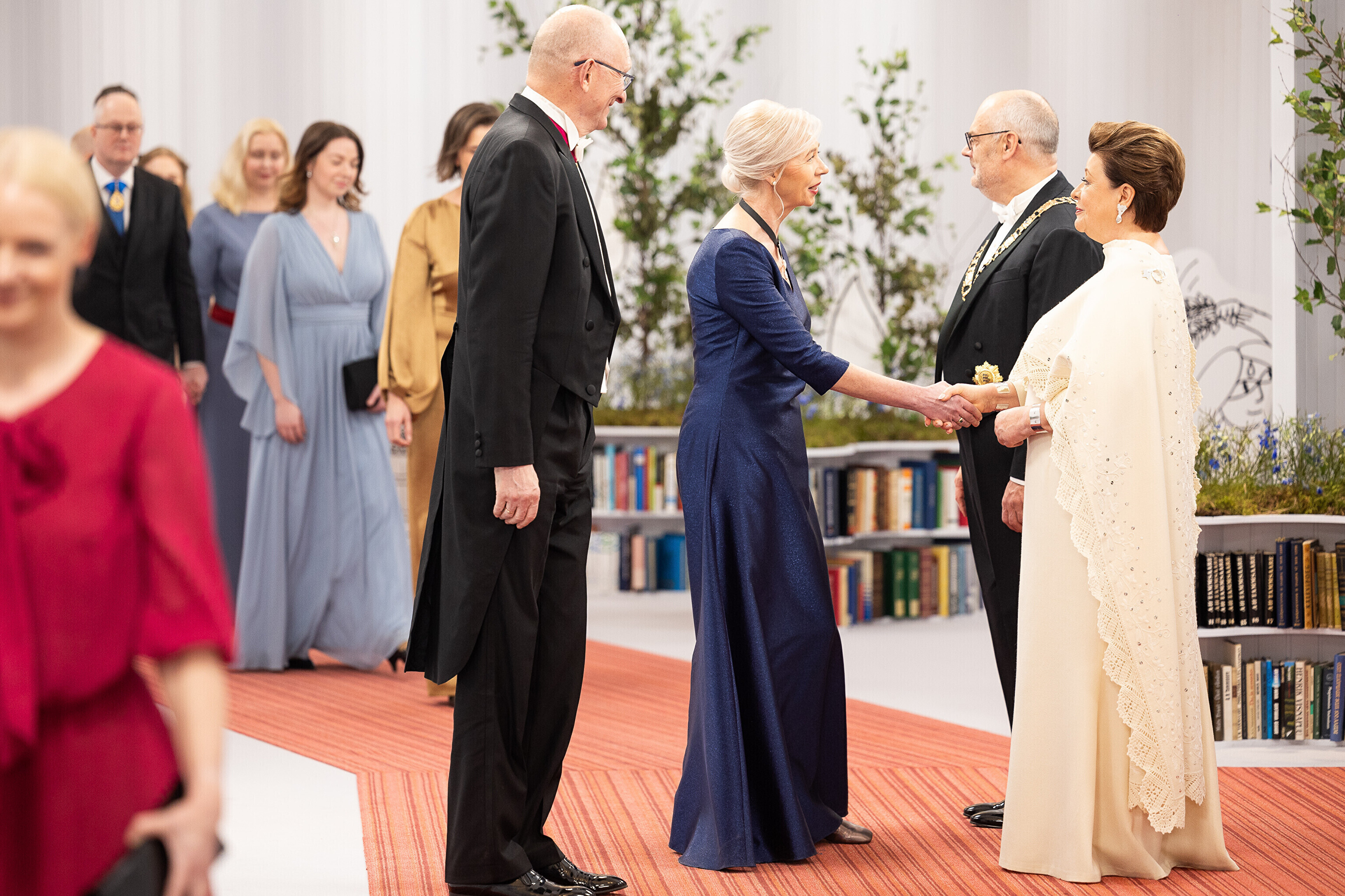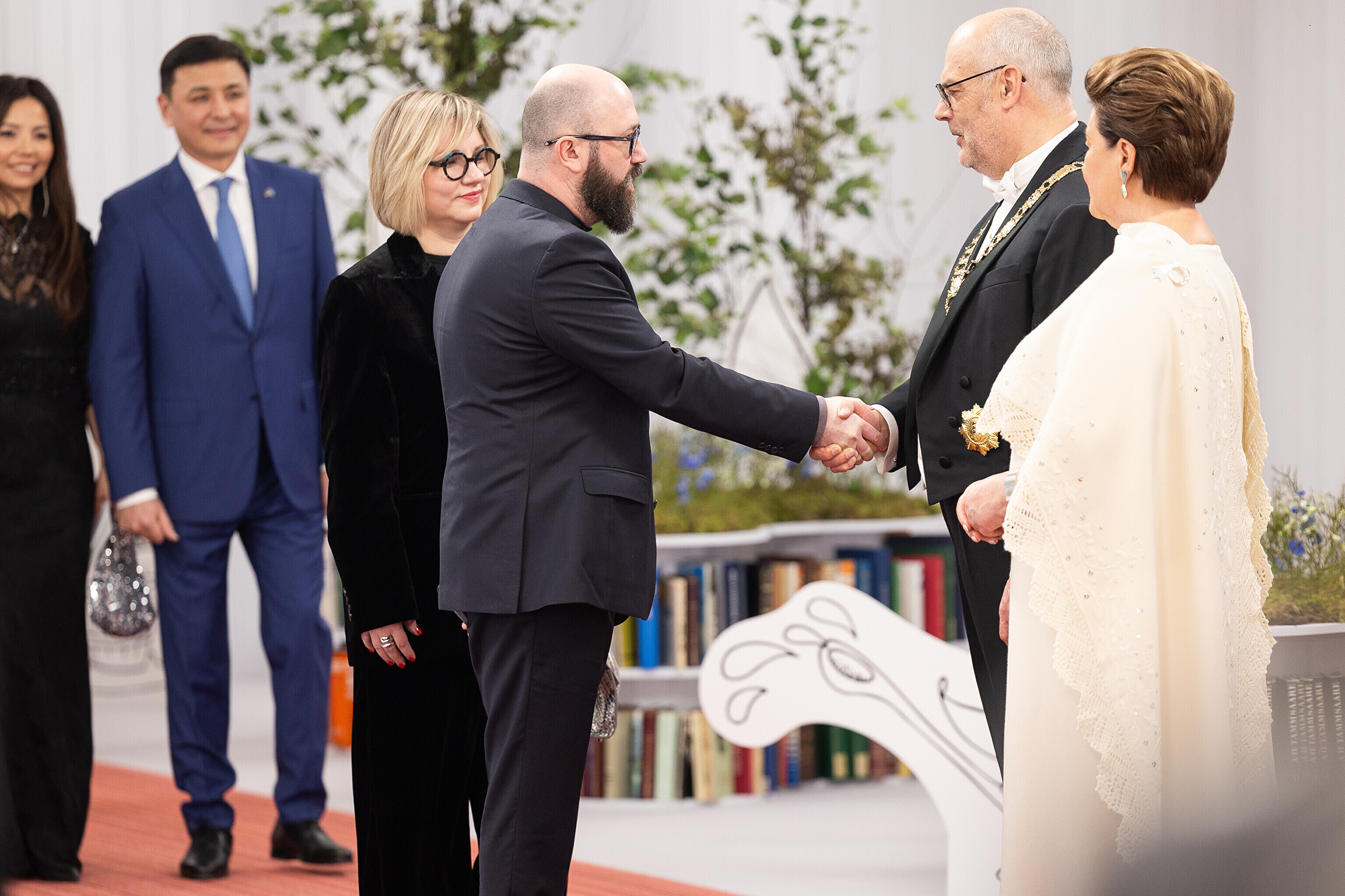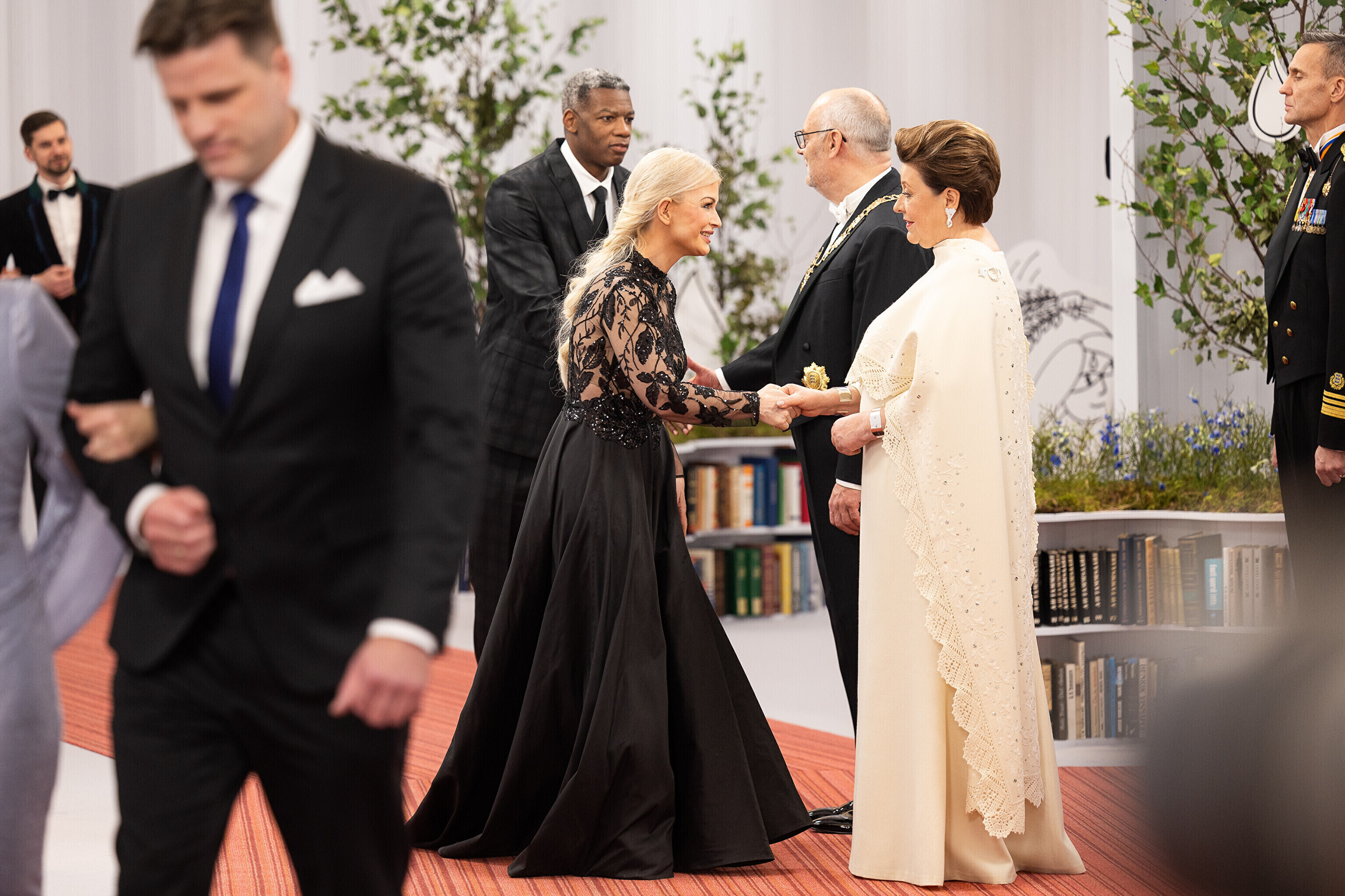 President Alar Karis ja proua Sirje Karis kutsusid Eesti Vabariigi 107. aastapäeva tähistamiseks Estoniasse vastuvõtule ligi 800 külalist. Galerii peomelust ja tervitustseremooniast täieneb jooksvalt.