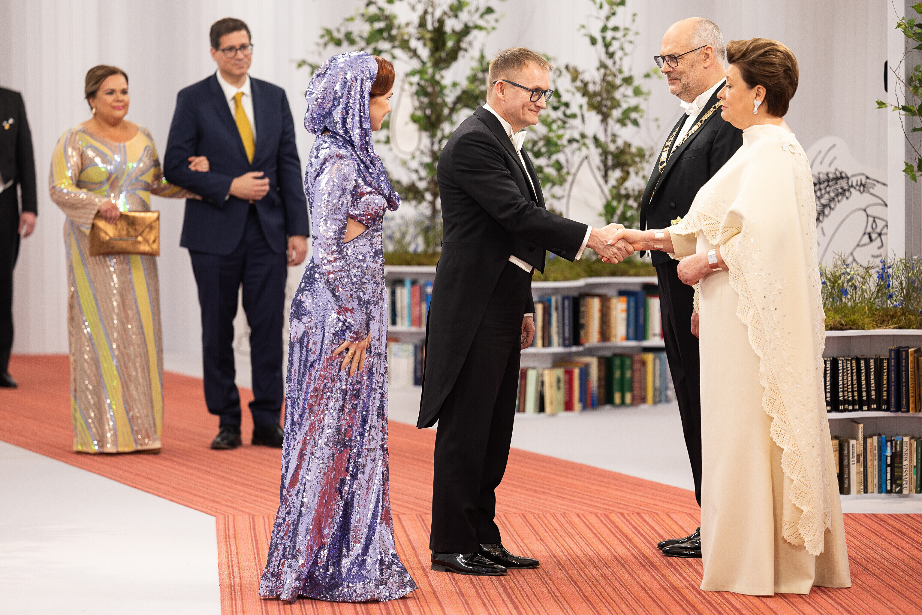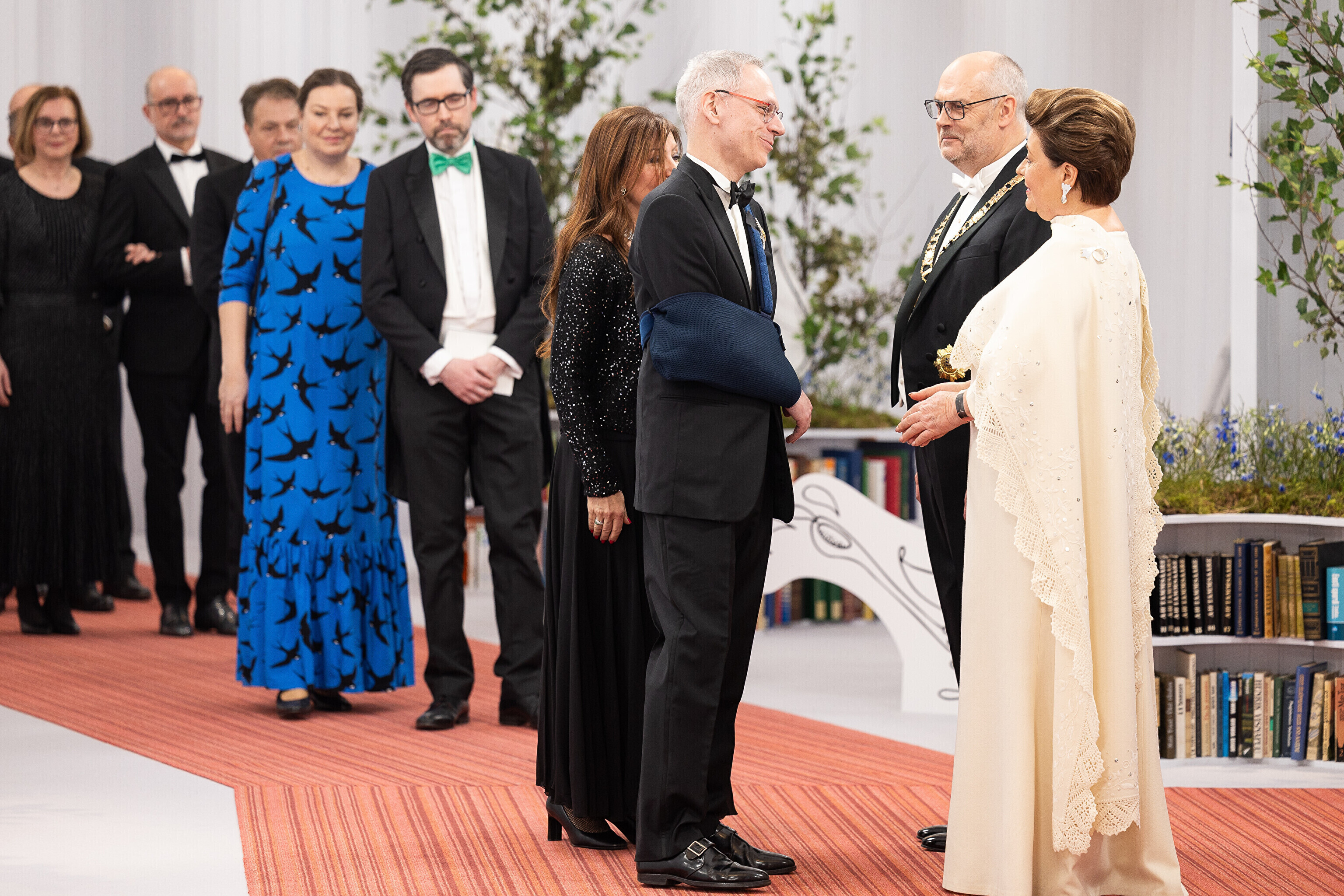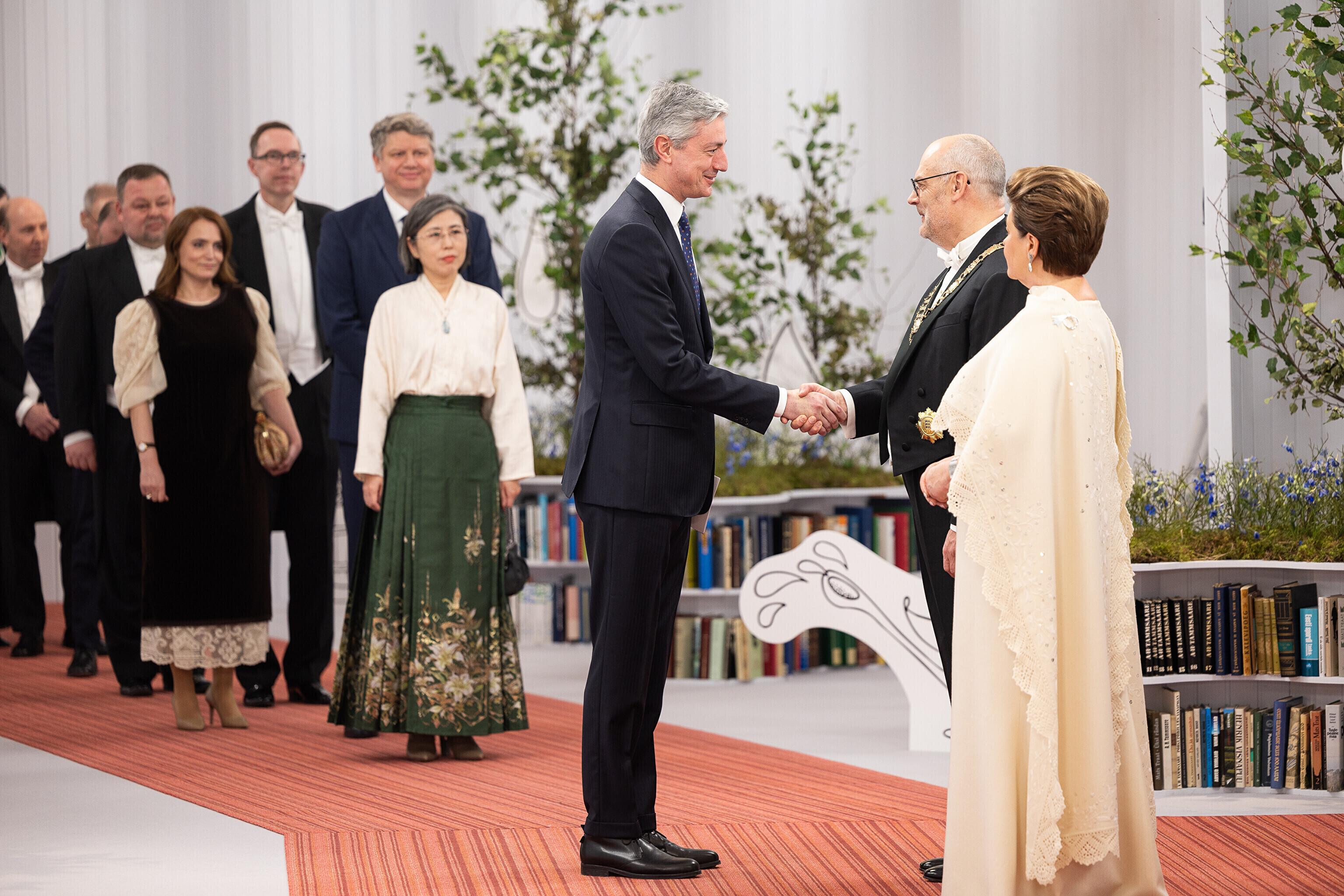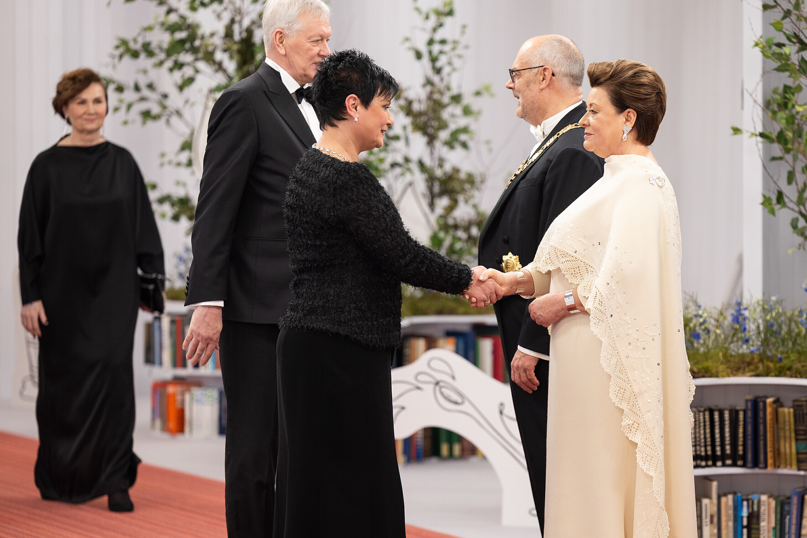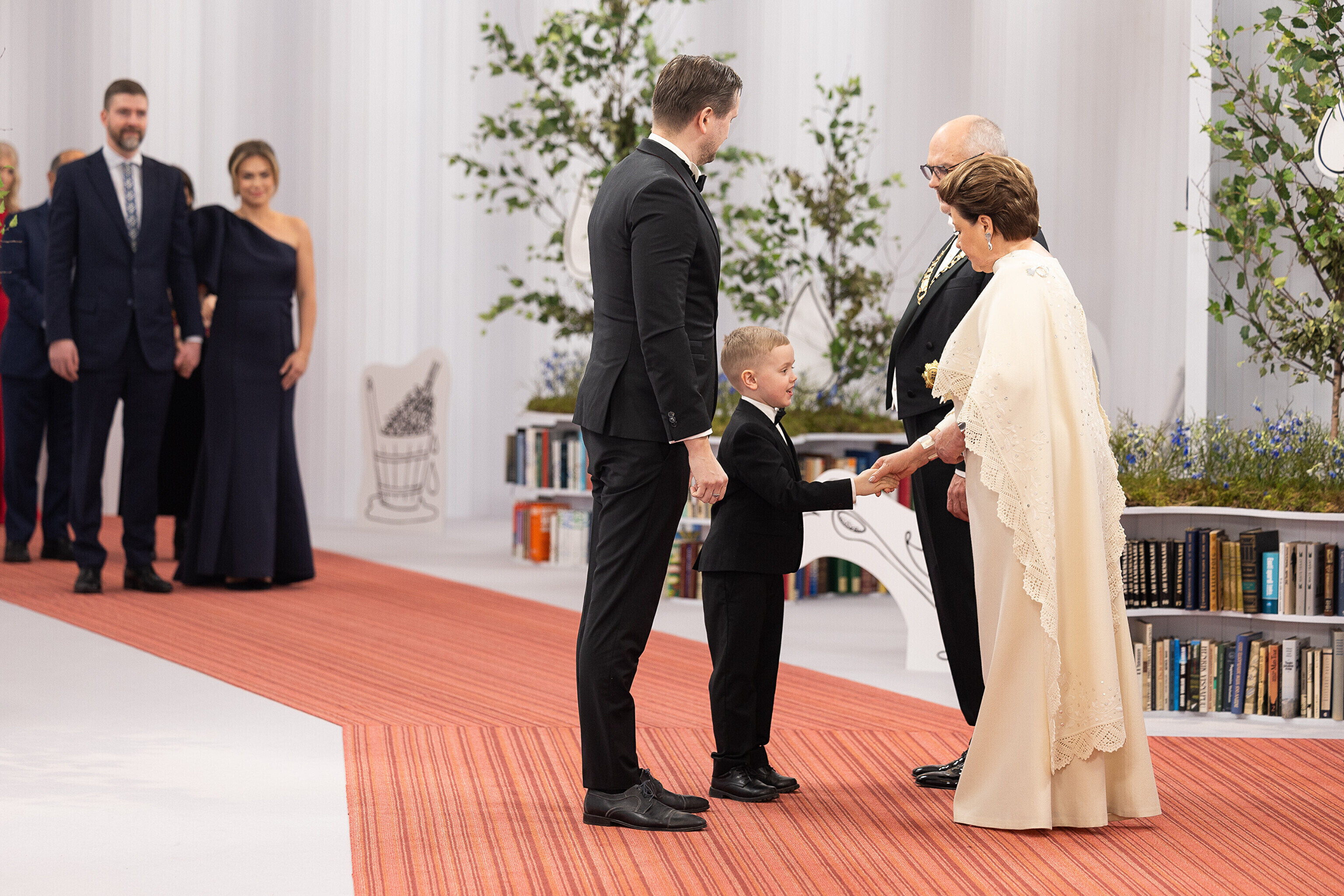 President Alar Karis ja proua Sirje Karis kutsusid Eesti Vabariigi 107. aastapäeva tähistamiseks Estoniasse vastuvõtule ligi 800 külalist. Galerii peomelust ja tervitustseremooniast täieneb jooksvalt.
