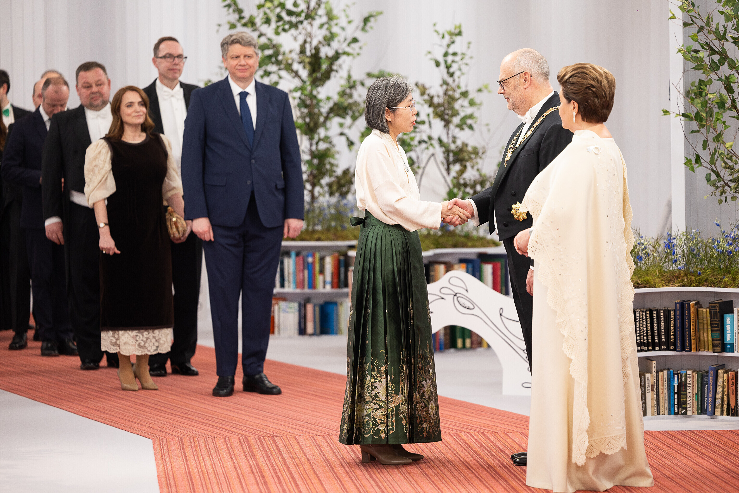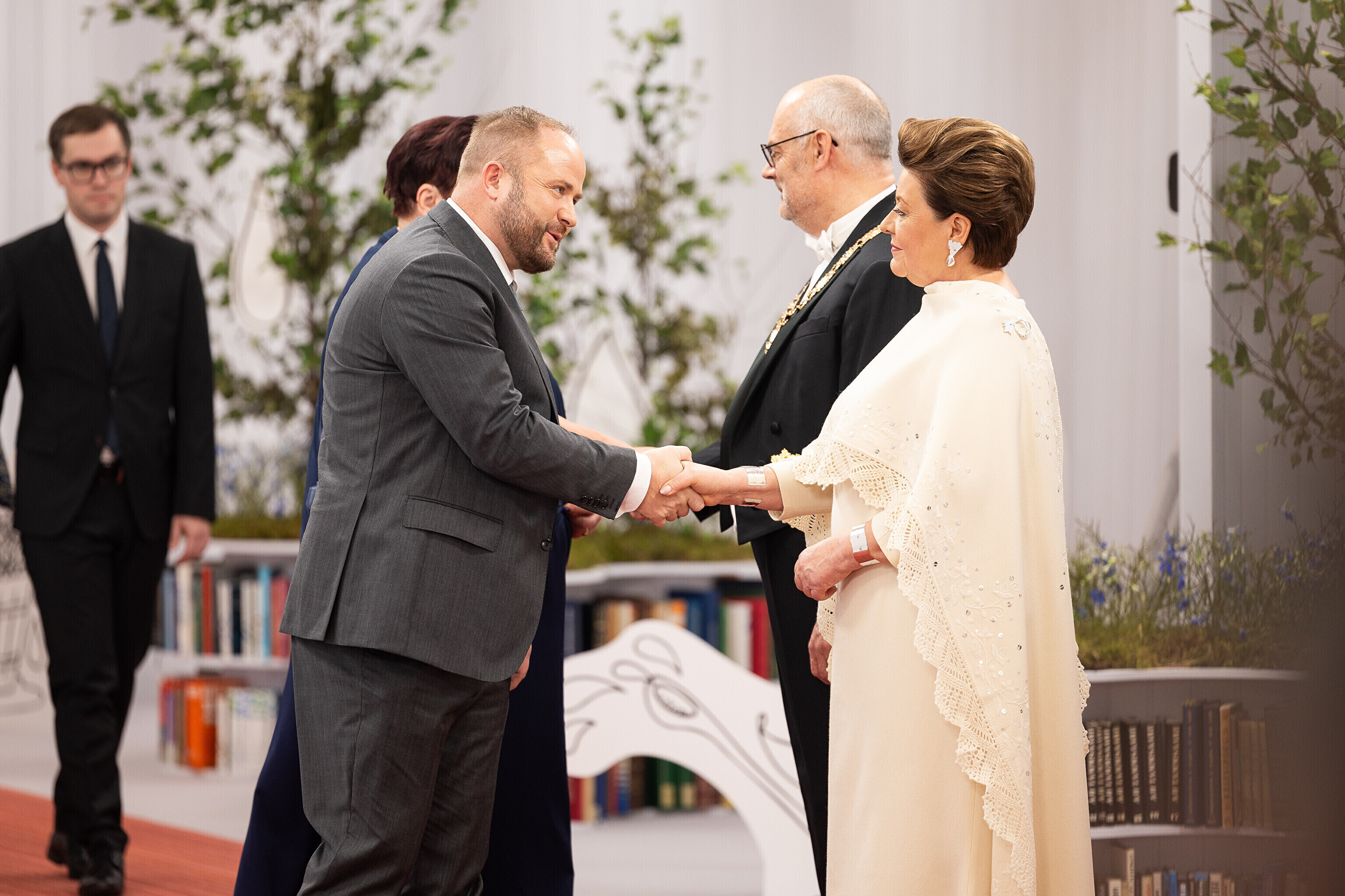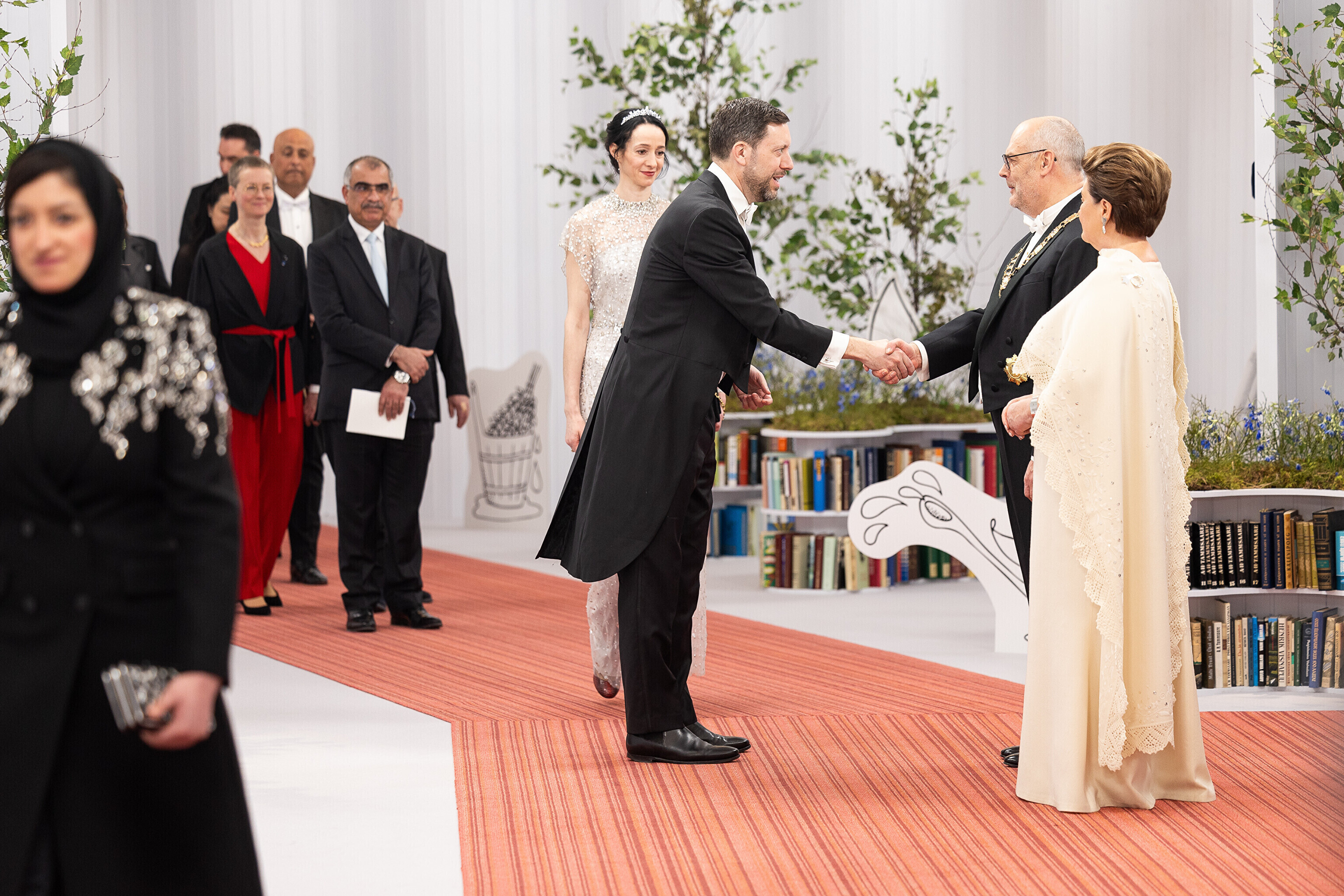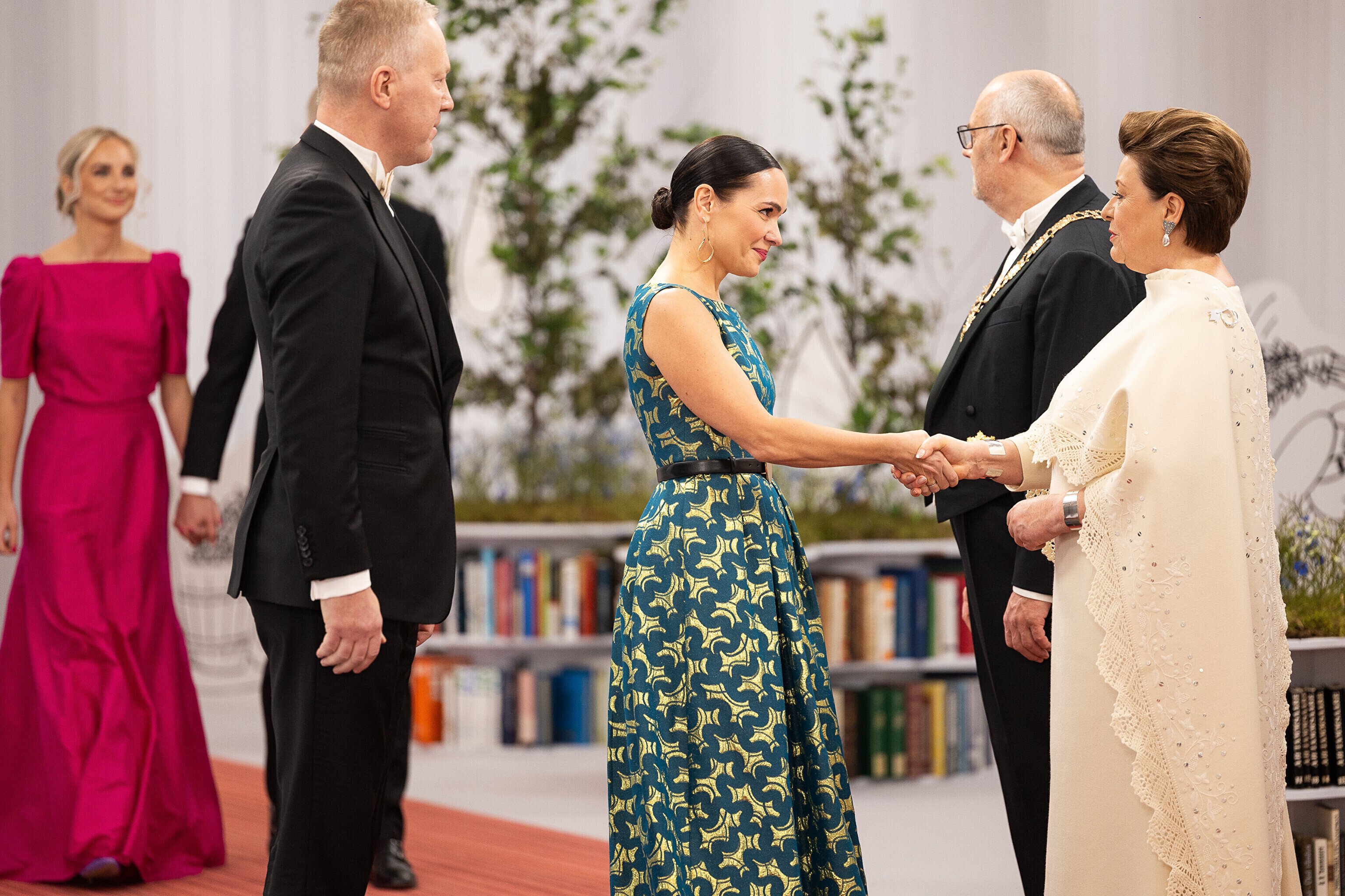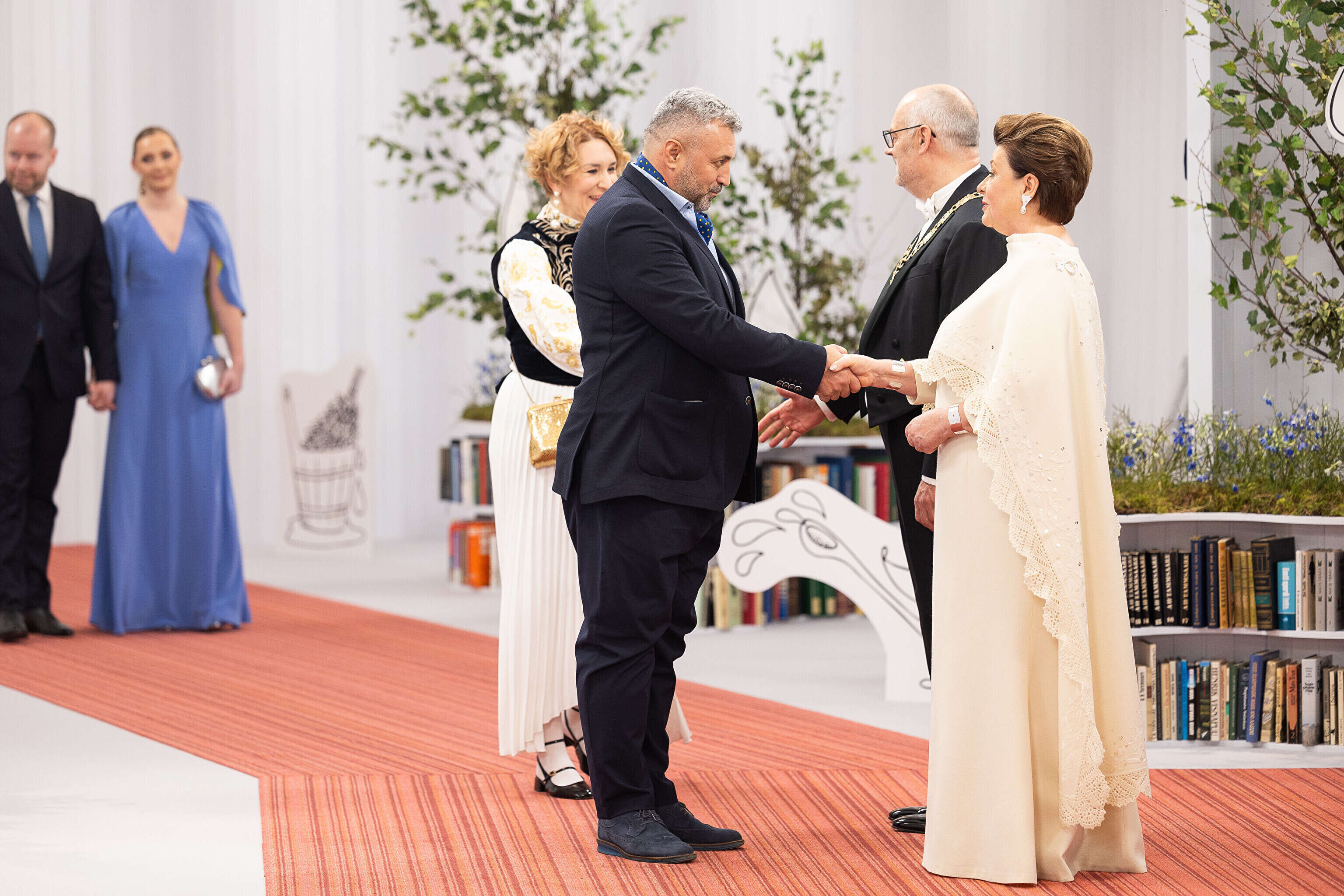 President Alar Karis ja proua Sirje Karis kutsusid Eesti Vabariigi 107. aastapäeva tähistamiseks Estoniasse vastuvõtule ligi 800 külalist. Galerii peomelust ja tervitustseremooniast täieneb jooksvalt.