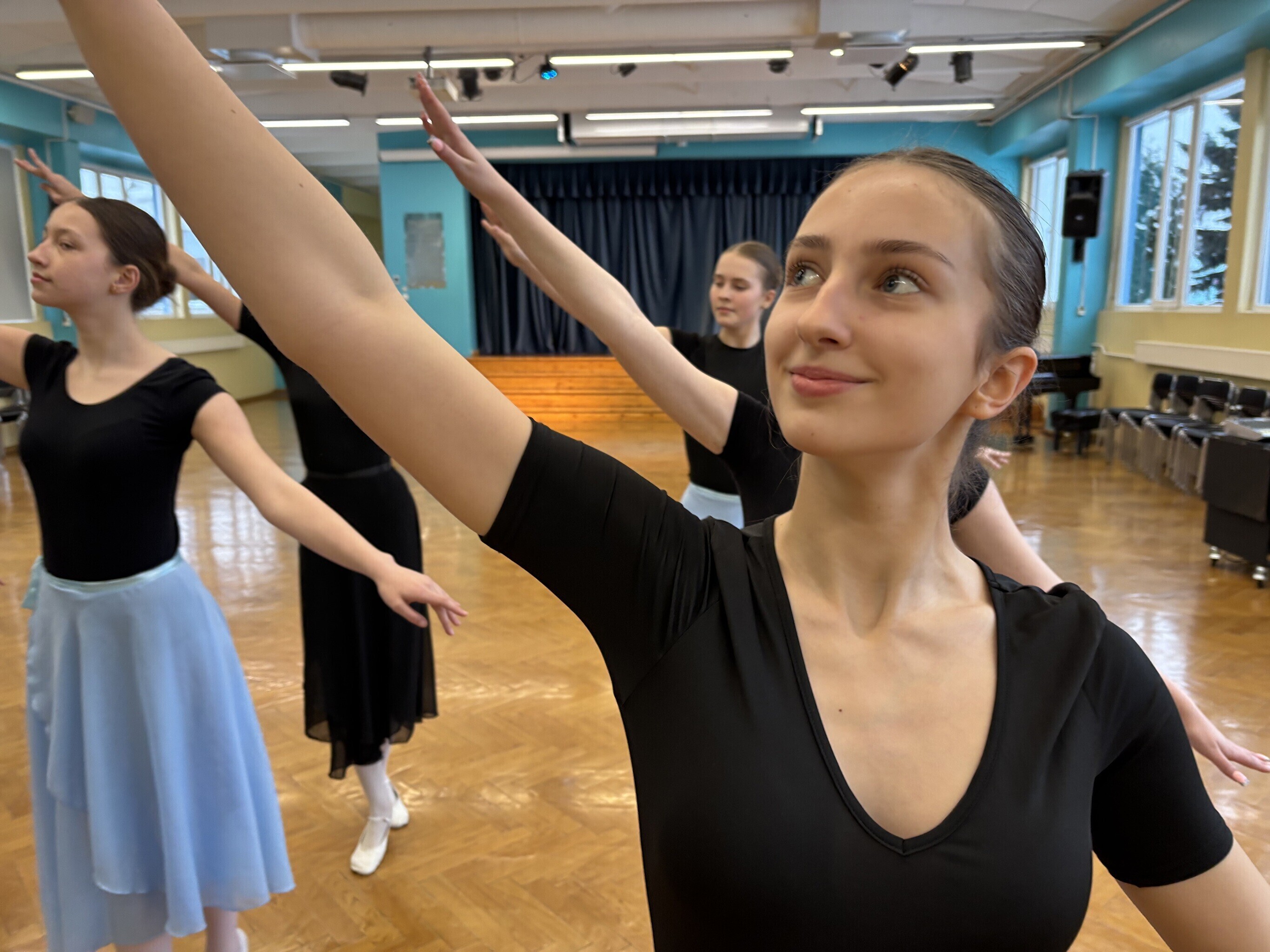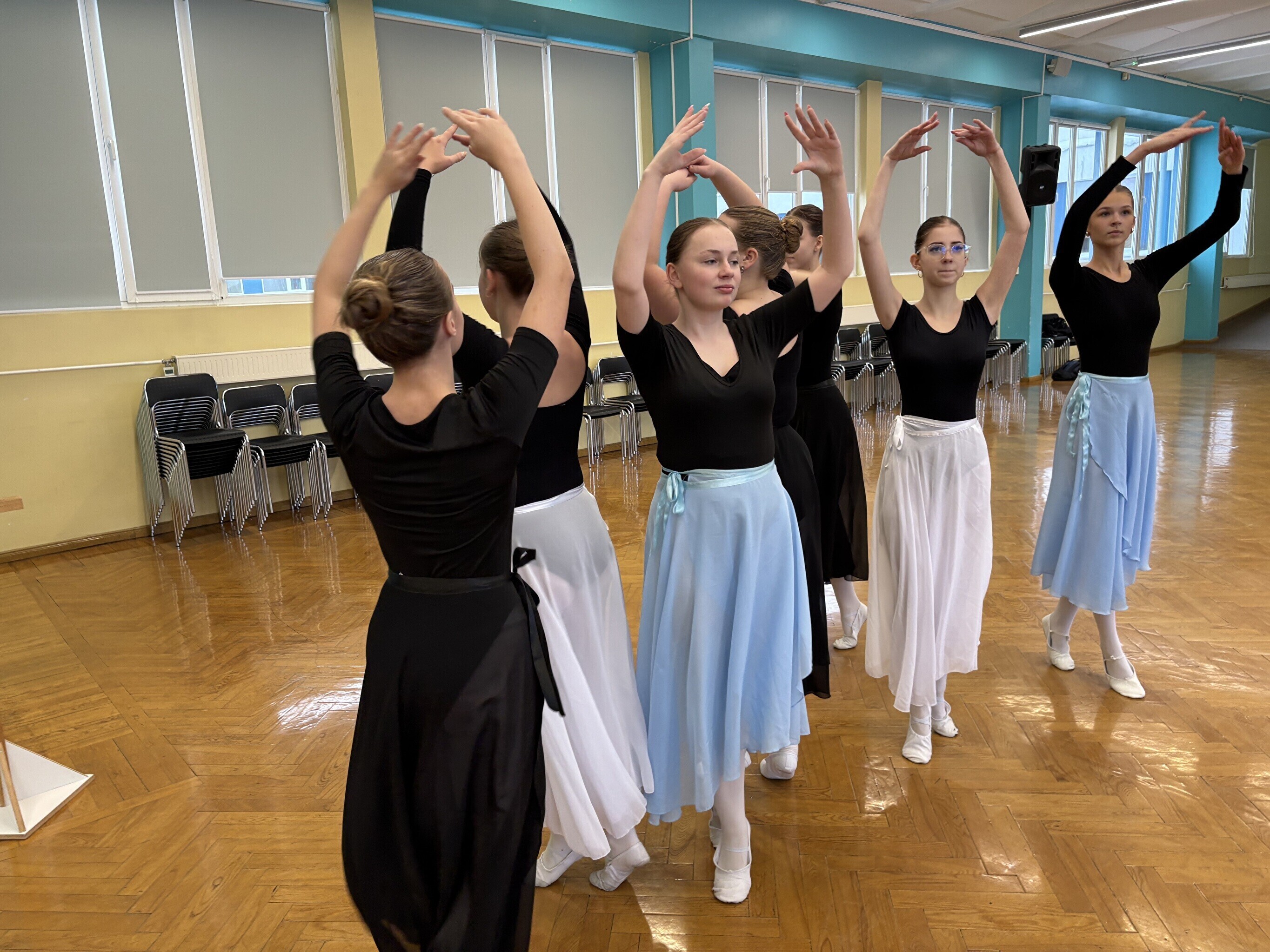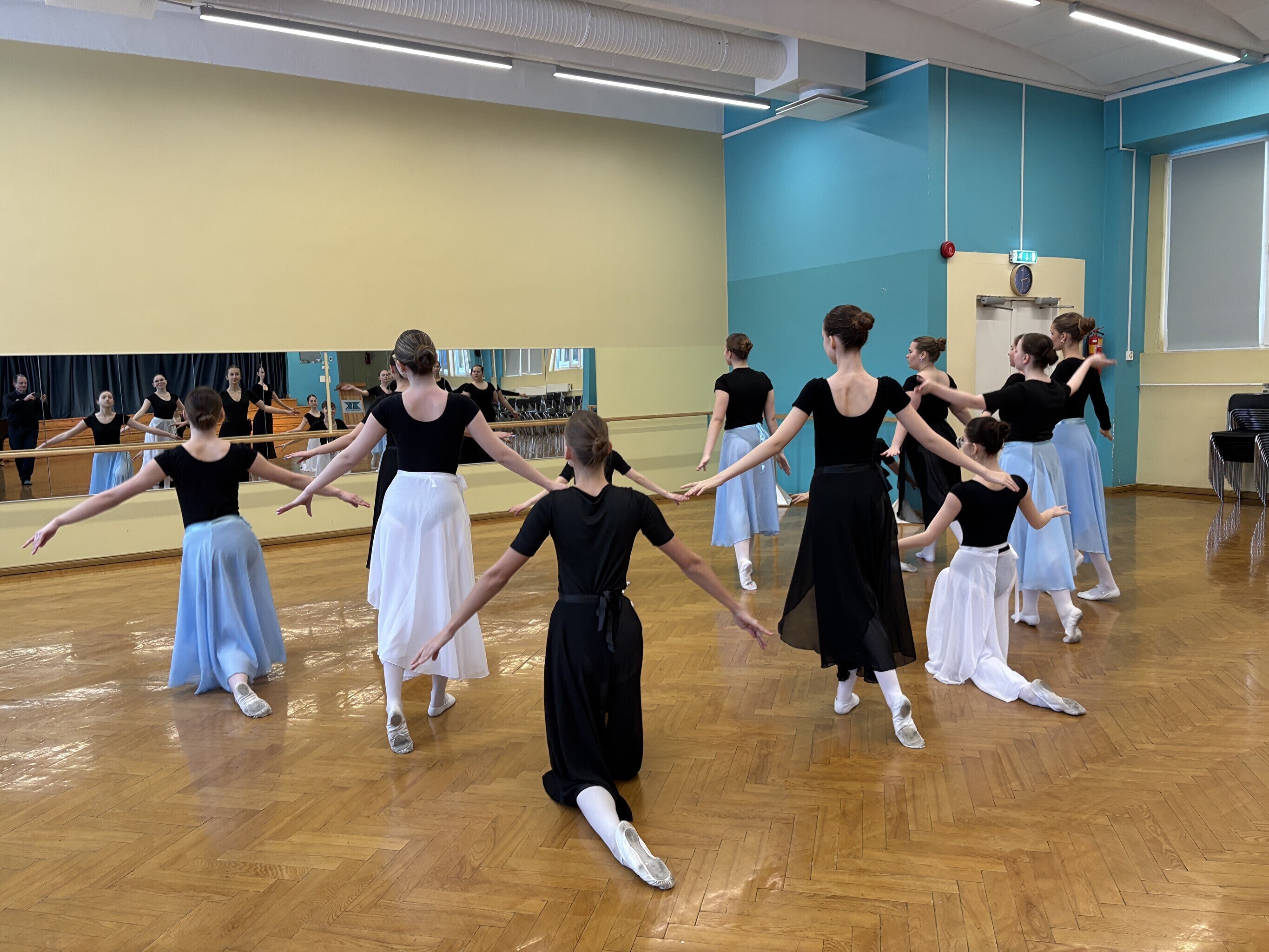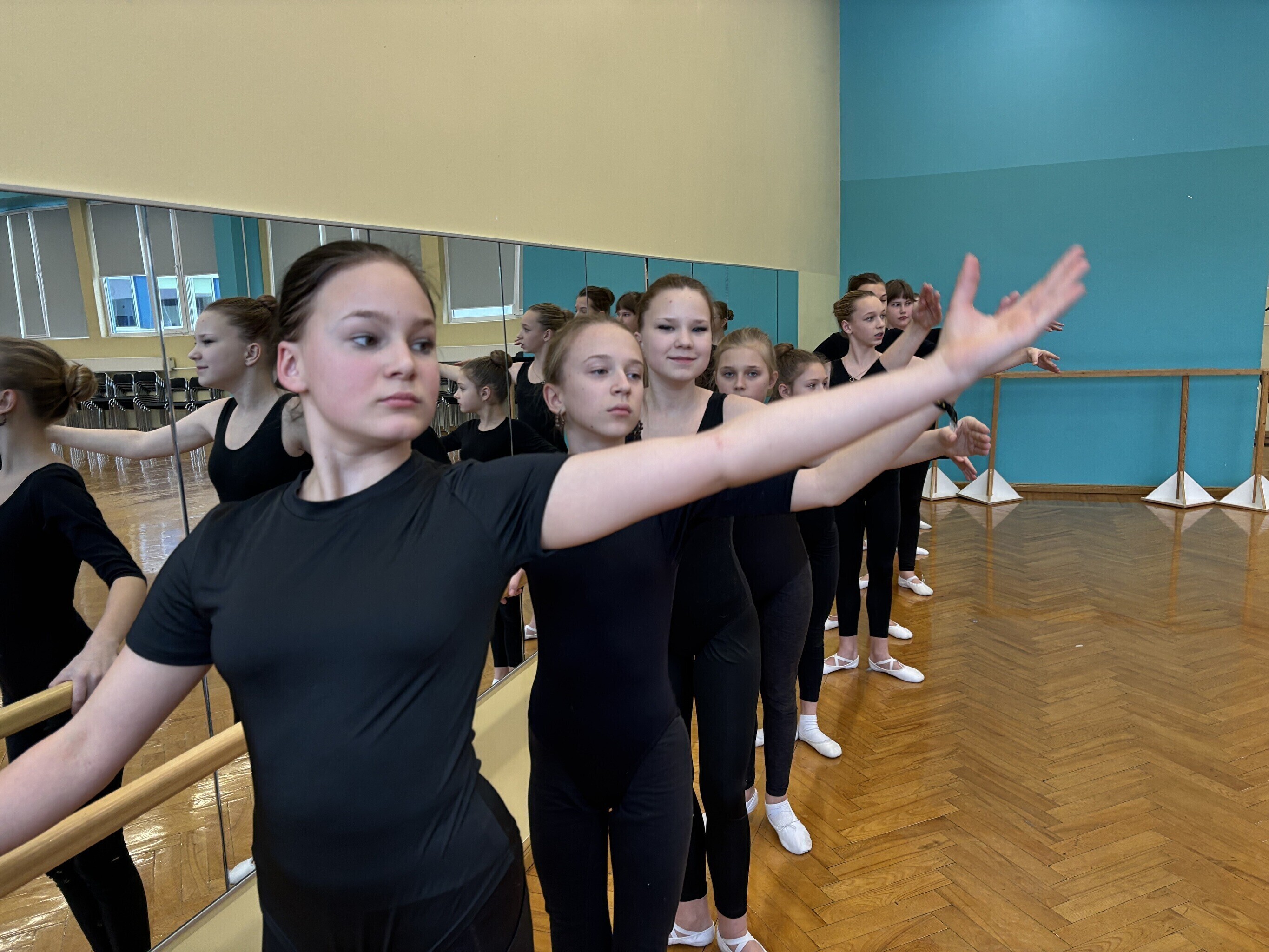 Jakobsoni kooli balletistuudios, kus täna harjutasid viienda ja kaheksanda klassi õpilased, lööb kaasa 120 noort. Kõige nooremad on kolme- kuni kuueaastased, vanemate rühm tegutseb hoopis Viljandi gümnaasiumi juures.