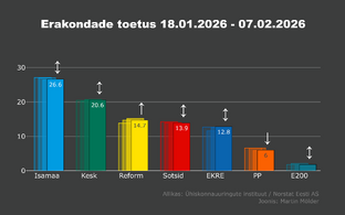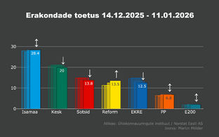 Viimaste tulemuste põhjal toetab Isamaad 27,4 protsenti, Keskerakonda 20,4 protsenti ning Sotsiaaldemokraatlikku Erakonda 13,9 protsenti valimisõiguslikest kodanikest.