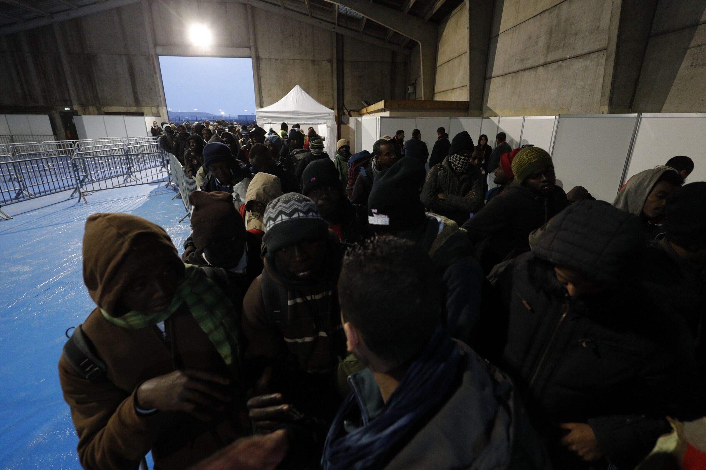 Migrandid hakkasid saabuma kogunemispunktidesse, kust nad suunatakse bussidesse, mis viivad nad vastuvõtukeskustesse üle Prantsusmaa.