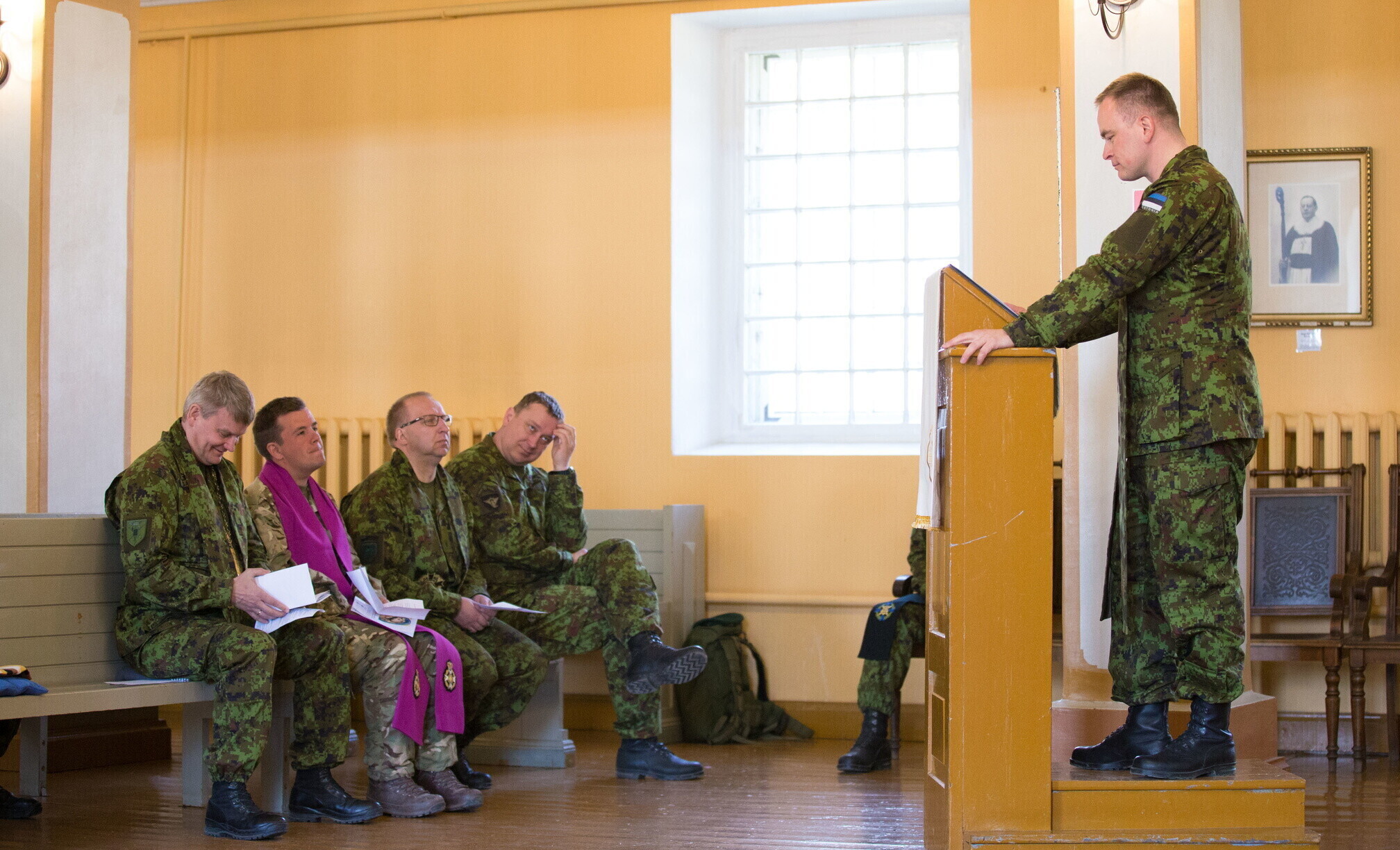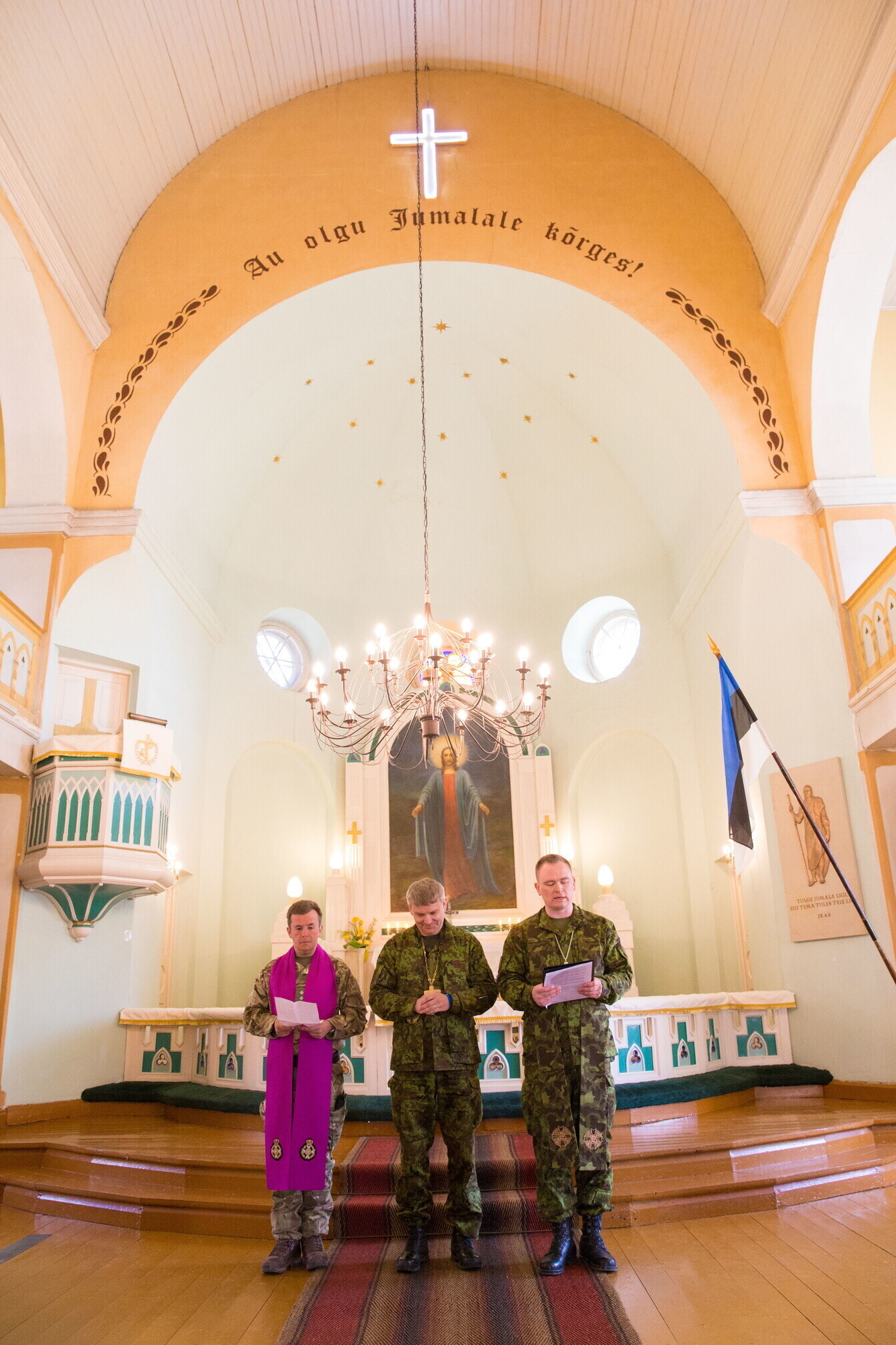 Eesti- ja inglise keeles peetud oikumeenilise teenistuse läbiviijateks olid NATO lahingugrupi Briti üksuse kaplan Pip Smith, kaitseväe toetuse väejuhatuse vanemkaplan major Aivar Sarapik ja kaplan leitnant Meelis Rosma, Kaitseliidu vanemkaplan major Raivo Nikiforov, 1. jalaväebrigaadi kaplan kapten Ott Aro ning staabi- ja sidepataljoni kaplan leitnant Peeter Paenurm.