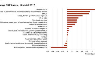 "Eksportivatest arvudest on näha tööstussektori küllalt suur kasv. Töötleva tööstuse lisandväärtus kasvas aastatagusega võrreldes lausa üheksa protsenti ja see peegeldub ka ekspordis. Sisenõudlusele suunatud arvudest hakkab hästi silma ehitussektor, kus lisandväärtus kasvas 23 protsenti, ja selle taga on ilmselt investeeringute taastumine," rääkis ta.