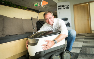 Starship Technologies' ärijuht Allan Martinson rääkis, et mõni aasta tagasi hullumeelsena näinud robotid on kindel tulevikusuund. Video: Siim Lõvi/ERR