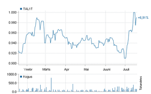 Tallinki aktsiahind on käesoleval aastal kõikunud 0,9 ja 1 euro vahel. Aasta alguses oli aktsiahind 0,905 eurot, mis on ühtlasi aasta madalaim hind.