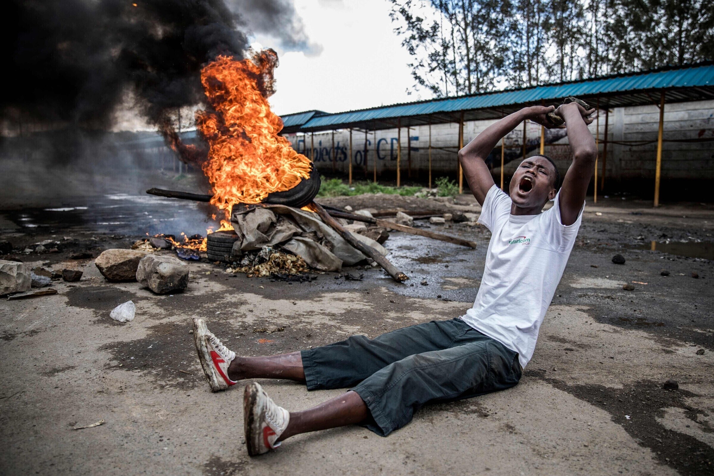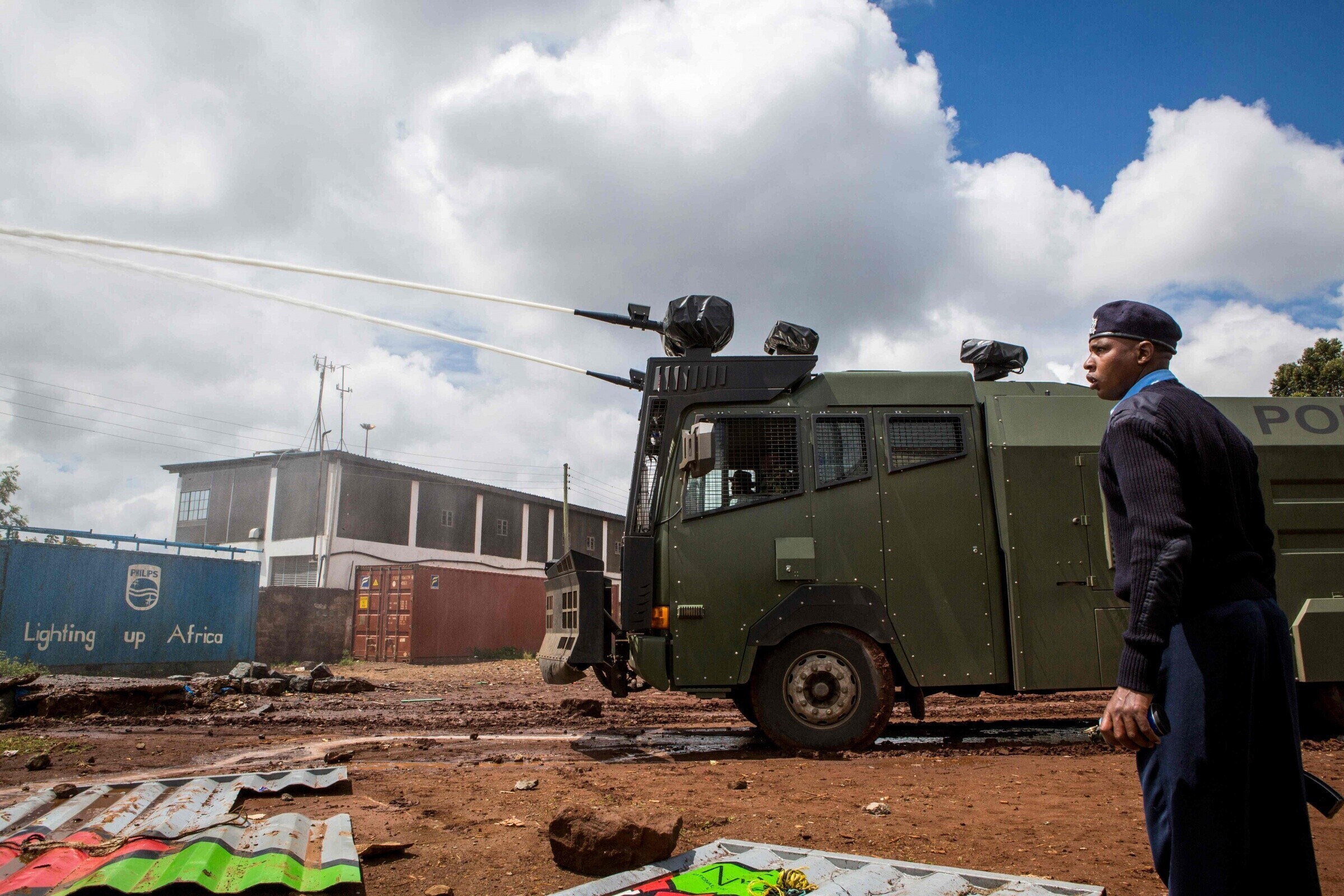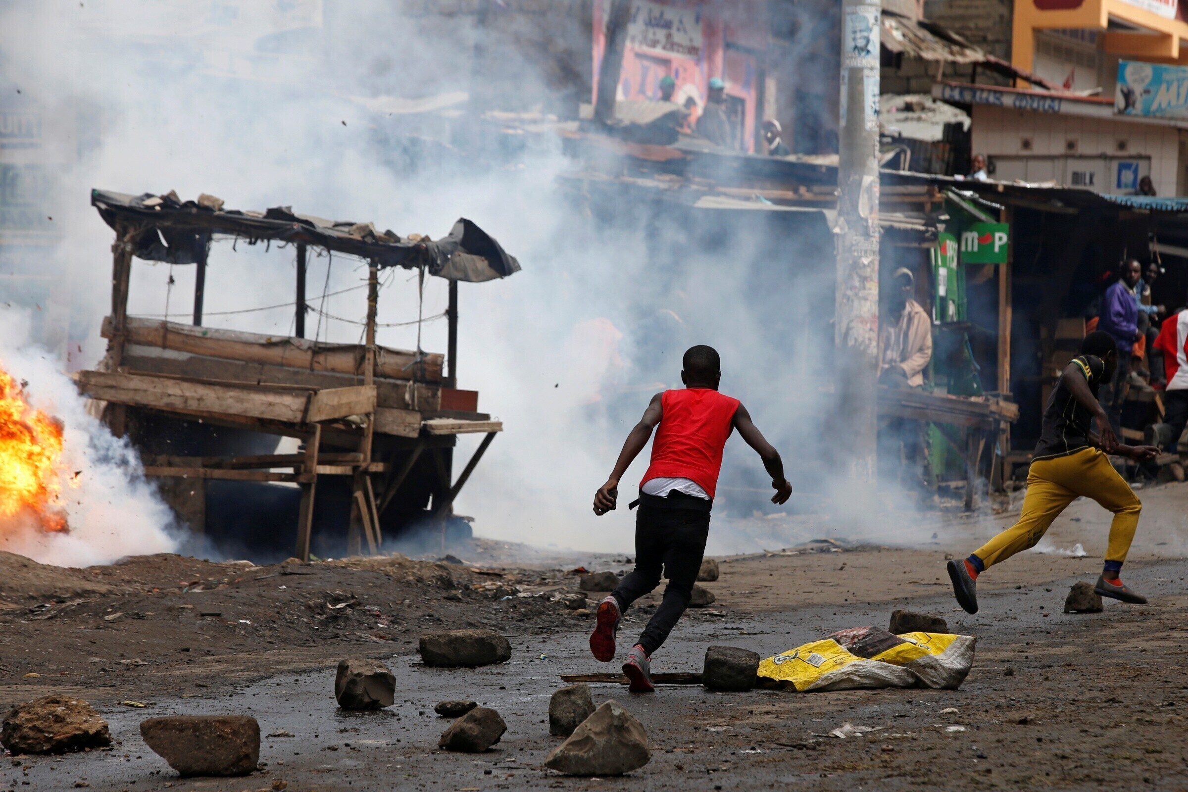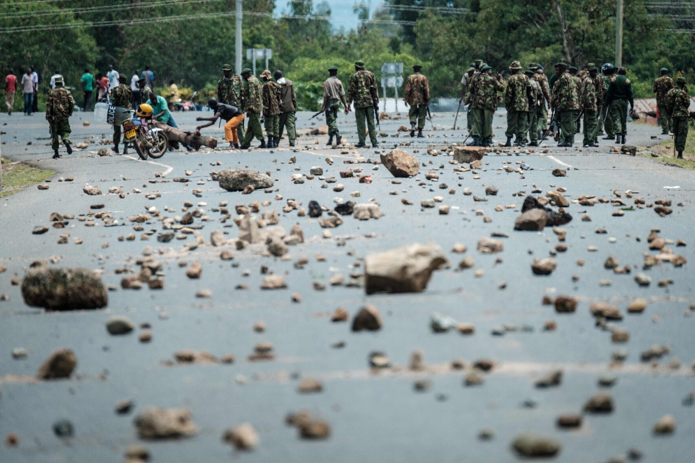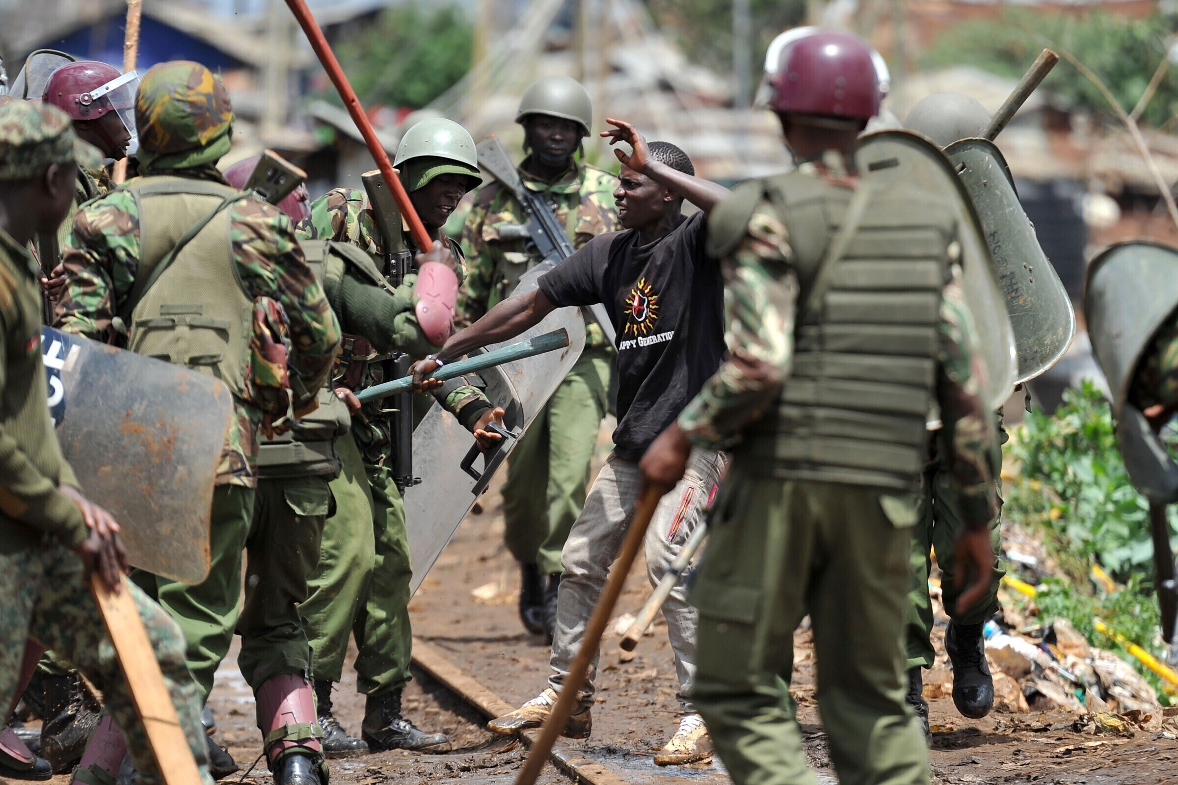 Kibera slummis ajas politsei pisargaasiga laiali opositsiooni toetajad, kes üritasid püstitada barrikaade ühe valimisjaoskonna ette. Opositsiooni toetajad vastasid pisargaasile kividega. Sarnaseid stseene võis näha riigi lääneosas Migori, Siaya ja Homa Bay linnas.