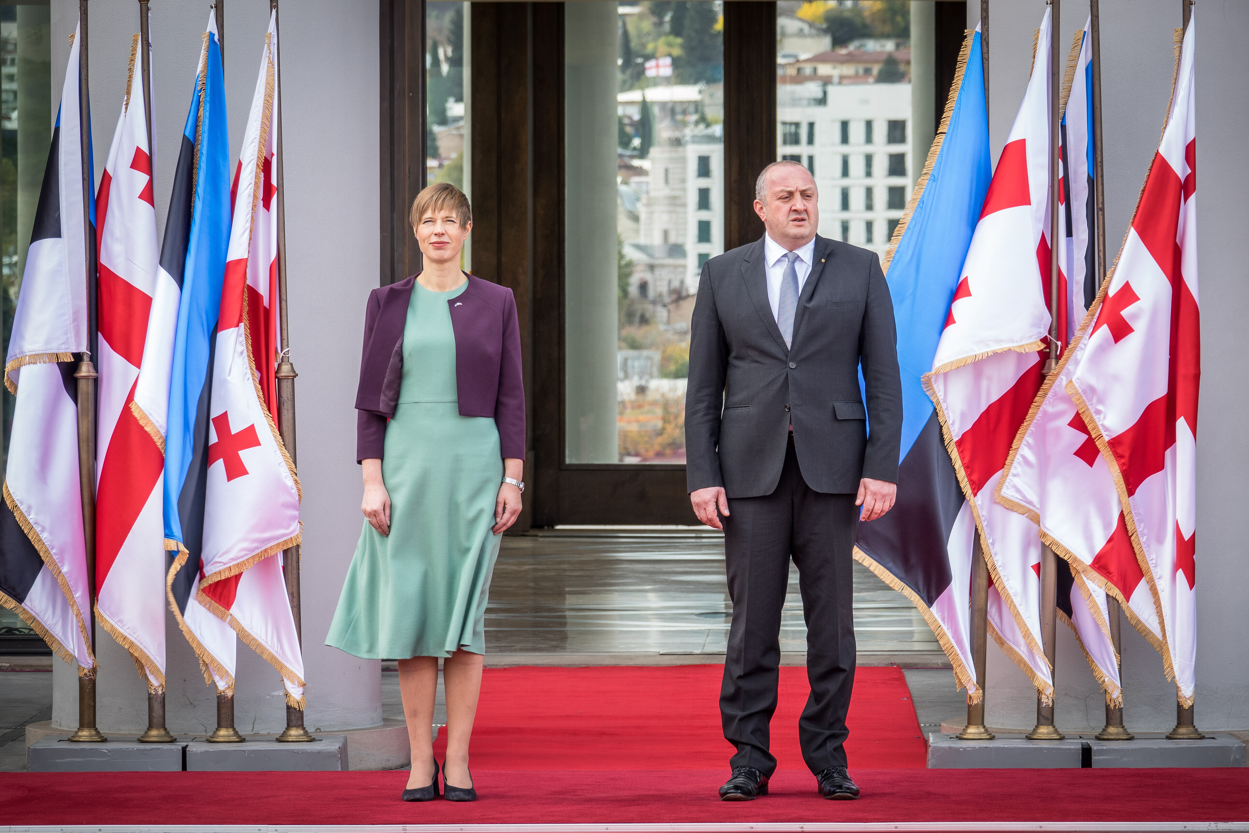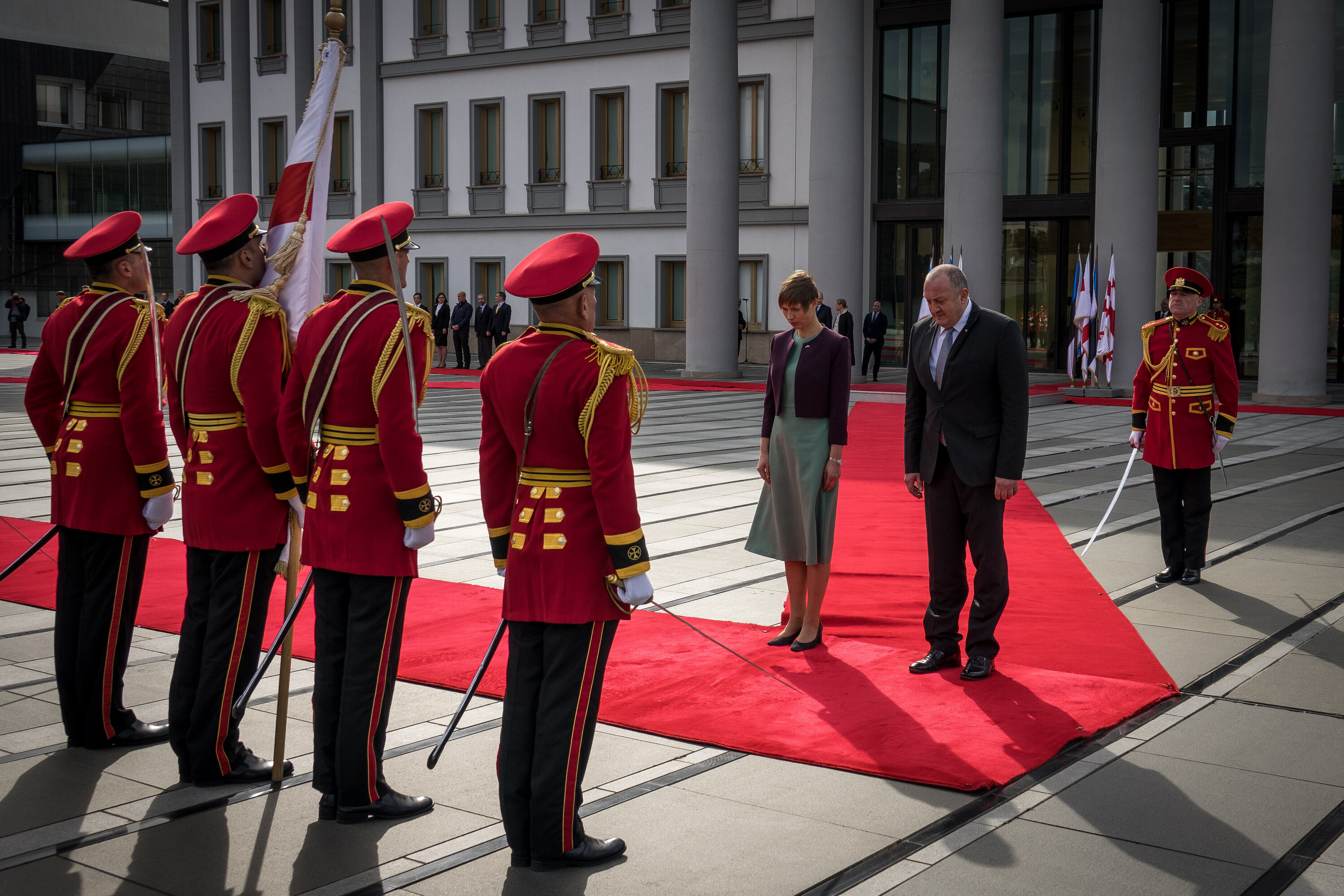 Video ja fotod: Gruusiasse sõitnud Kaljulaidi vastuvõtutseremoonia