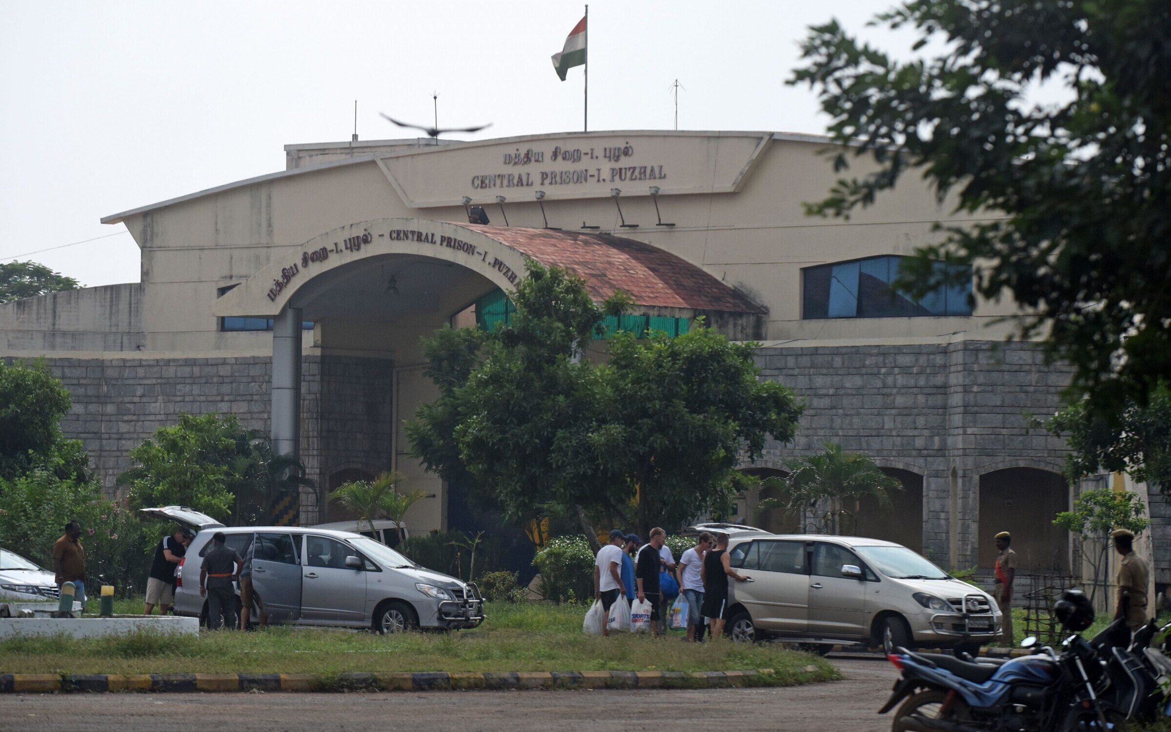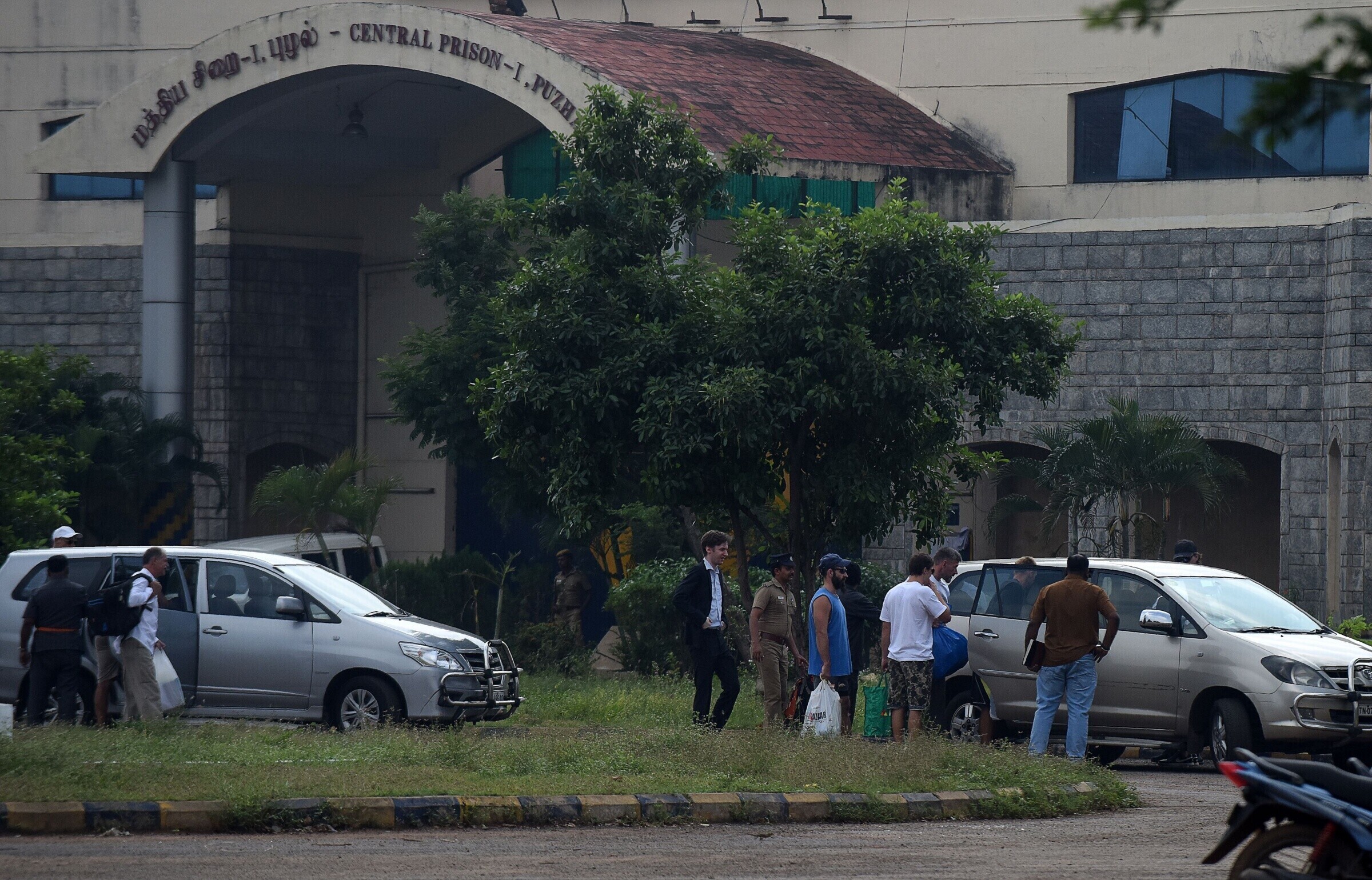 Crew members and guards of US anti-piracy ship Seaman Guard Ohio, jailed under the Arms Act, coming out of Puzhal prison after they were acquitted of all charges by the Madurai bench of the Madras high court. pic.twitter.com/wrFBM1mN38