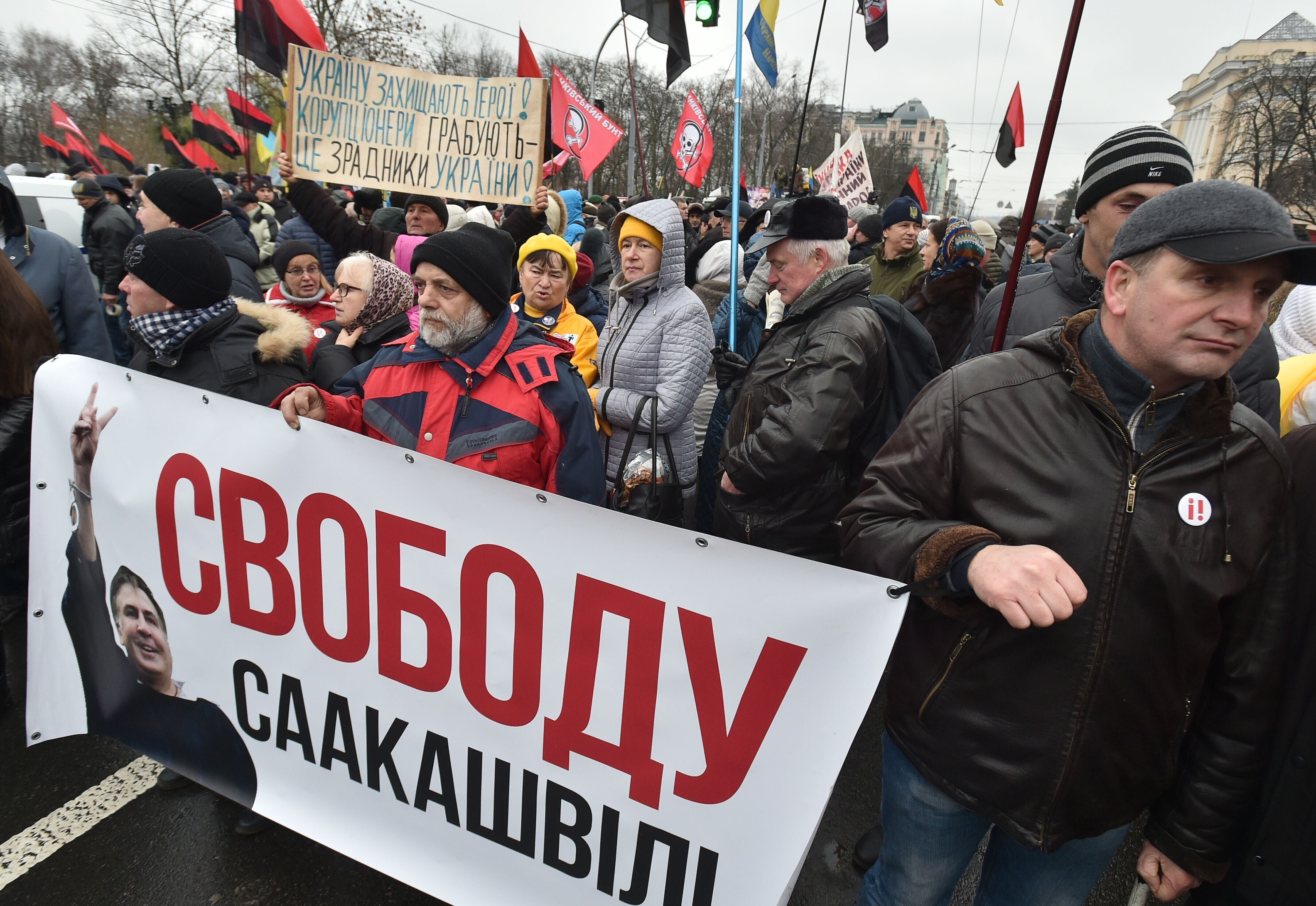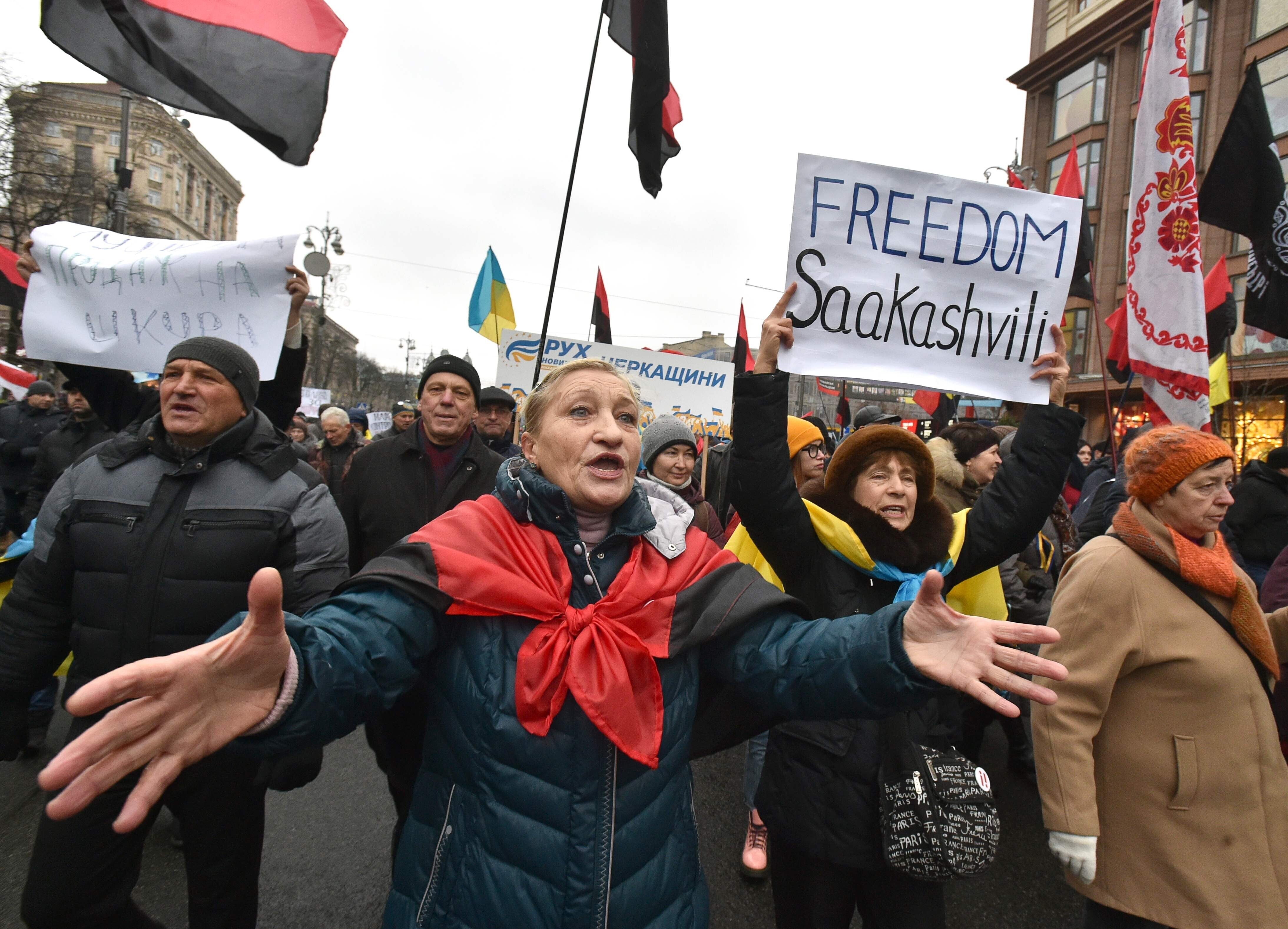 Ukraina pealinnas Kiievis avaldavad tuhanded inimesed pühapäeval meelt opositsioonipoliitiku Mihheil Saakašvili toetuseks ja nõuavad tema vabastamist, kirjutas uudisteagentuur Associated Press.
