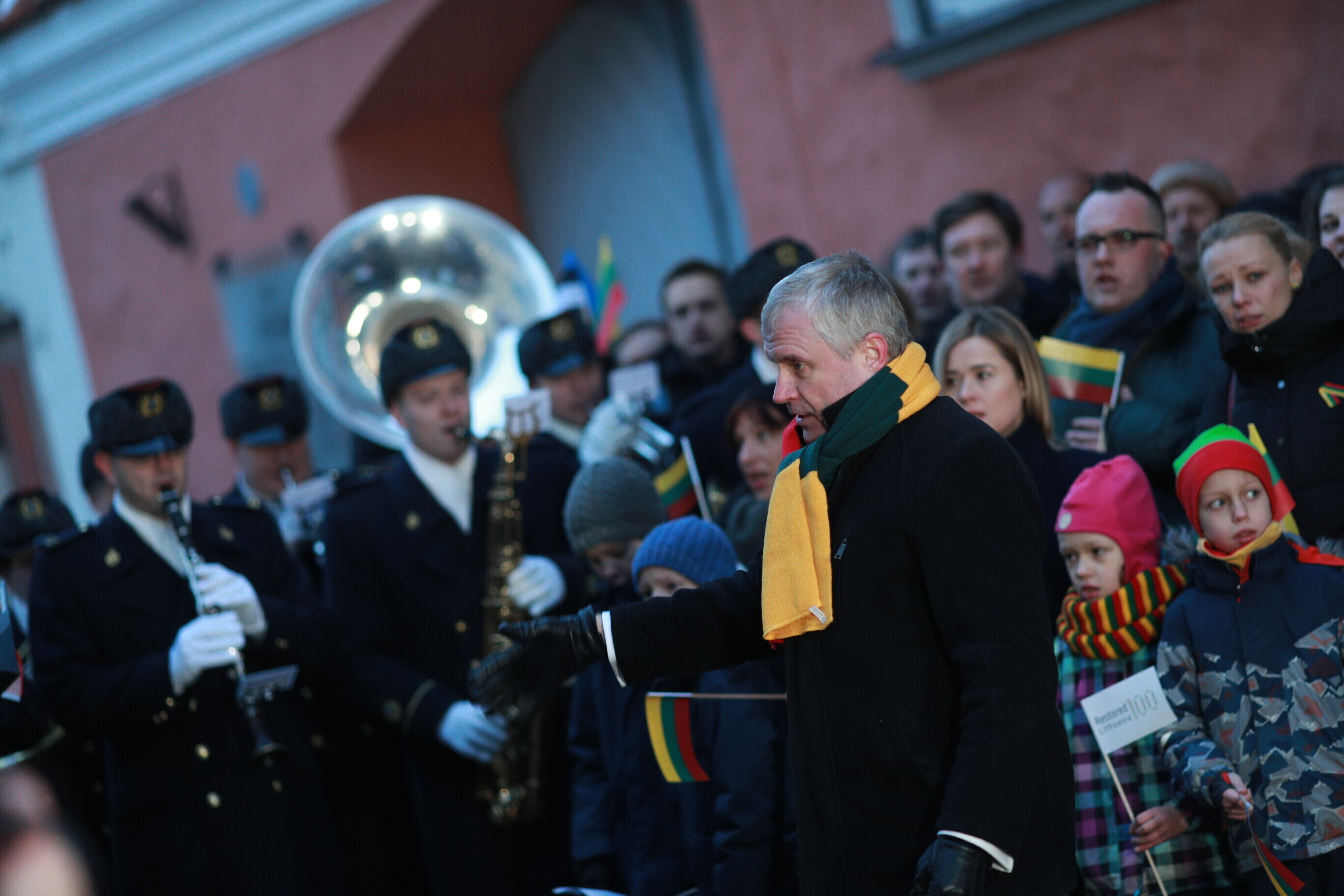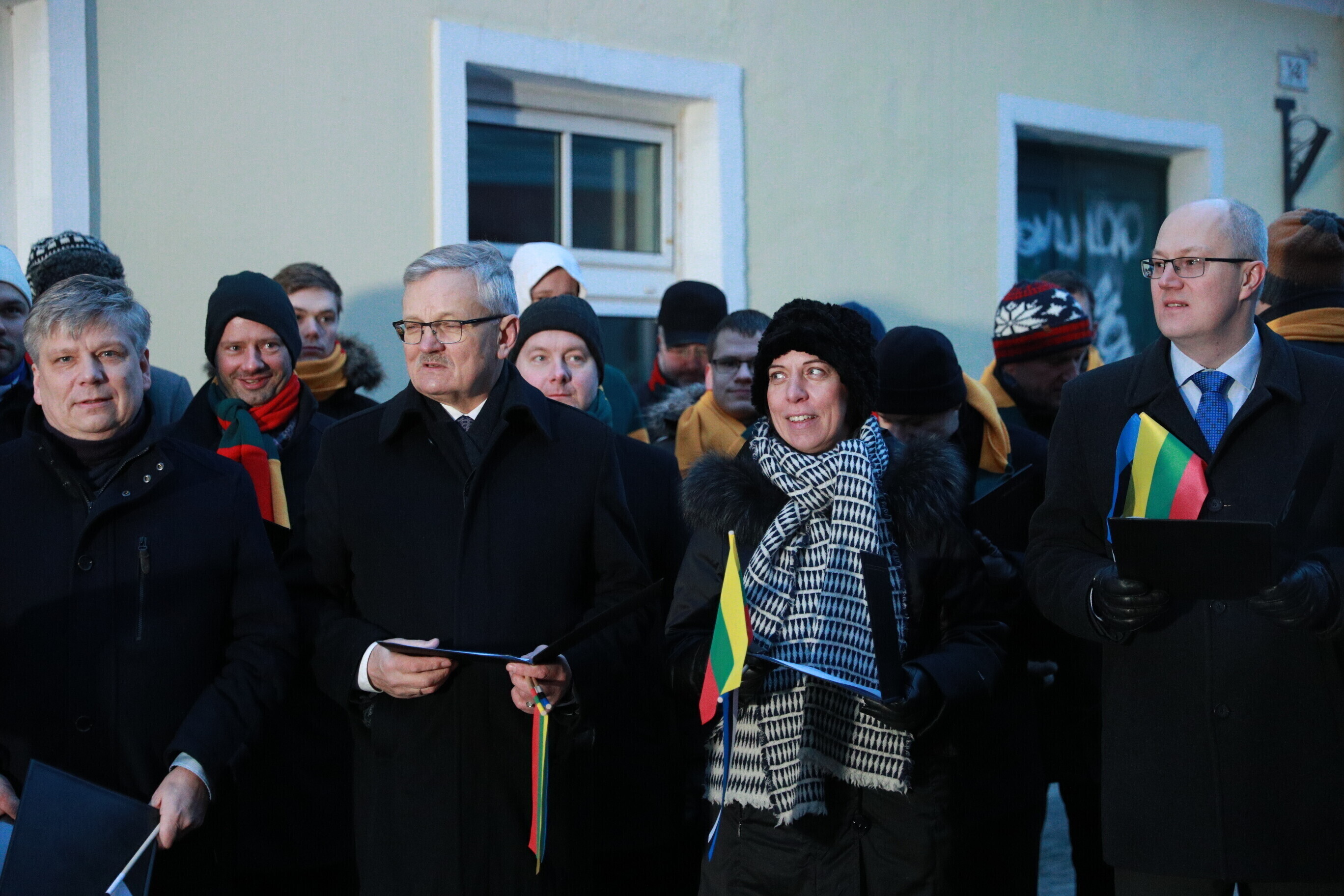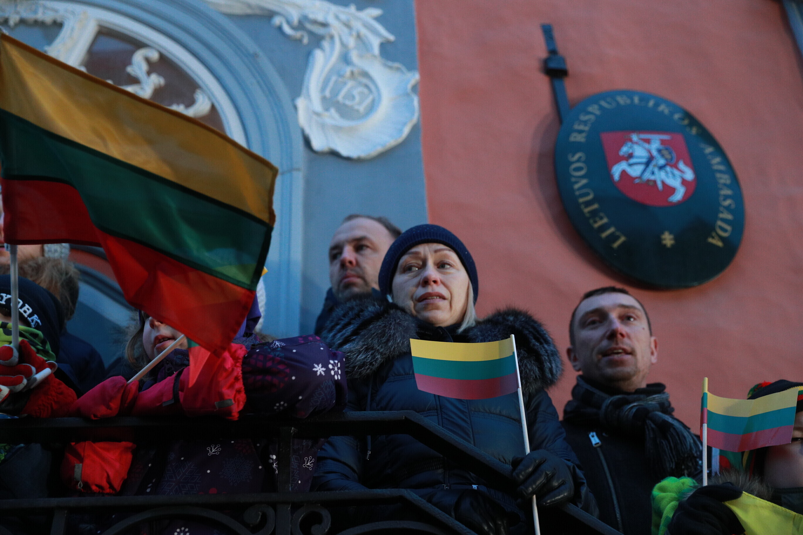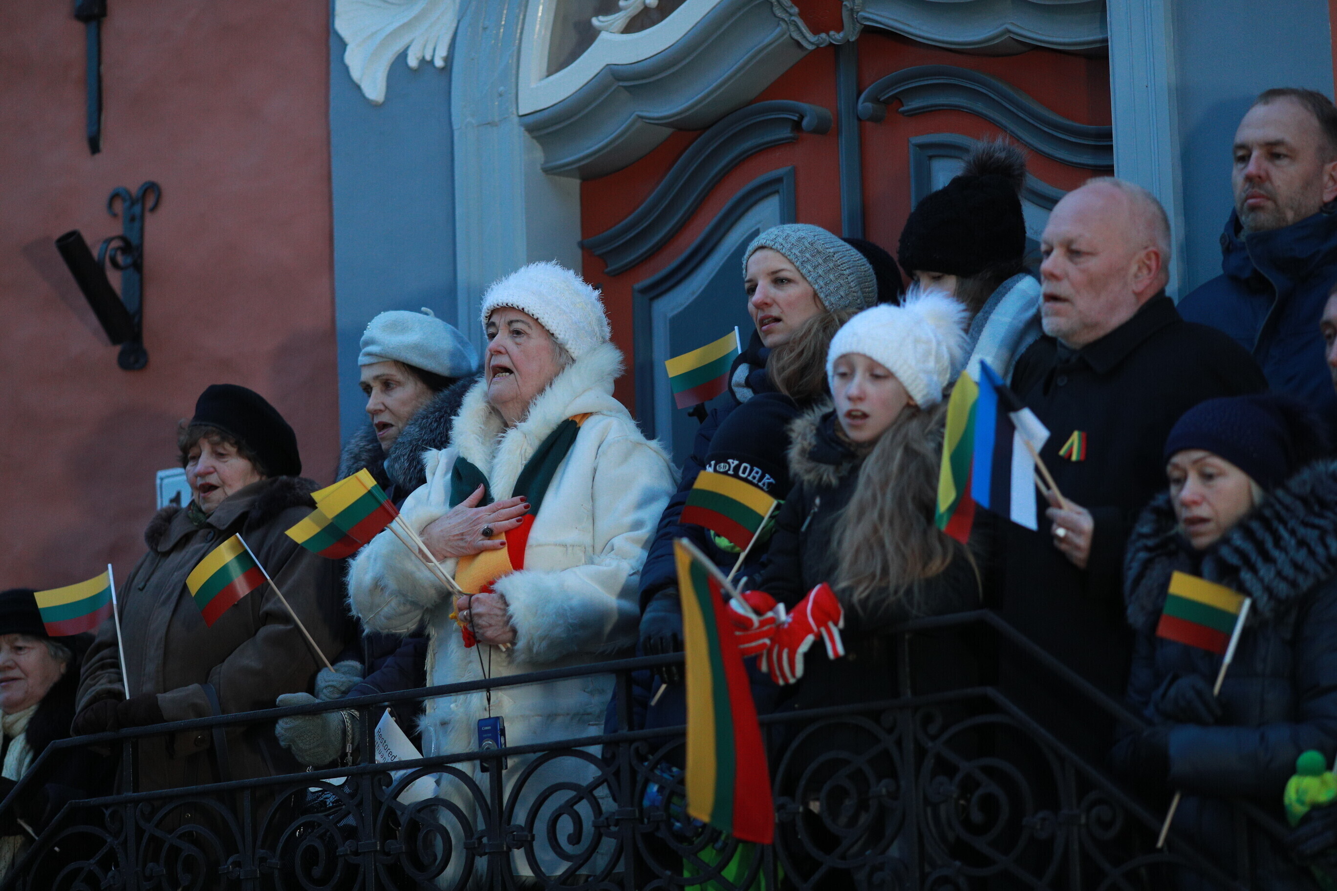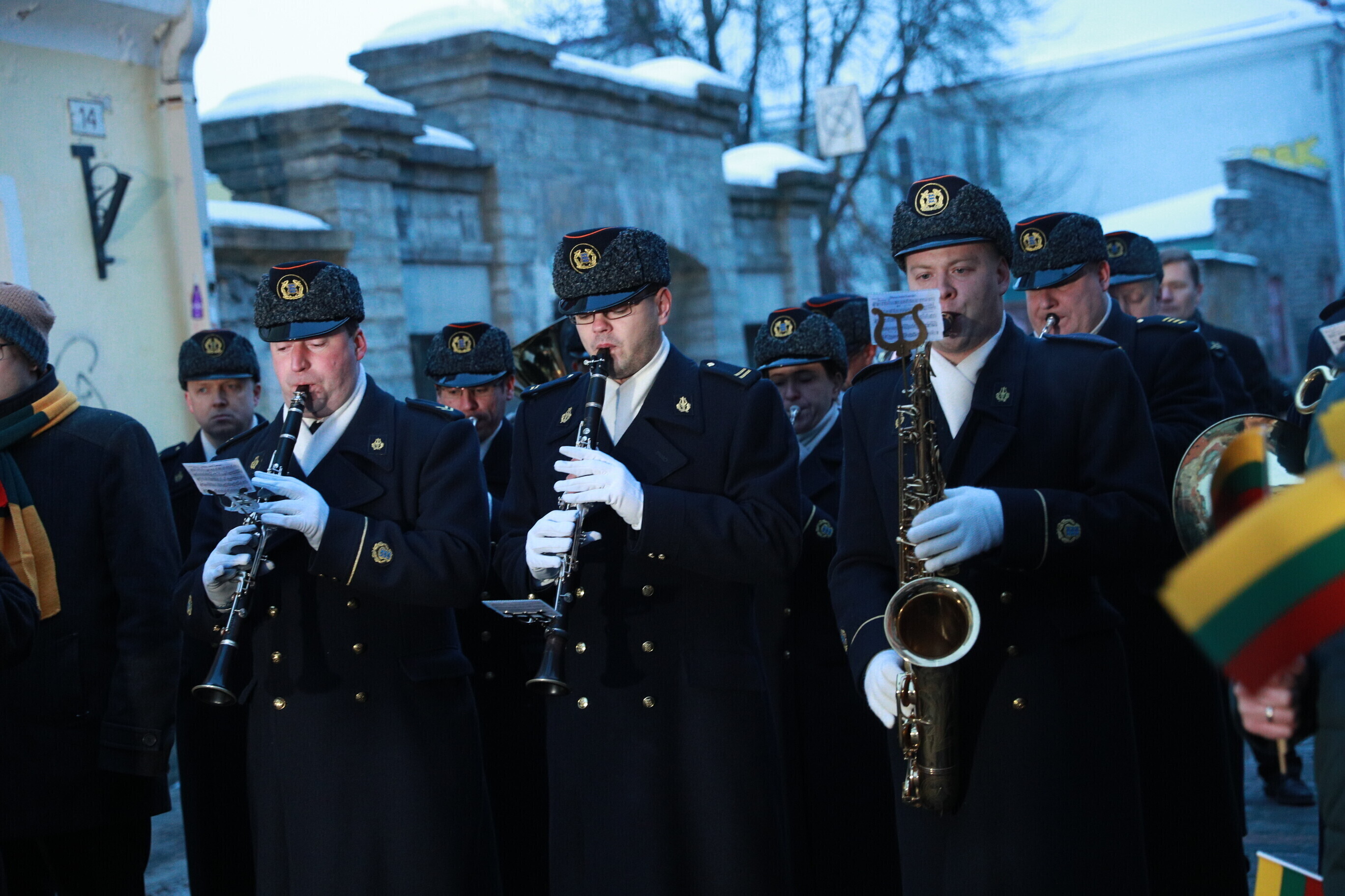 Leedu vabariigi 100. aastapäeva puhul esitasid valitsuse liikmed ja Eestis elavad leedulased kell kaheksa Tallinnas Leedu suursaatkonna juures Leedu hümni.
