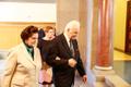 Kersti Kaljulaid ja Georgi-Rene Maksimovski pakuvad Eesti sajanda sünnipäeva eel lõuna proua Helle Merile, president Arnold Rüütlile ja proua Ingrid Rüütlile ning president Toomas Hendrik Ilvesele.