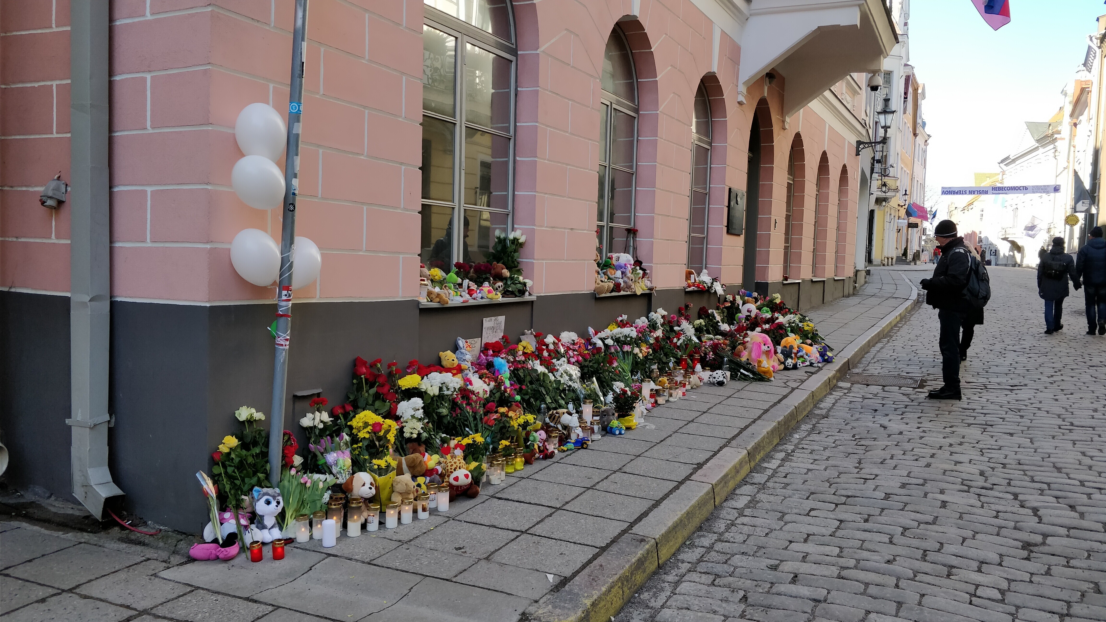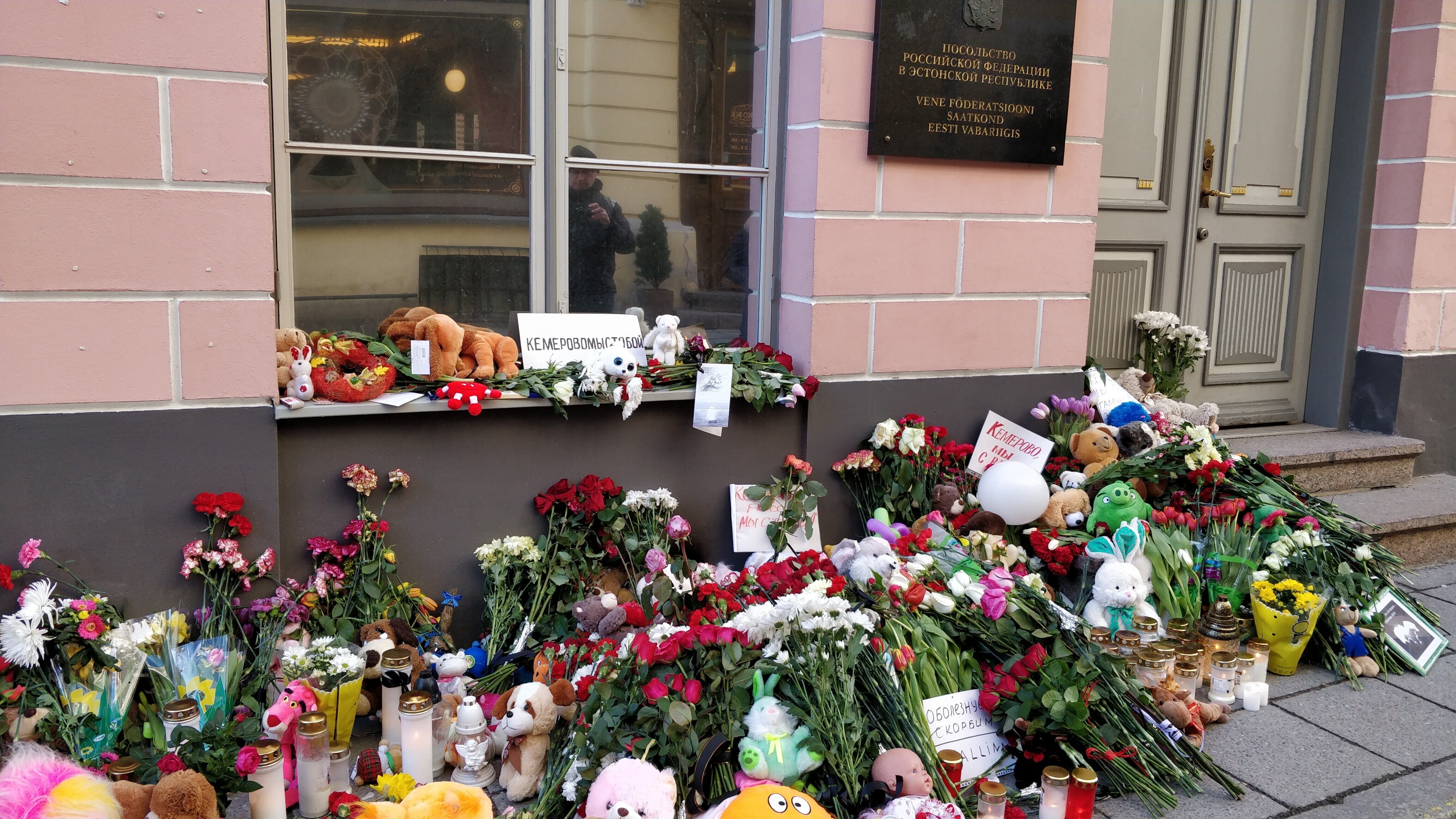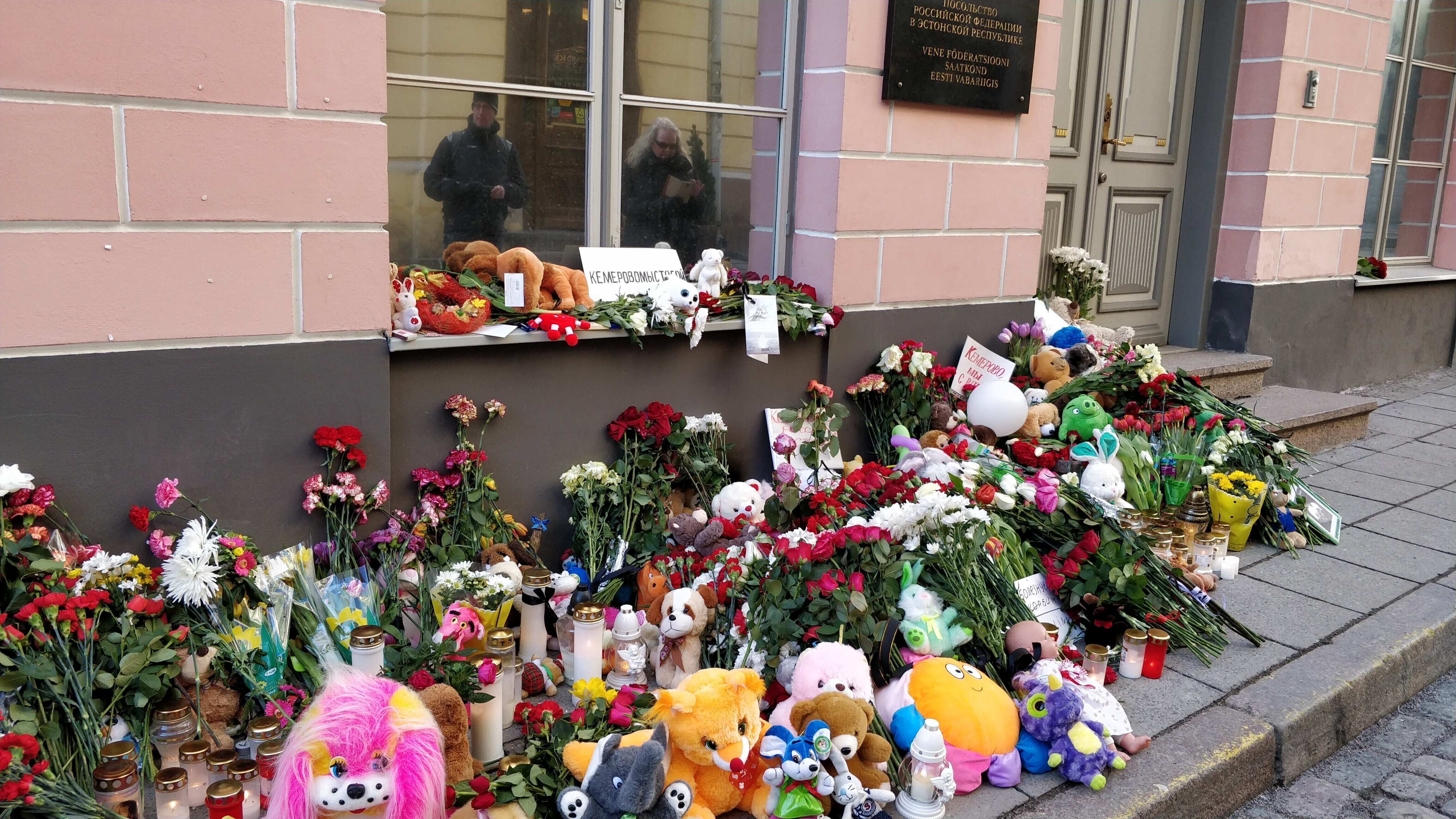 Tallinnas on inimesed viinud Kemerovo põlengu ohvrite mälestuseks Venemaa saatkonna juurde lilli, küünlaid ja mänguasju.