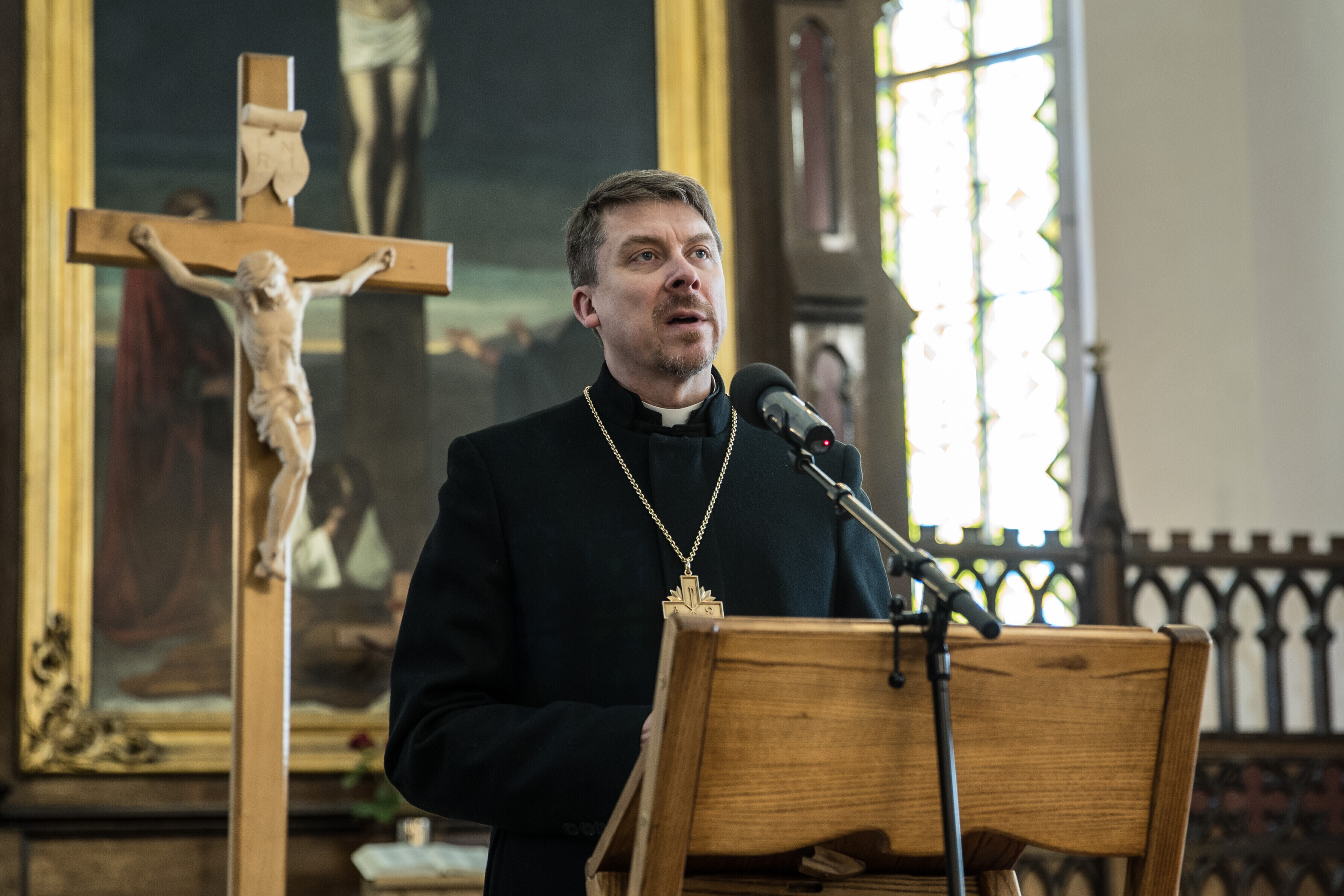"Täna on küll kurb päev, aga kirikus on ka kurvad päevad pühalikud päevad. Ka täna võib soovida häid pühi, sest Kristus oma kannatuse ja surmaga on ka meie mured ja leina ja ka surma pühitsenud. Nii et elu rõõmsad päevad pole ainult pühalikud, vaid ka kurvad päevad võivad olla väga pühalikud ja tähtsad," rääkis ta.