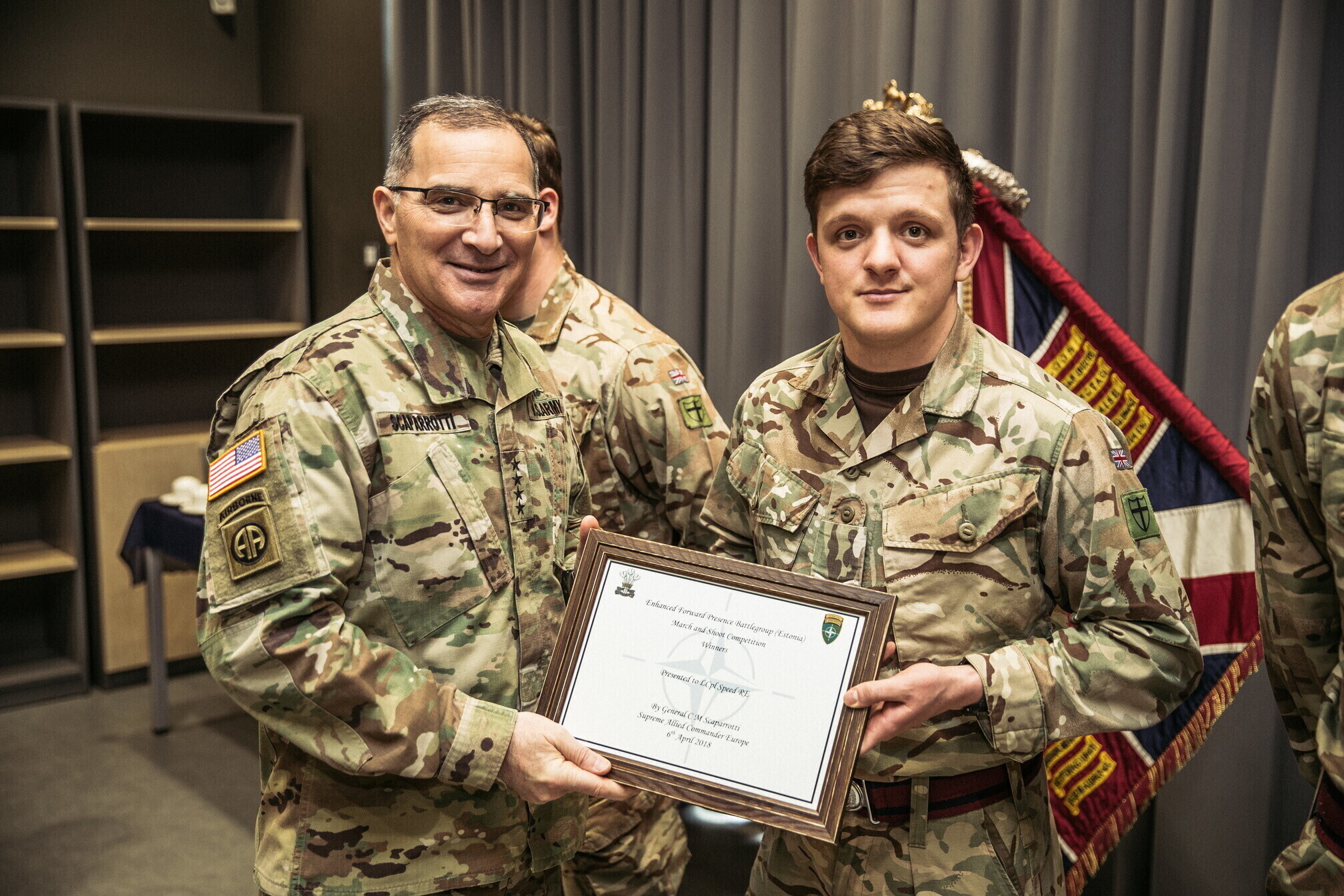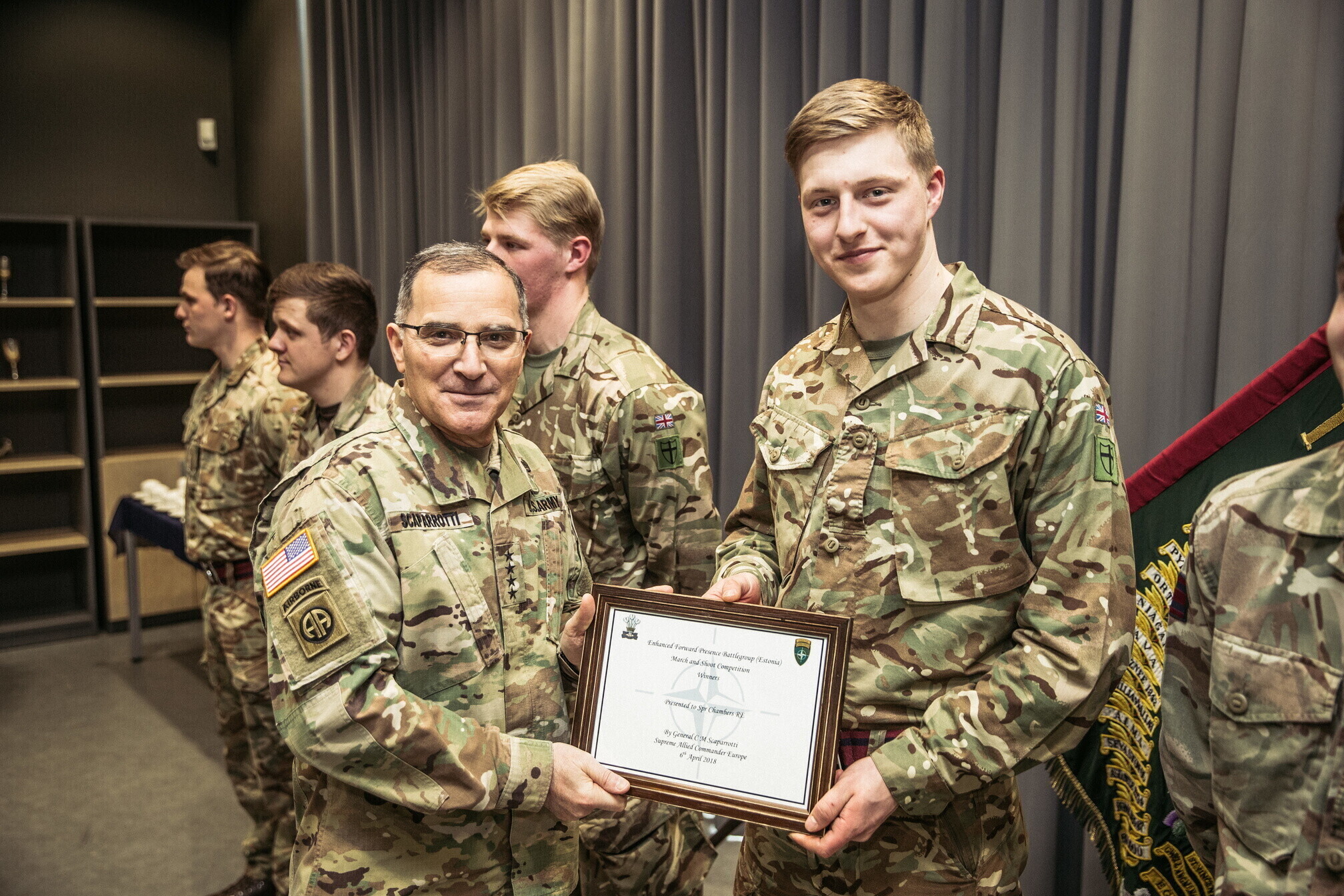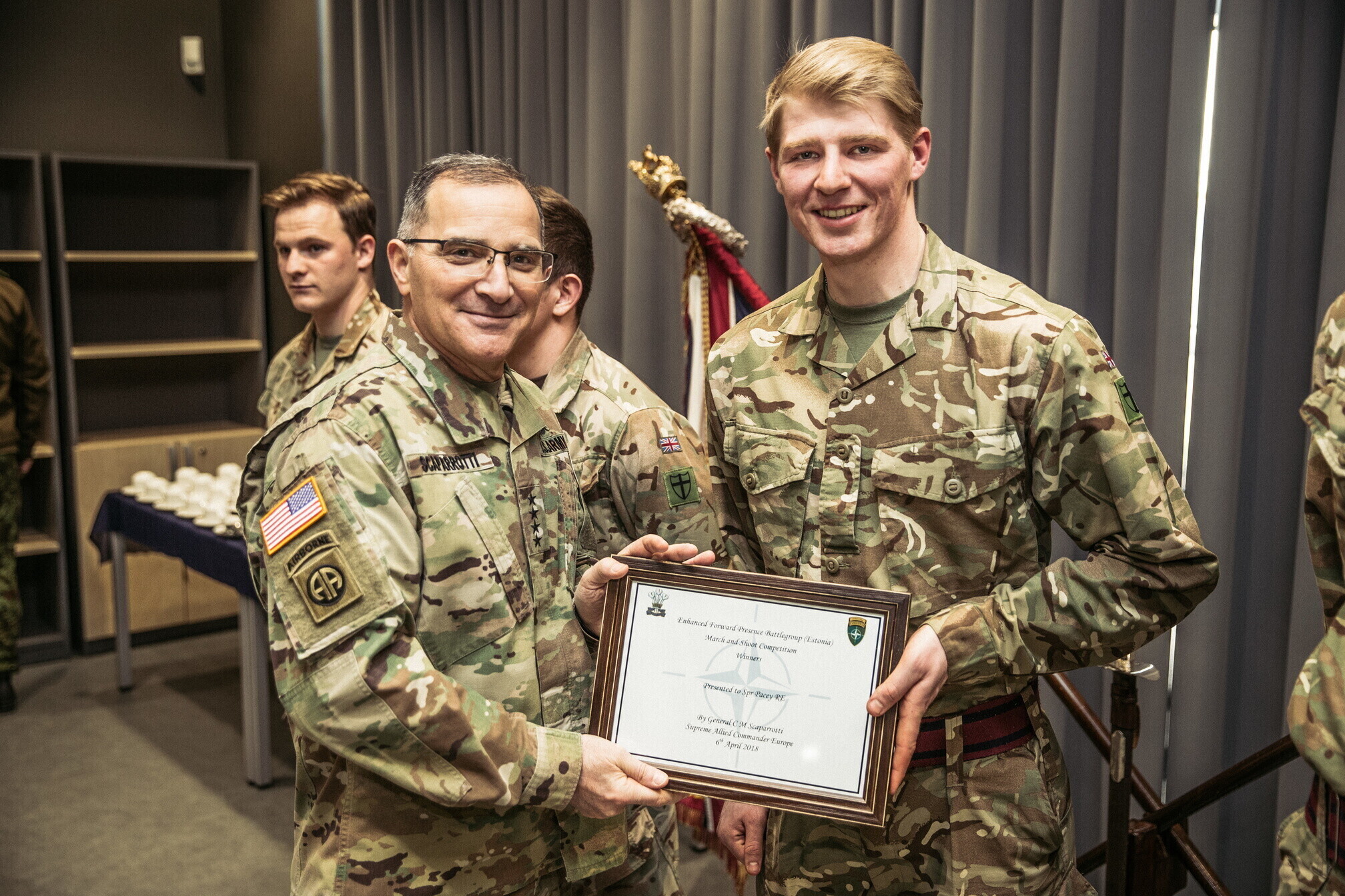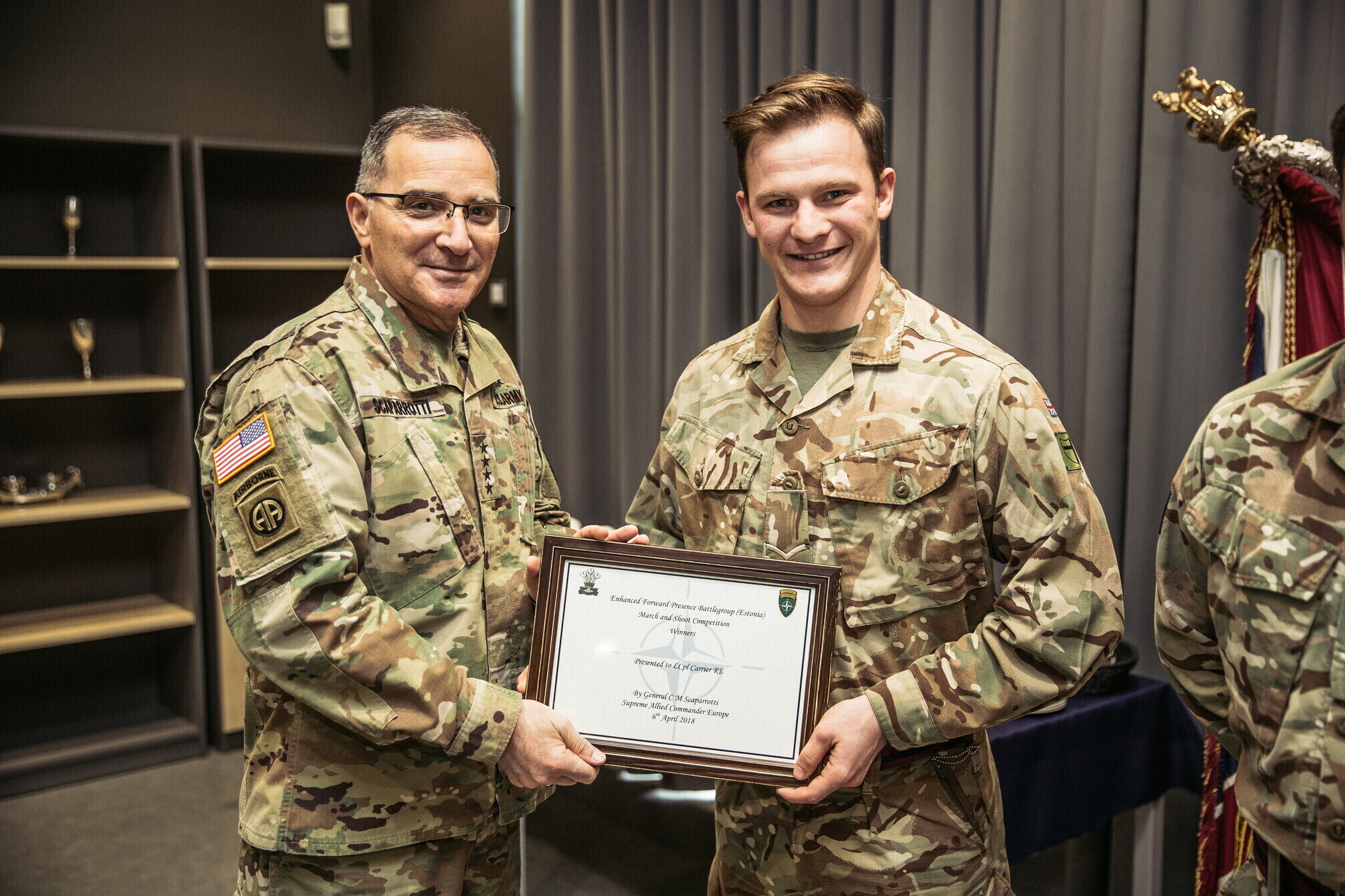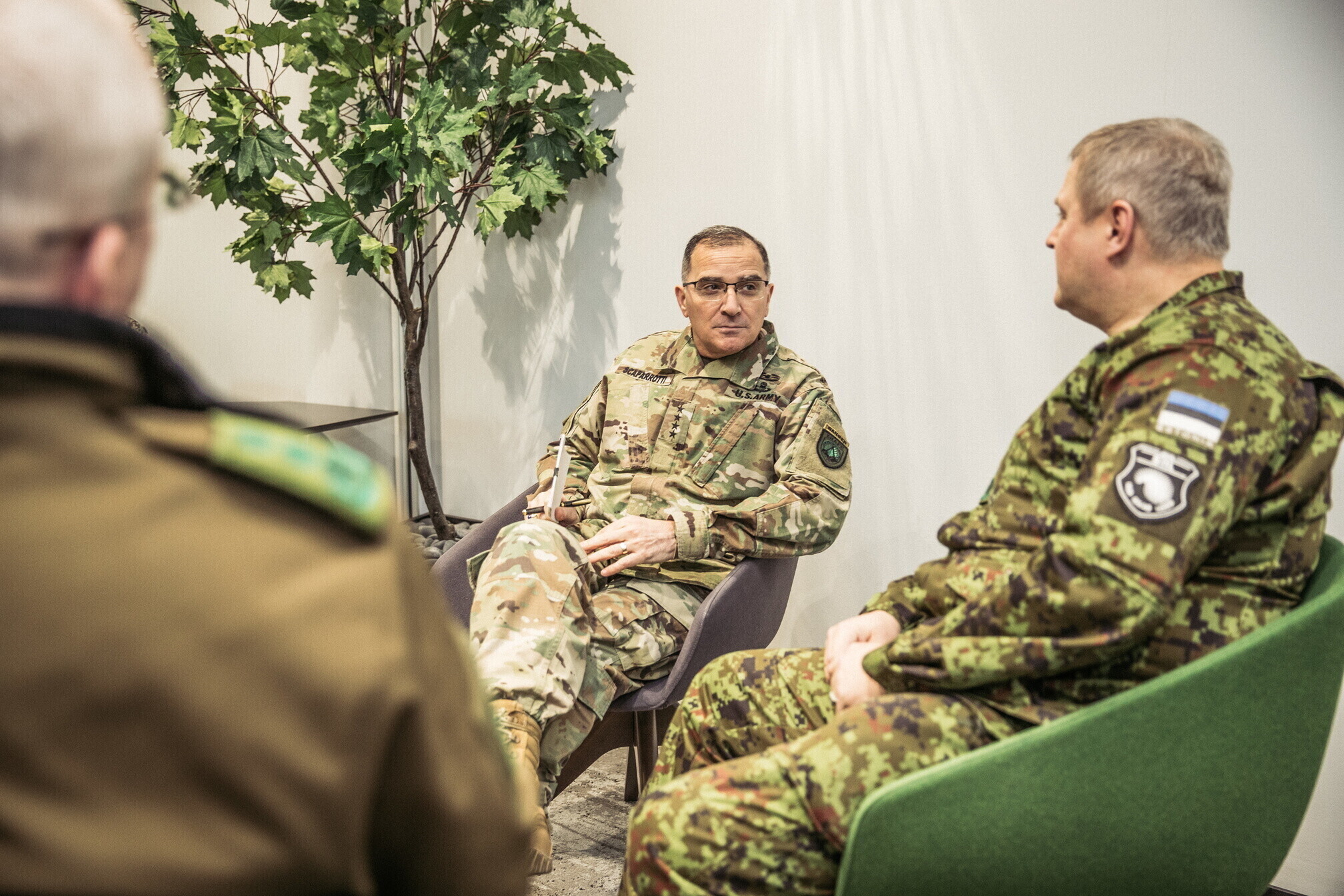Lisaks 1. jalaväebrigaadi ja liitlaste väljaõppega tutvumisele kohtus kindral Scaparrotti ka kaitseväe juhataja kindral Riho Terrasega ja kaitseväe juhataja asetäitja kindralmajor Indrek Sireliga.
