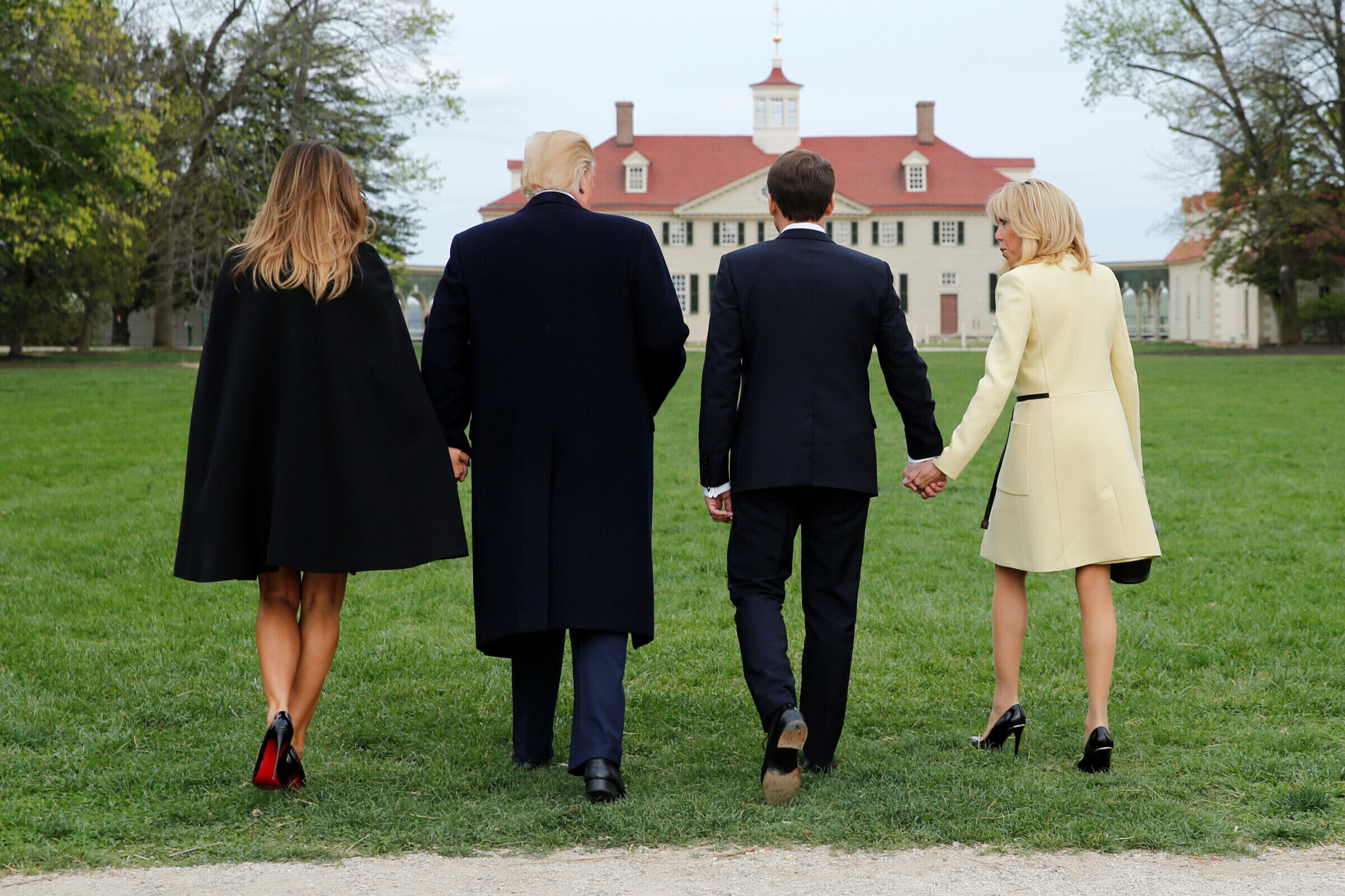 Esmaspäeval võõrustasid Trump ja esileedi Melania Trump Macroni ja tema abikaasat Brigitte Macroni Ameerika Ühendriikide esimese presidendi kodus Mount Vernonis.