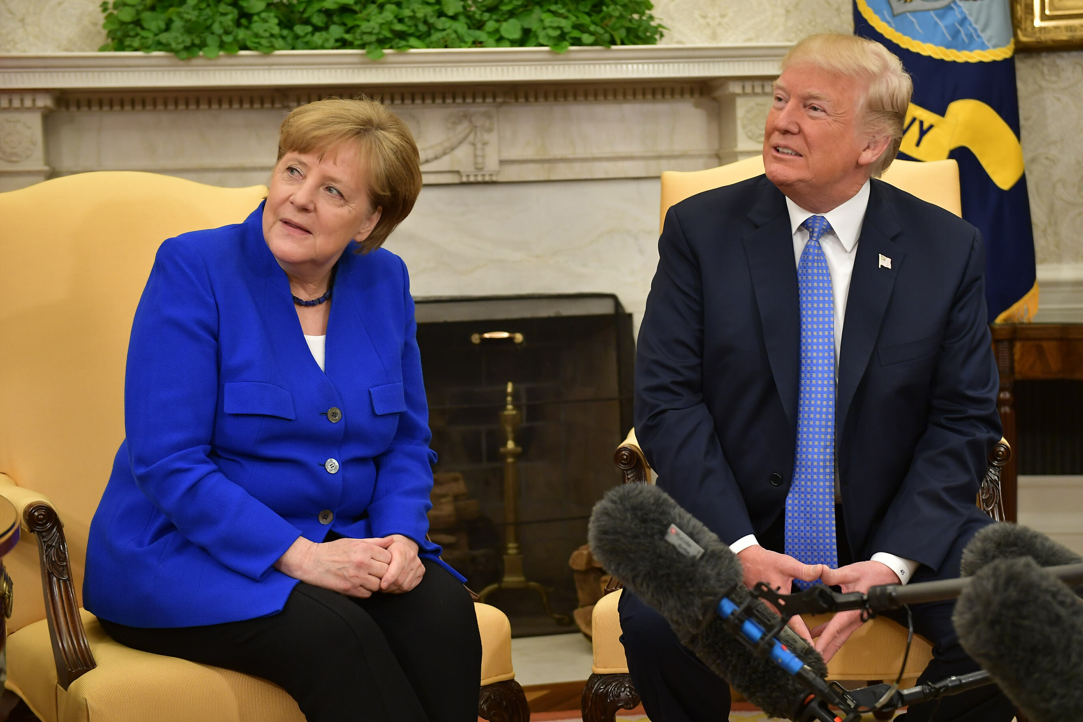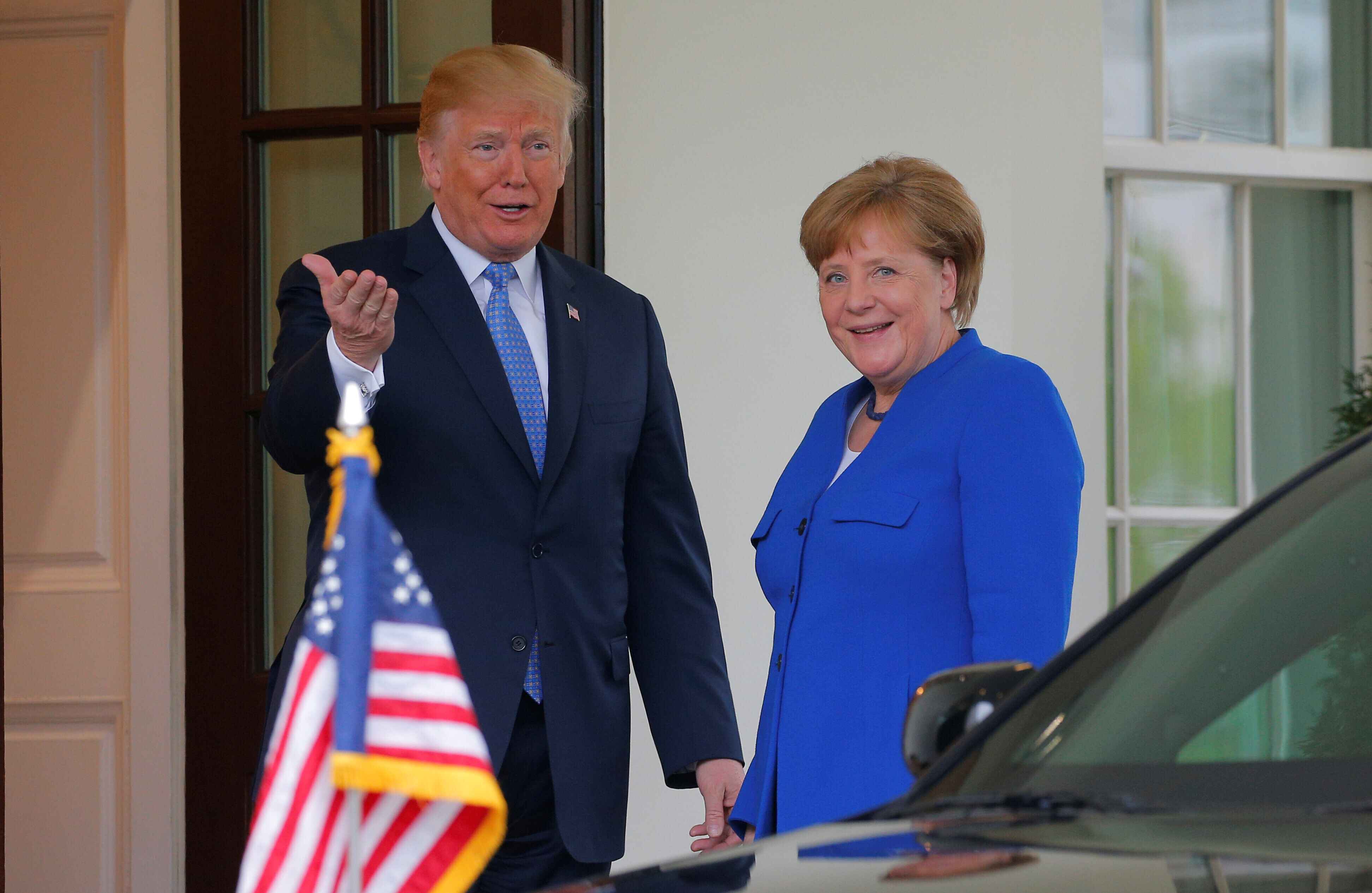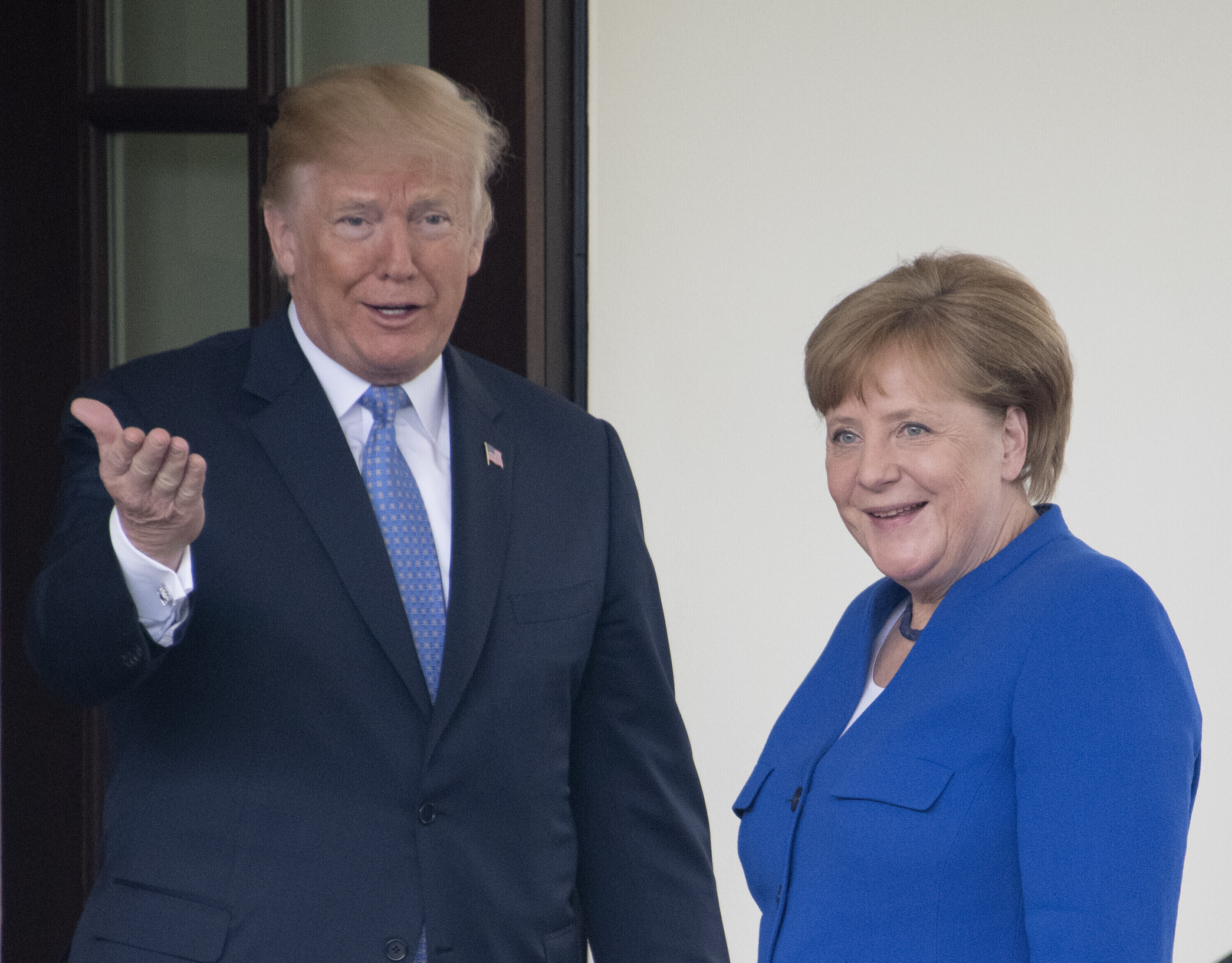 Eelmisel aastal leidis Merkeli ja Trumpi kohtumise ajal aset piinlik hetk, kui näis, et Trump ei kuulnud Merkeli ettepanekut kätlemiseks. Seekord surus Trump soojalt Merkeli kätt ning tervitas teda suudlusega põsele.
