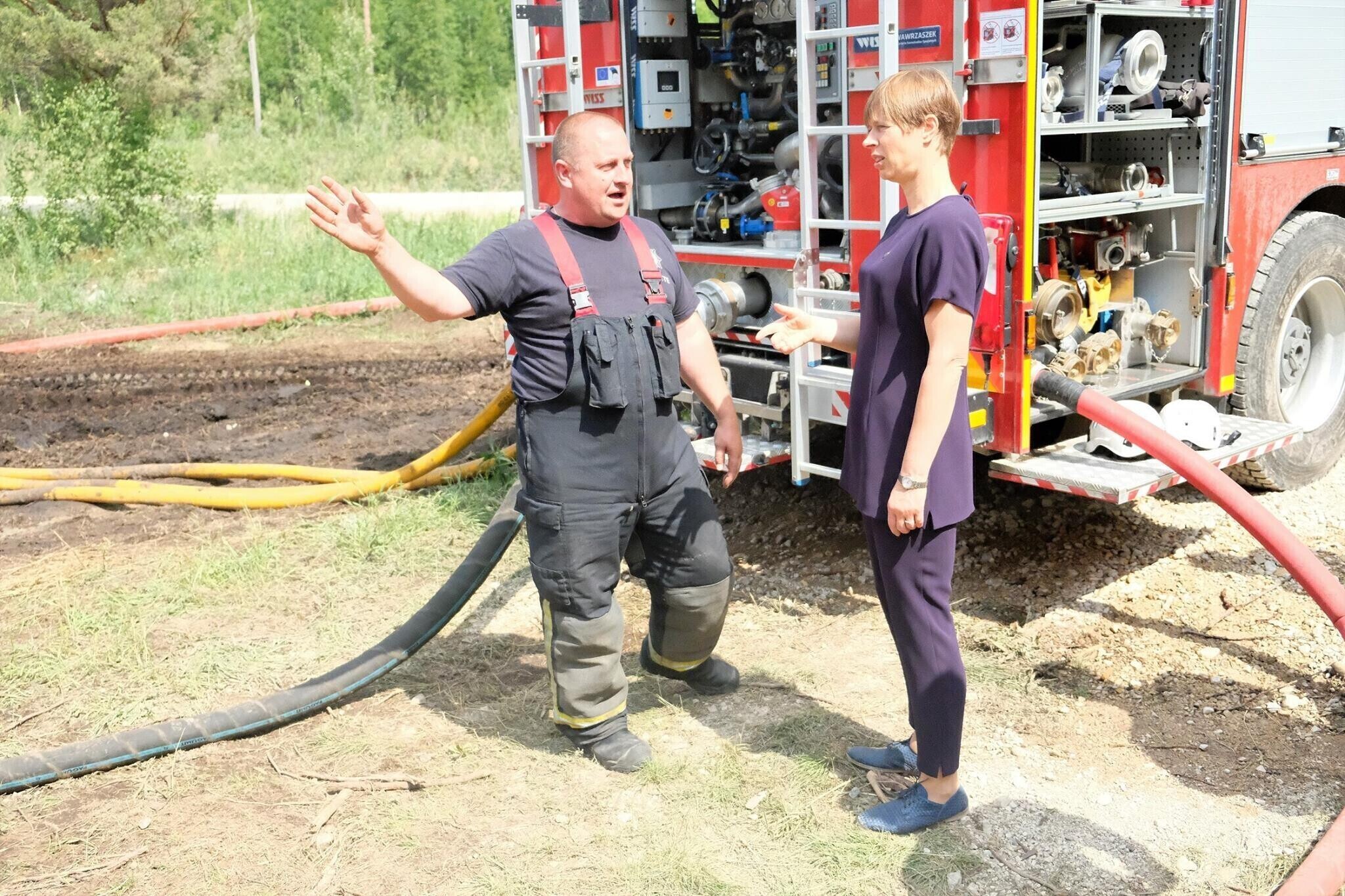 President Kersti Kaljulaid ja siseminister Andres Anvelt tutvusid laupäeval päästetöödega Harjumaa Vikipalu metsatulekahju alal.