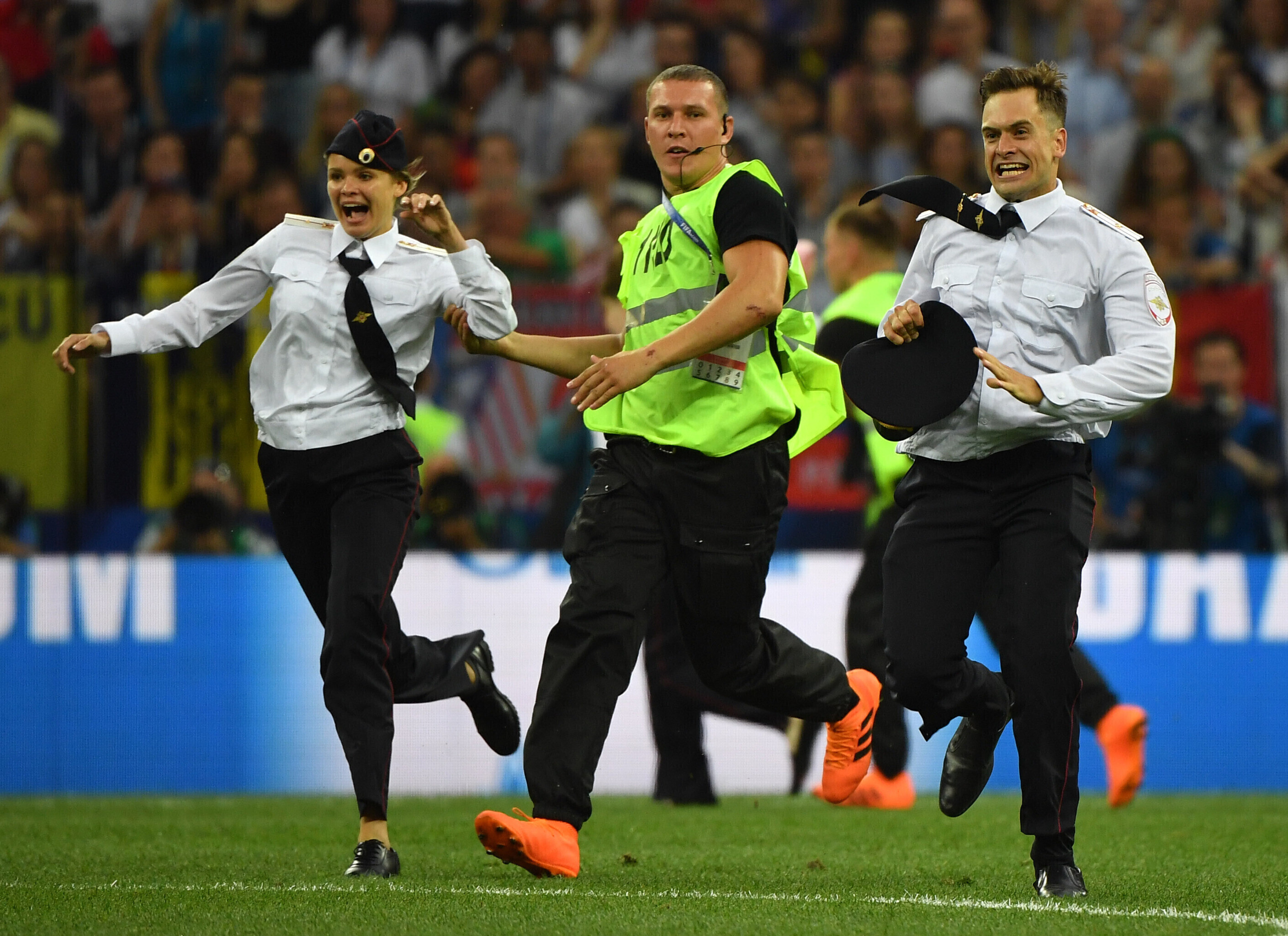 Hiljem ütles bändi liige Olga Kuratšjova telefoni teel Reutersile, et tema oli üks neist, kes finaalmängu ajal väljakule jooksis. Naine viidi politseijaoskonda.